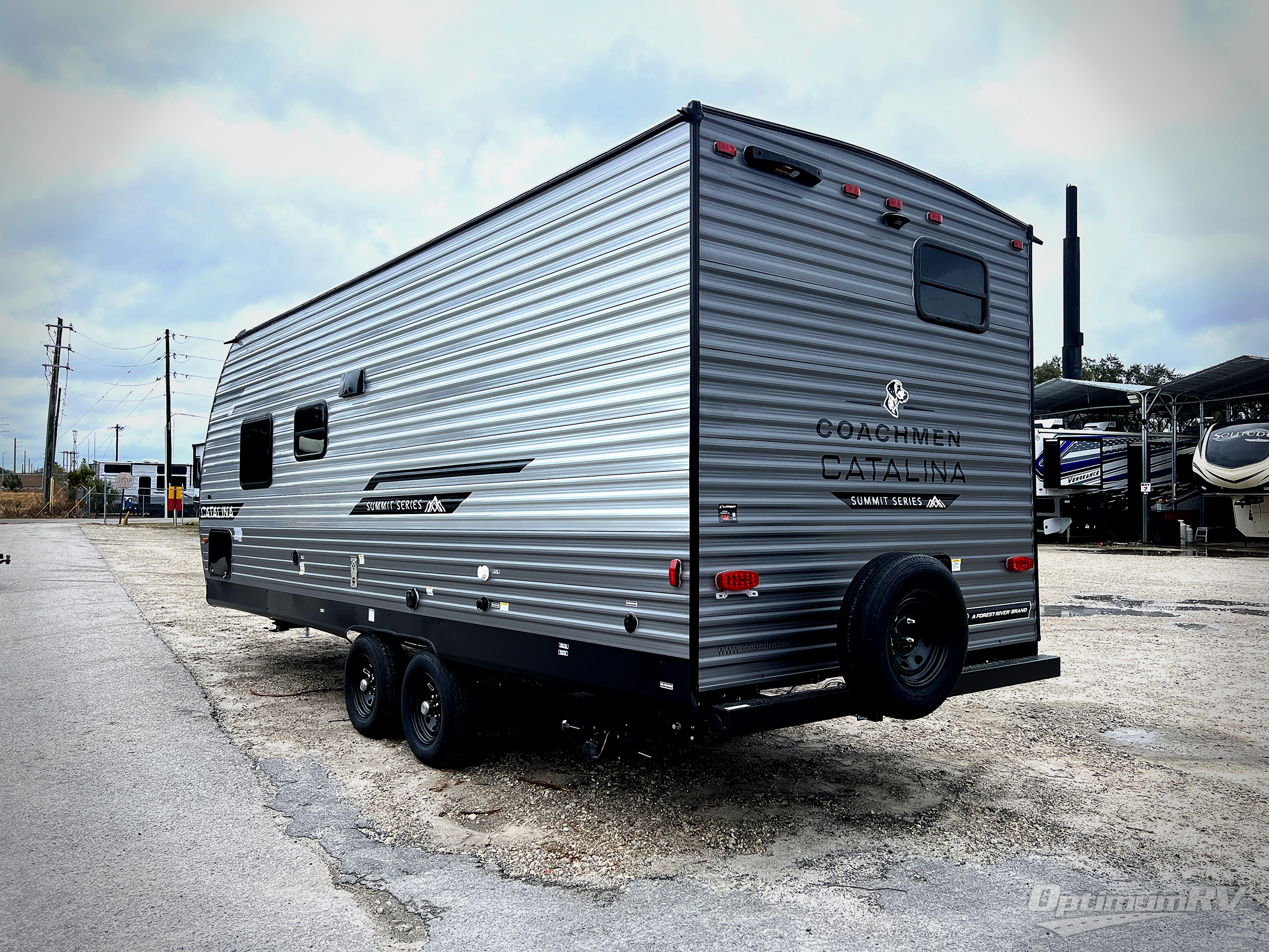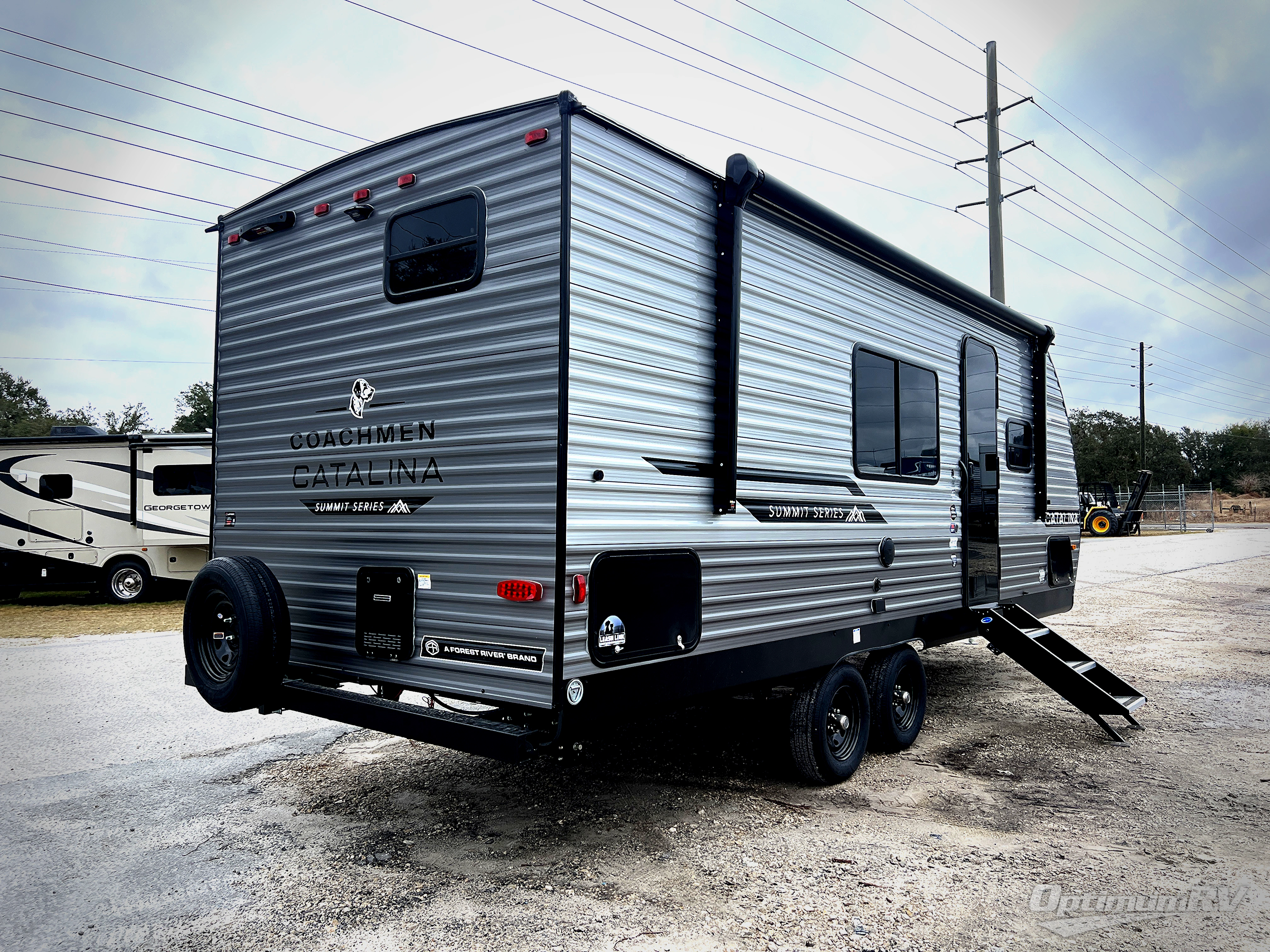 With any Catalina Summit Series 8 by Coachmen you will enjoy an affordable travel trailer packed with at-home comforts! The solid construction includes a Norco electromagnetic powder coated chassis, a seamless Alpha roof membrane, and full length frame outriggers for maximum support and durability. EZ lube axles with leaf spring suspension and self-adjusting brakes provide smooth towing from home to campground, and the premium exterior graphics package is sure to turn heads as you travel down the highway. You will love the features included, such as a JBL Aura Cube media center, magnetic baggage door latches, 4,000 lumen interior touch lighting, and the list goes on!