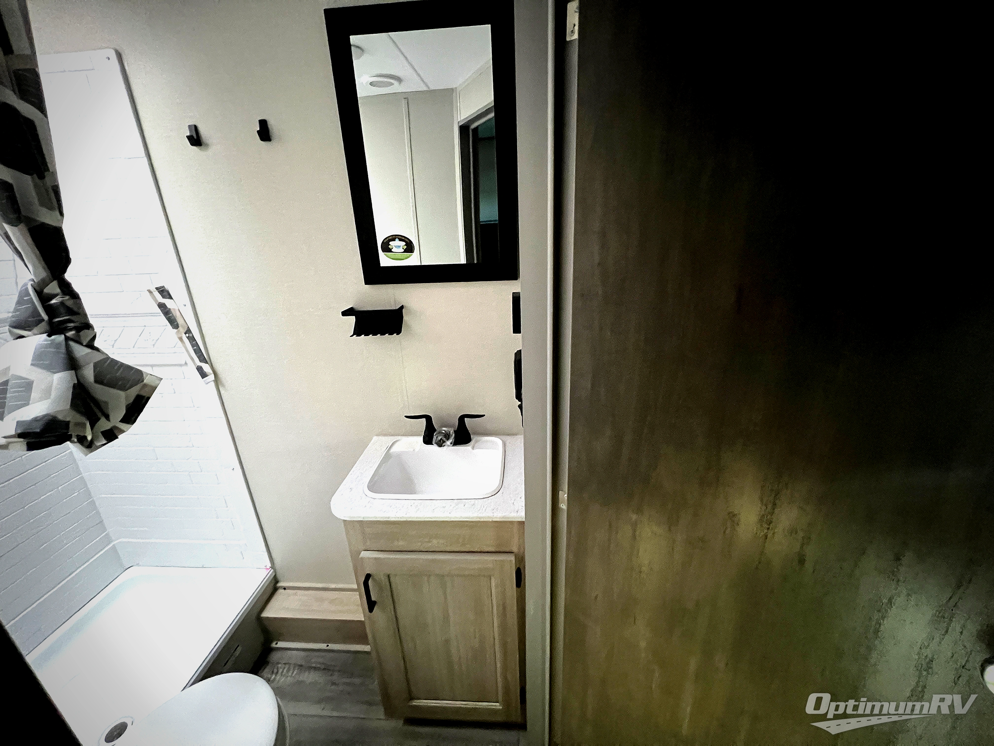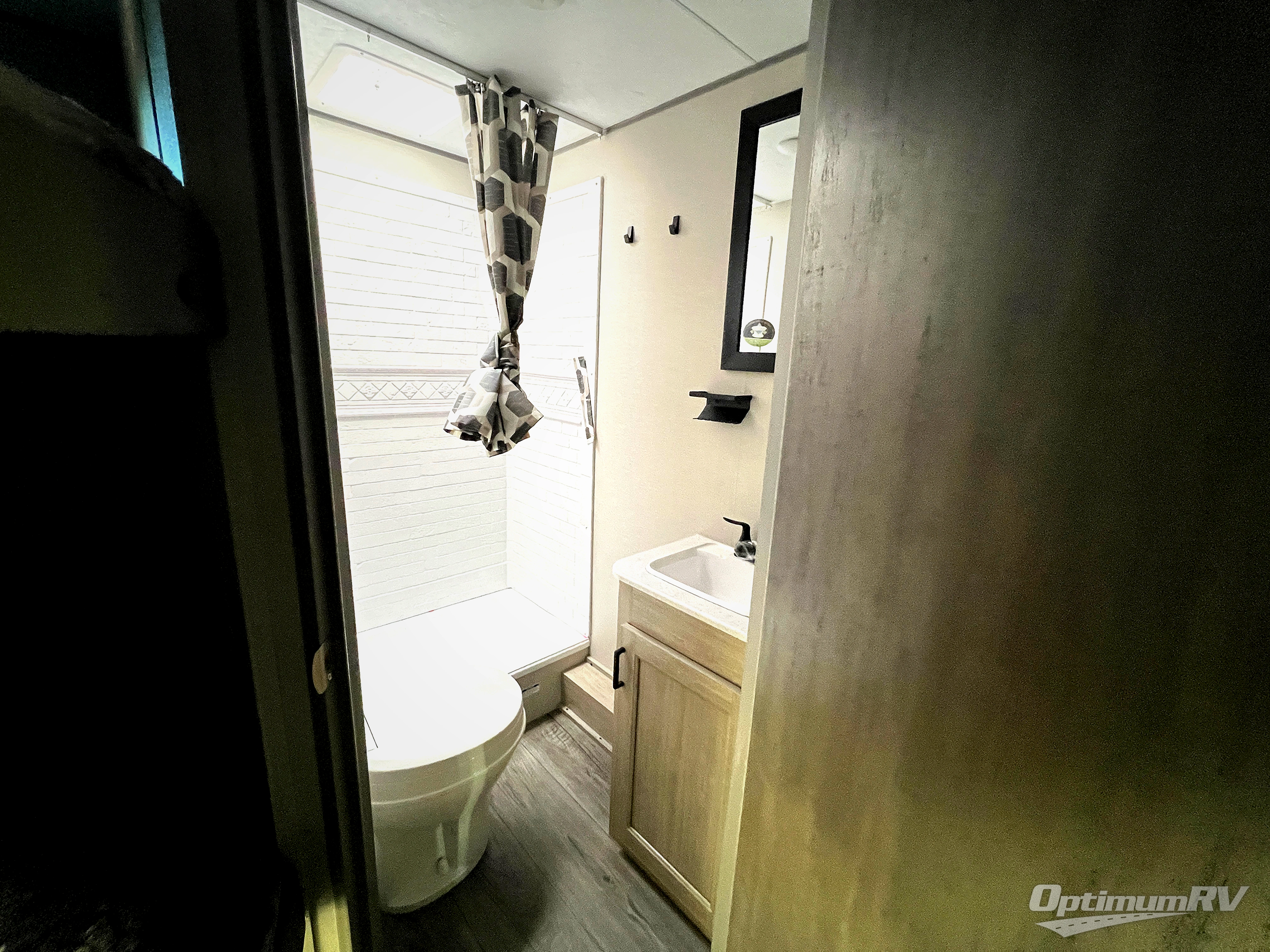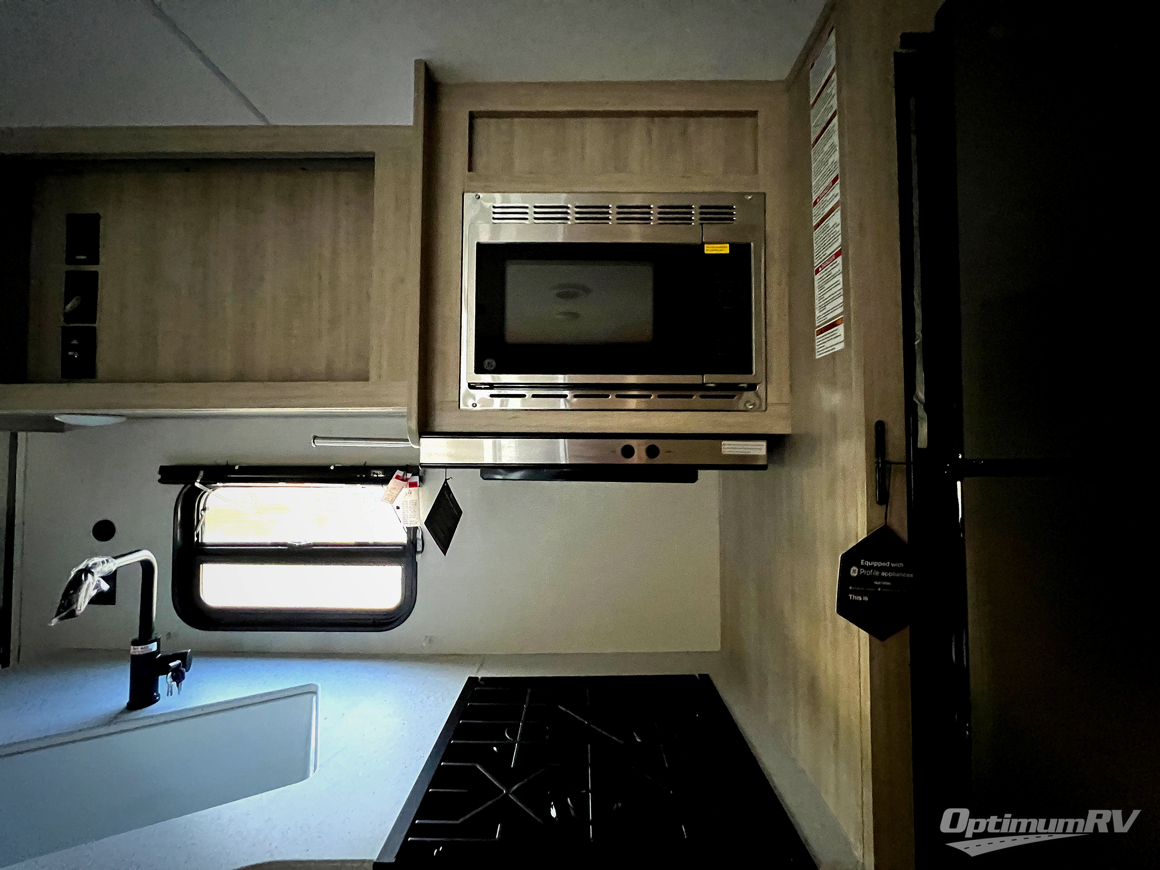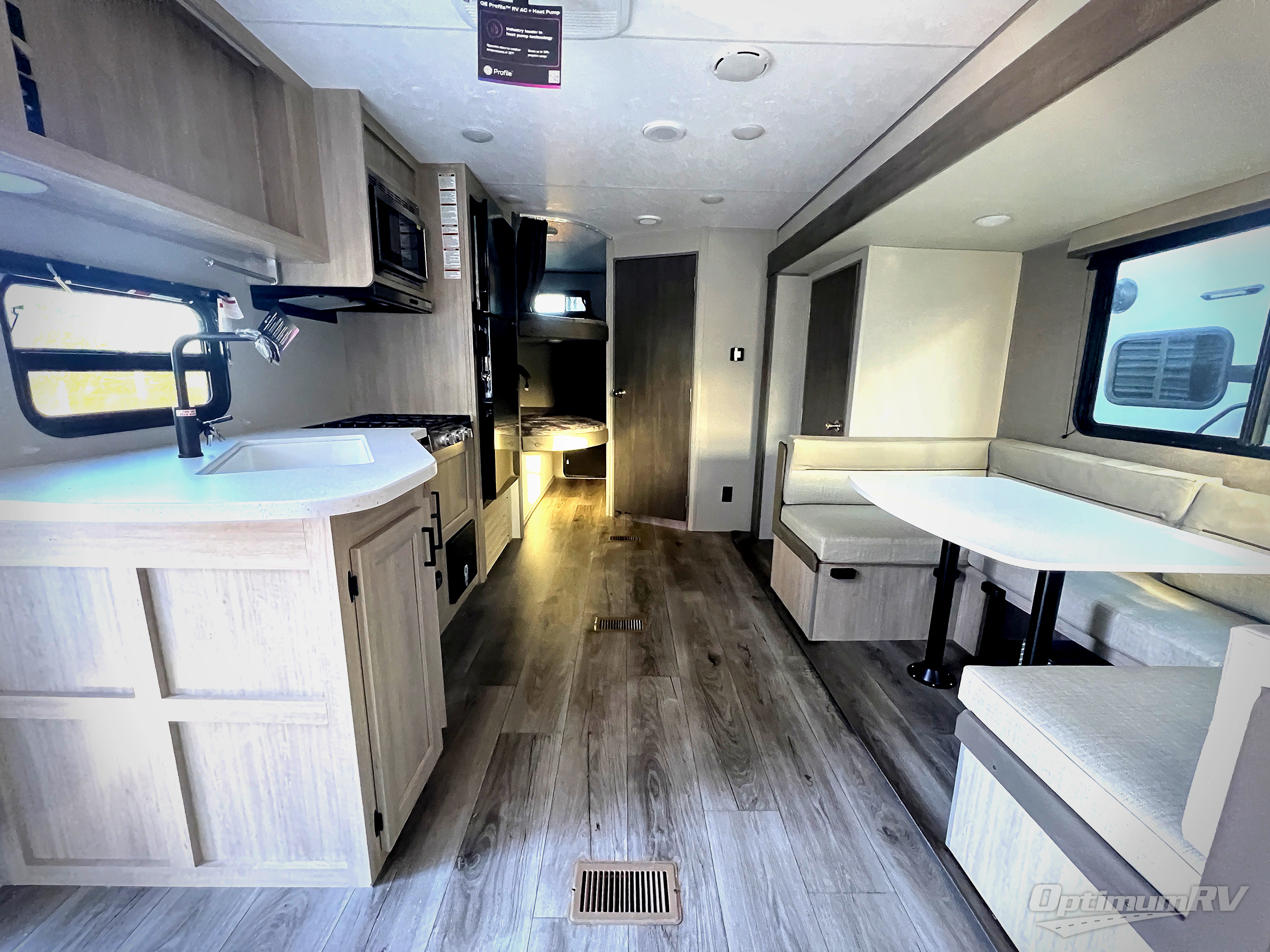 This is the perfect mid-size travel trailer for you and your family! The double-size bunks offer a comfortable sleeping space for the kids and you will have your own private sleeping space with a queen bed in the front bedroom. Freshen up each day in the rear corner bathroom with the tub/shower and a mirror to get ready each morning. You can prepare your best home cooked meals with the GE stainless three burner cooktop and GE stainless 10.7 cu. ft. 12V refrigerator, then enjoy them together at the u-shaped dinette. There is also a large pantry to store all your goods. Don't leave any of your outdoor gear behind either, thanks to the front pass-through storage area and the exterior outside storage area. You could even add the optional outside camper kitchen to grill the catch of the day on the pull out griddle!