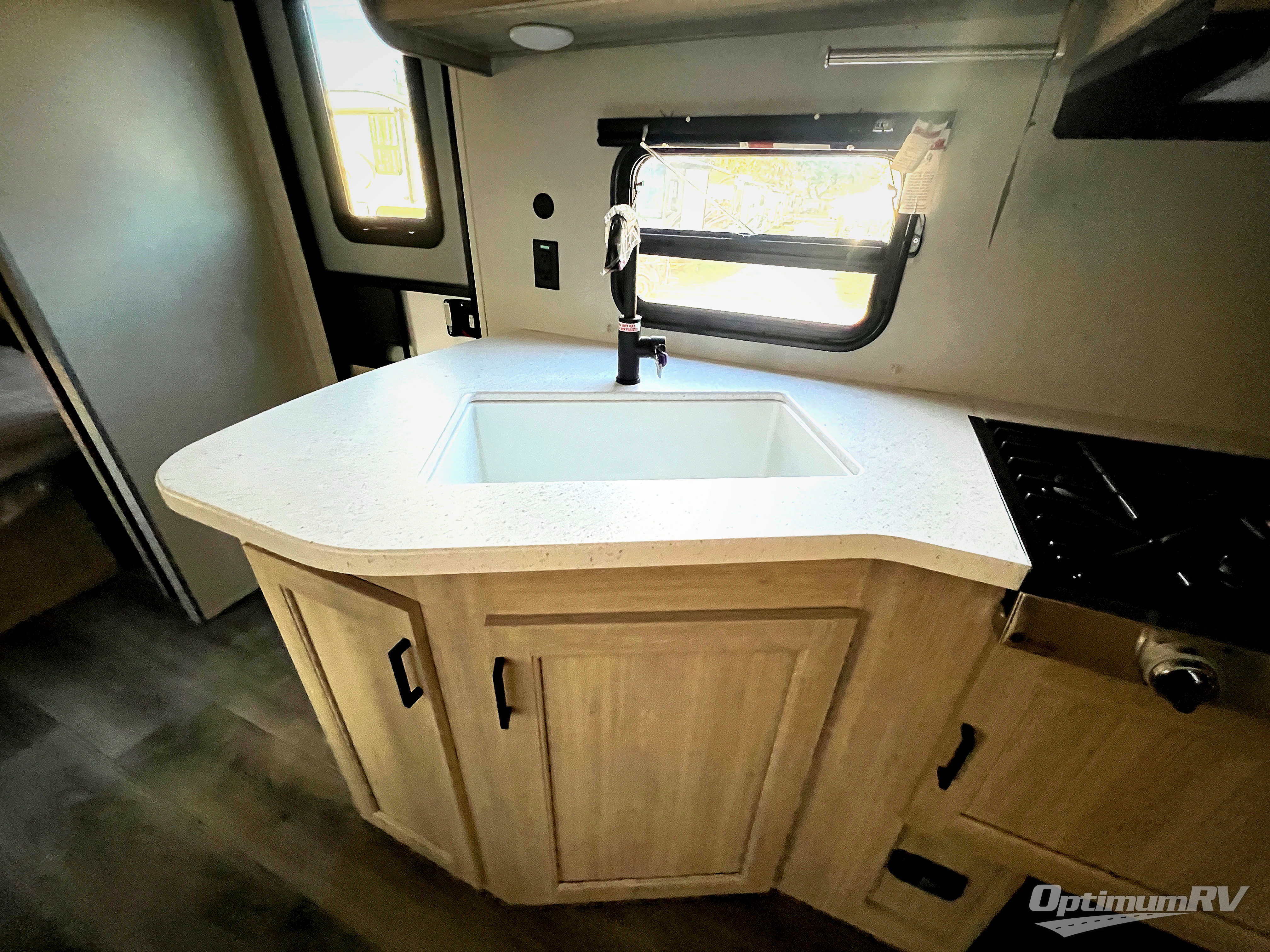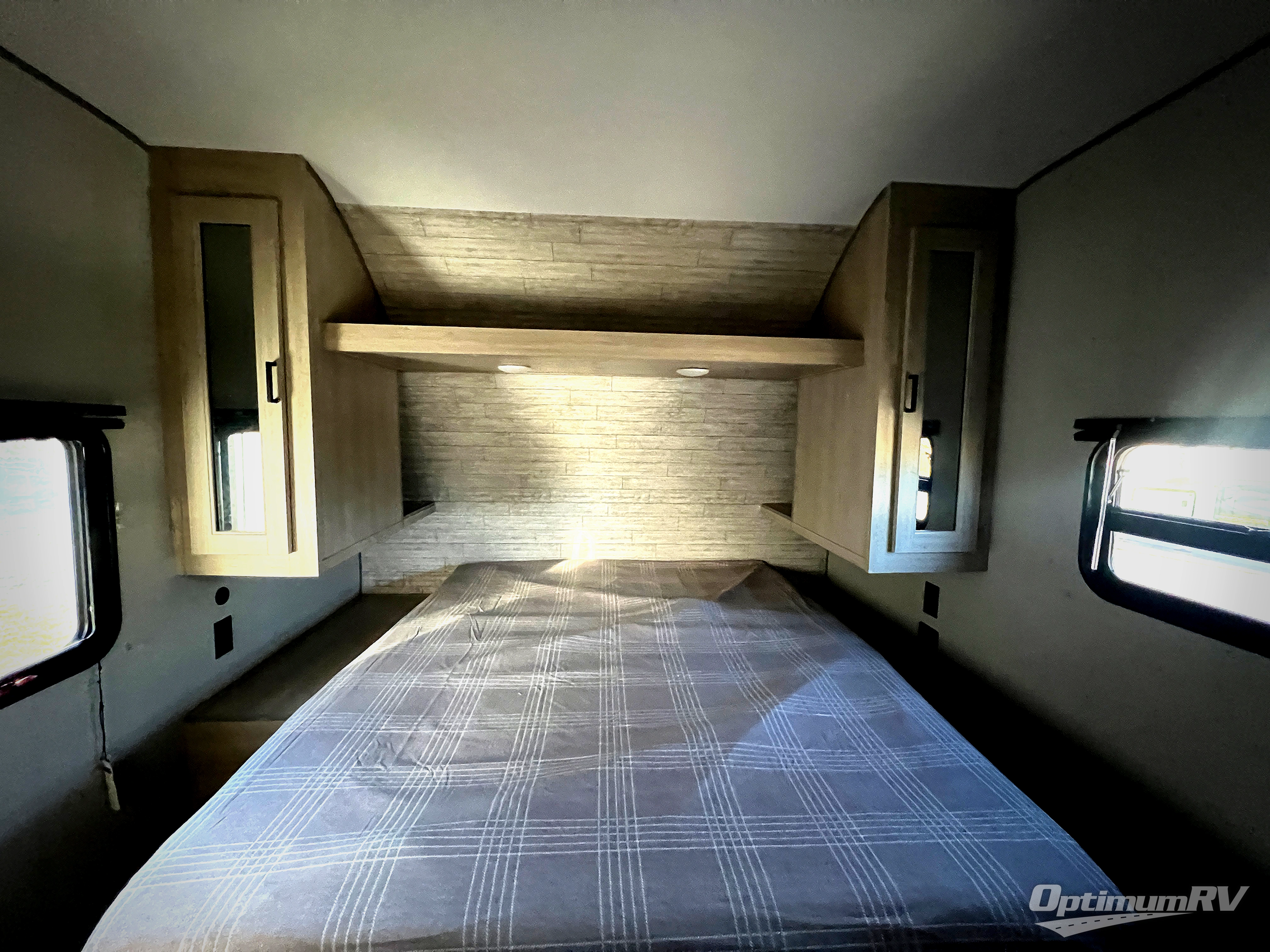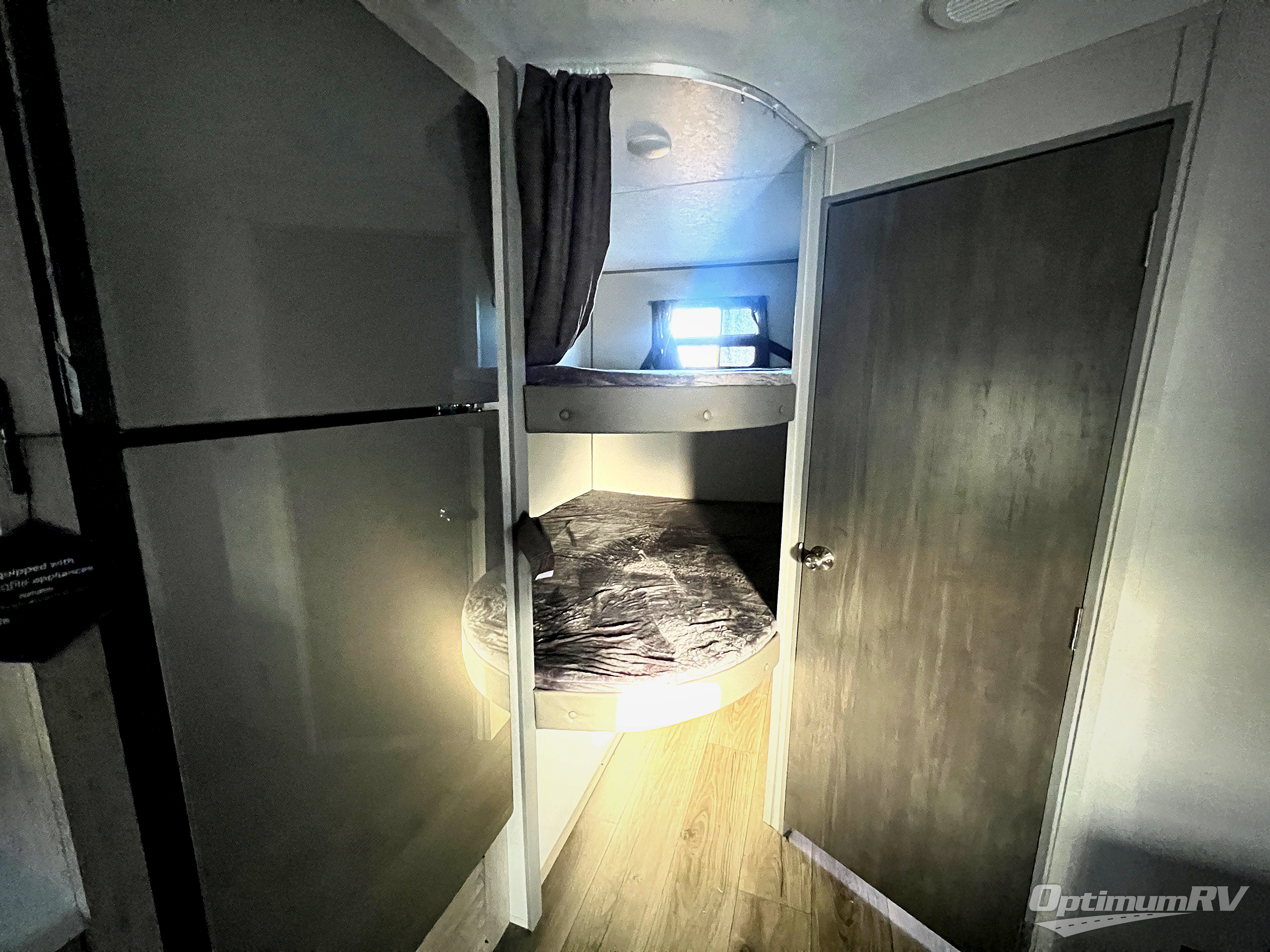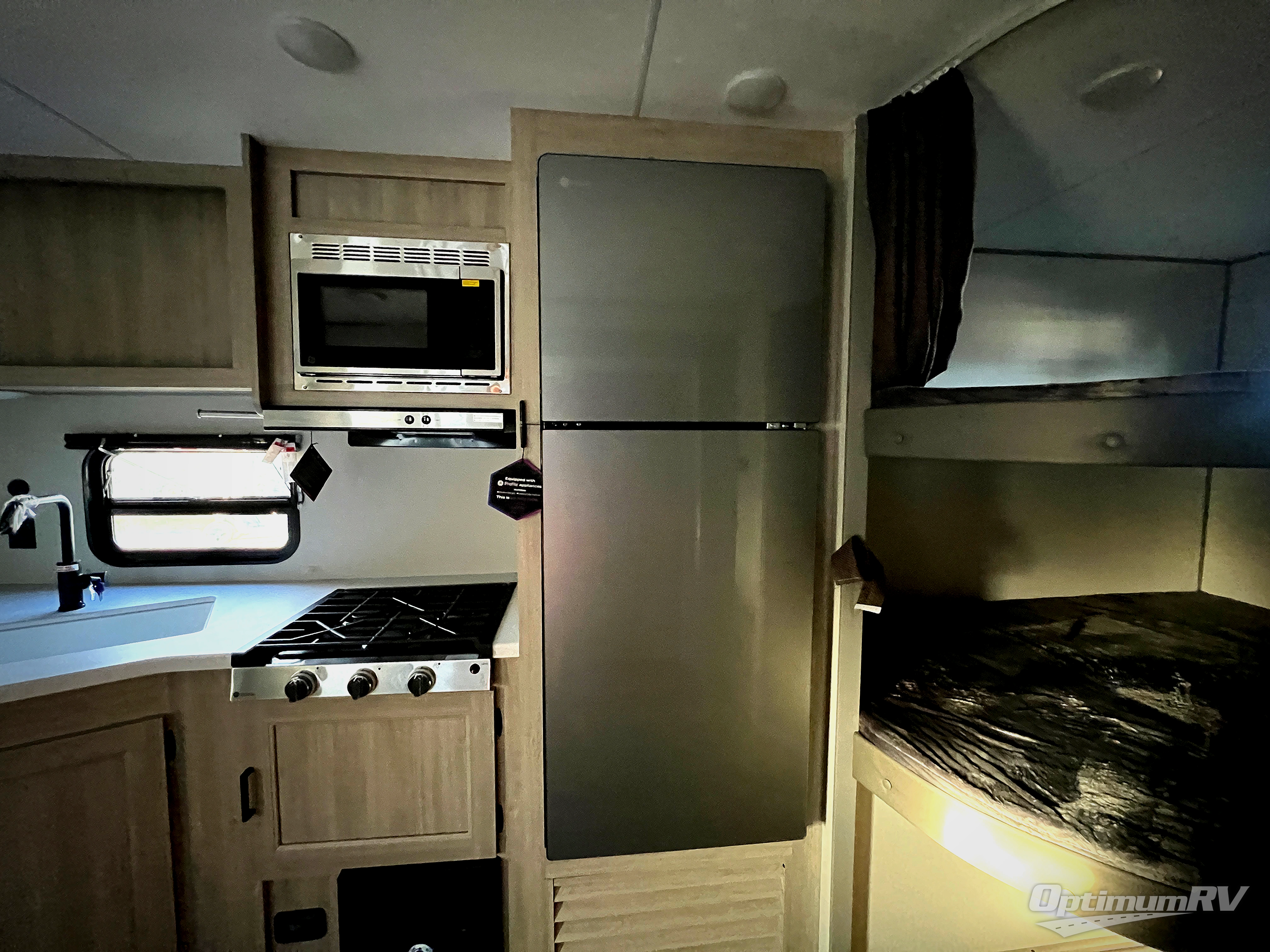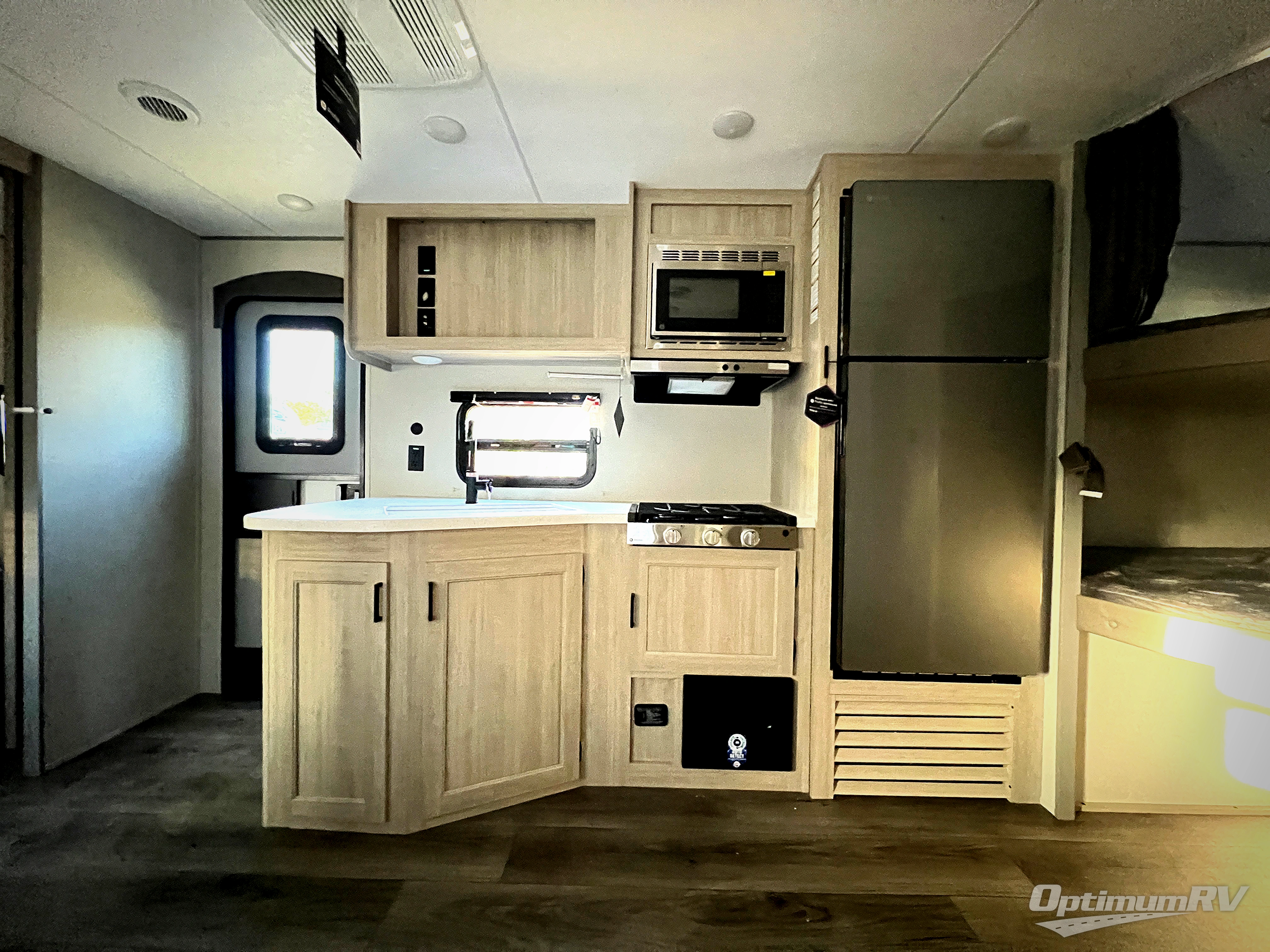 This is the perfect mid-size travel trailer for you and your family! The double-size bunks offer a comfortable sleeping space for the kids and you will have your own private sleeping space with a queen bed in the front bedroom. Freshen up each day in the rear corner bathroom with the tub/shower and a mirror to get ready each morning. You can prepare your best home cooked meals with the GE stainless three burner cooktop and GE stainless 10.7 cu. ft. 12V refrigerator, then enjoy them together at the u-shaped dinette. There is also a large pantry to store all your goods. Don't leave any of your outdoor gear behind either, thanks to the front pass-through storage area and the exterior outside storage area. You could even add the optional outside camper kitchen to grill the catch of the day on the pull out griddle!