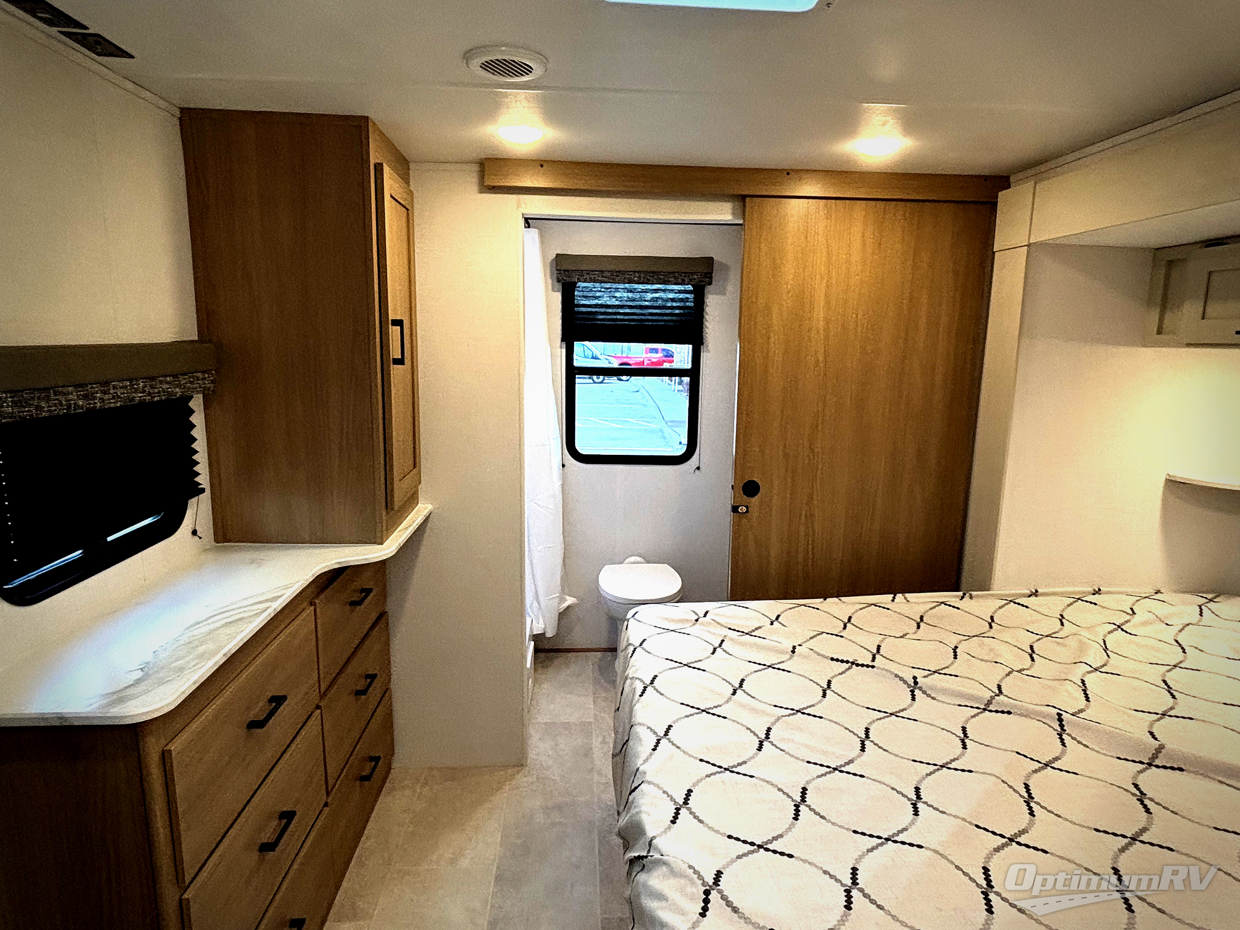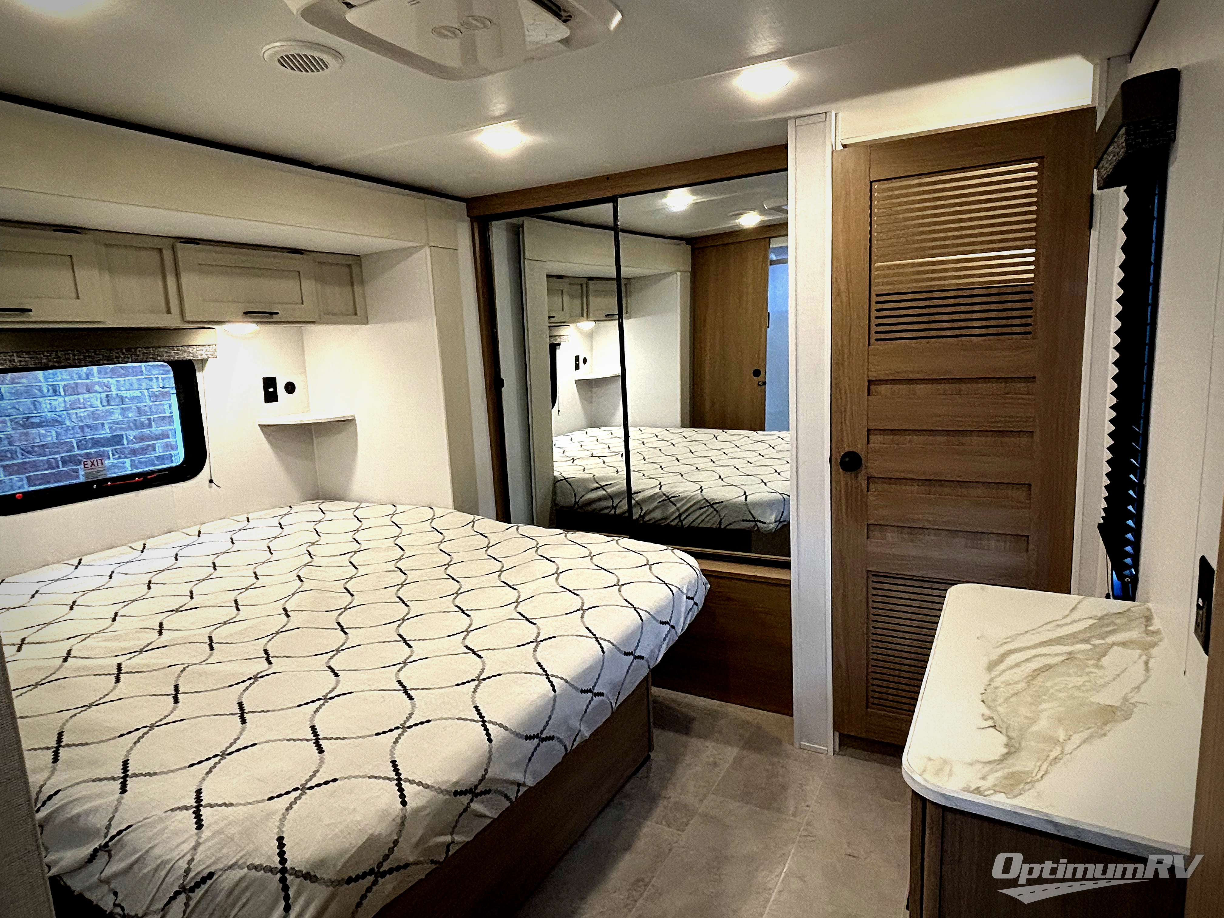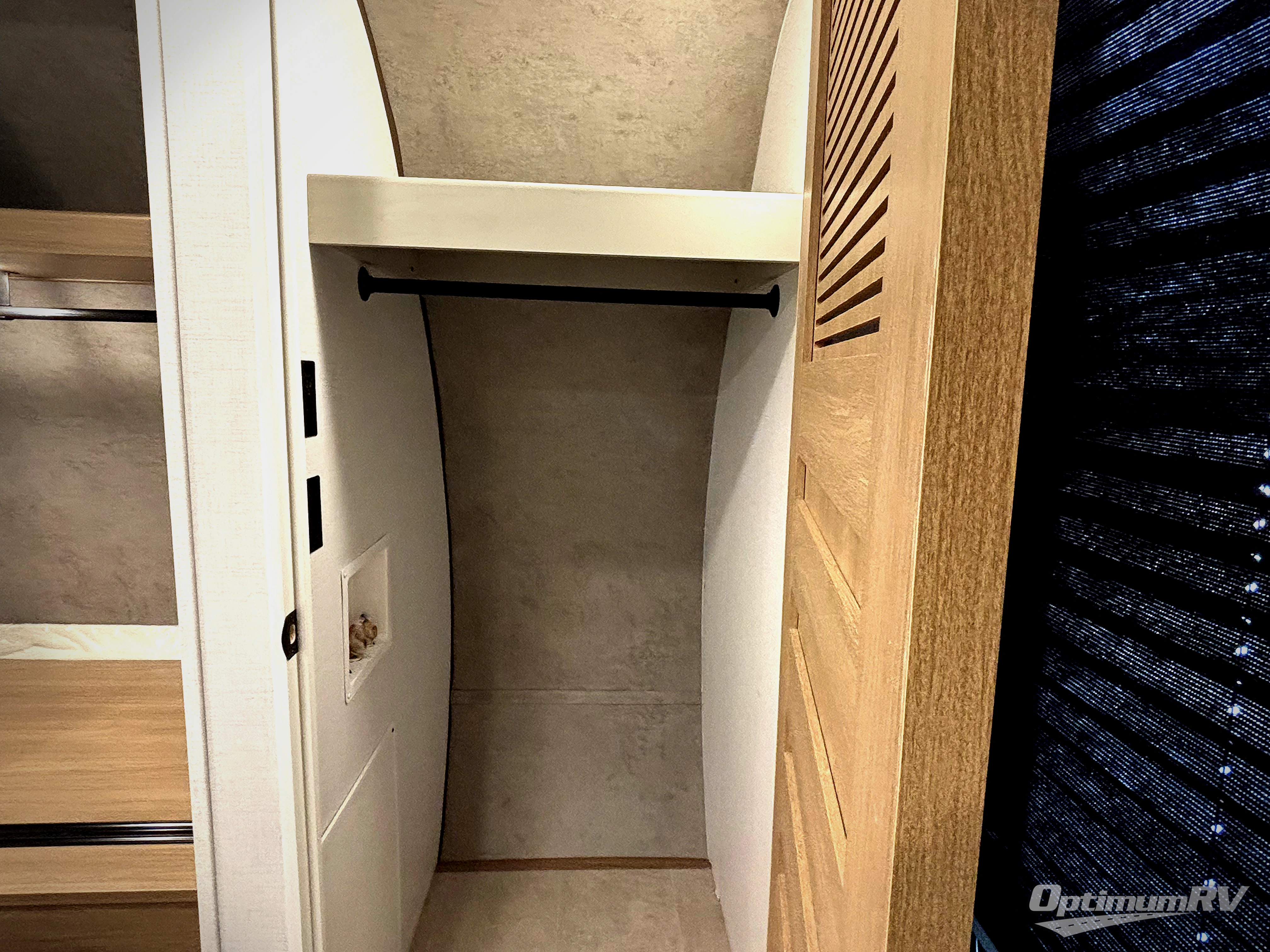 This is the perfect travel trailer if you like to camp with friends! The rear master includes a full rear bath, residential queen bed slide out, dresser, plus one of the dual entry doors. Your guests can sleep in the front master bedroom with a king bed slide out, closet and dresser, plus washer and dryer prep. The combined kitchen and living area will be a favorite hangout spot with its large slide out, tri-fold sofa, booth dinette, and spacious pantry where snacks can be kept stocked! There is even a fireplace to make it cozier!