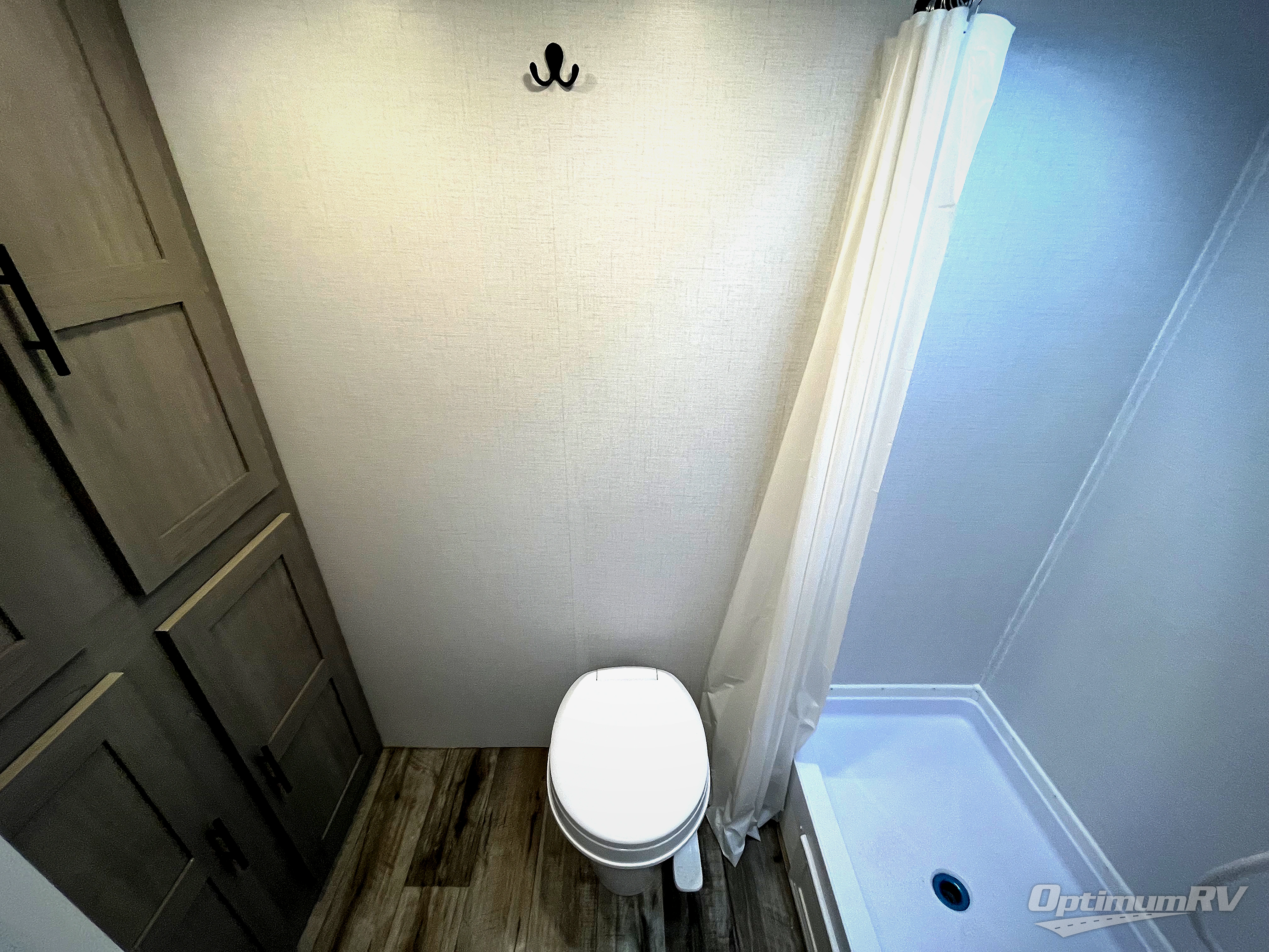 A perfect couples coach that could sleep one or two more, depending on size, using the booth dinette which can be converted at night This unit is cozy and convenient providing you just what you need to enjoy a little adventure away from home. For meals, there is a two burner cooktop and sink, plus a 3.3 cu. ft. refrigerator for your perishables. Overhead cabinetry can be found along both sides for your dishes and things. You will all appreciate the convenience of having your own private shower and toilet so that you don't need to use the campground facilities at night. You will also enjoy spending time outside with an 8' awning to provide even more living space outdoors!