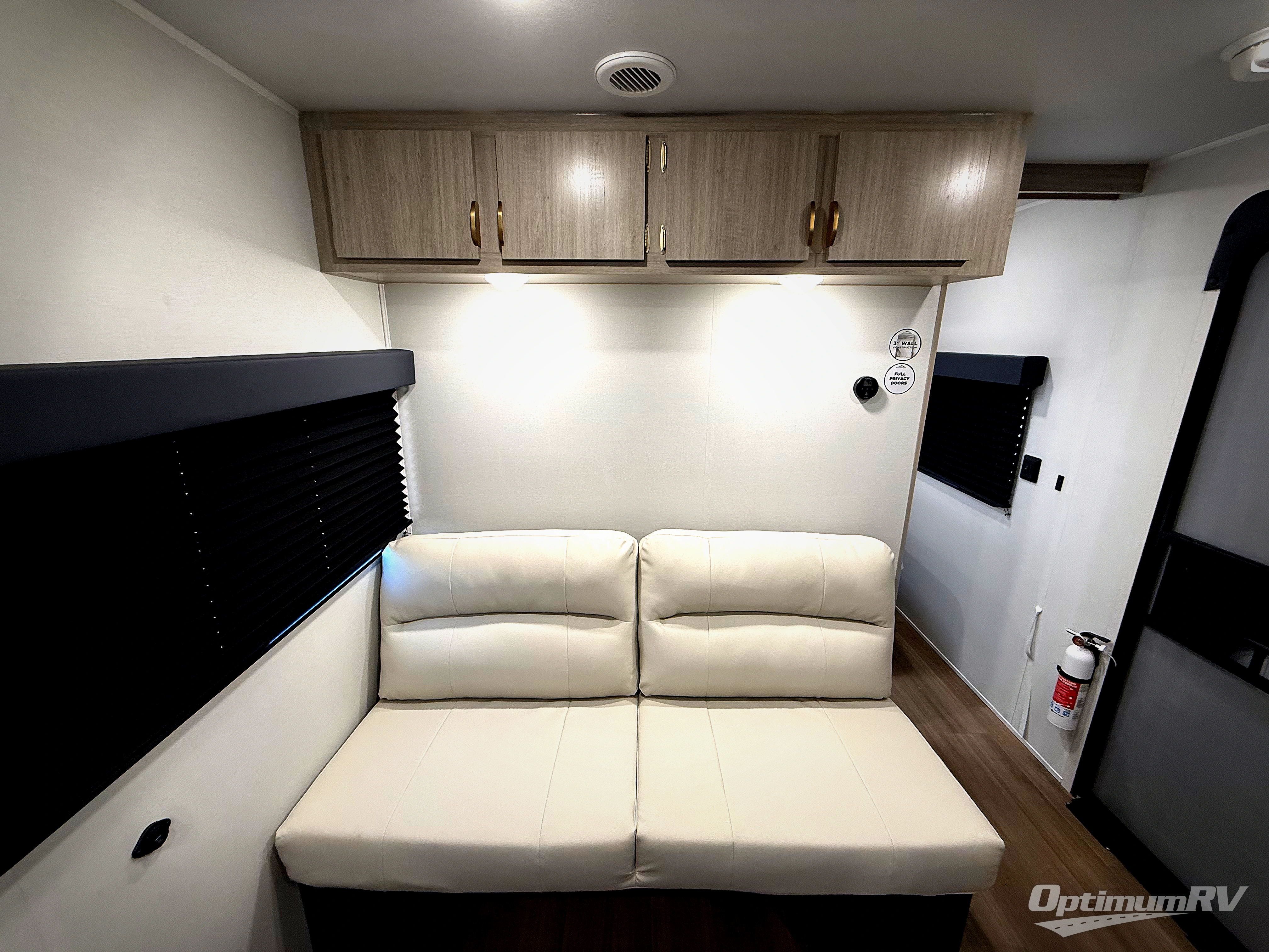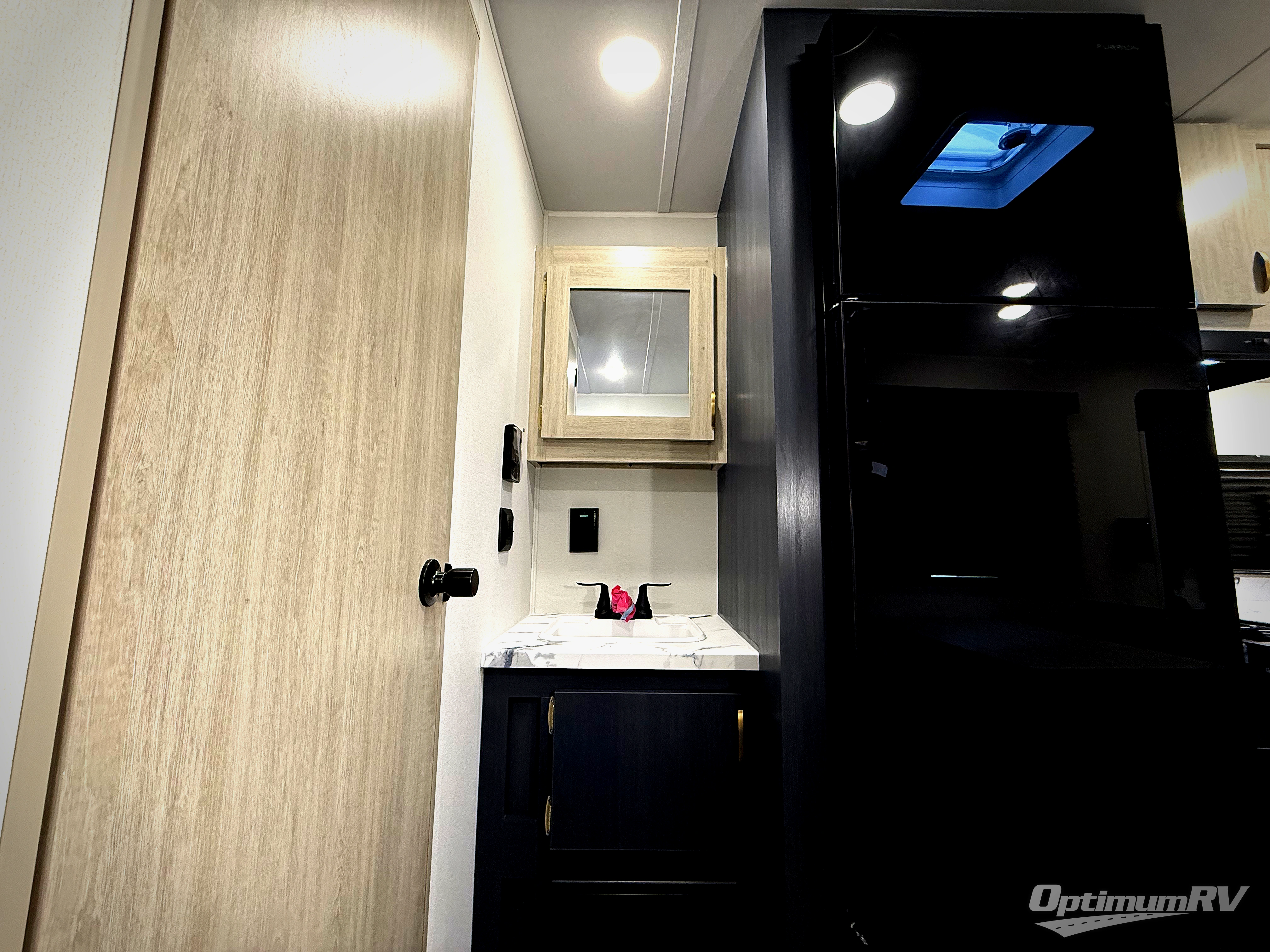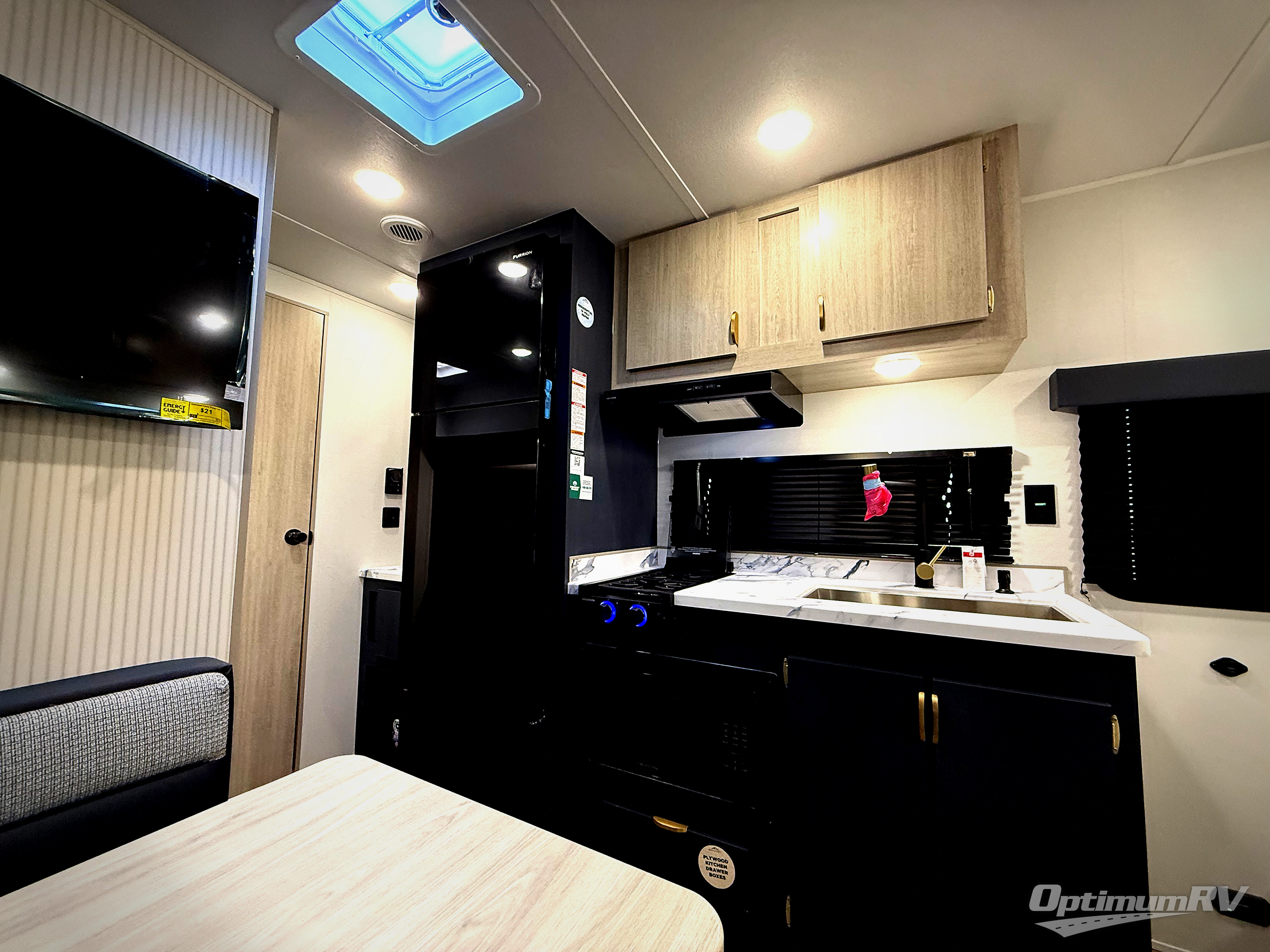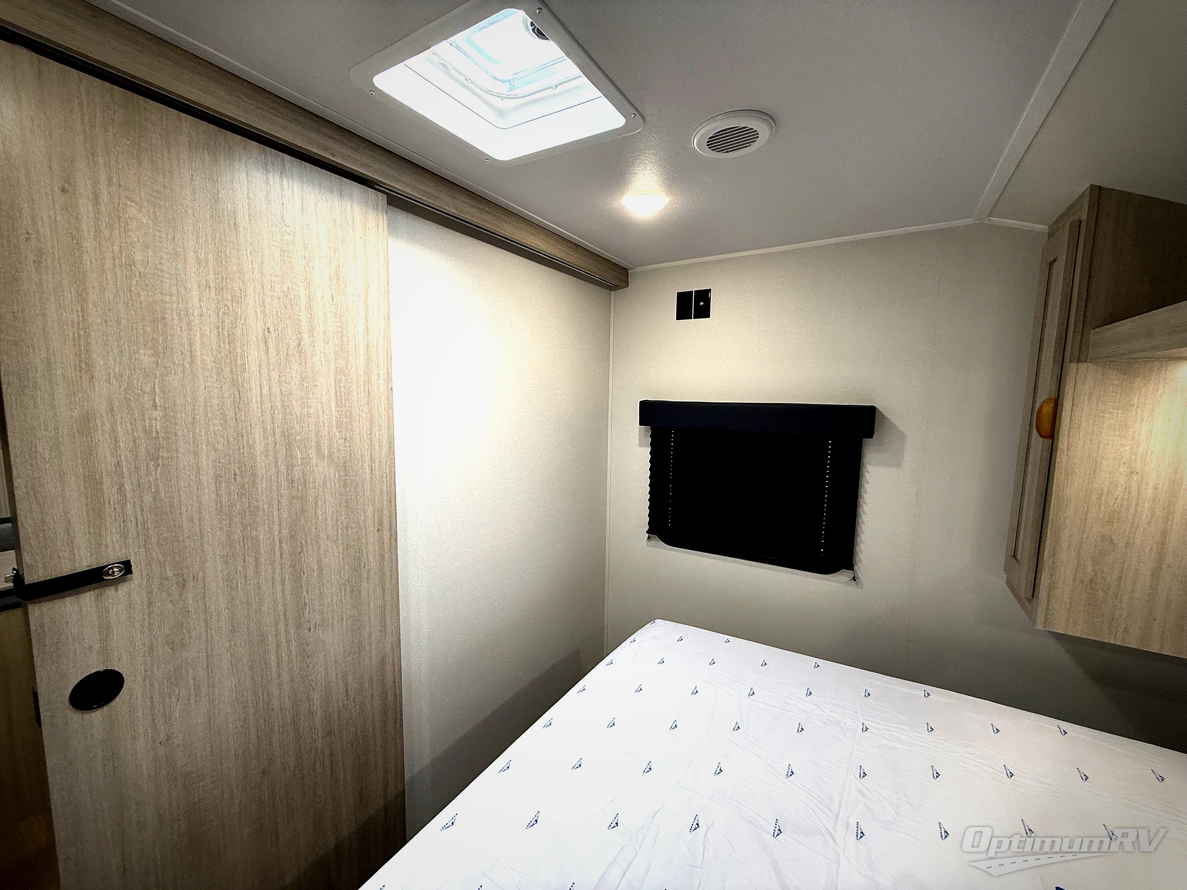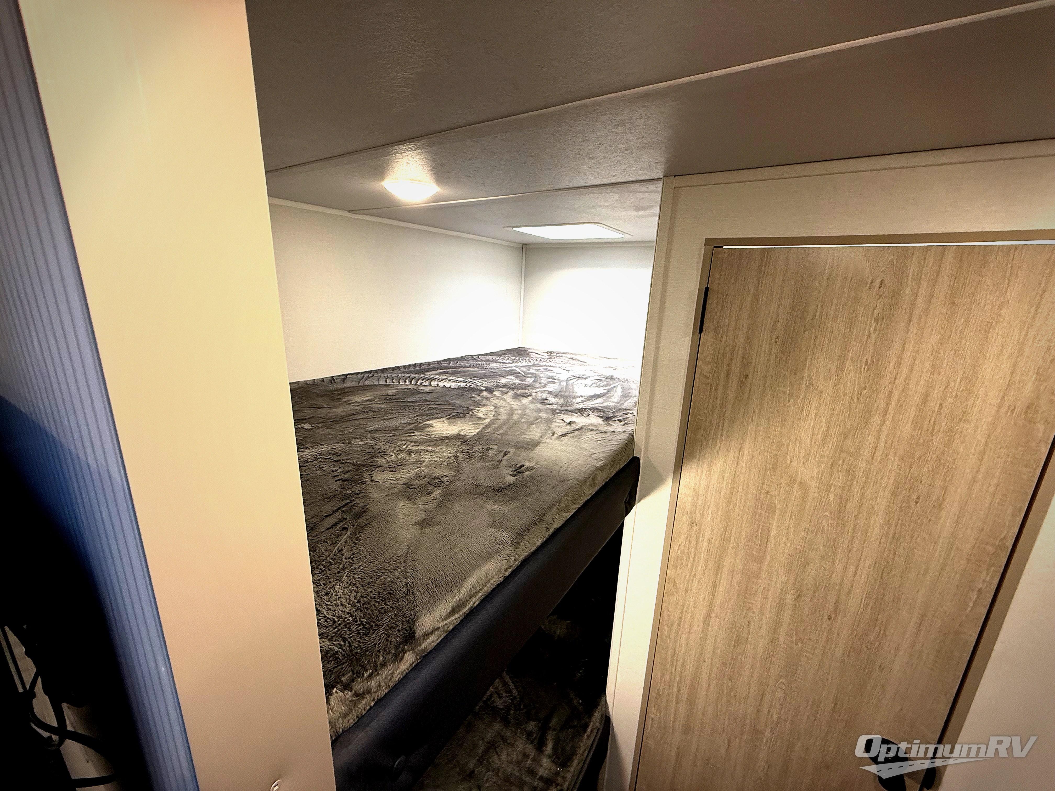 Gather around the booth dinette for meals, games, or planning your next adventure. The kitchen’s got the essentials: a refrigerator to keep snacks chilled, a two-burner cooktop for whipping up meals, and overhead cabinets for tidy storage. Plus, the jackknife sofa is perfect for lounging, movie nights, or just chillin’ with the crew. Bunk beds are perfect for the little adventurers, while the cozy front bedroom features a spacious king bed, ample wardrobes to stash gear, and handy nightstands for those midnight reads. The full bathroom is your private oasis where you can start and end each day feeling fresh and ready for more fun!