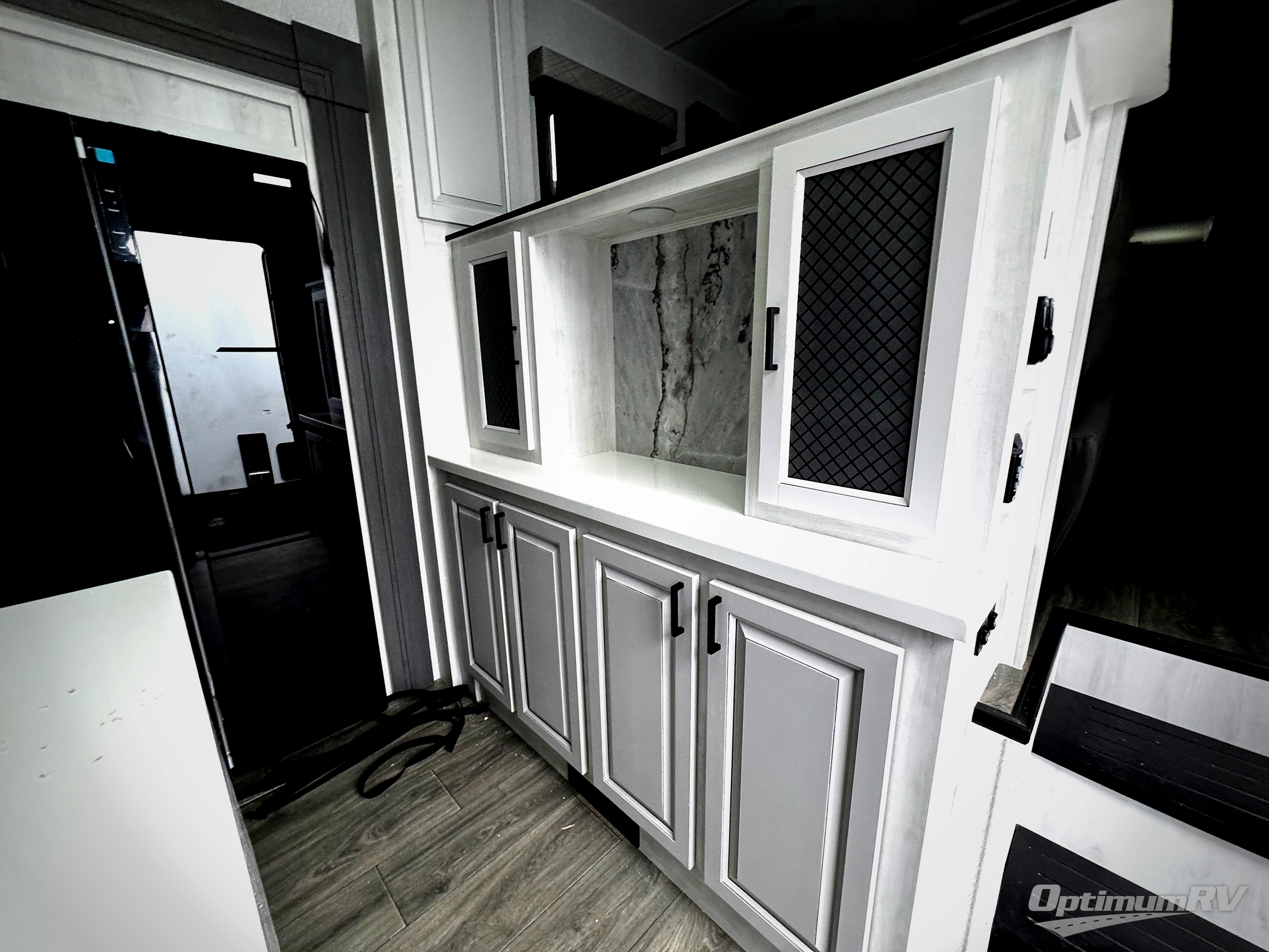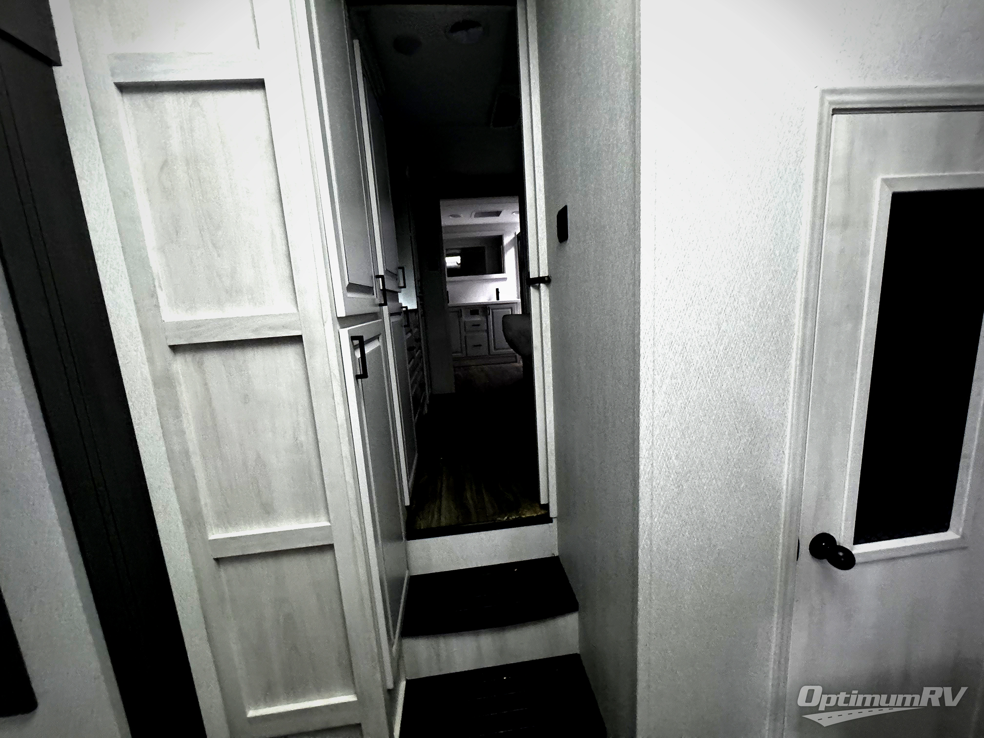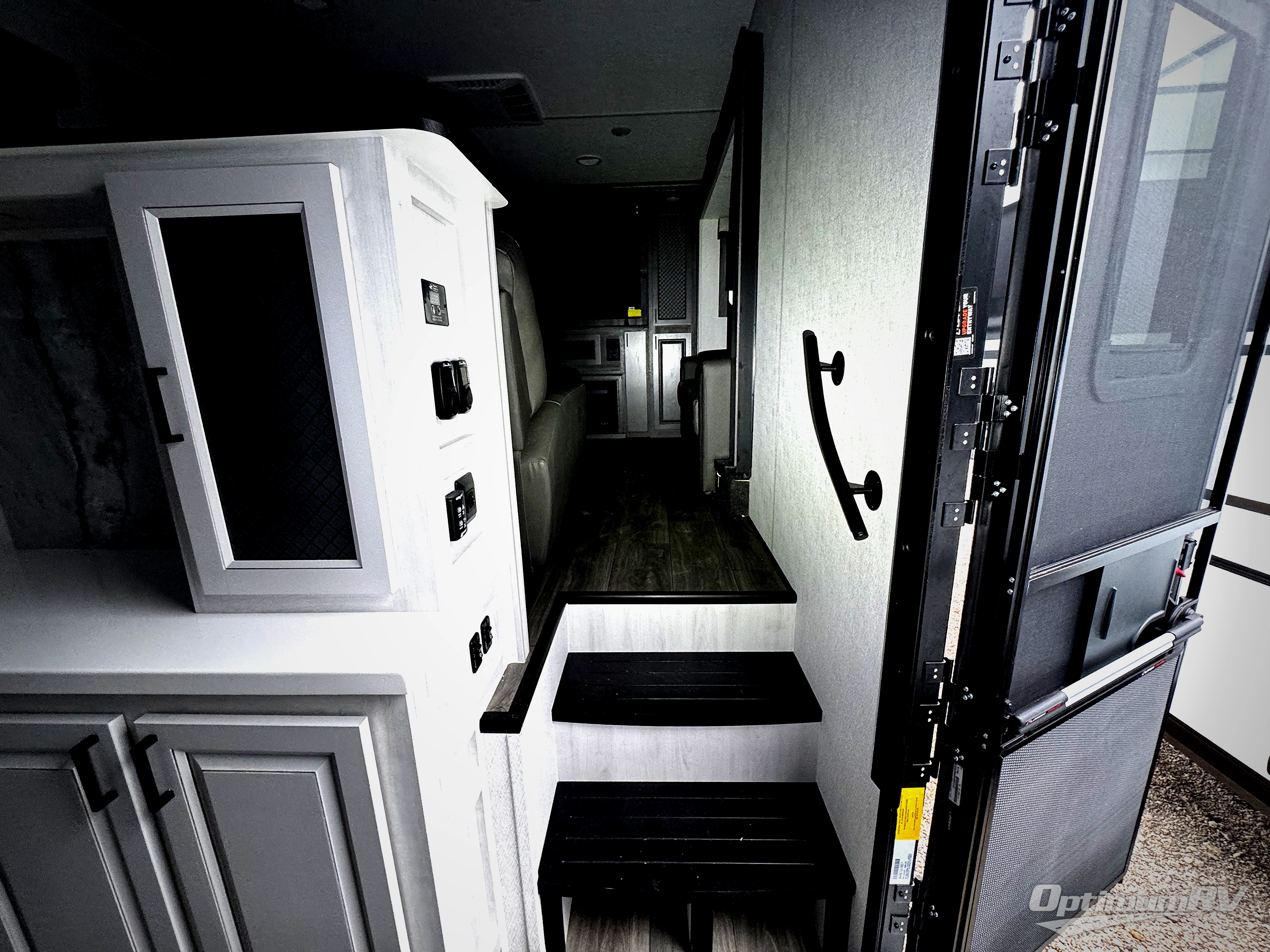 There is just too much luxury to name on the EAST TO WEST Ahara fifth wheel! These units are quite impressive, and once you see them, you'll know what we mean. The Ahara first grabs your attention with its fully painted aerodynamic fiberglass front cap, 102" wide-body chassis, and deep tint square frameless windows. For towing, you'll find a MORryde CRE 3000 suspension, LED marker lights, LED taillights with back-up lights, and rear view camera prep. Traveling in different climates is also made easy with the high-efficiency triple A/C system, 40,000 BTU high-capacity furnace, plus heated, insulated, and enclosed underbelly found within the Climate Package. Head inside to enjoy Slow Rise roller shades, a flush floor kitchen slide to help prevent trips, and solid surface countertops in the kitchen and bath to name a few luxuries!