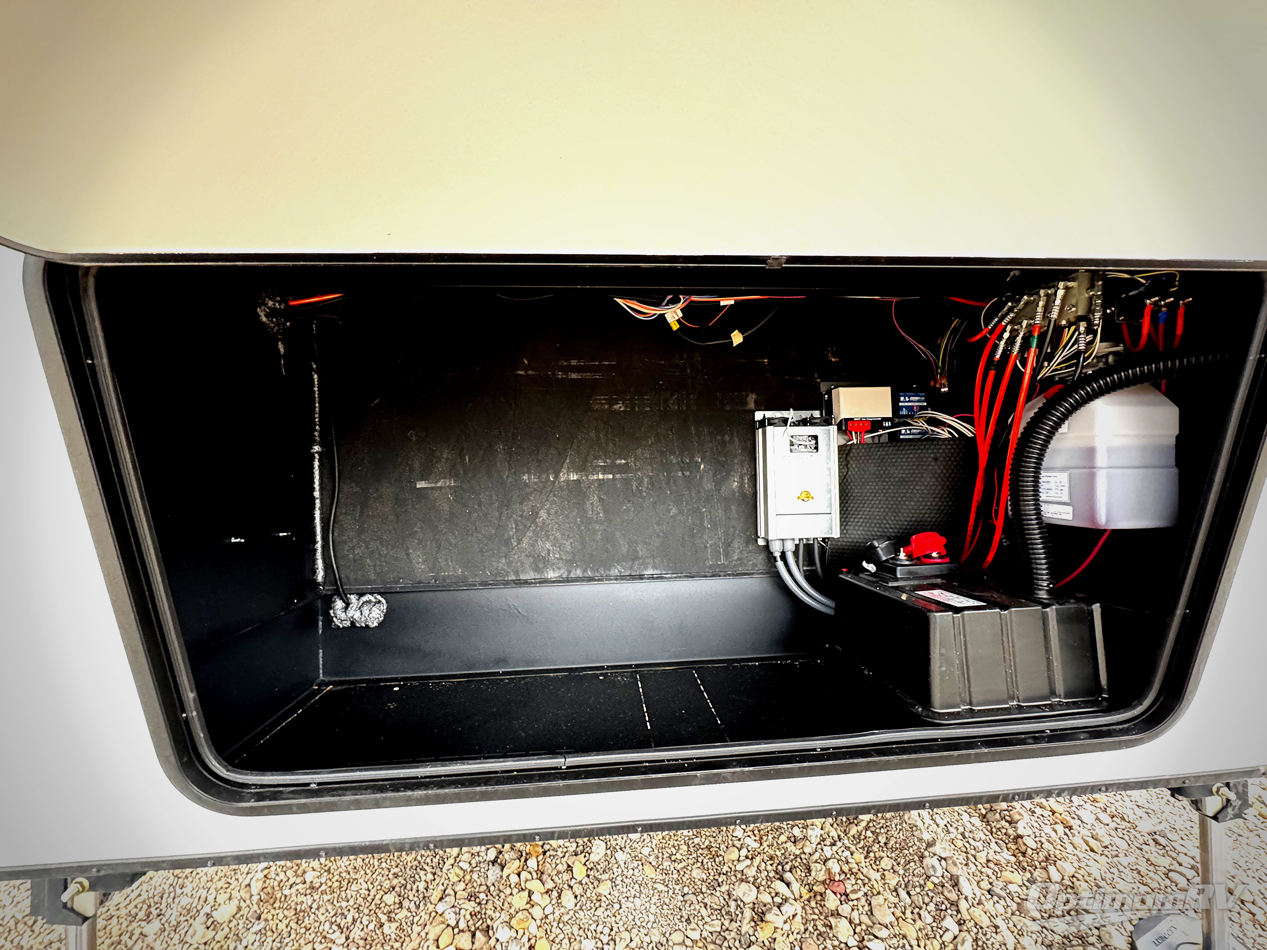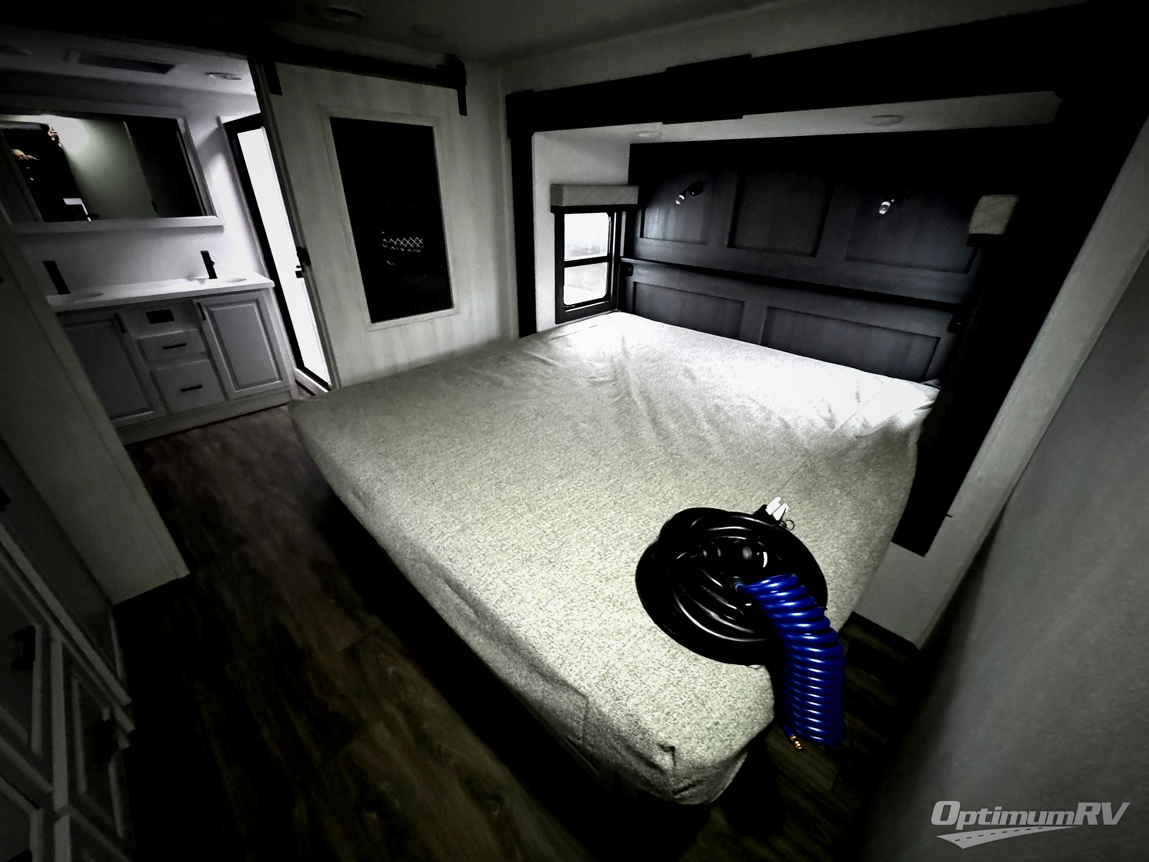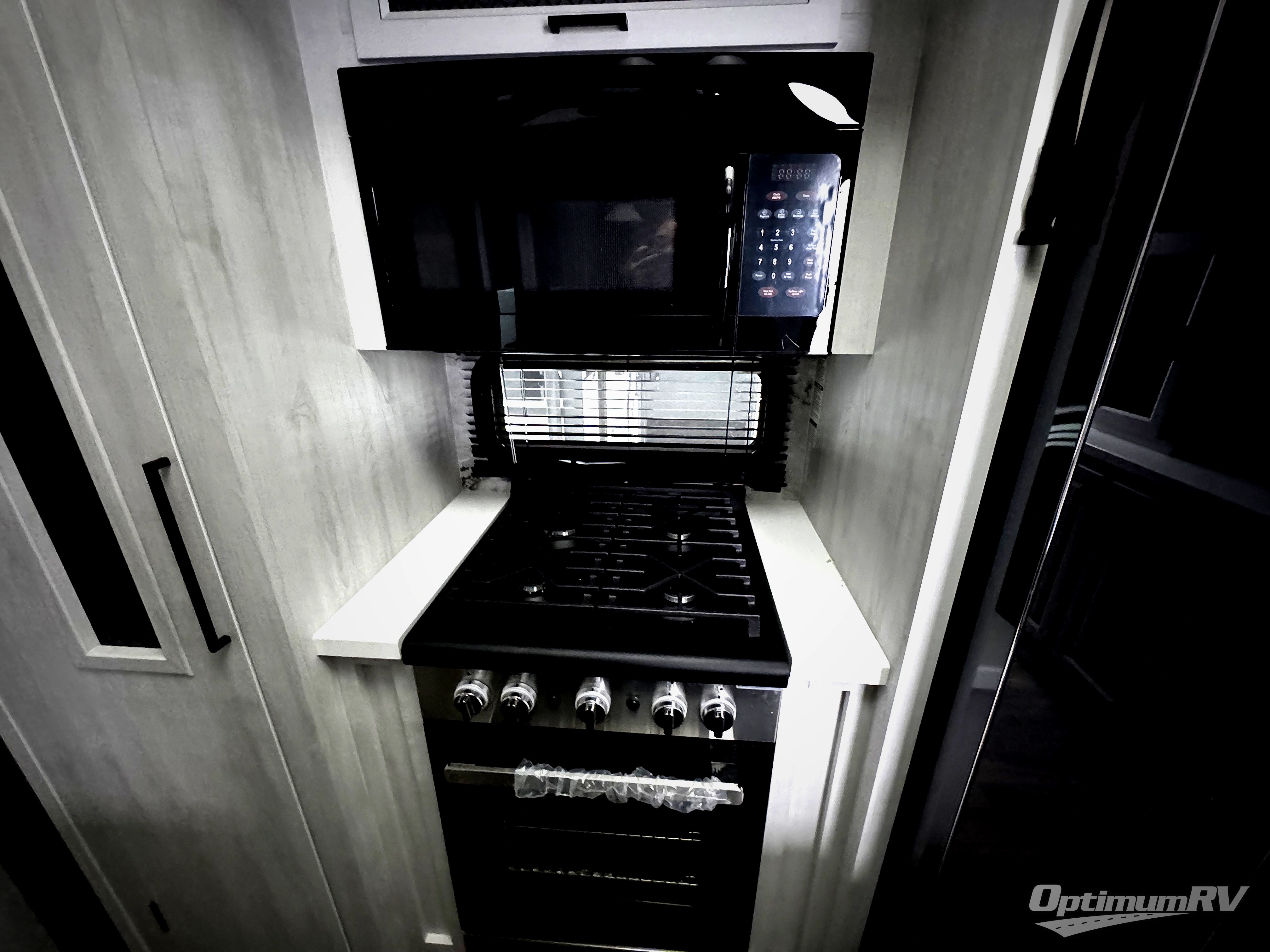 There is just too much luxury to name on the EAST TO WEST Ahara fifth wheel! These units are quite impressive, and once you see them, you'll know what we mean. The Ahara first grabs your attention with its fully painted aerodynamic fiberglass front cap, 102" wide-body chassis, and deep tint square frameless windows. For towing, you'll find a MORryde CRE 3000 suspension, LED marker lights, LED taillights with back-up lights, and rear view camera prep. Traveling in different climates is also made easy with the high-efficiency triple A/C system, 40,000 BTU high-capacity furnace, plus heated, insulated, and enclosed underbelly found within the Climate Package. Head inside to enjoy Slow Rise roller shades, a flush floor kitchen slide to help prevent trips, and solid surface countertops in the kitchen and bath to name a few luxuries!
