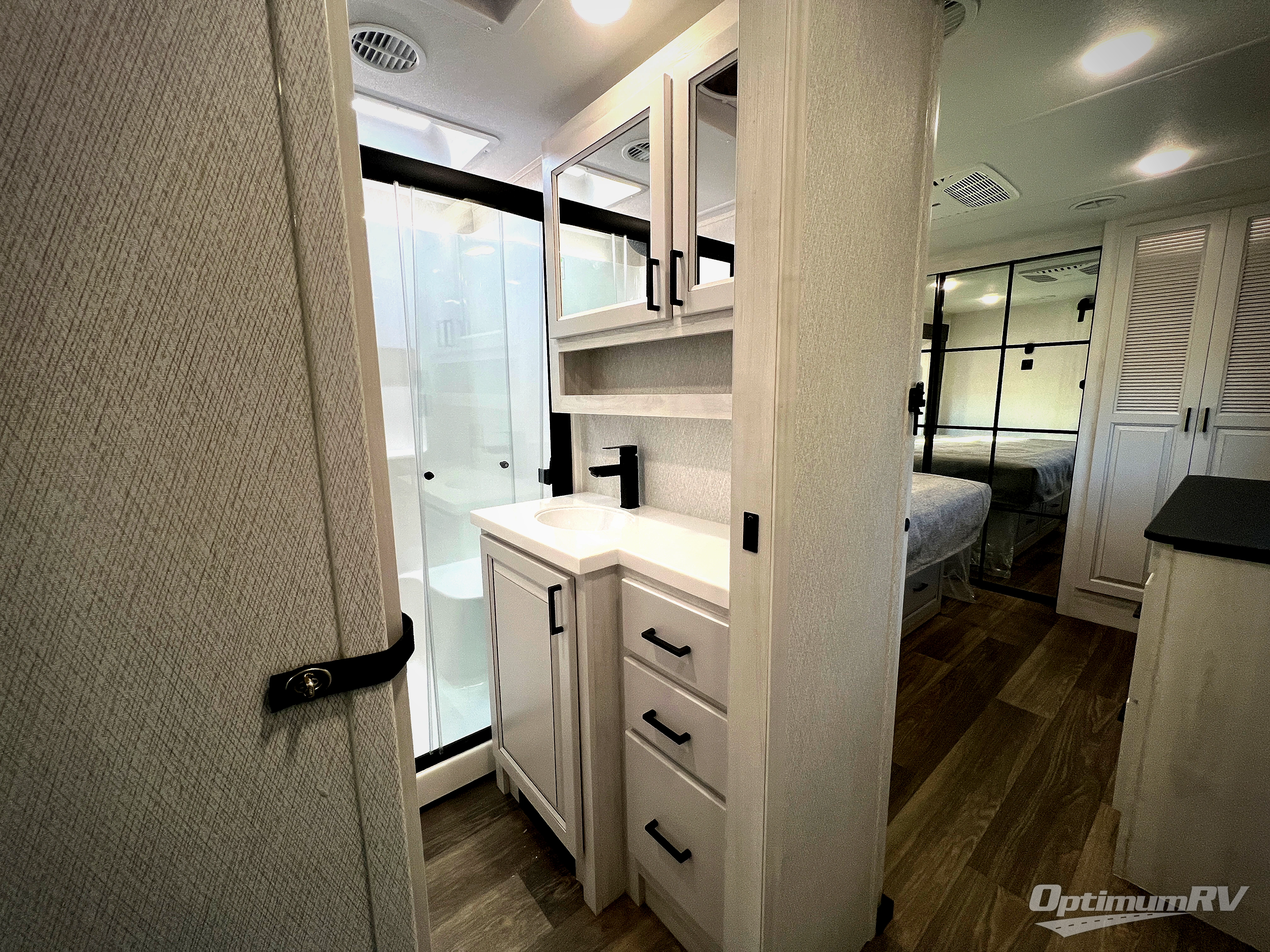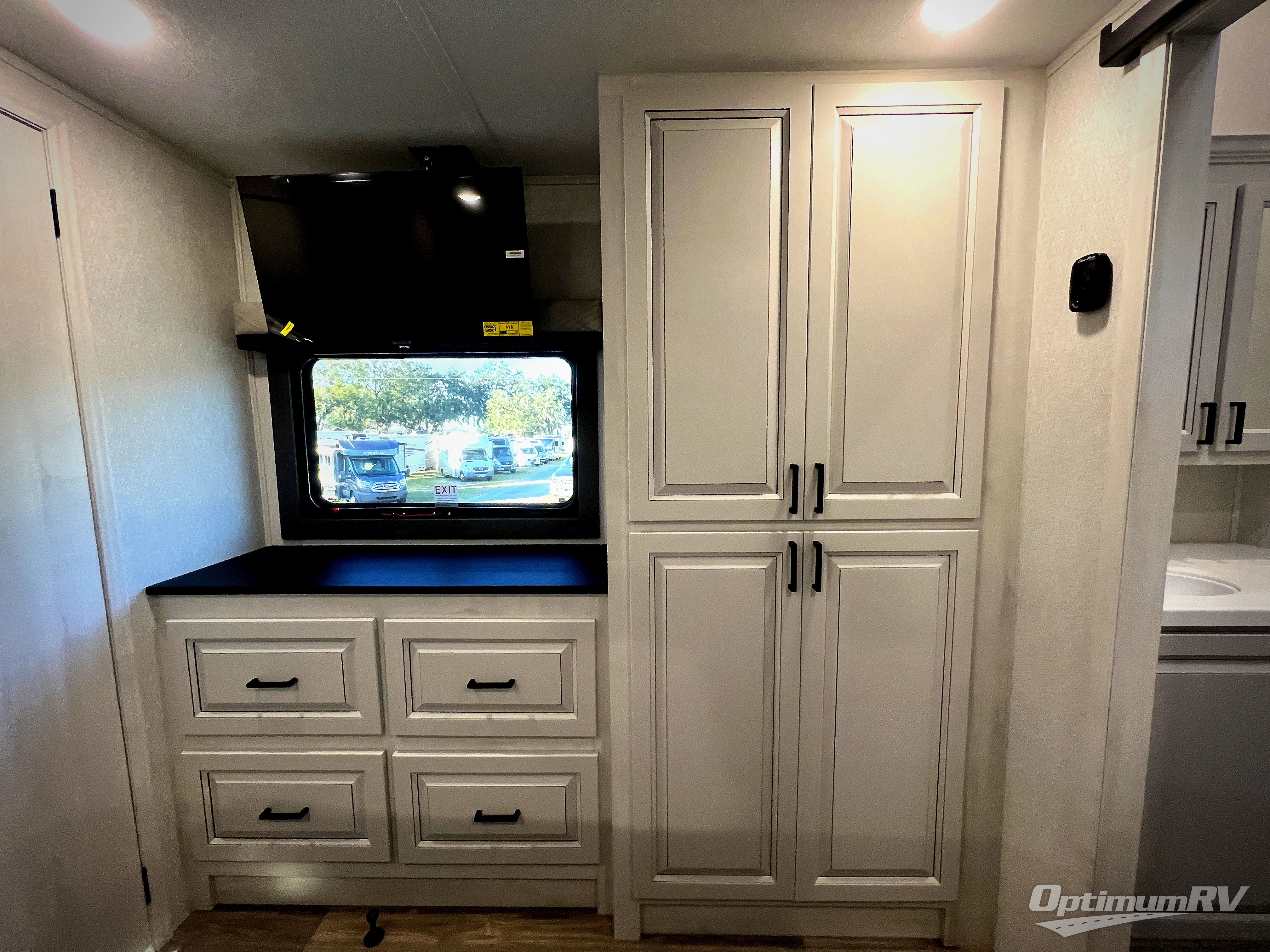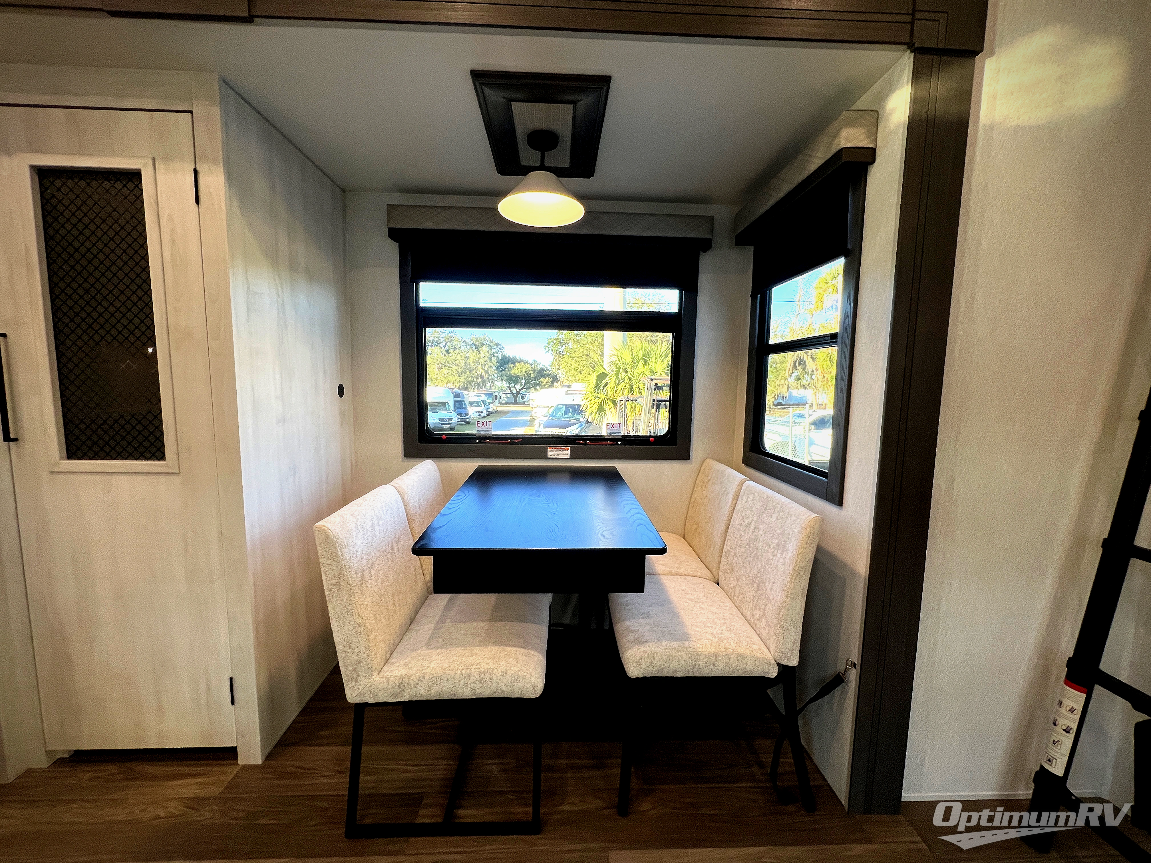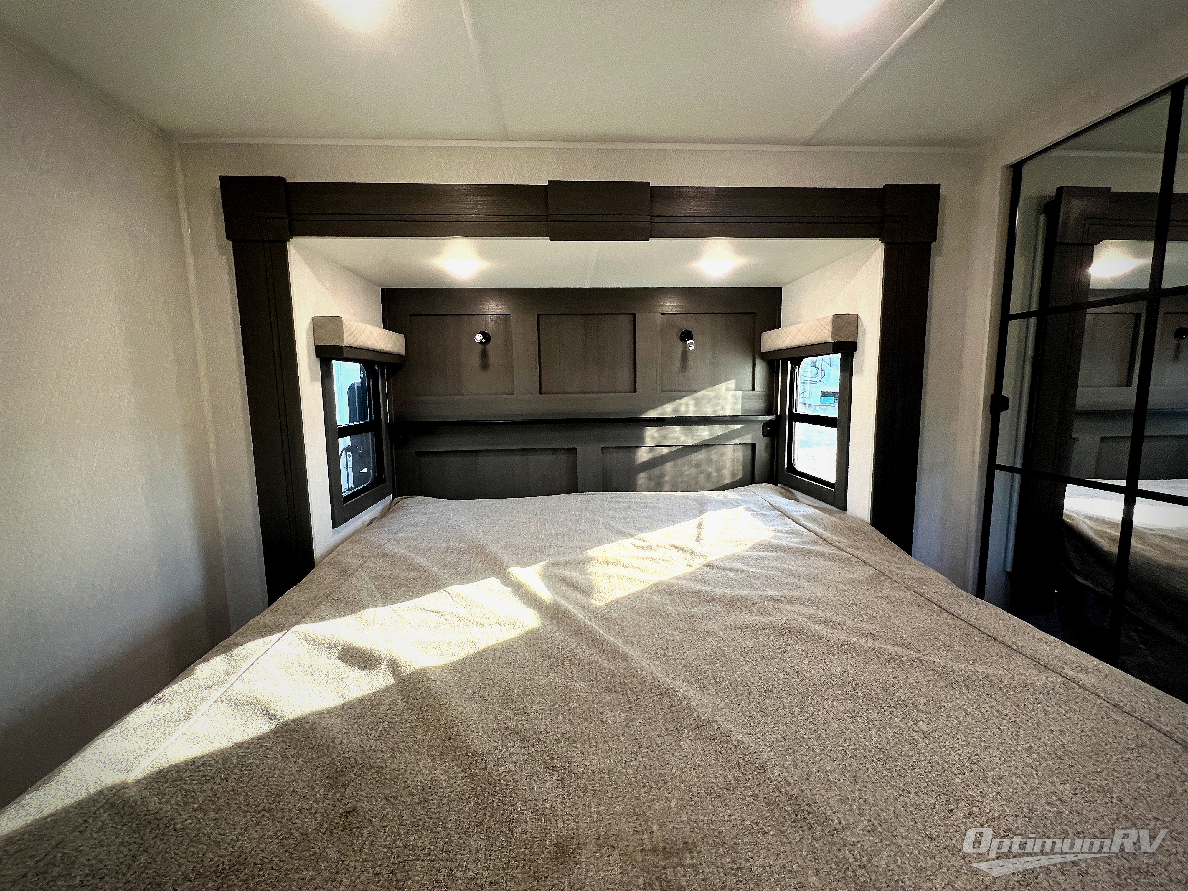 There is just too much luxury to name on the EAST TO WEST Ahara fifth wheel! These units are quite impressive, and once you see them, you'll know what we mean. The Ahara first grabs your attention with its fully painted aerodynamic fiberglass front cap, 102" wide-body chassis, and deep tint square frameless windows. For towing, you'll find a MORryde CRE 3000 suspension, LED marker lights, LED taillights with back-up lights, and rear view camera prep. Traveling in different climates is also made easy with the high-efficiency triple A/C system, 40,000 BTU high-capacity furnace, plus heated, insulated, and enclosed underbelly found within the Climate Package. Head inside to enjoy Slow Rise roller shades, a flush floor kitchen slide to help prevent trips, and solid surface countertops in the kitchen and bath to name a few luxuries!