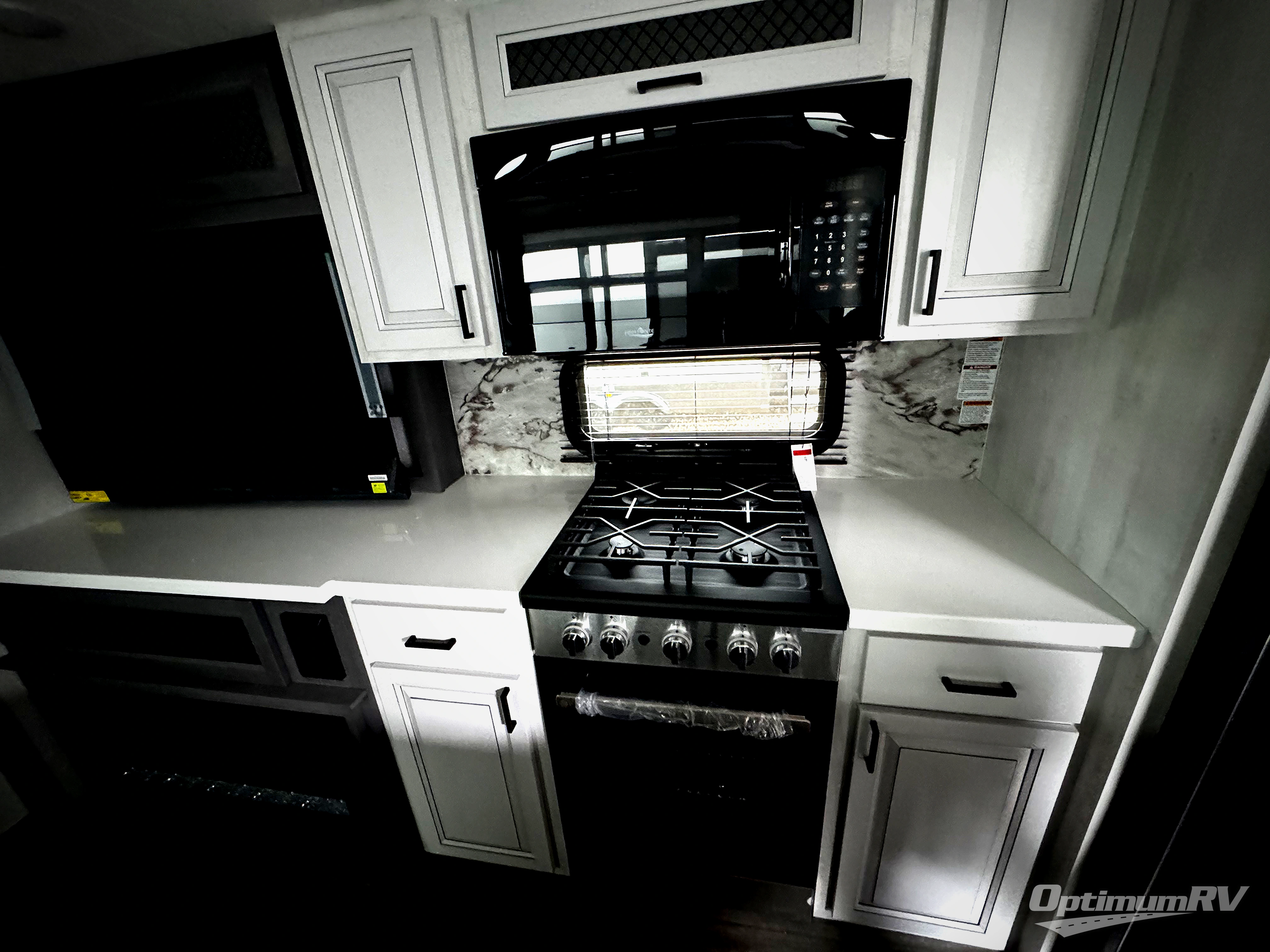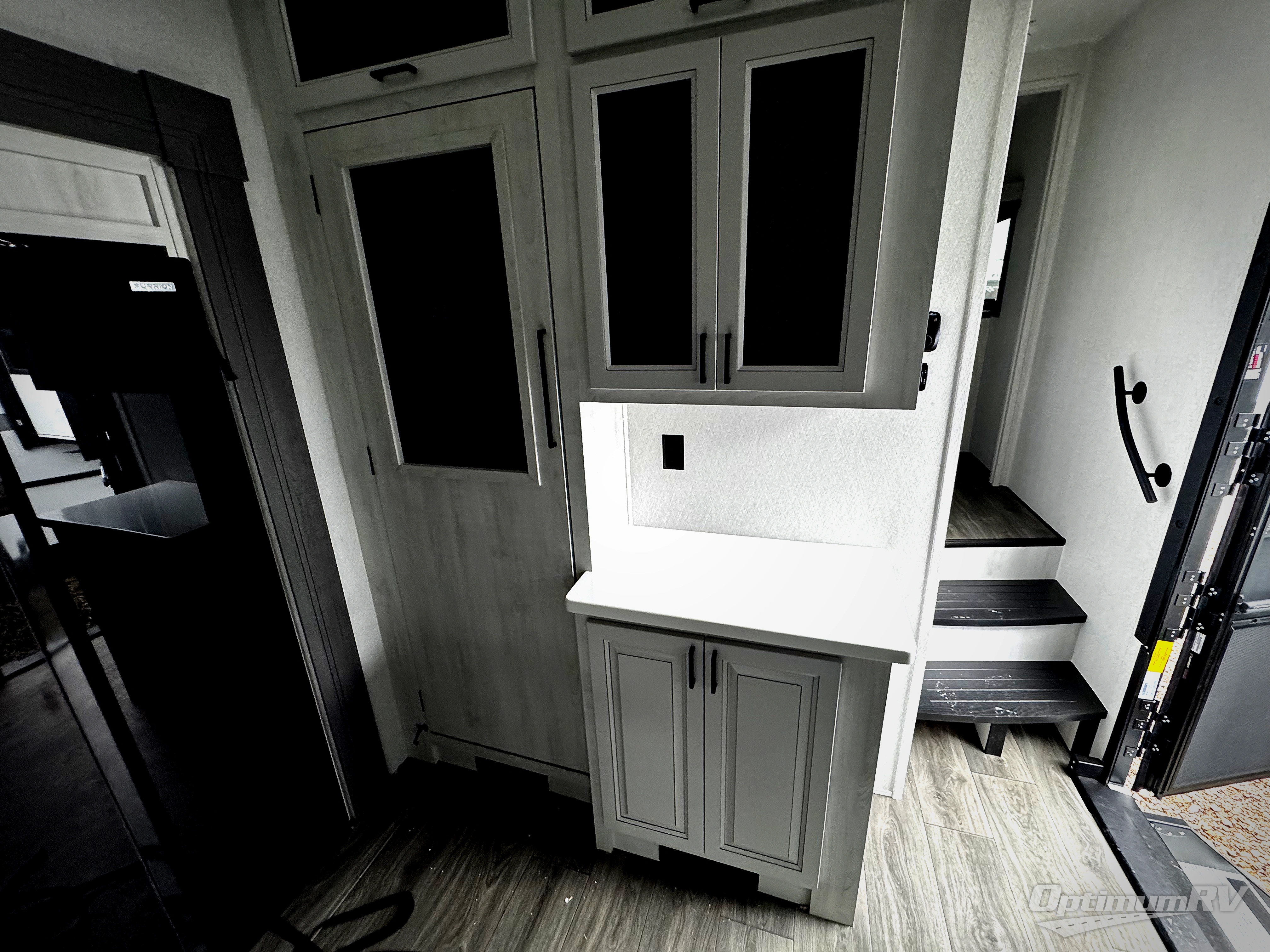 There is just too much luxury to name on the EAST TO WEST Ahara fifth wheel! These units are quite impressive, and once you see them, you'll know what we mean. The Ahara first grabs your attention with its fully painted aerodynamic fiberglass front cap, 102" wide-body chassis, and deep tint square frameless windows. For towing, you'll find a MORryde CRE 3000 suspension, LED marker lights, LED taillights with back-up lights, and rear view camera prep. Traveling in different climates is also made easy with the high-efficiency triple A/C system, 40,000 BTU high-capacity furnace, plus heated, insulated, and enclosed underbelly found within the Climate Package. Head inside to enjoy Slow Rise roller shades, a flush floor kitchen slide to help prevent trips, and solid surface countertops in the kitchen and bath to name a few luxuries!