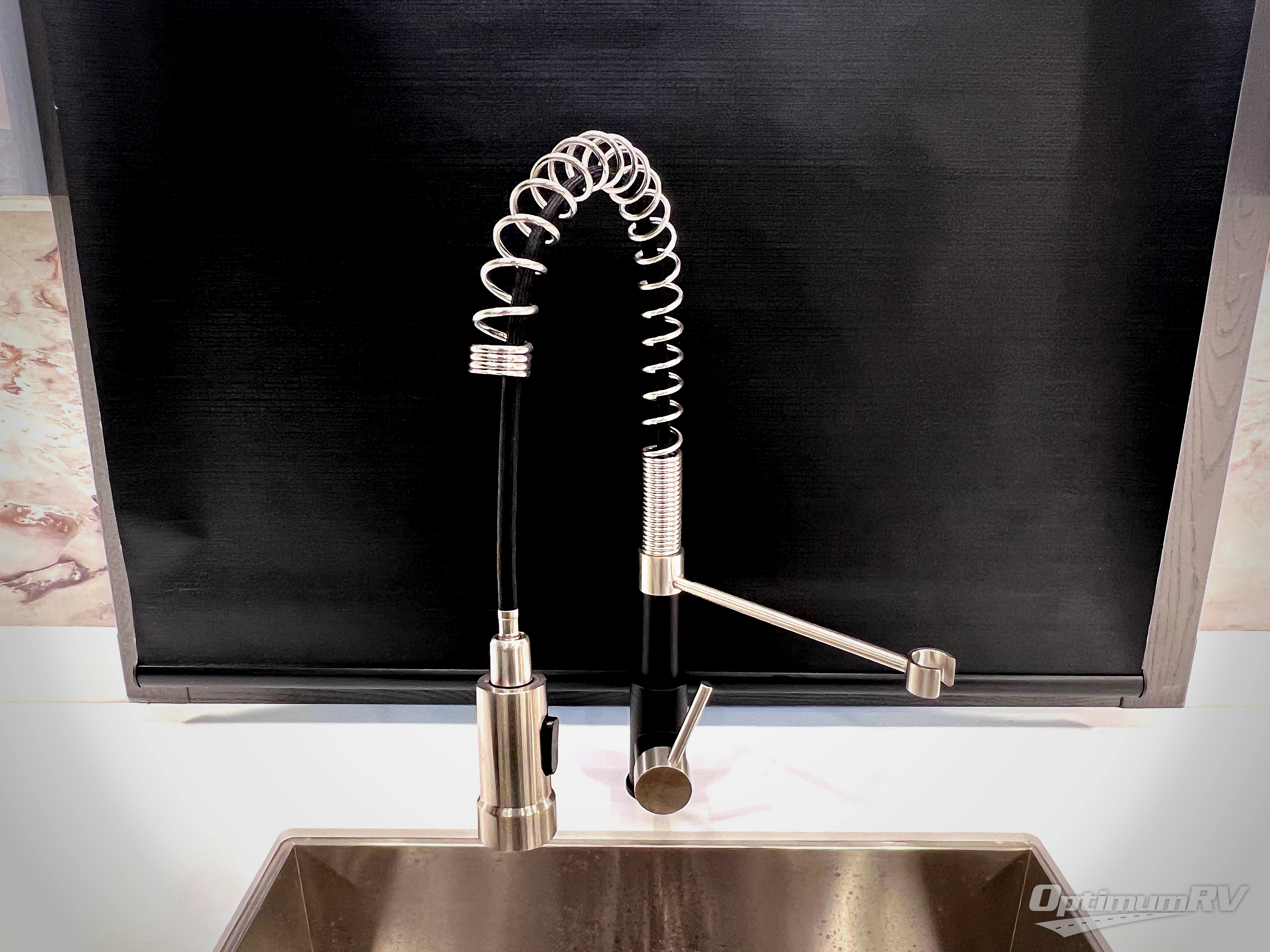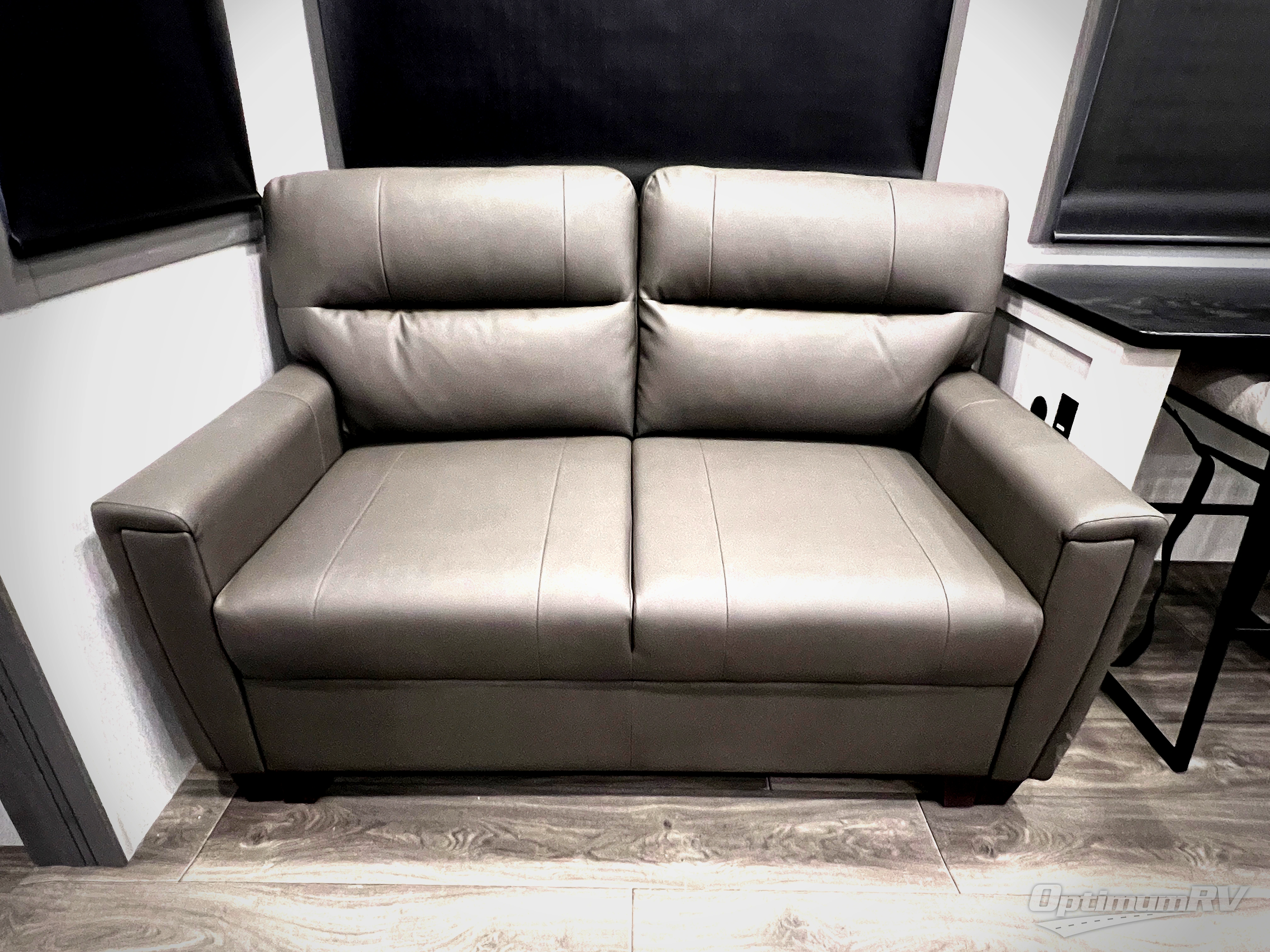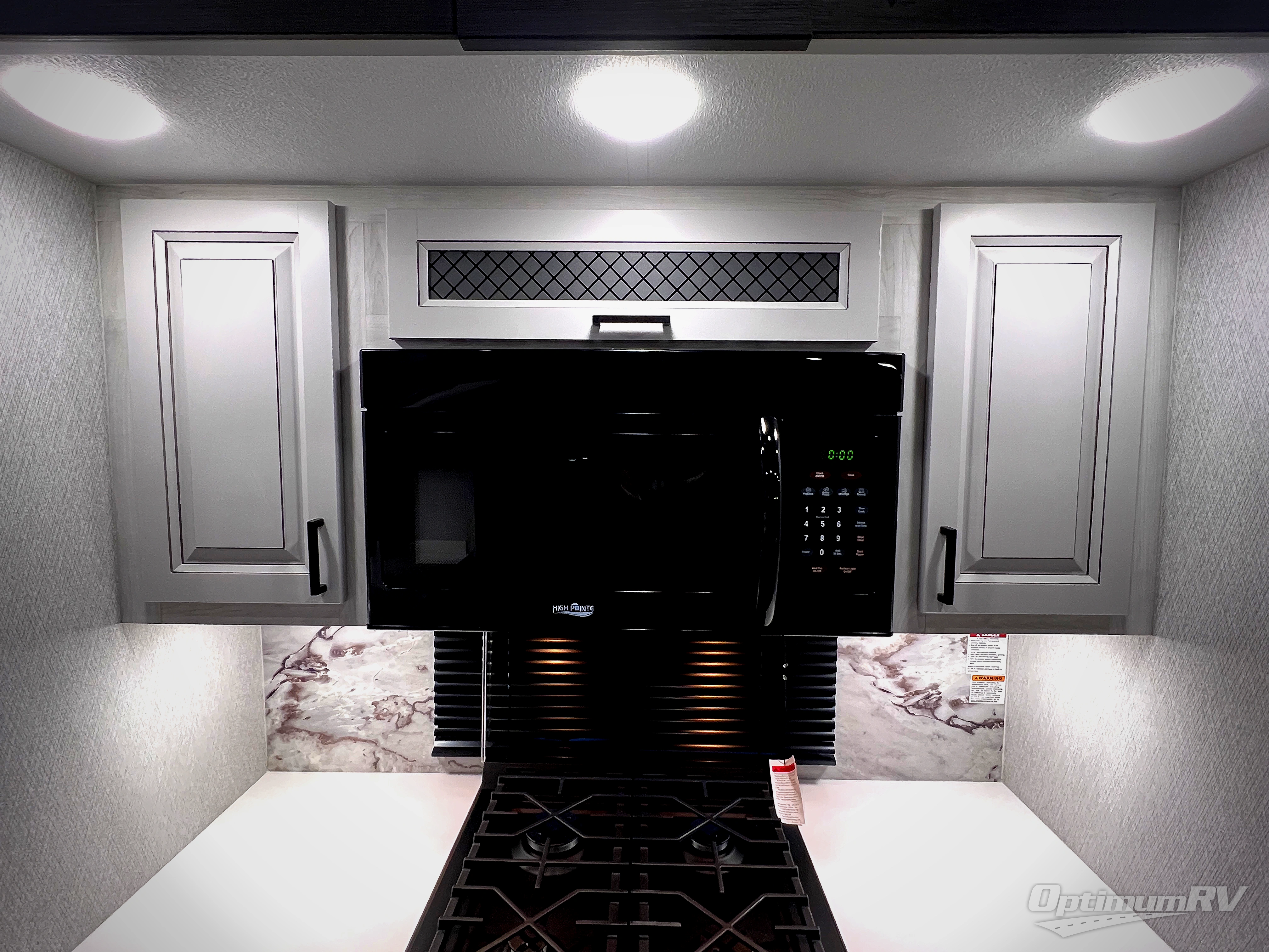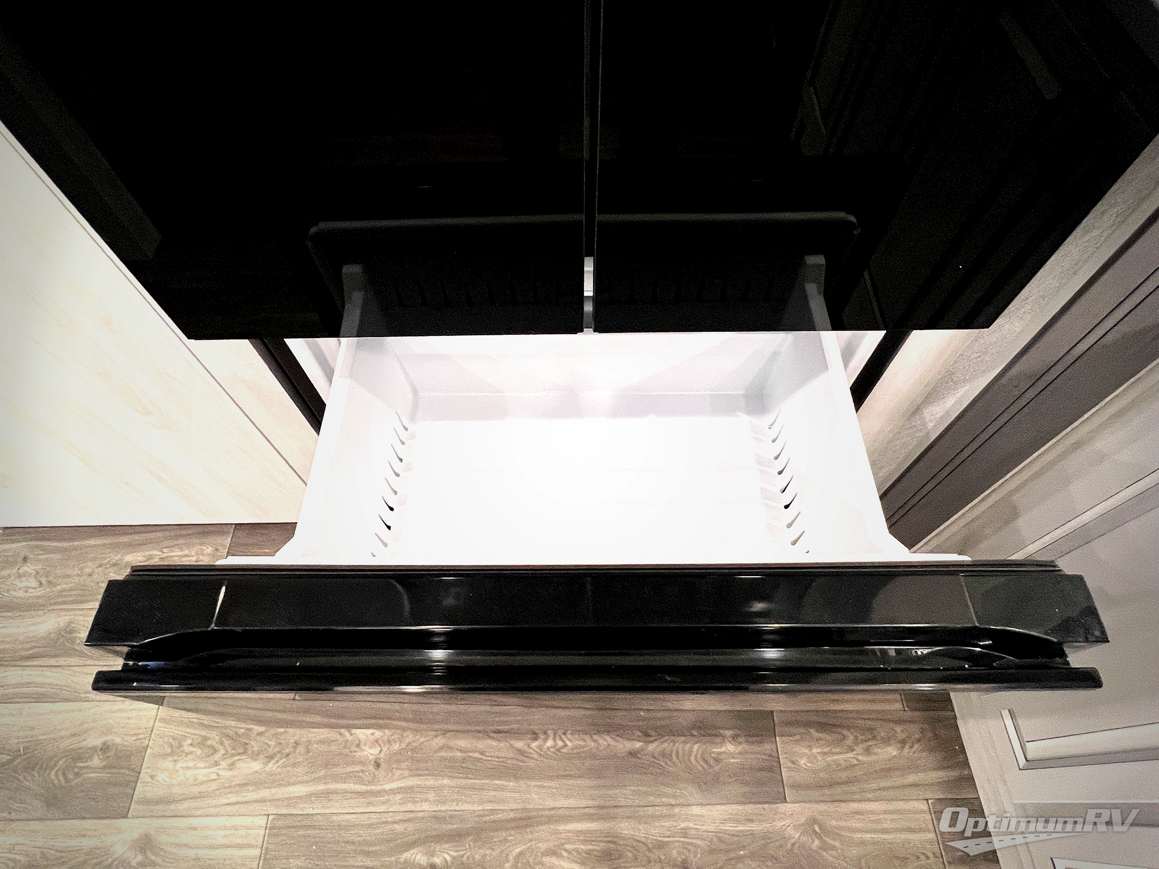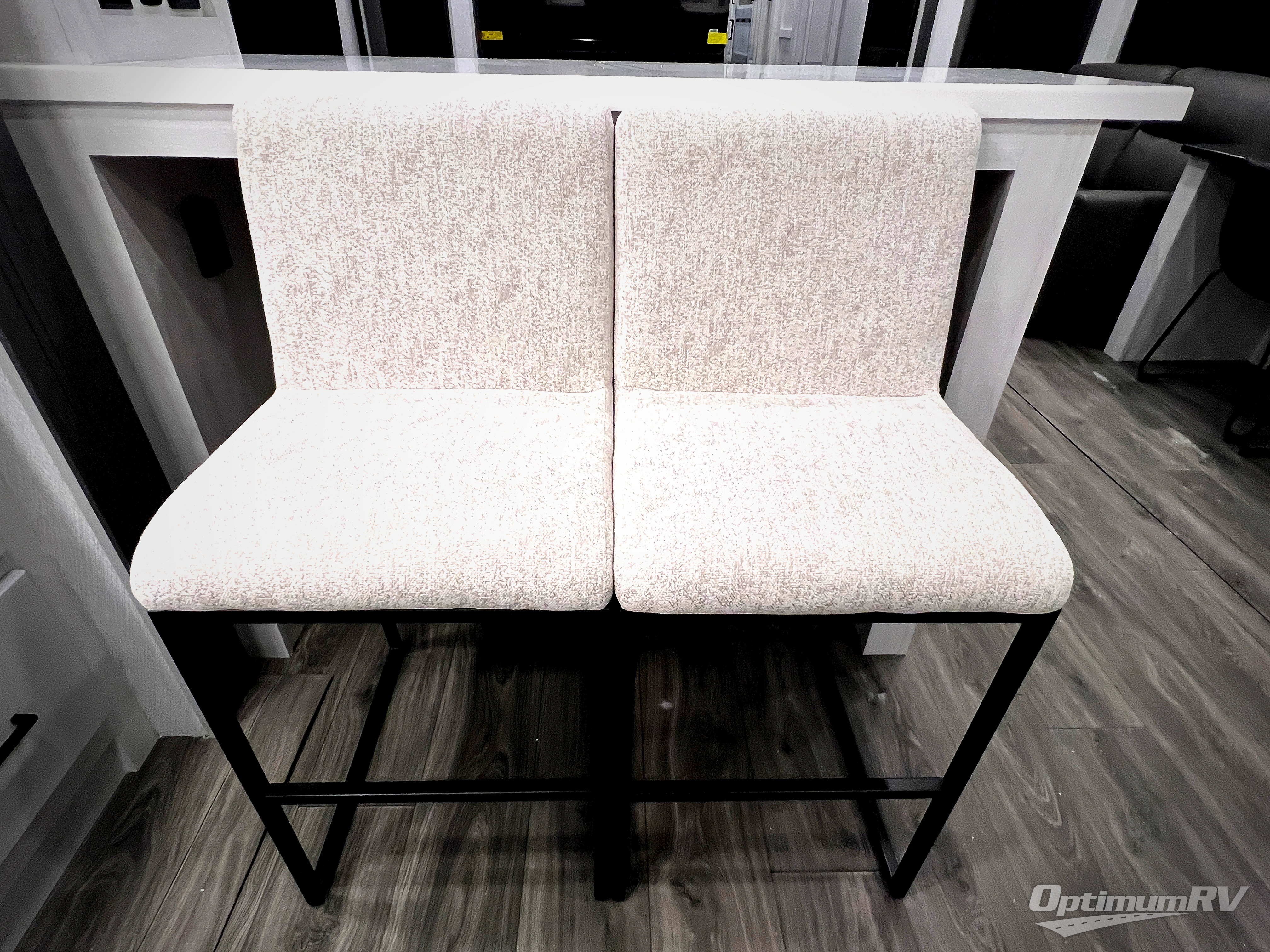 There is just too much luxury to name on the EAST TO WEST Ahara fifth wheel! These units are quite impressive, and once you see them, you'll know what we mean. The Ahara first grabs your attention with its fully painted aerodynamic fiberglass front cap, 102" wide-body chassis, and deep tint square frameless windows. For towing, you'll find a MORryde CRE 3000 suspension, LED marker lights, LED taillights with back-up lights, and rear view camera prep. Traveling in different climates is also made easy with the high-efficiency triple A/C system, 40,000 BTU high-capacity furnace, plus heated, insulated, and enclosed underbelly found within the Climate Package. Head inside to enjoy Slow Rise roller shades, a flush floor kitchen slide to help prevent trips, and solid surface countertops in the kitchen and bath to name a few luxuries!