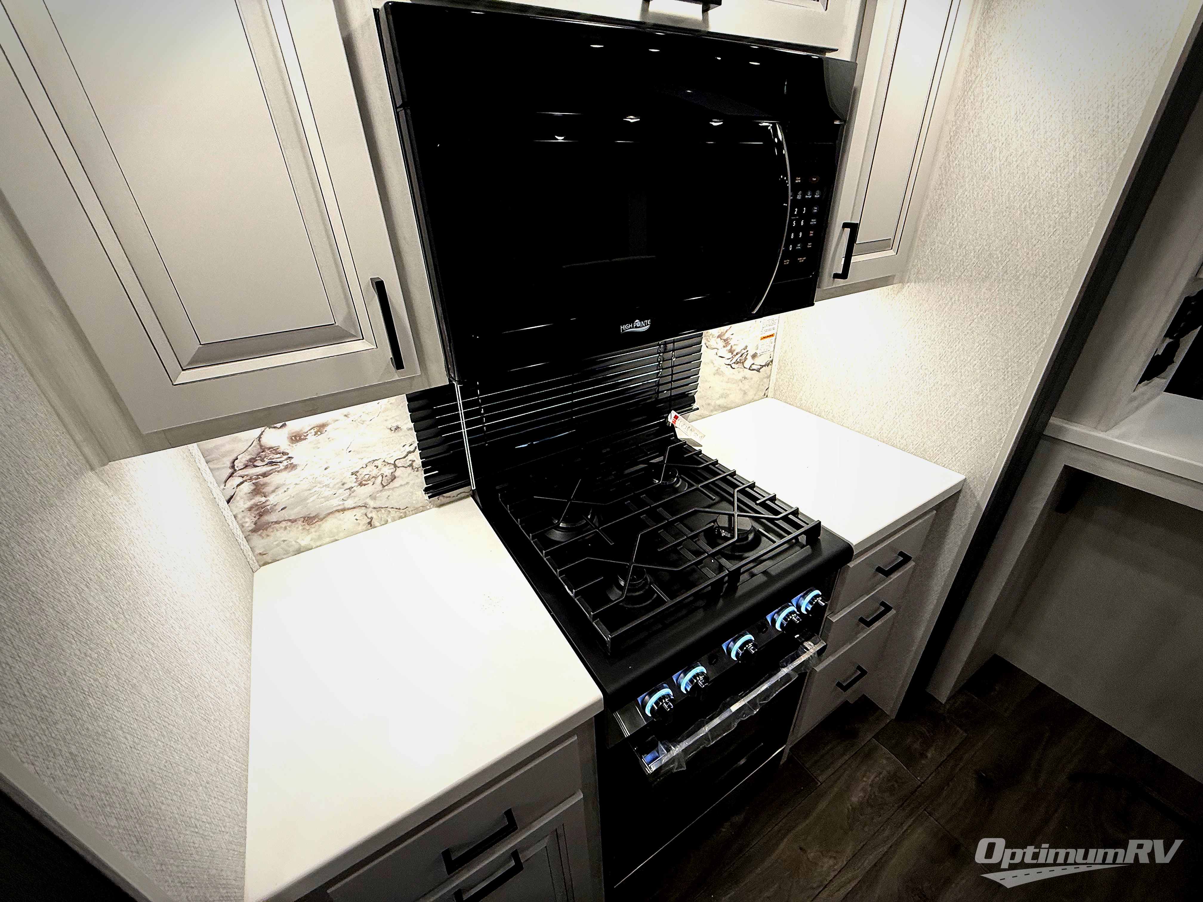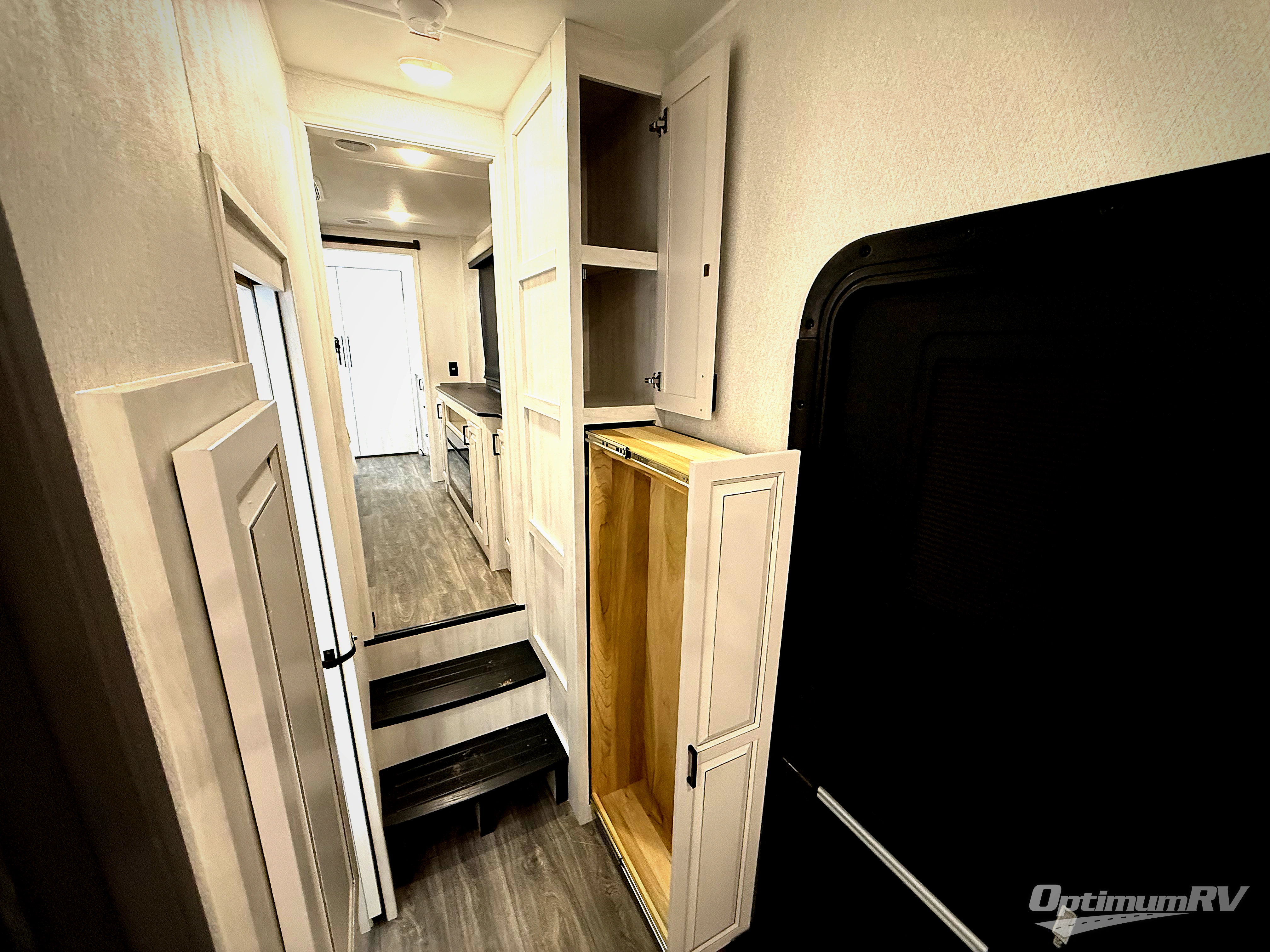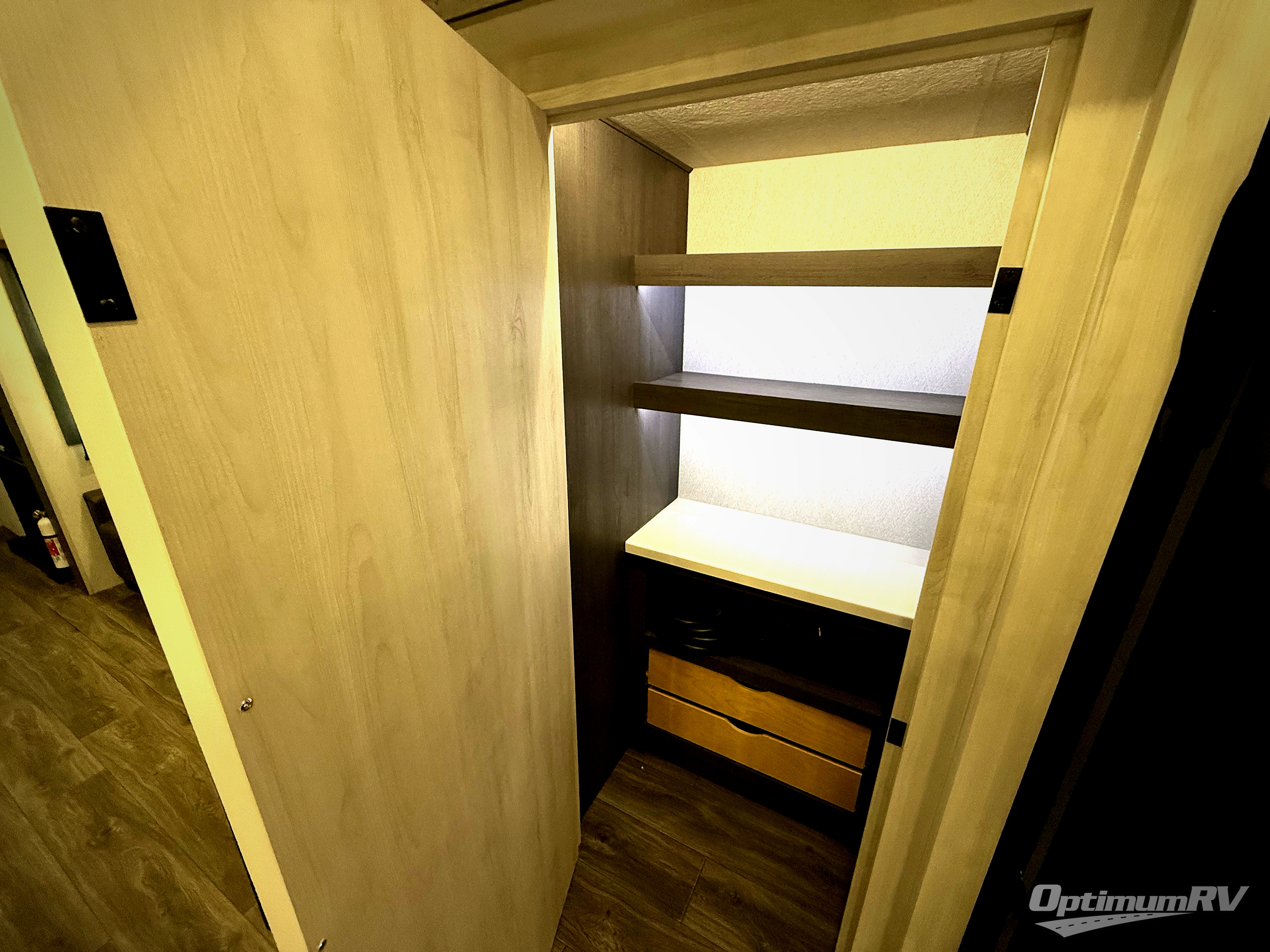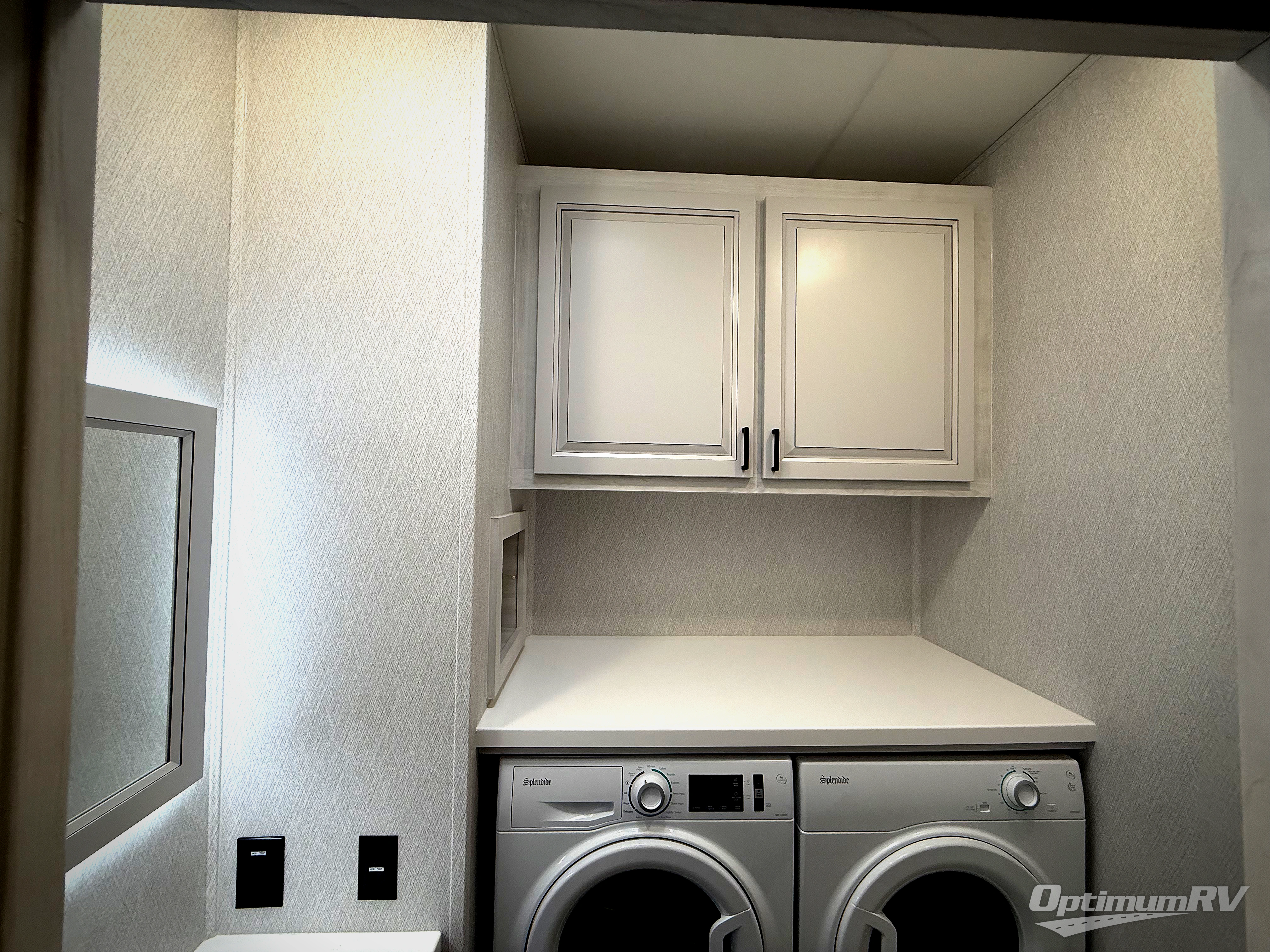 The spacious rear kitchen is equipped with a 30” microwave, 24” residential oven, overhead cabinets, breakfast bar with bar stools, walk-in pantry, and 16 cu. ft. refrigerator, perfect for cooking all your favorite dishes with the greatest convenience The living room is the heart of the home, featuring a desk with chairs, theater seating, two 60” trifold sofas, a TV with fireplace, and more. And when nature calls, you'll appreciate the convenient half bath with overhead cabinets and washer and dryer prep. The main bedroom is a serene retreat, featuring a king bed, drawers under the bed, a bedroom fireplace, and more. This is the perfect place to relax and recharge after a long day of adventure, and with a front full bathroom featuring a 30” x 40” shower, dual sink vanity, walk-in closet, dresser/drawers, you'll have everything you need to stay clean and comfortable on the go. Outside, you'll find not one, but two awnings to providing plenty of shade and protection from the elements.