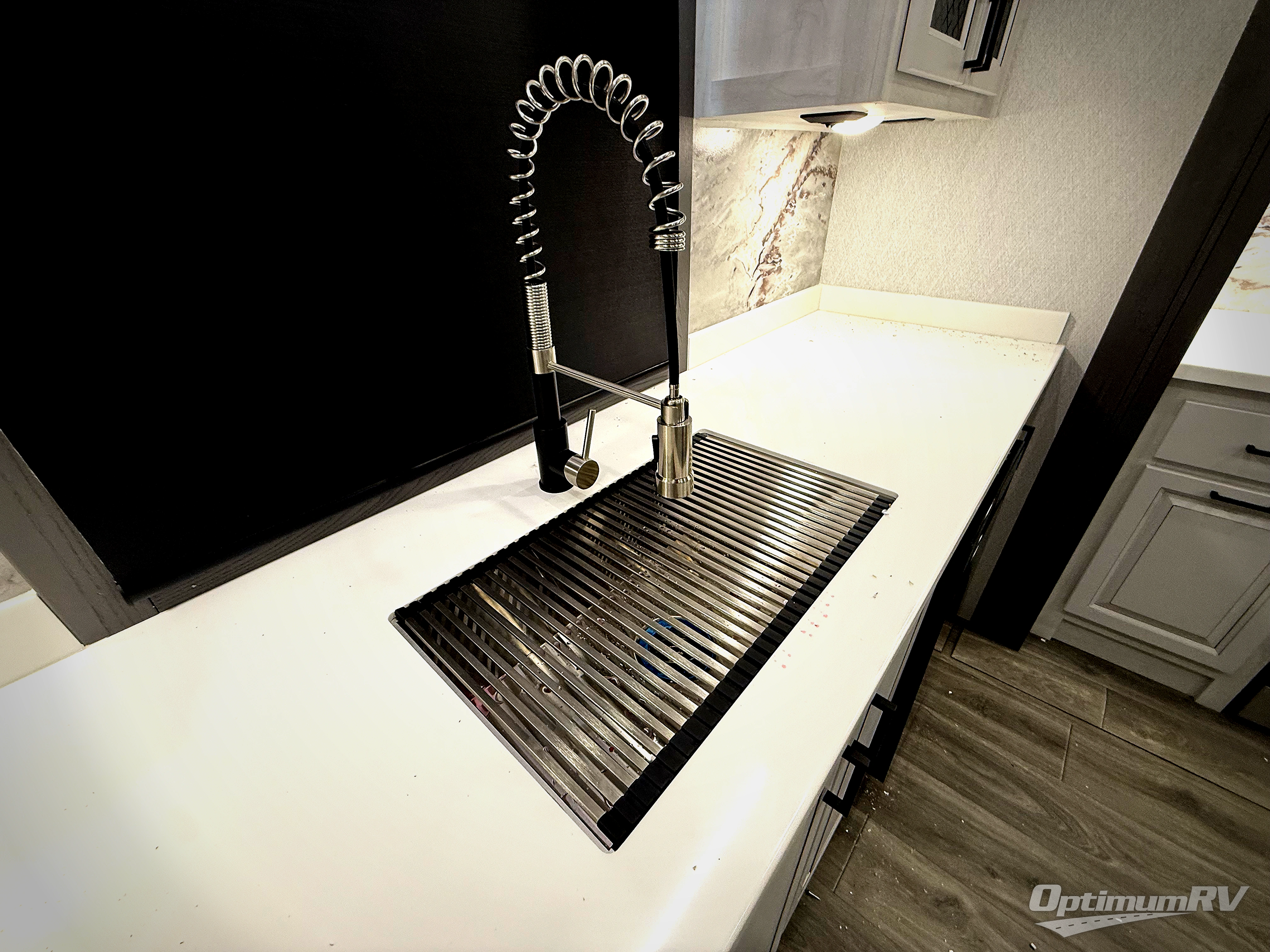 There is just too much luxury to name on the EAST TO WEST Ahara fifth wheel! These units are quite impressive, and once you see them, you'll know what we mean. The Ahara first grabs your attention with its fully painted aerodynamic fiberglass front cap, 102" wide-body chassis, and deep tint square frameless windows. For towing, you'll find a MORryde CRE 3000 suspension, LED marker lights, LED taillights with back-up lights, and rear view camera prep. Traveling in different climates is also made easy with the high-efficiency triple A/C system, 40,000 BTU high-capacity furnace, plus heated, insulated, and enclosed underbelly found within the Climate Package. Head inside to enjoy Slow Rise roller shades, a flush floor kitchen slide to help prevent trips, and solid surface countertops in the kitchen and bath to name a few luxuries!