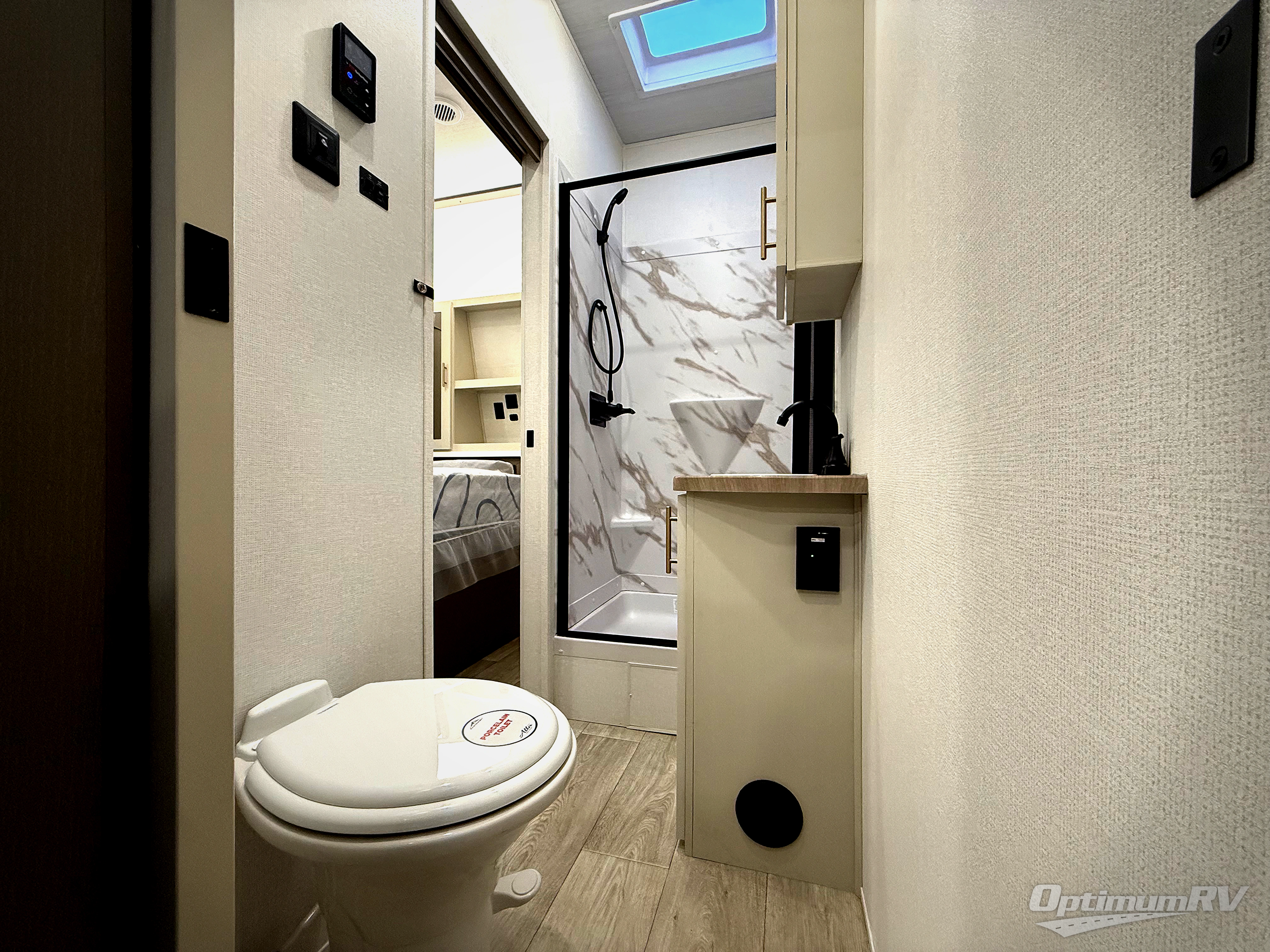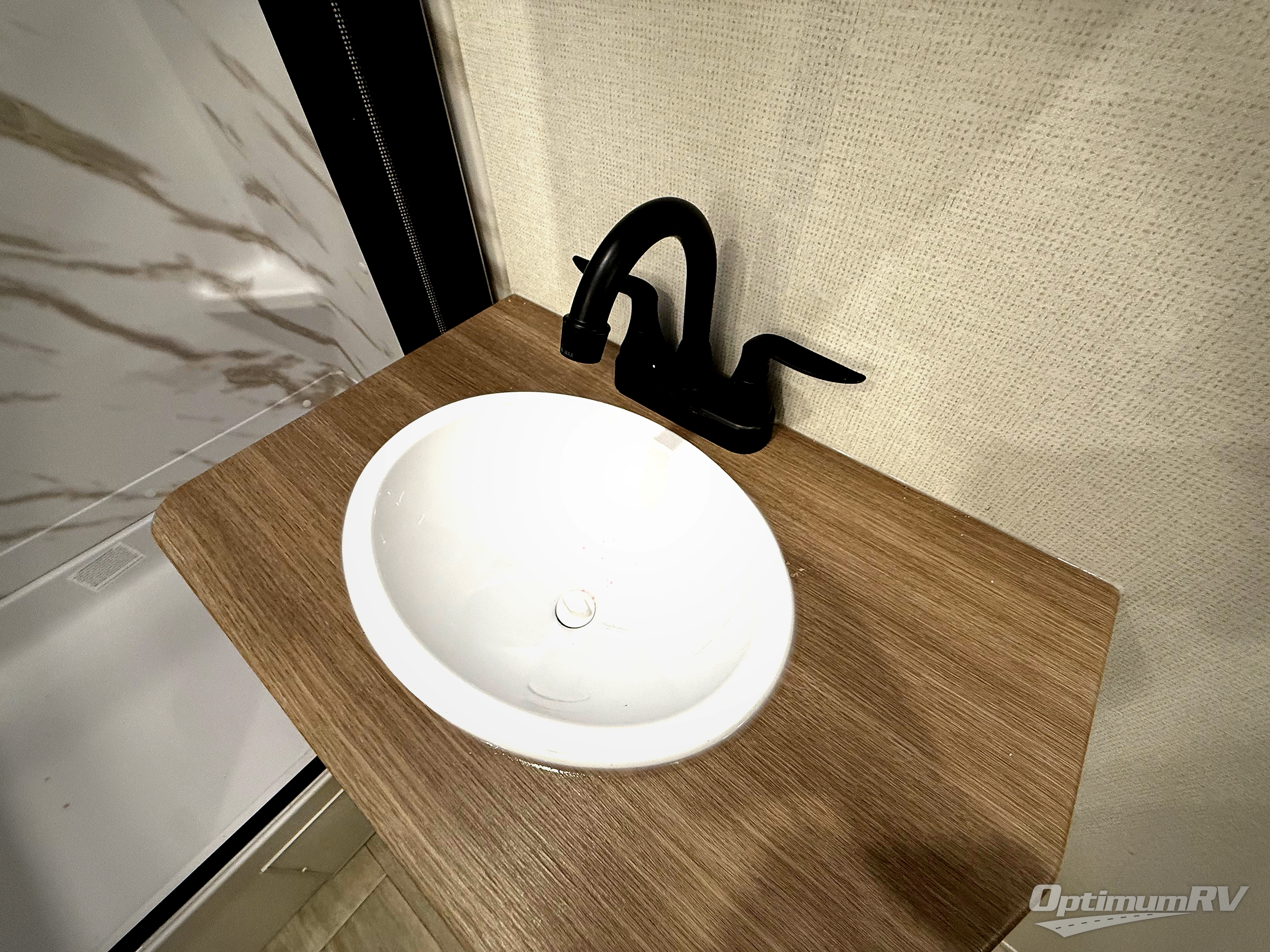 Each Alta travel trailer or toy hauler by EAST TO WEST is constructed with a 5" vacuum bonded roof, an enclosed and heated underbelly, and diamond plate front rock guard for added protection. Outside, you'll find marine-grade exterior speakers, a universal docking station, and back-up camera prep that can be added to make maneuvering in and out of campgrounds easier than ever. Inside, there are 4k interior LED lights, solid pressed membrane countertops, black roller shades, and many more interior comforts you are sure to love.