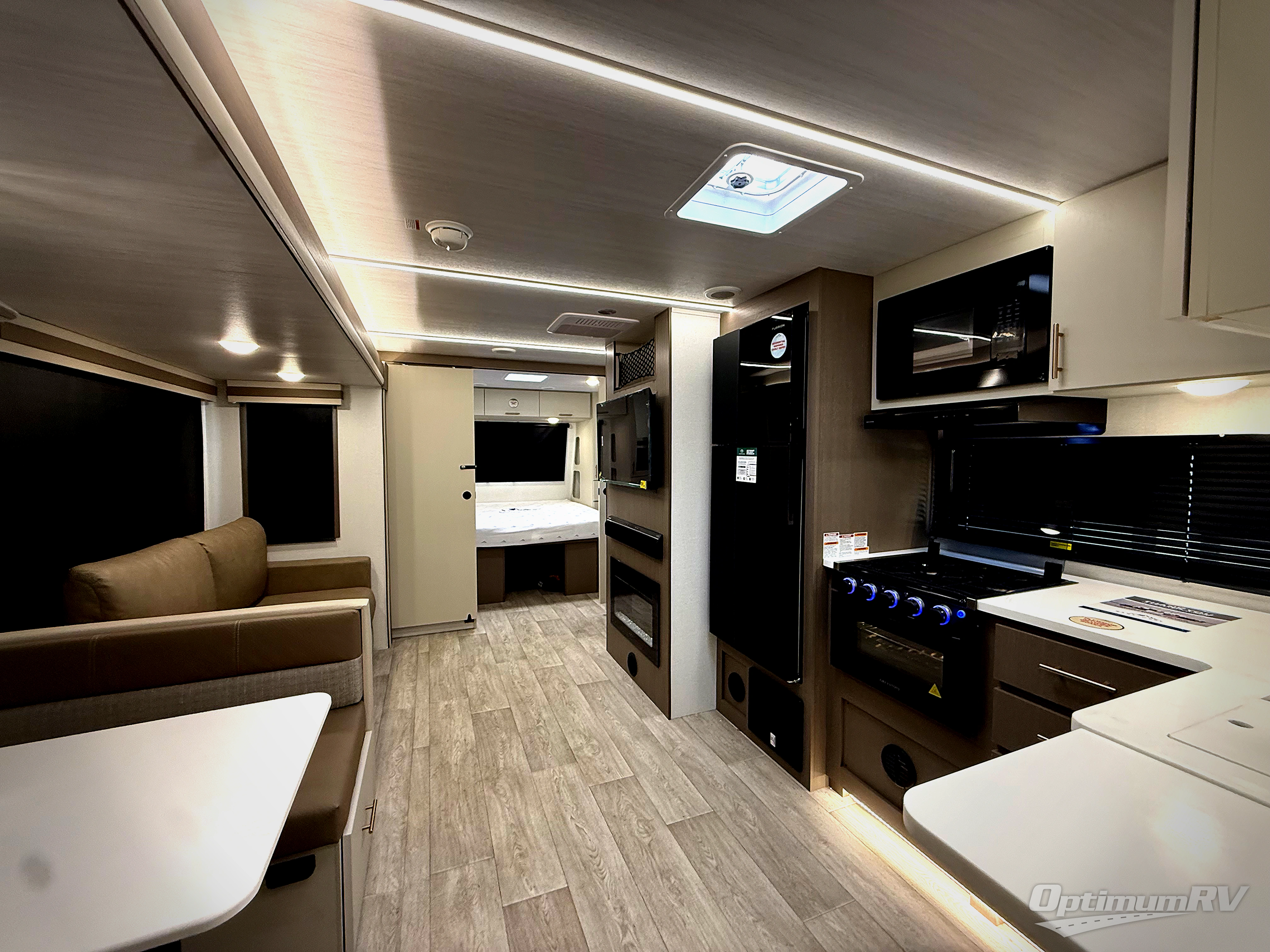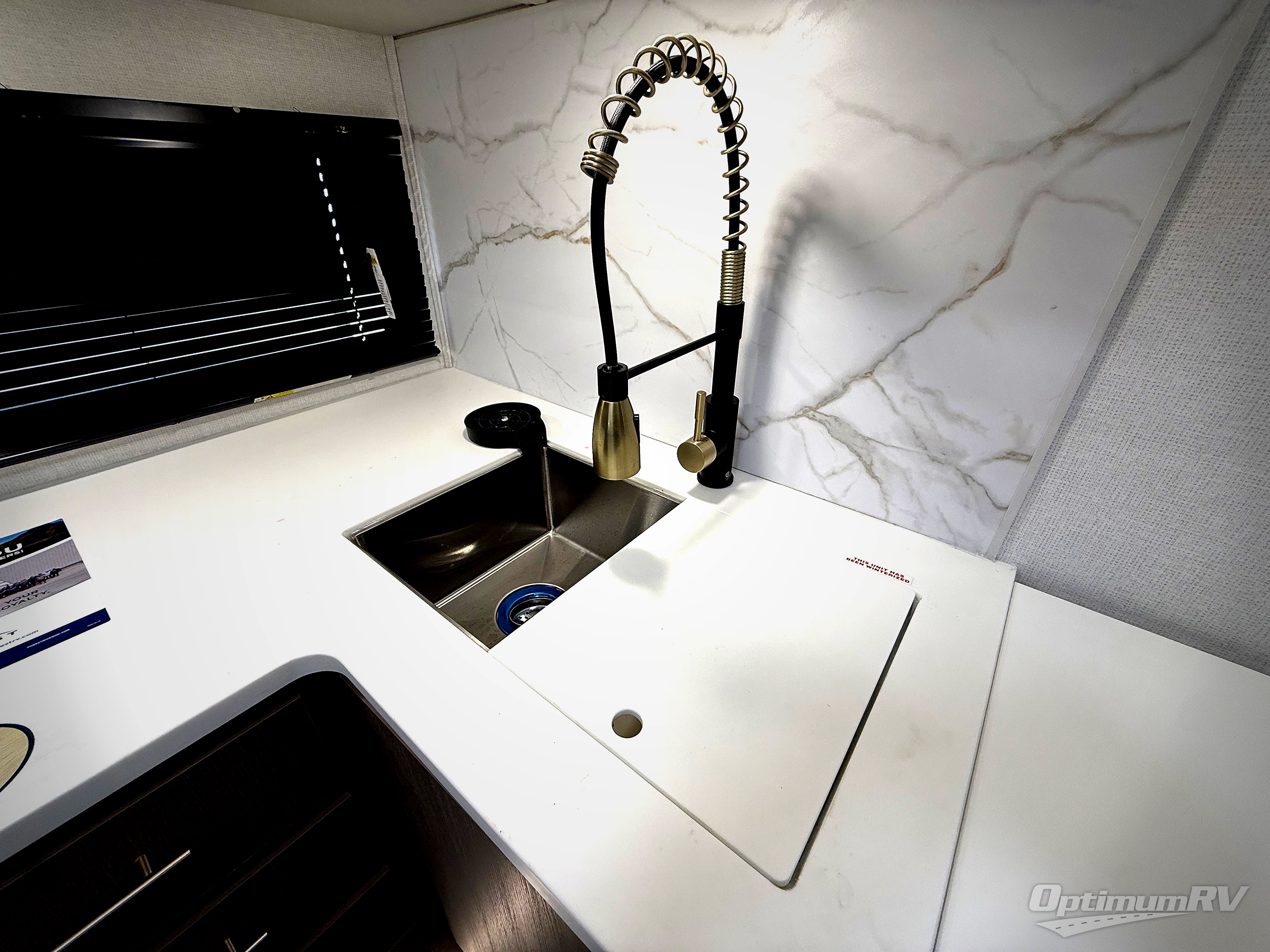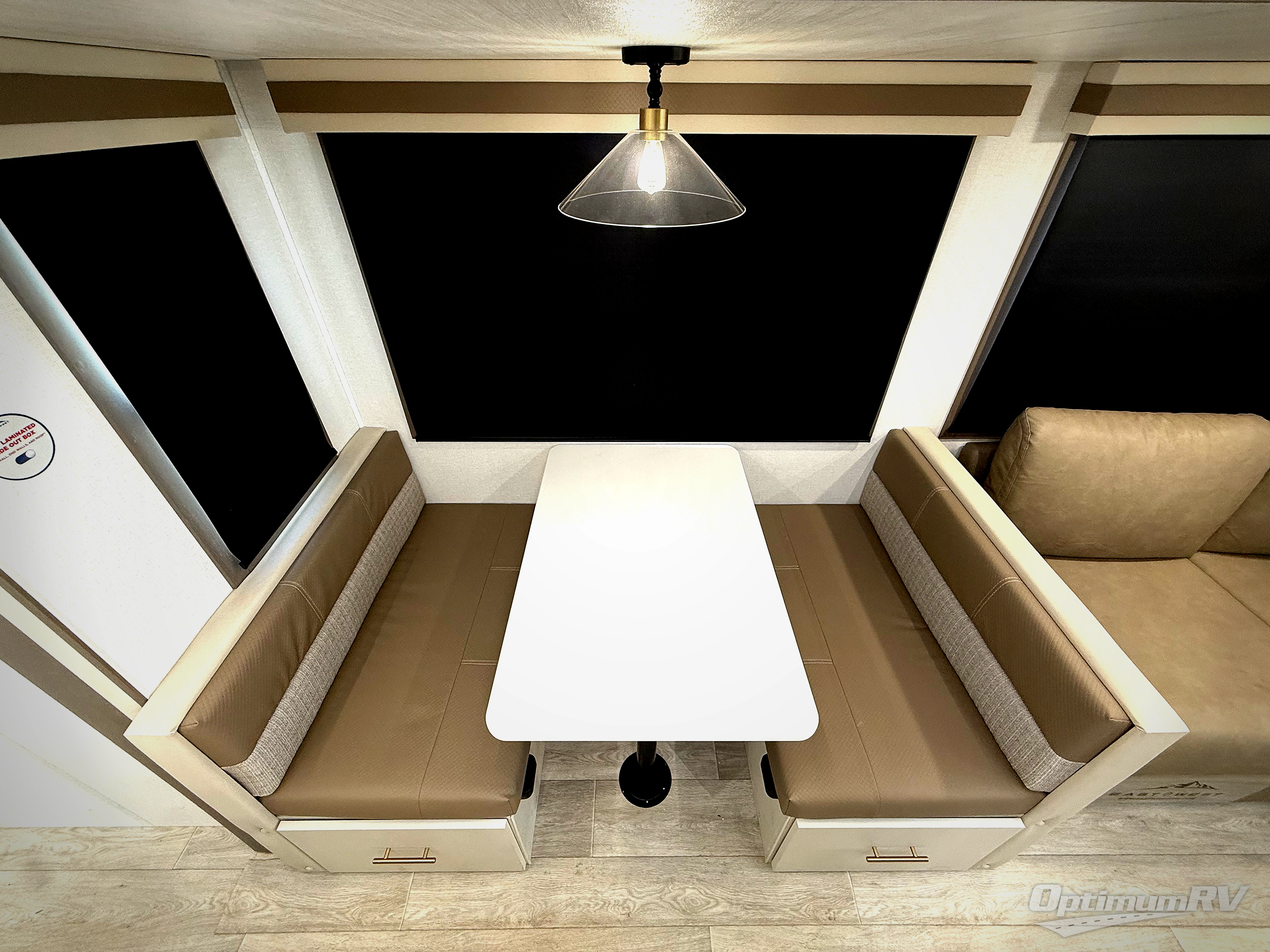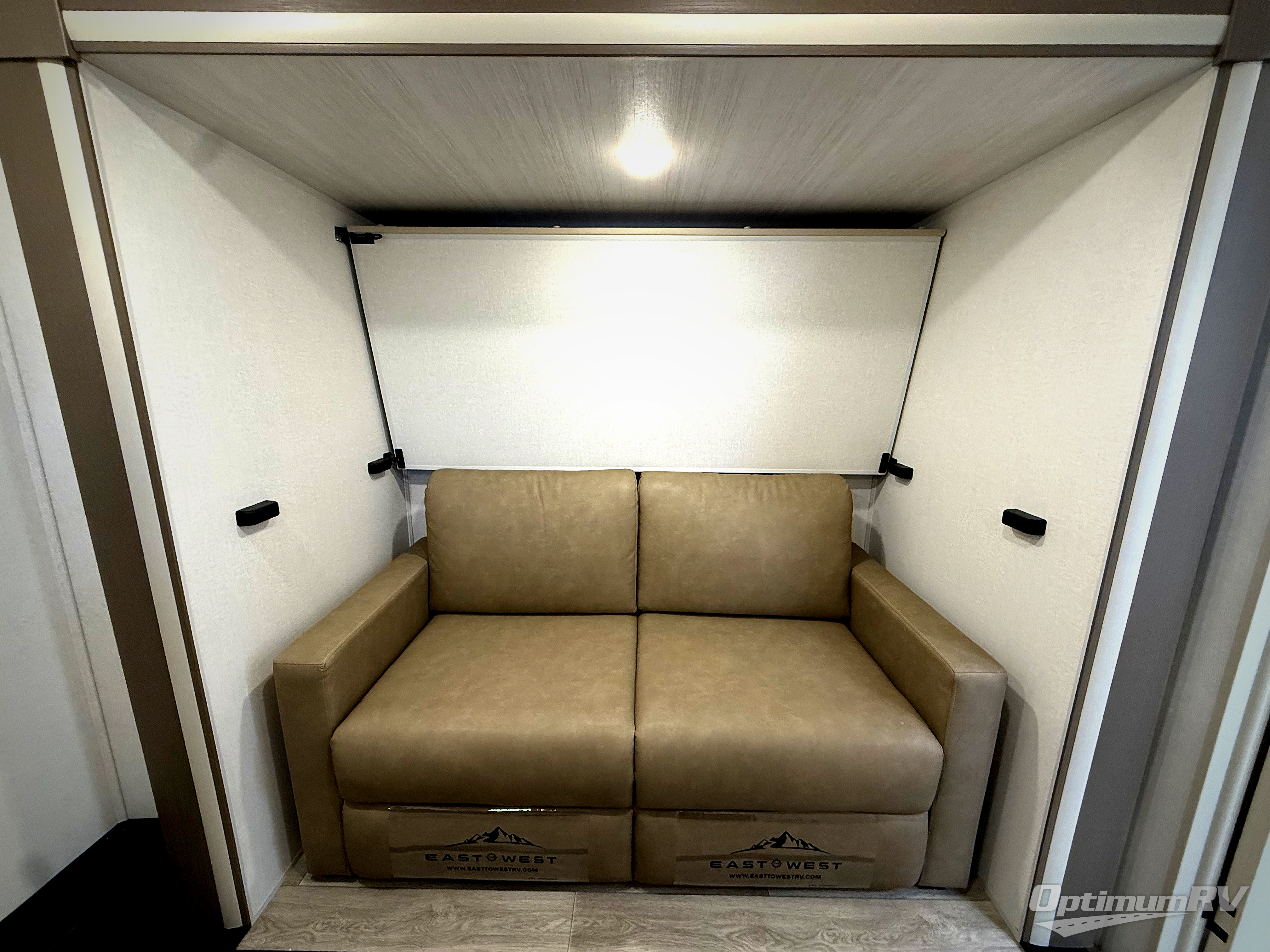 Each Alta travel trailer or toy hauler by EAST TO WEST is constructed with a 5" vacuum bonded roof, an enclosed and heated underbelly, and diamond plate front rock guard for added protection. Outside, you'll find marine-grade exterior speakers, a universal docking station, and back-up camera prep that can be added to make maneuvering in and out of campgrounds easier than ever. Inside, there are 4k interior LED lights, solid pressed membrane countertops, black roller shades, and many more interior comforts you are sure to love.