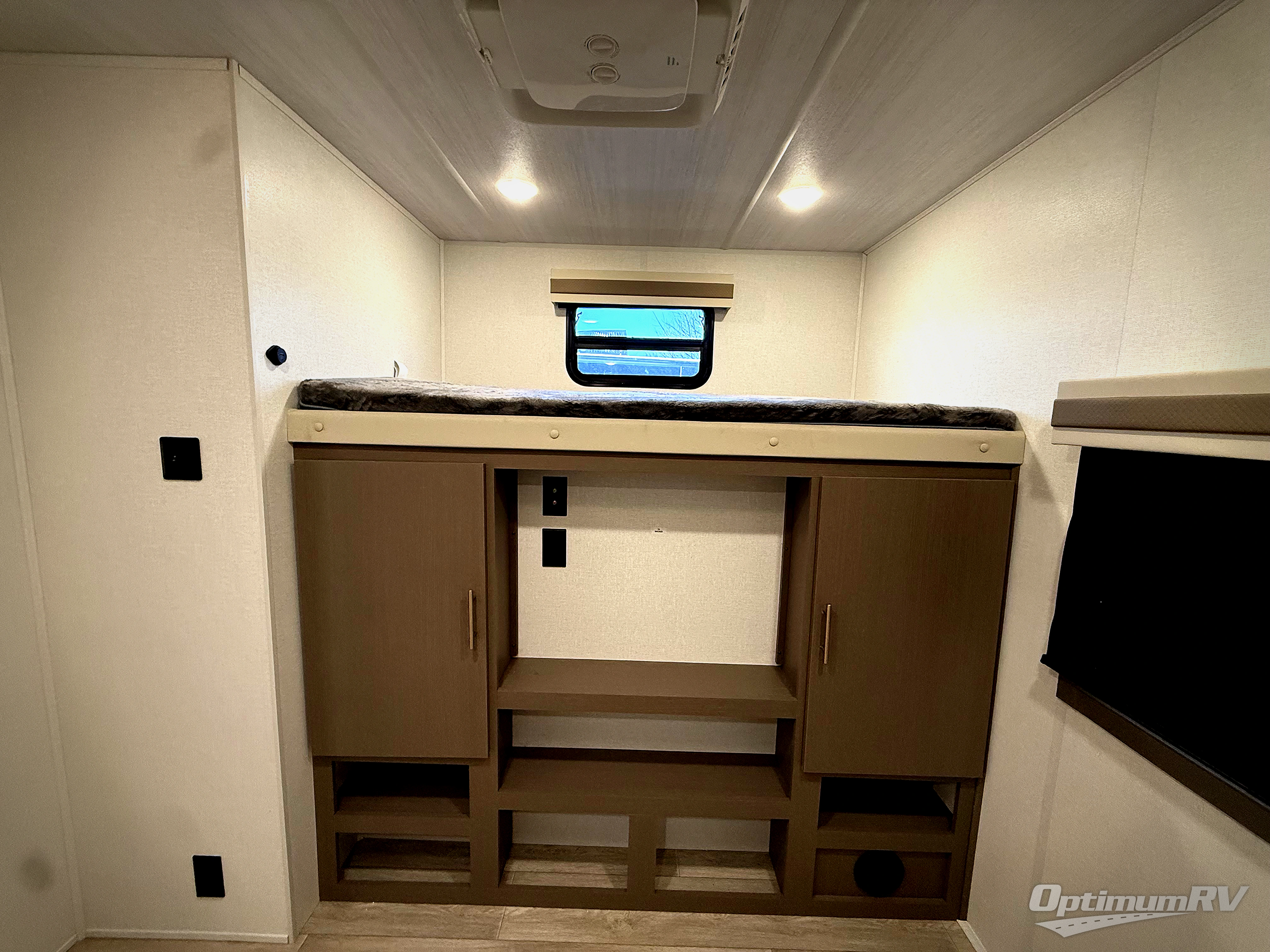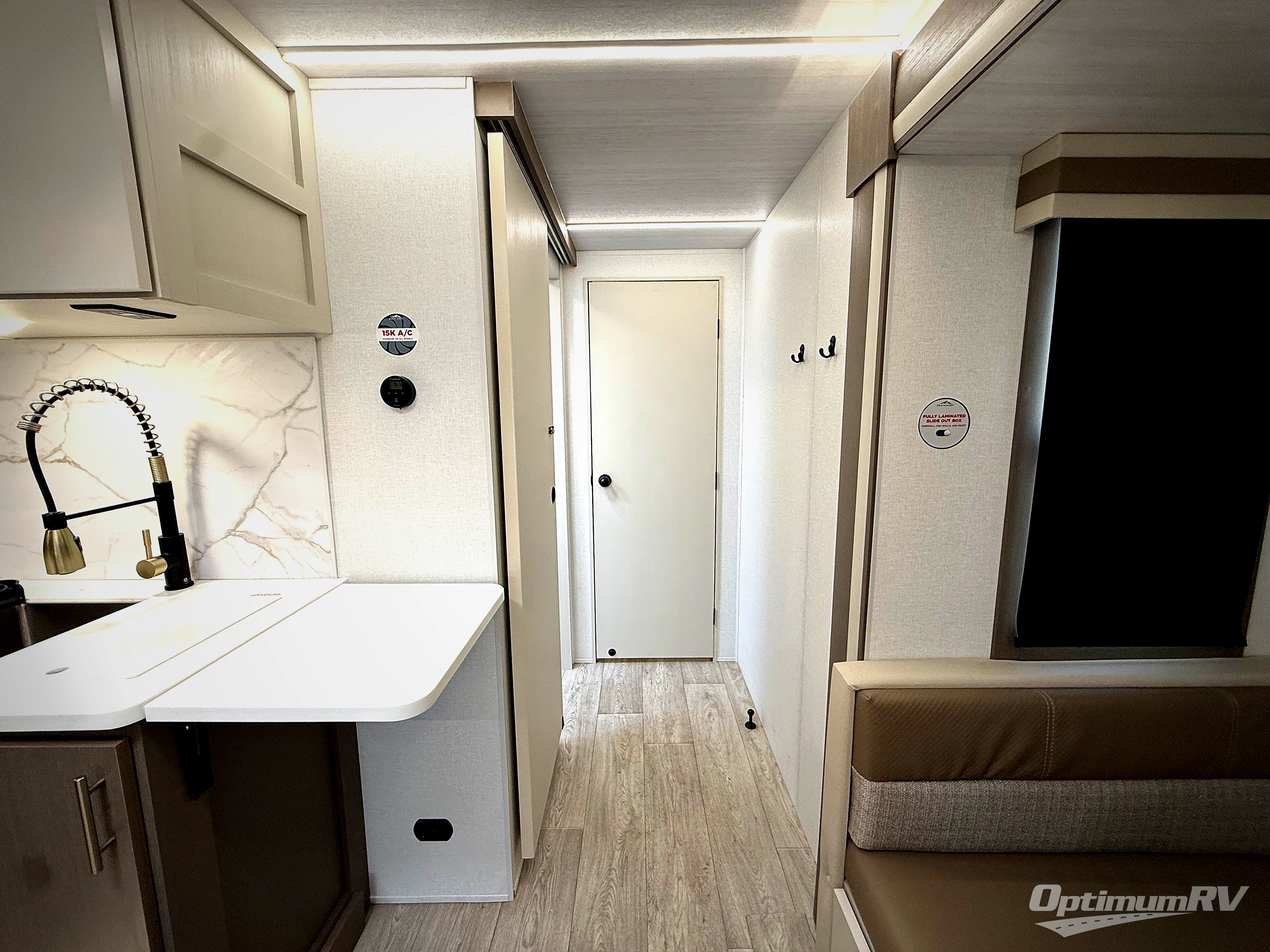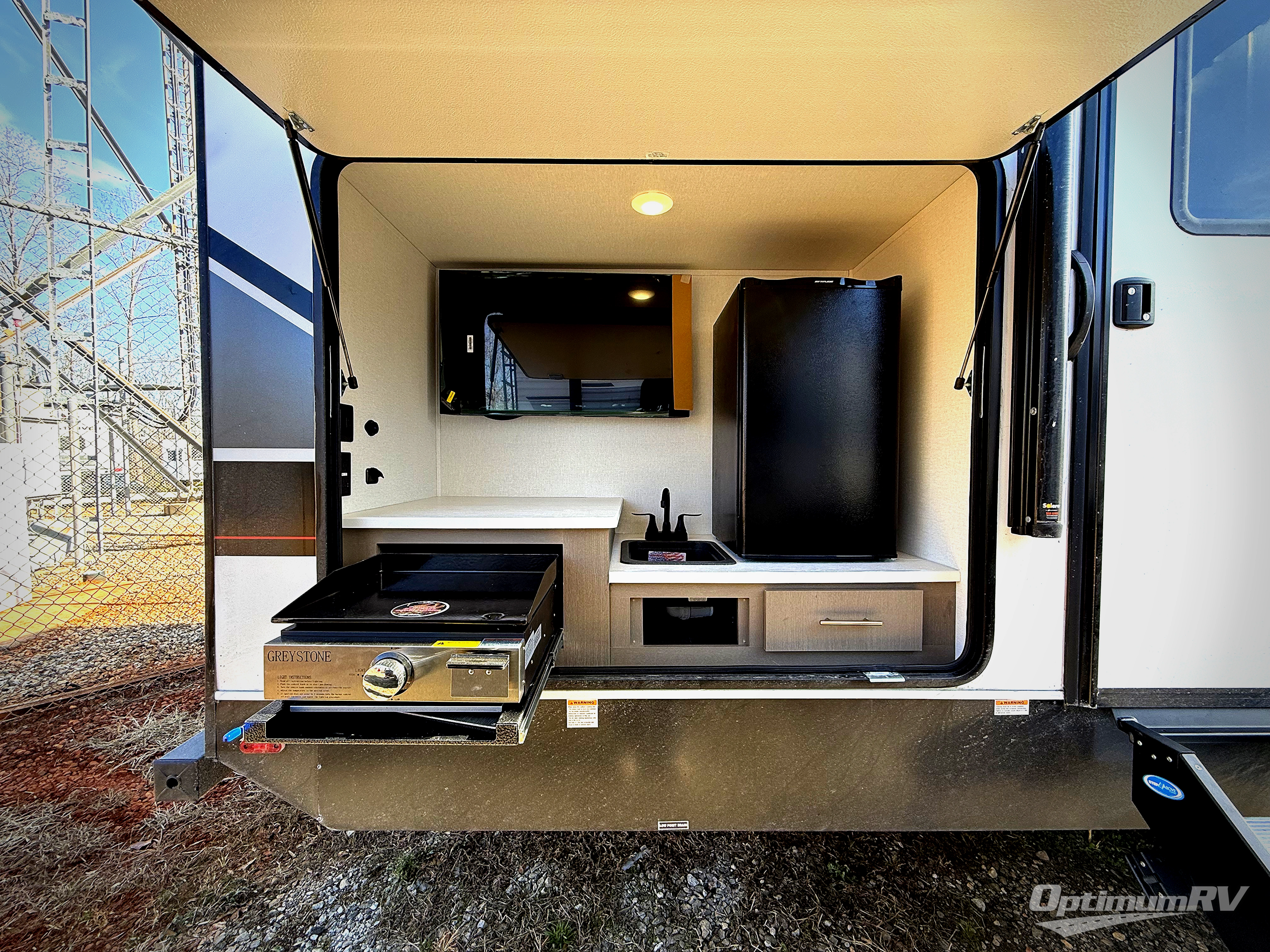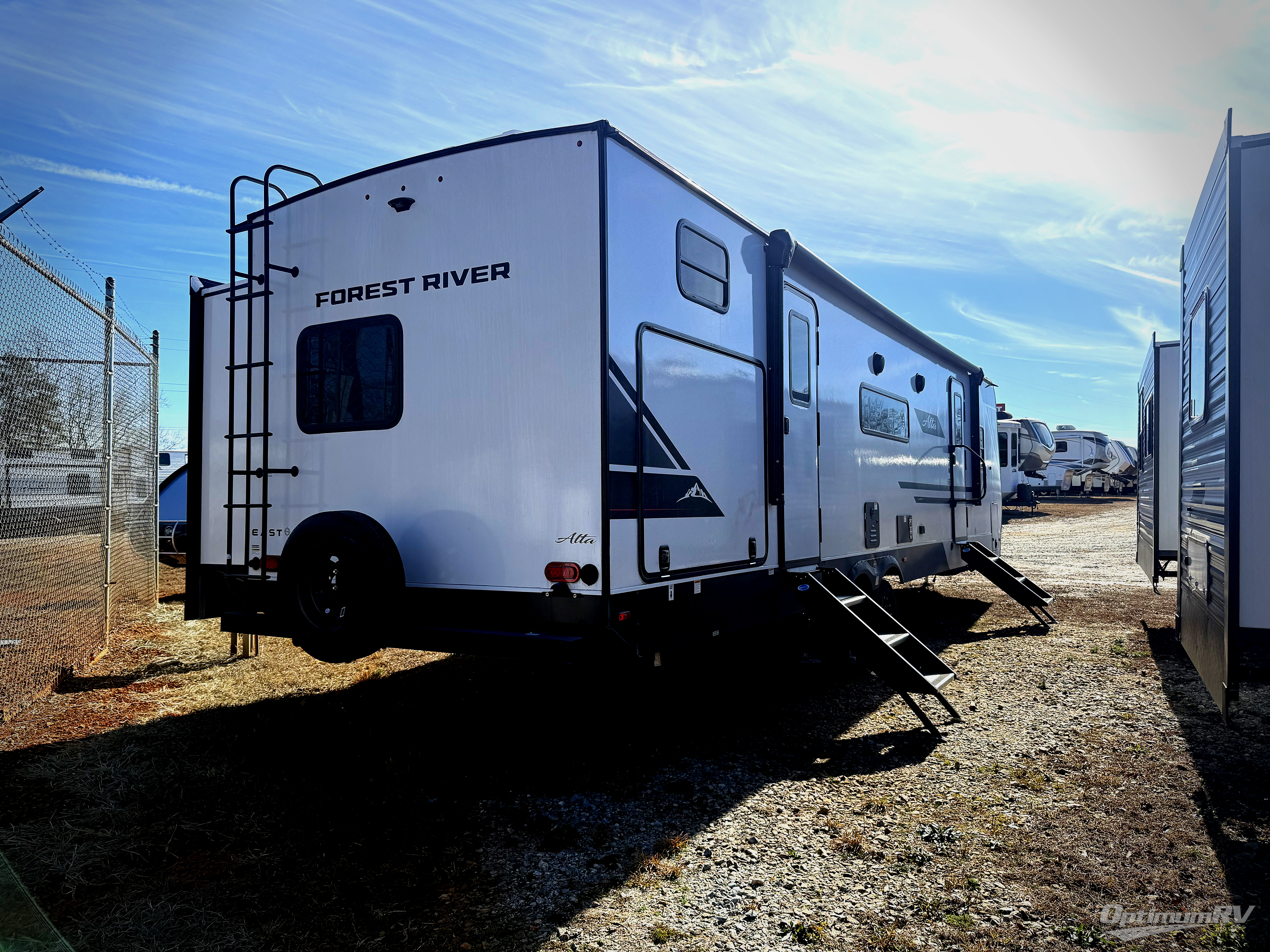 If you're looking for a travel trailer to take tailgating, this Alta model is the one! After you've unloaded the pass-through storage and set up the 21' power awning, start lunch on the outside kitchen! Since there are dual entry doors you can enter in through the main living area, or the full bath for convenience. The little ones are sure to spend most of their time in the rear bunkhouse that includes a flip-up bunk under the sofa, plus a second bunk across the room. The adults can visit at the booth dinette or on the tri-fold sofa, and check out the front private bedroom with sliding doors and a king bed for all-around comfort!