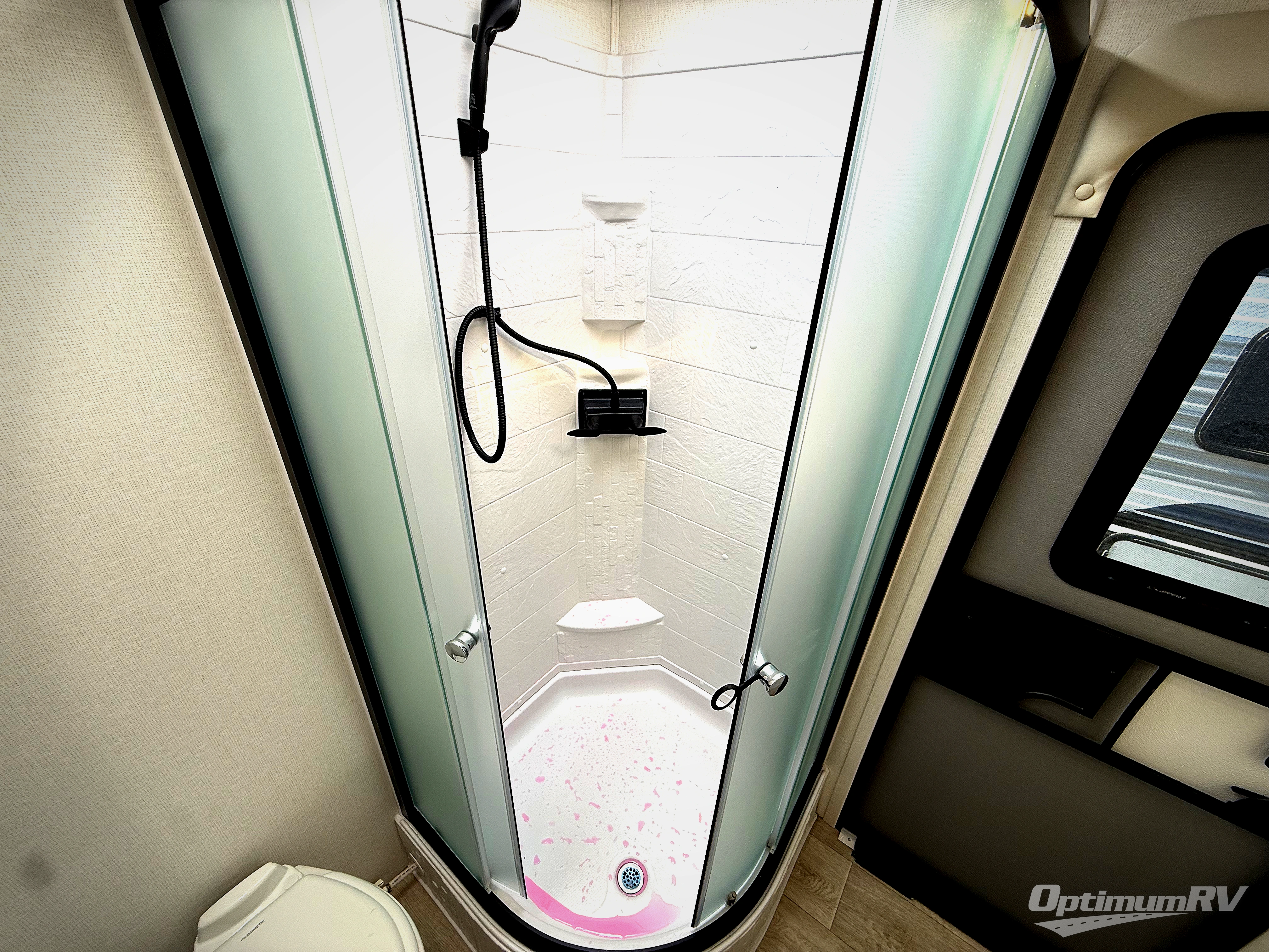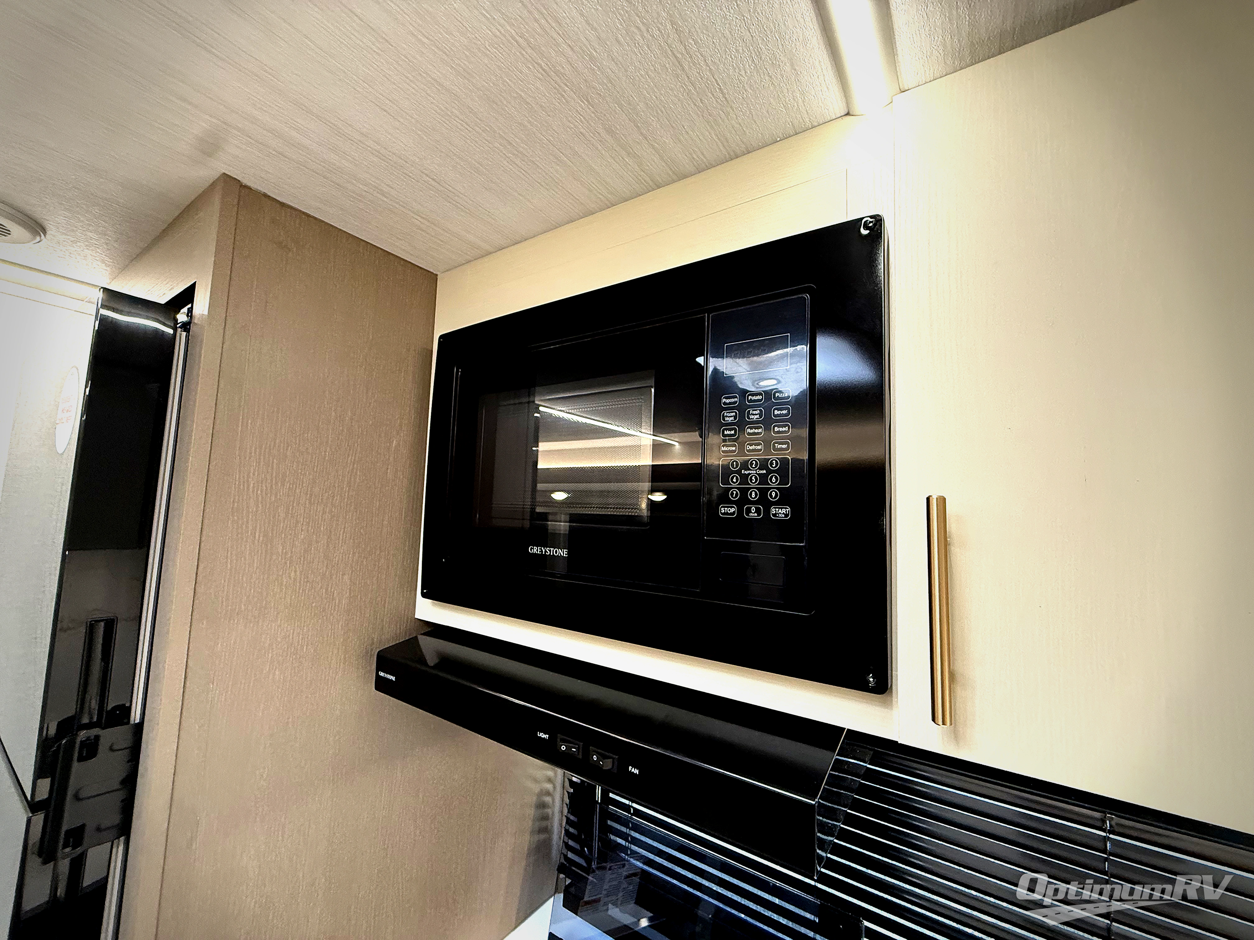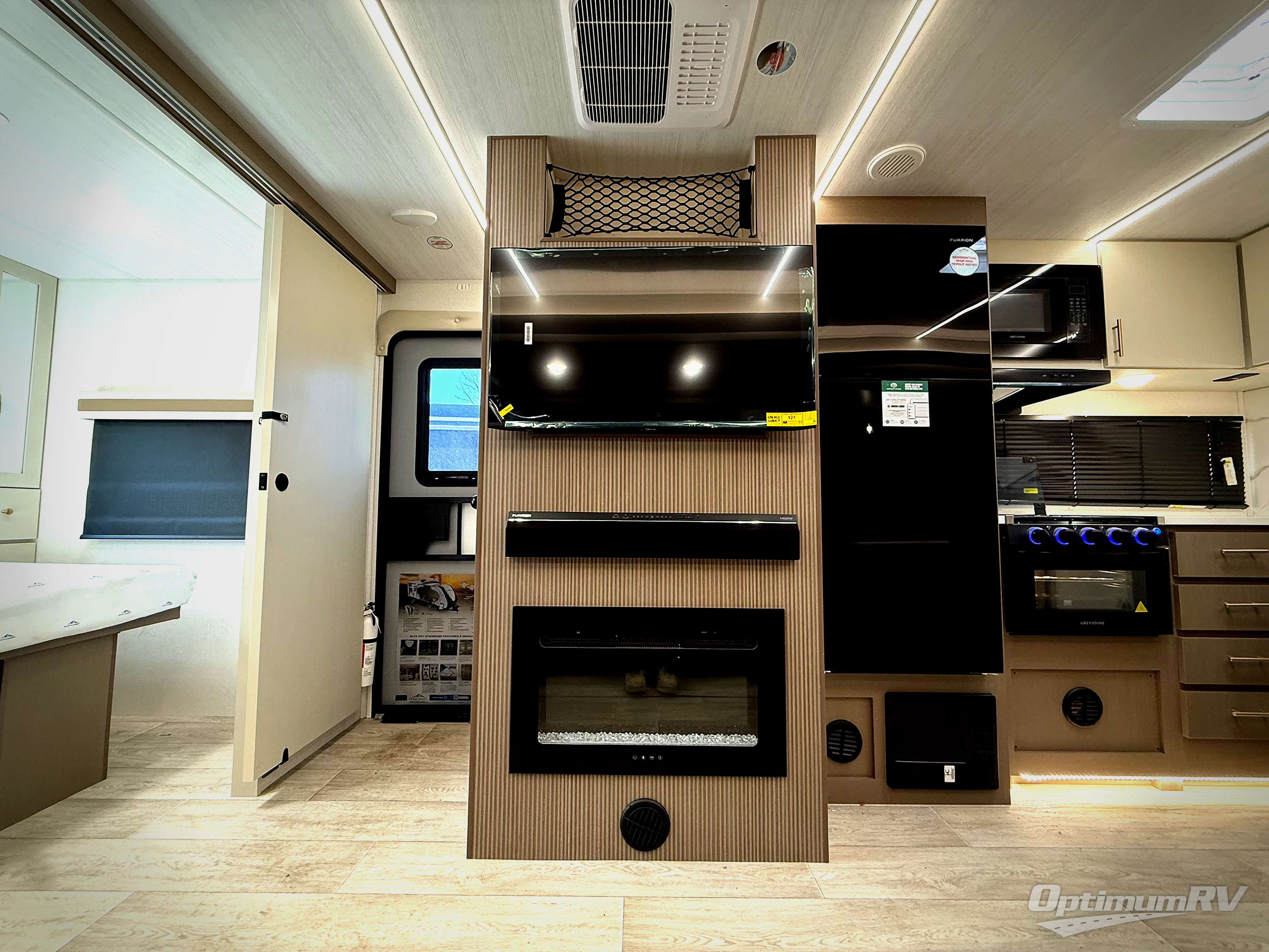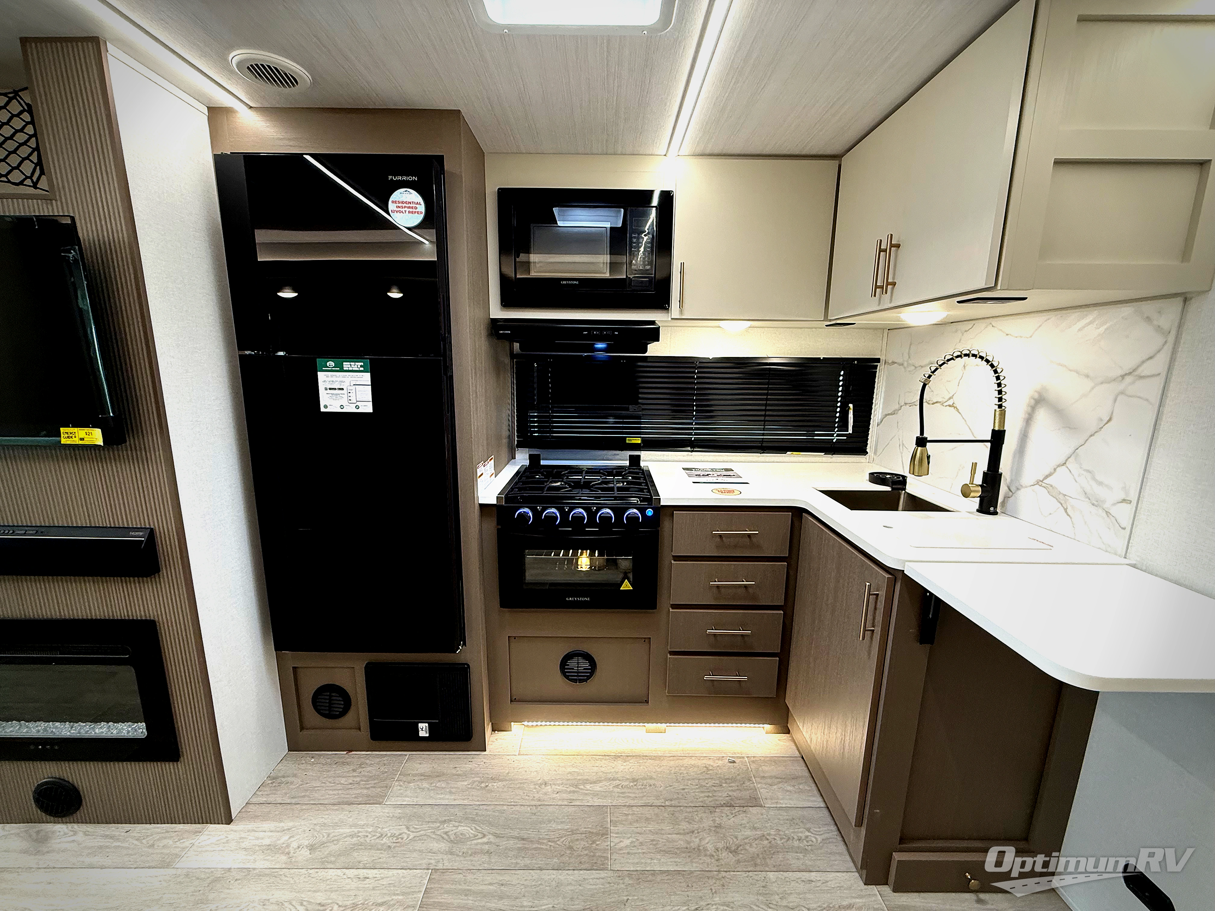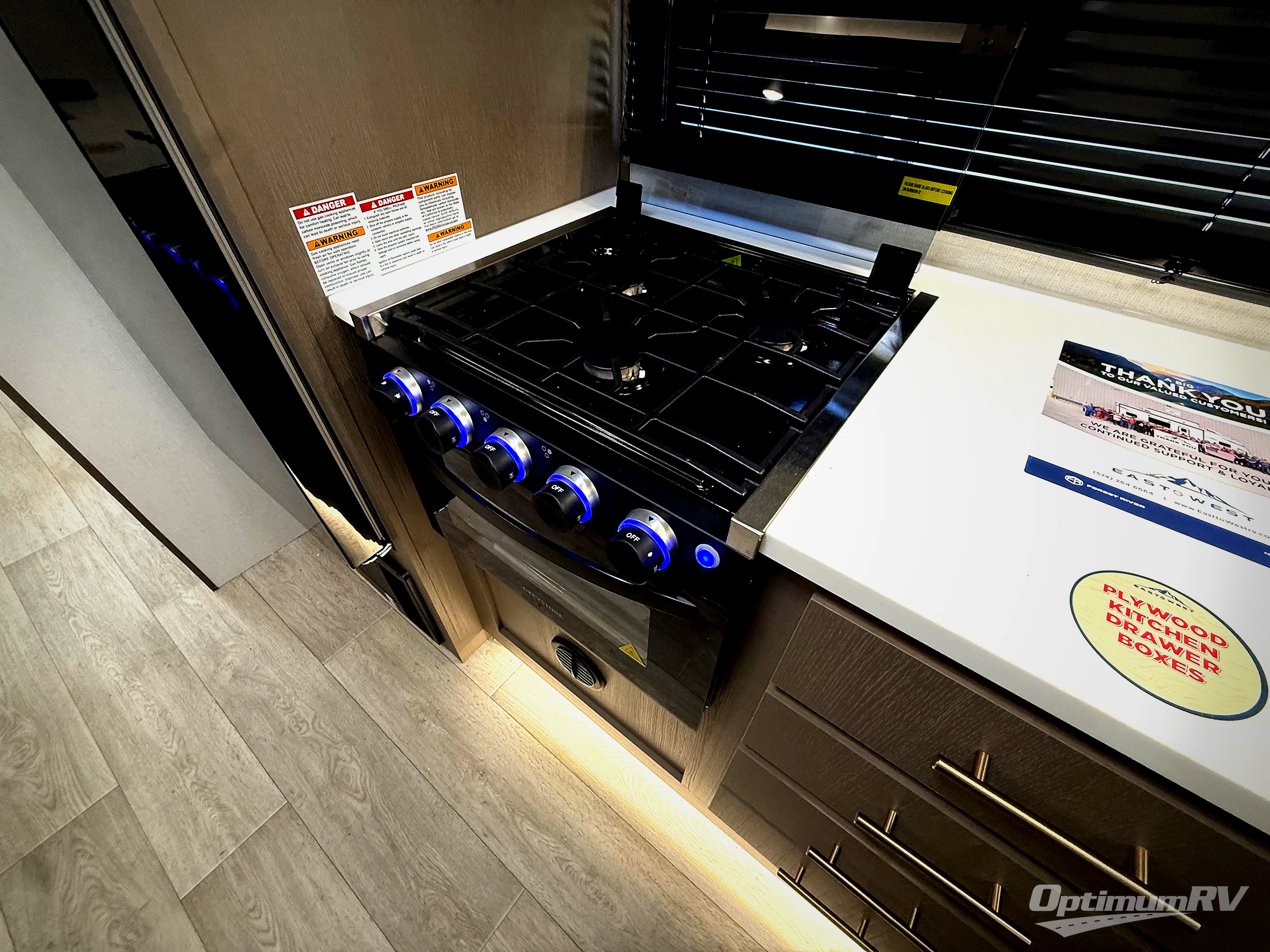 If you're looking for a travel trailer to take tailgating, this Alta model is the one! After you've unloaded the pass-through storage and set up the 21' power awning, start lunch on the outside kitchen! Since there are dual entry doors you can enter in through the main living area, or the full bath for convenience. The little ones are sure to spend most of their time in the rear bunkhouse that includes a flip-up bunk under the sofa, plus a second bunk across the room. The adults can visit at the booth dinette or on the tri-fold sofa, and check out the front private bedroom with sliding doors and a king bed for all-around comfort!