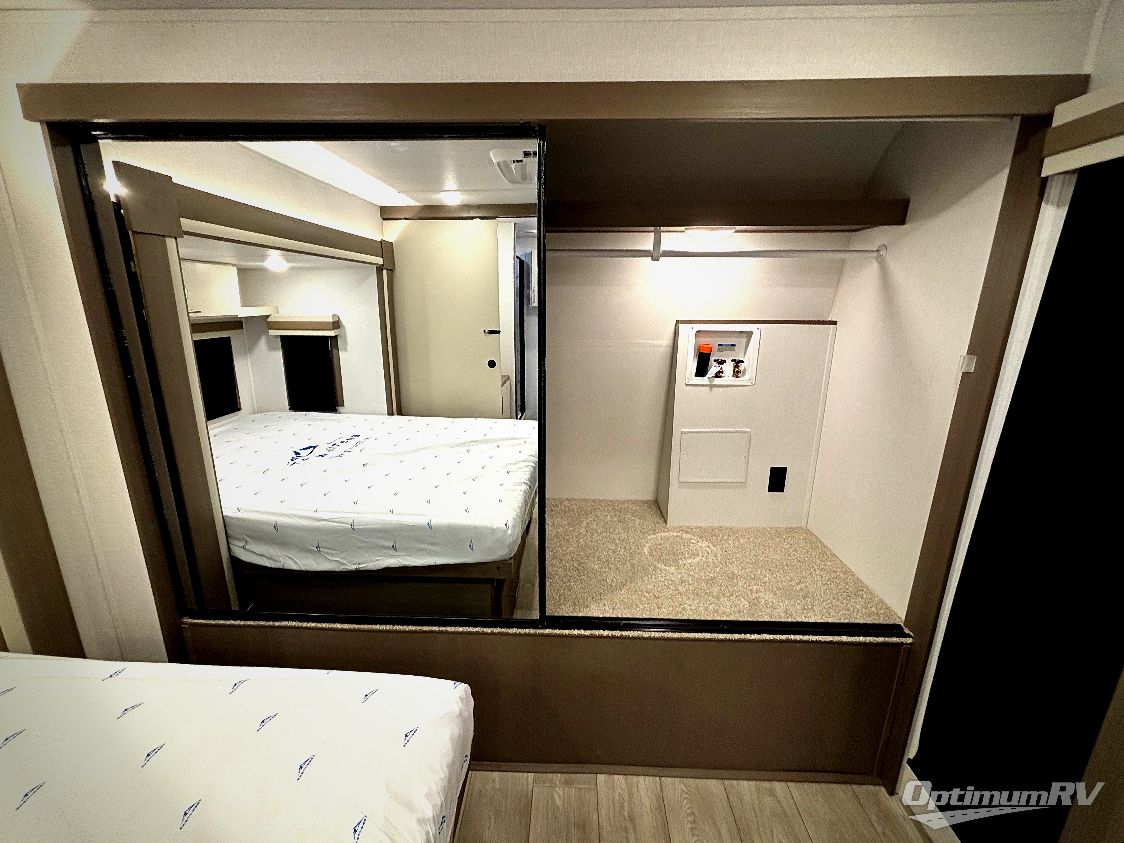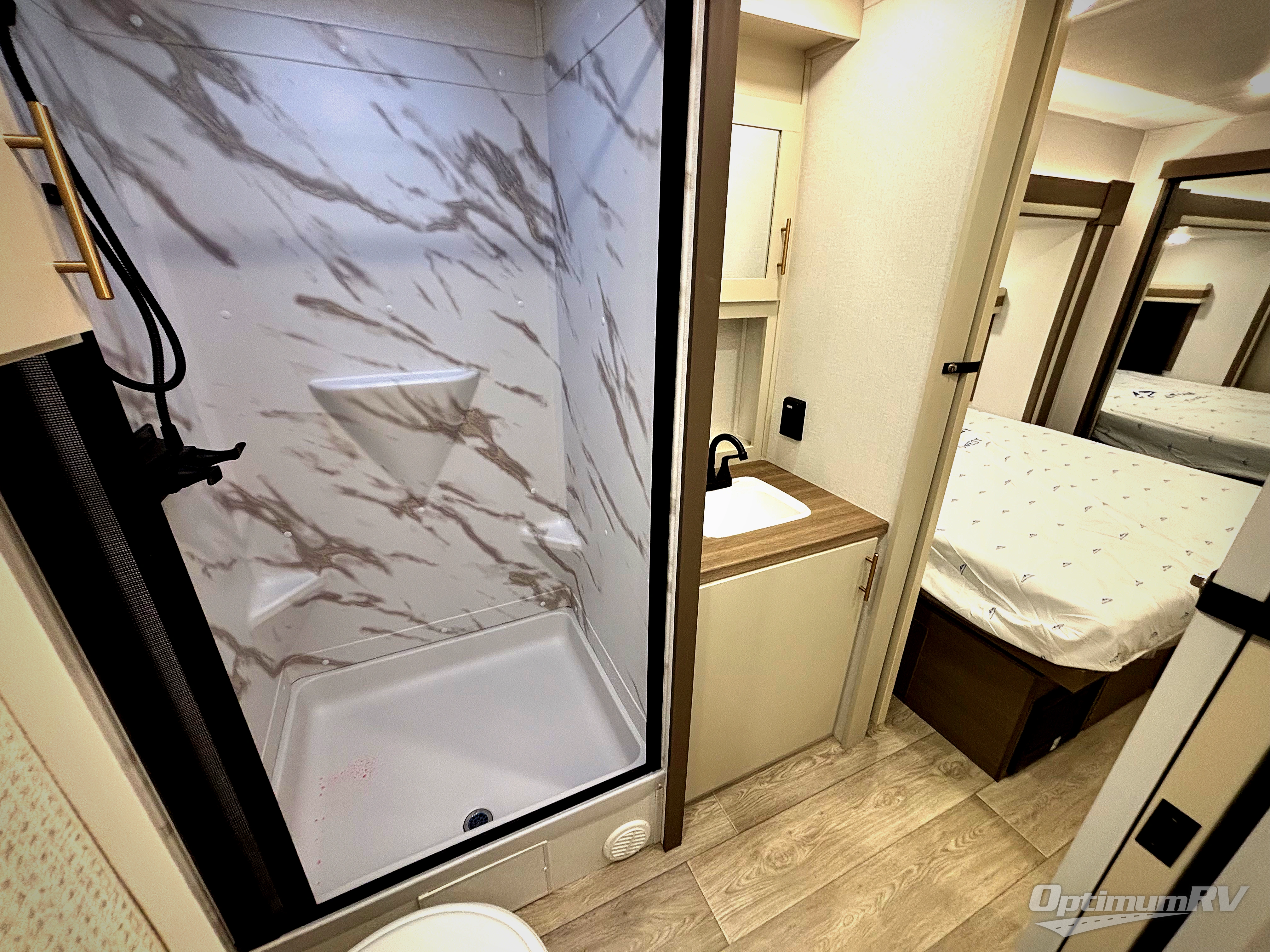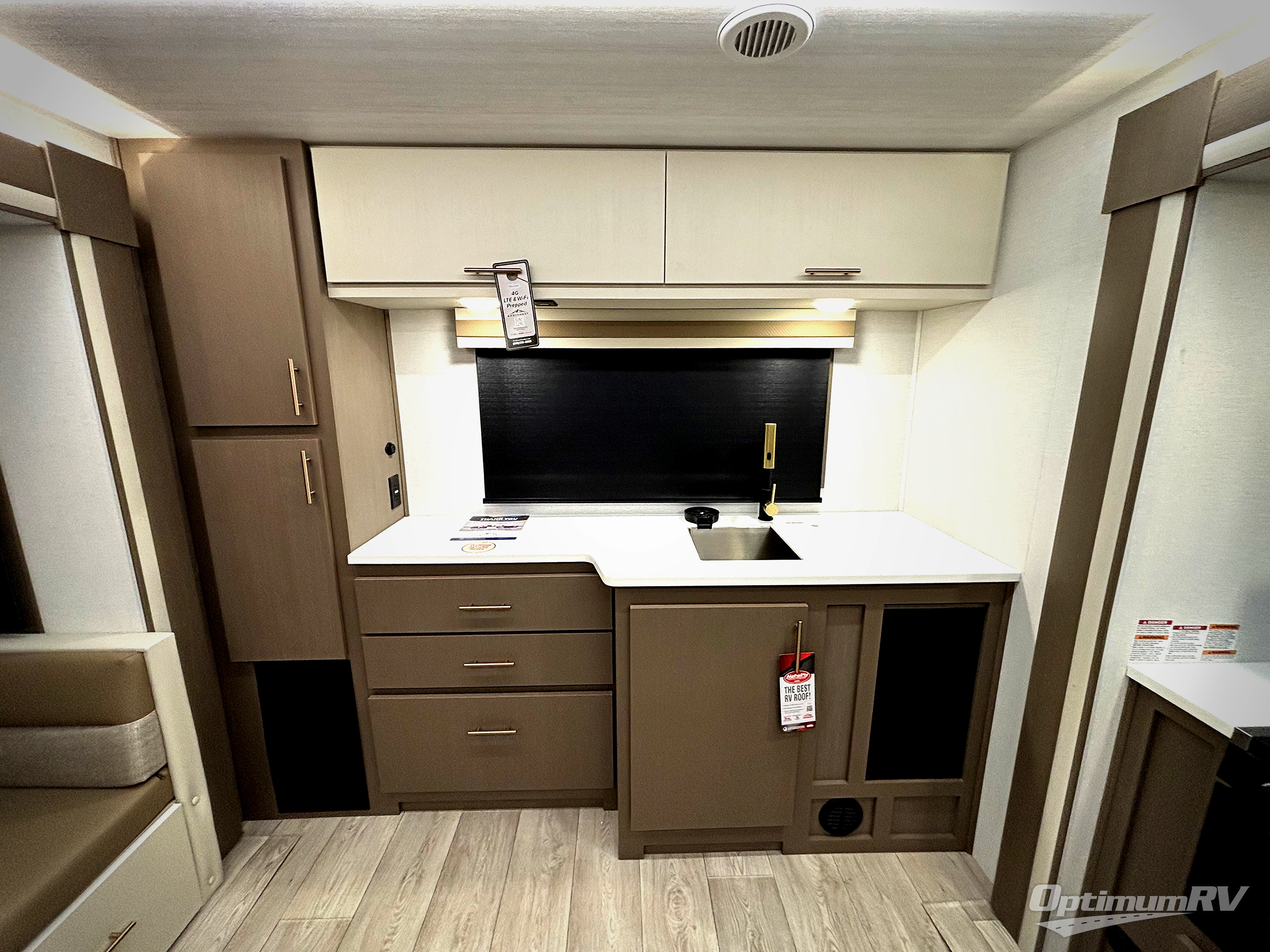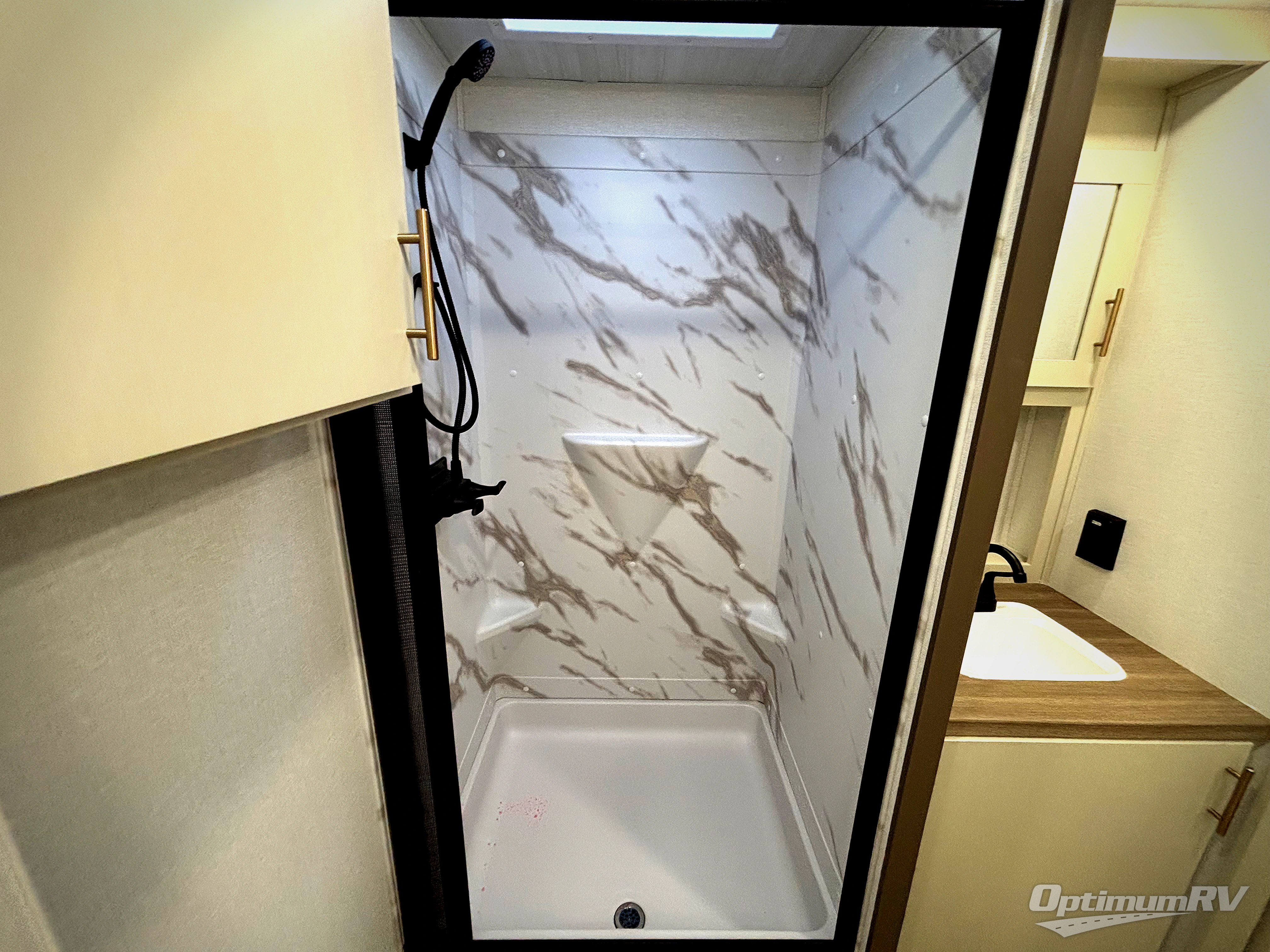 Experience a luxurious ride in this travel trailer. The rear kitchen is equipped with everything you need to whip up a culinary masterpiece. Enjoy ample storage in the pantry, a 12V refrigerator for keeping your favorite drinks and snacks chilled, a three-burner cooktop for cooking up a storm, and a microwave for quick reheating. The sink provides a convenient spot for washing up, and the spacious countertops offer plenty of room for food preparation. Relax and unwind in the heart of the trailer, a comfortable living area features a tri-fold sofa and a sofa with recliners. Gather around the fireplace on chilly evenings, or enjoy your favorite shows on the TV. Further, the full bathroom is equipped with everything you need for a comfortable stay, and the front bedroom boasts a queen-sized bed, large wardrobe, dresser, and overhead cabinets. Finally, take your living space outdoors with the fold-down patio, perfect for alfresco dining or simply enjoying the fresh air.