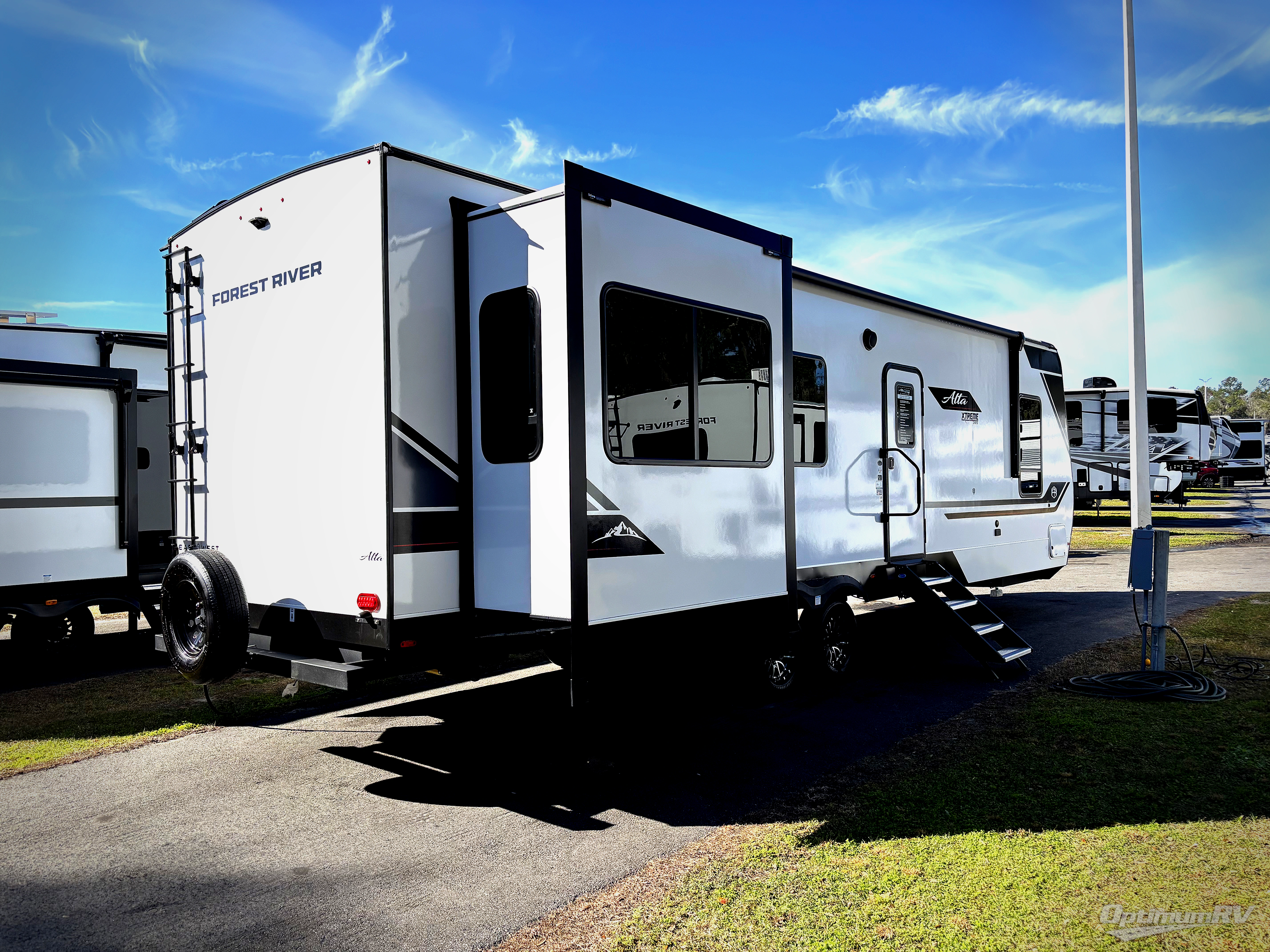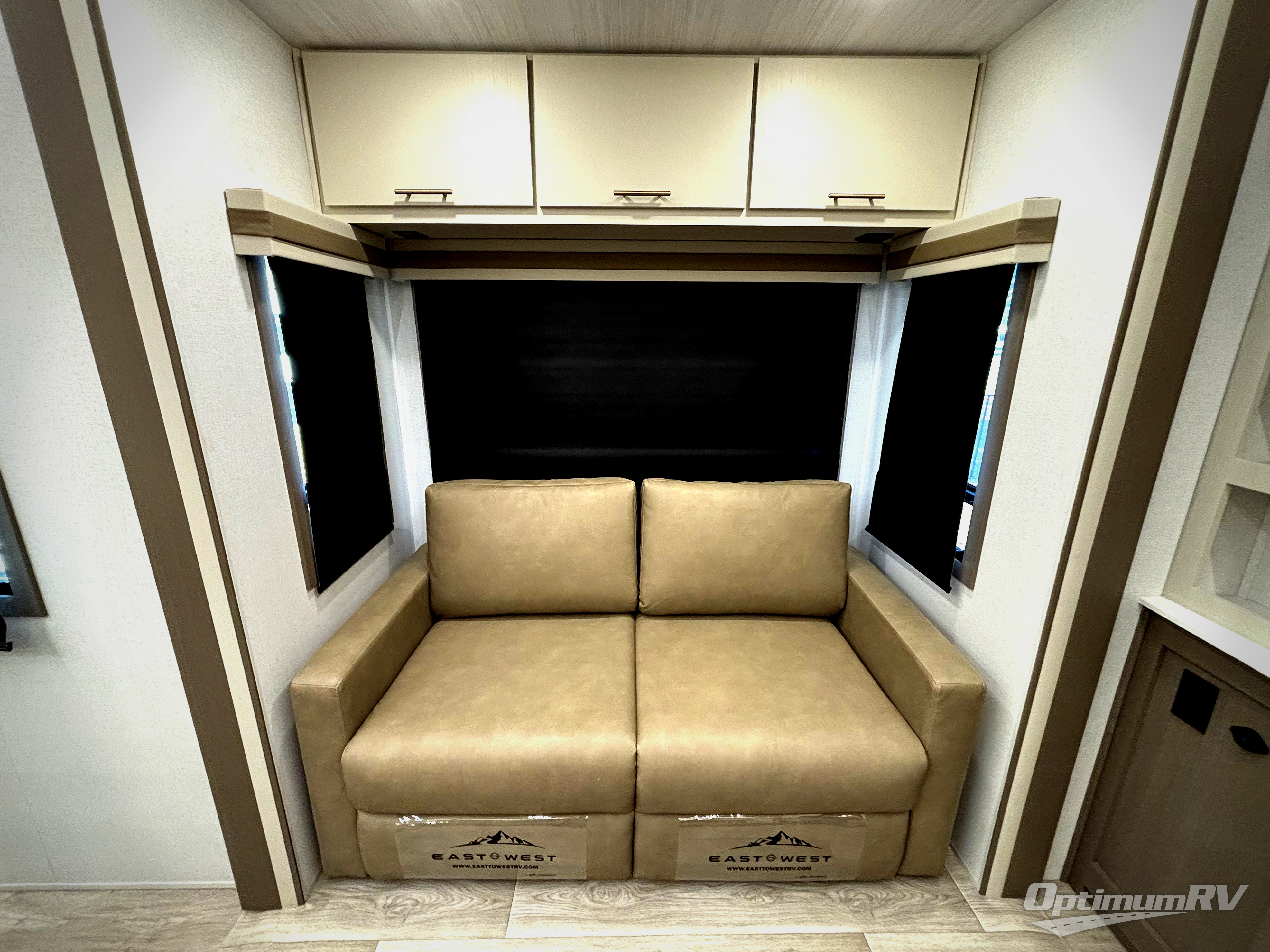 Each Alta travel trailer or toy hauler by EAST TO WEST is constructed with a 5" vacuum bonded roof, an enclosed and heated underbelly, and diamond plate front rock guard for added protection. Outside, you'll find marine-grade exterior speakers, a universal docking station, and back-up camera prep that can be added to make maneuvering in and out of campgrounds easier than ever. Inside, there are 4k interior LED lights, solid pressed membrane countertops, black roller shades, and many more interior comforts you are sure to love.