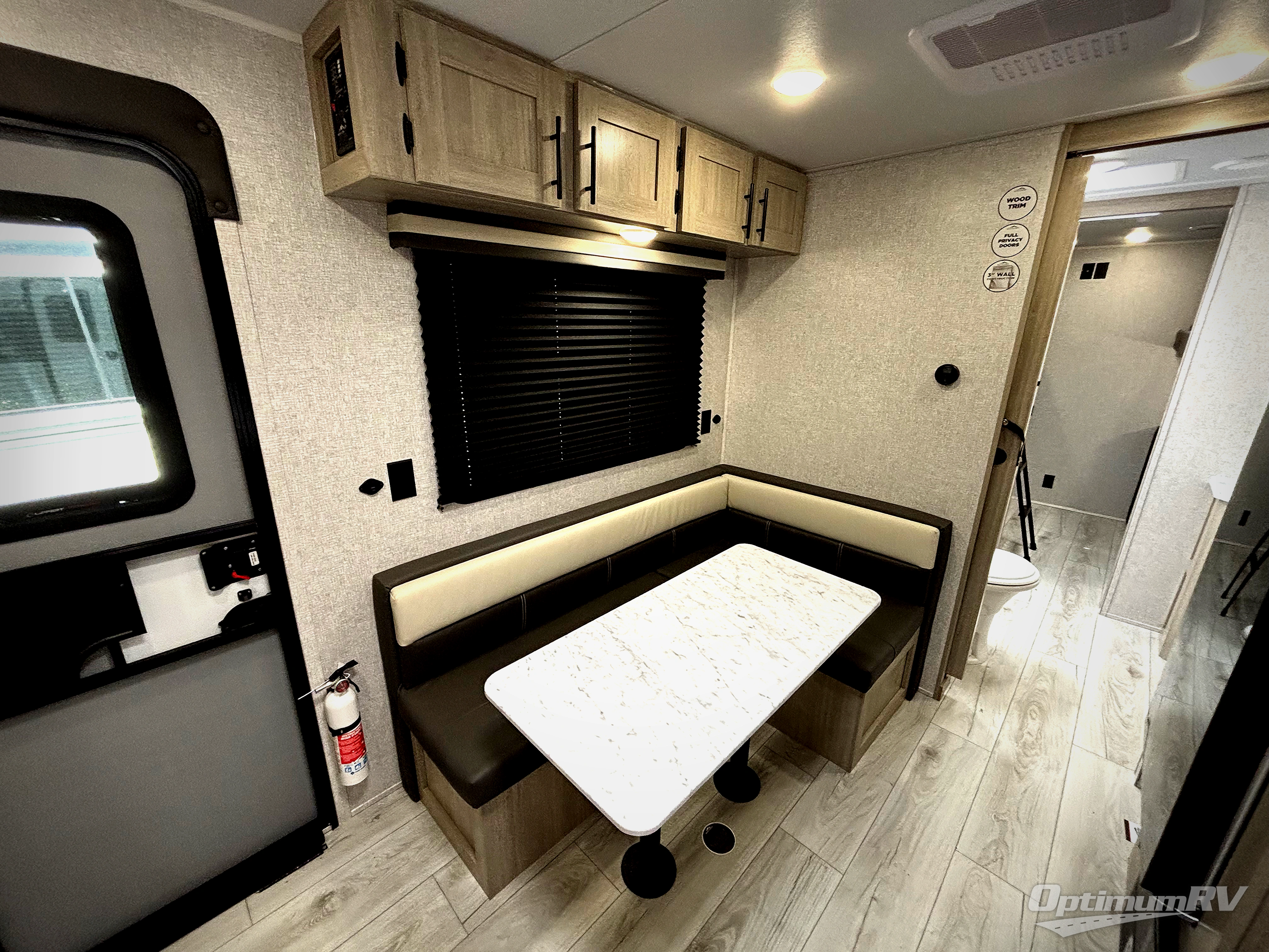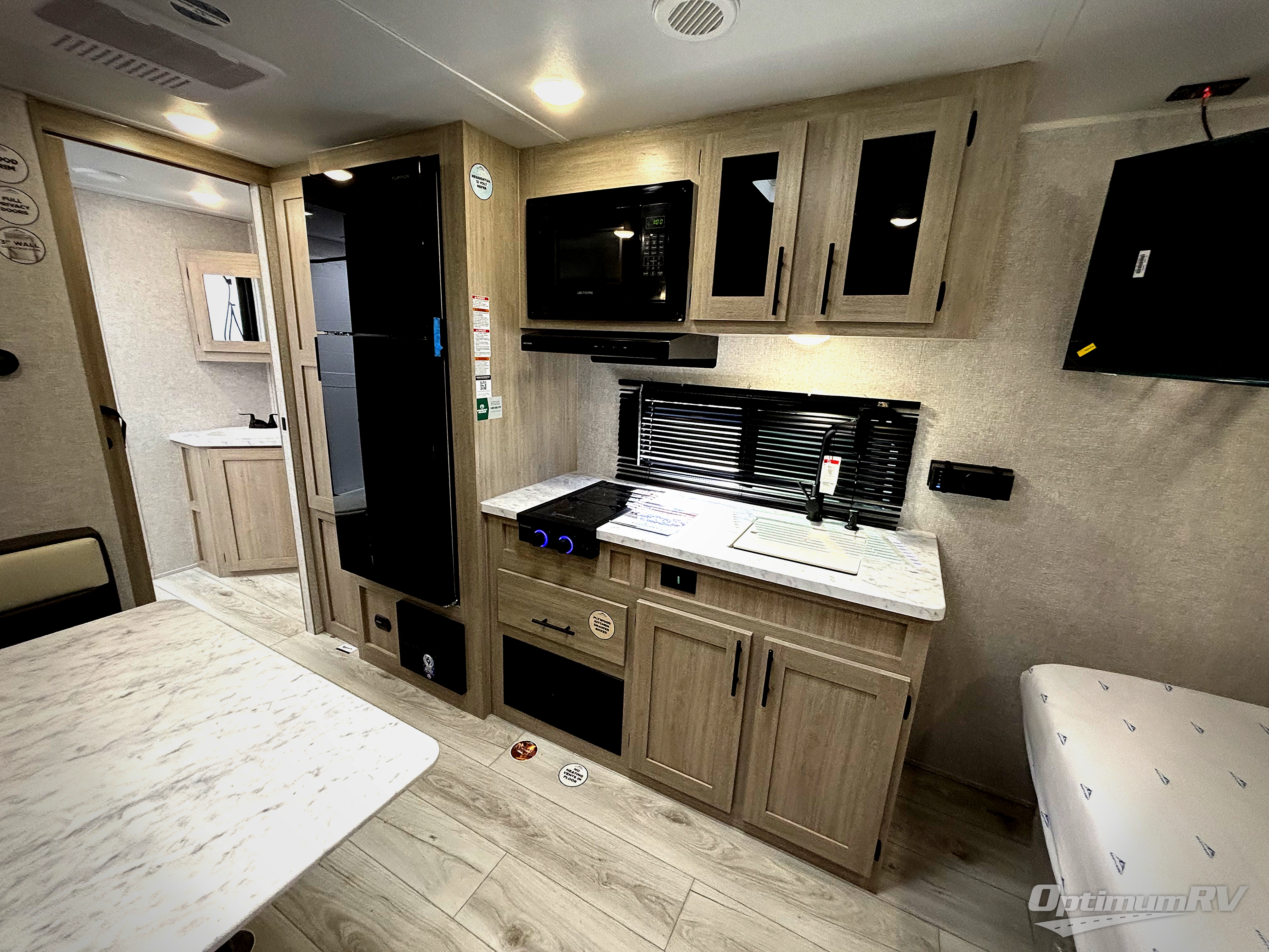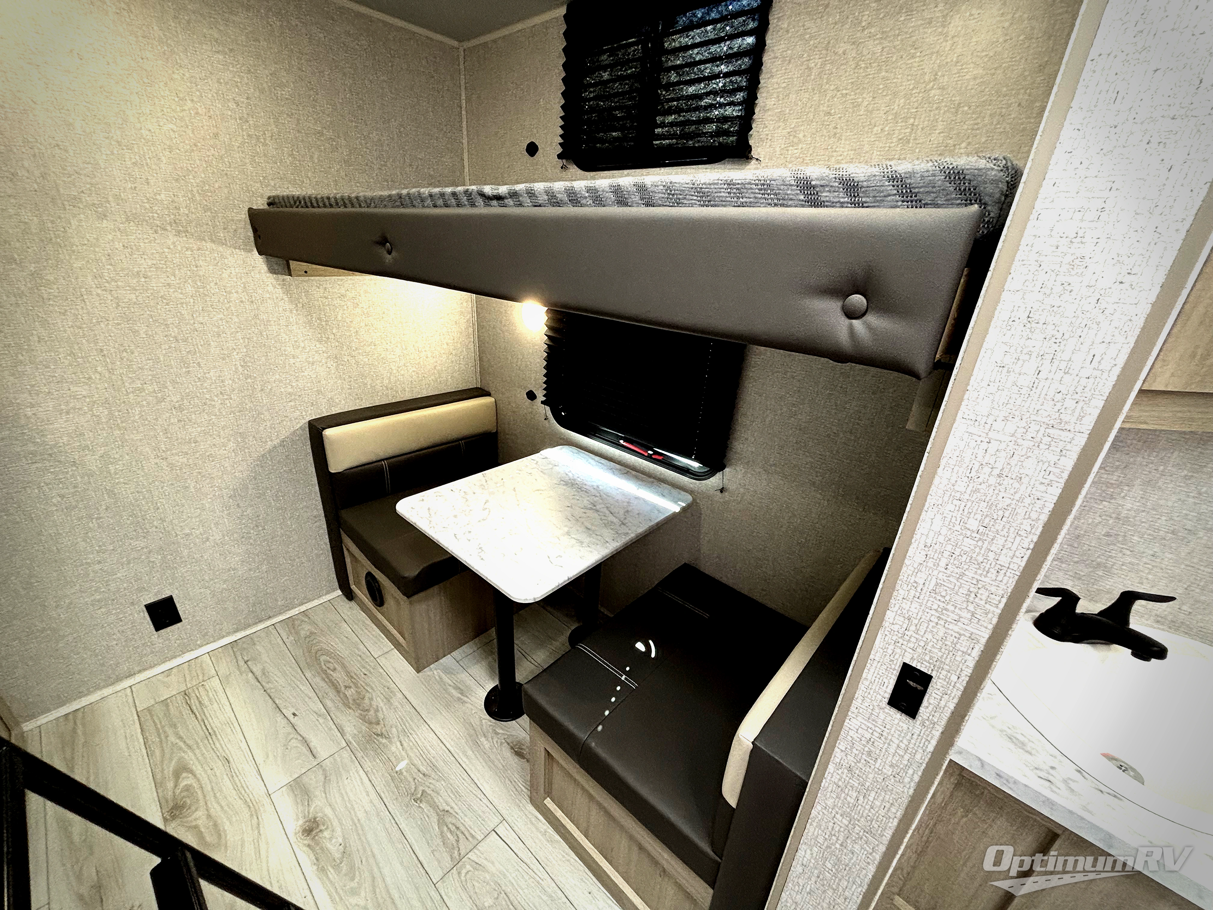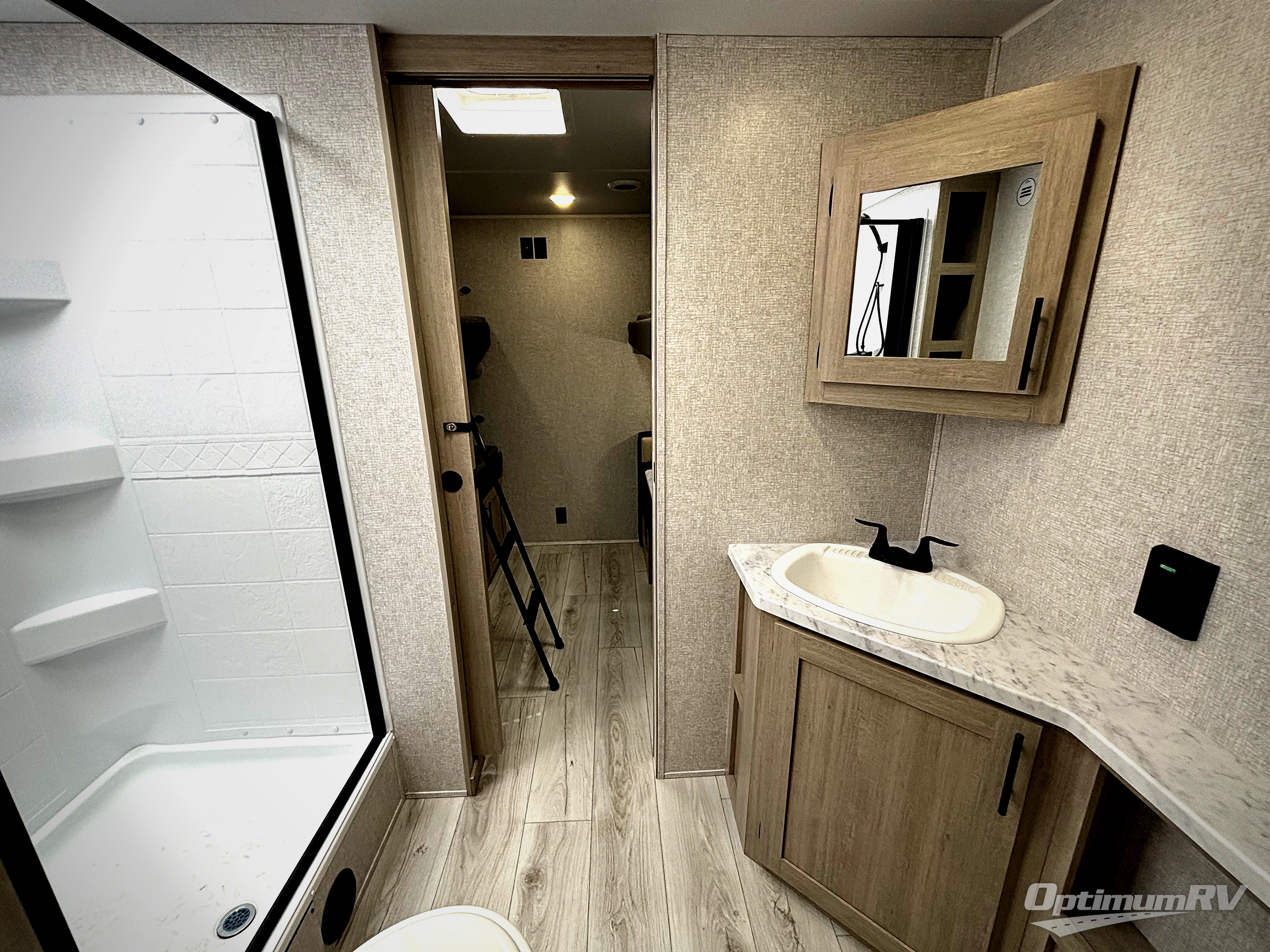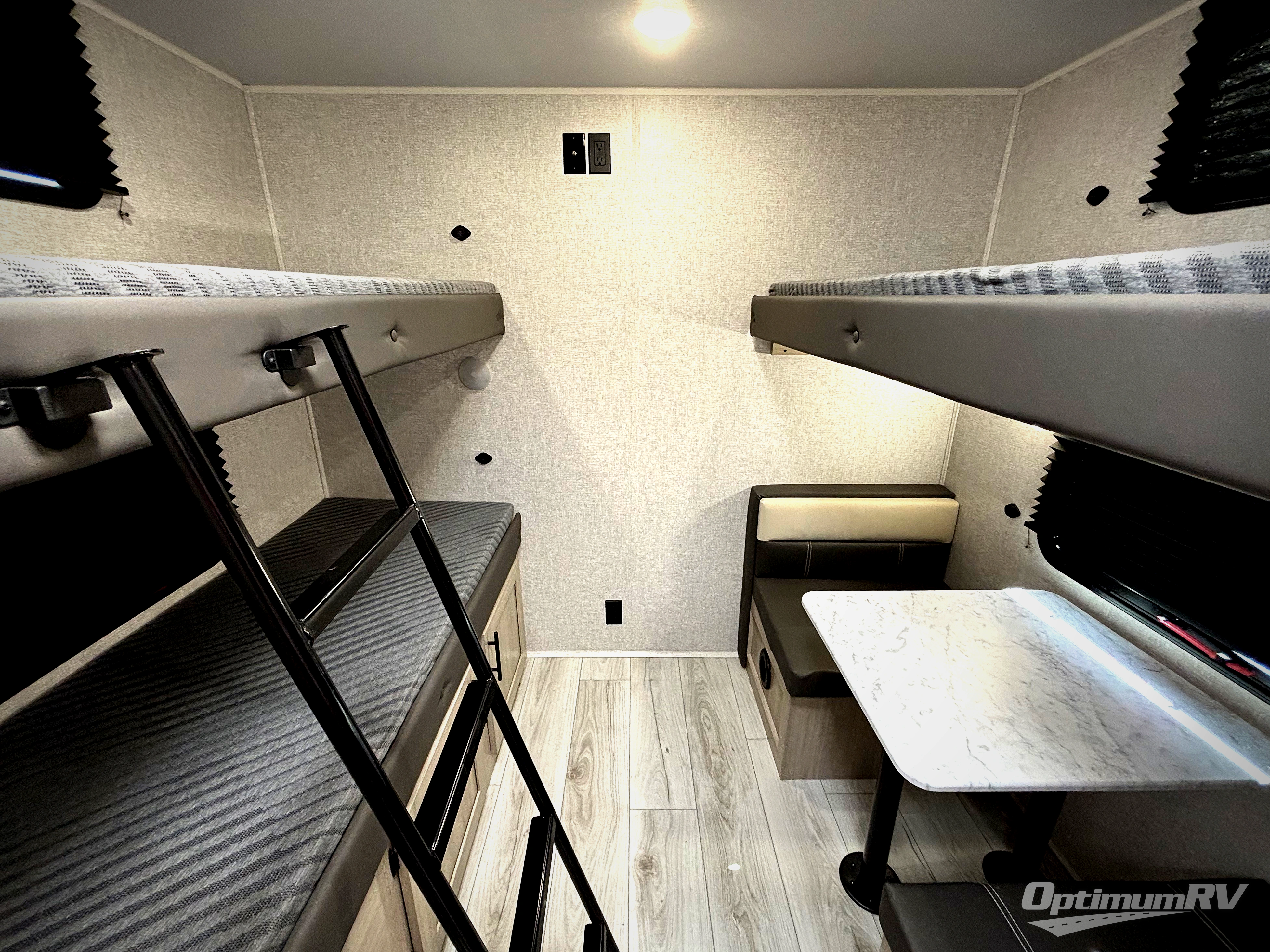There is much to love in this travel trailer! Starting with the rear private bunkhouse which has a set of double bunk beds with storage underneath and a bunk over a booth dinette with storage underneath it too. The front king bed also has storage underneath it, as well as wardrobes and nightstands on either side of it for your clothes and books. The chef can prepare their best home cooked meals in the fully equipped kitchen, and everyone can enjoy them at the L-shaped dinette with storage underneath for boardgames to play after dinner. The walk-through bathroom makes it easy for all to access the 30" x 36" shower, and you even have an outside shower to rinse the mud off of your feet before entering inside!