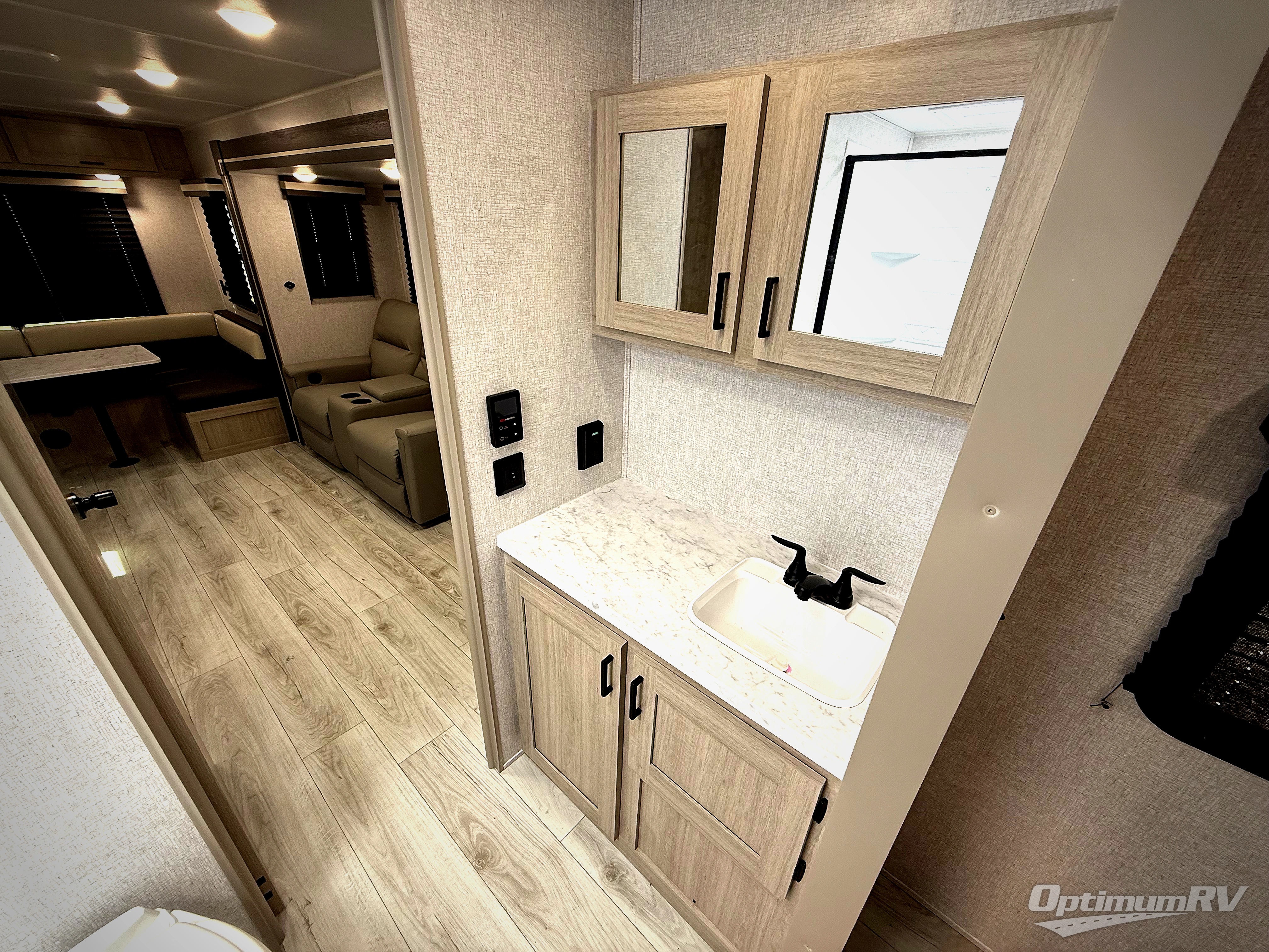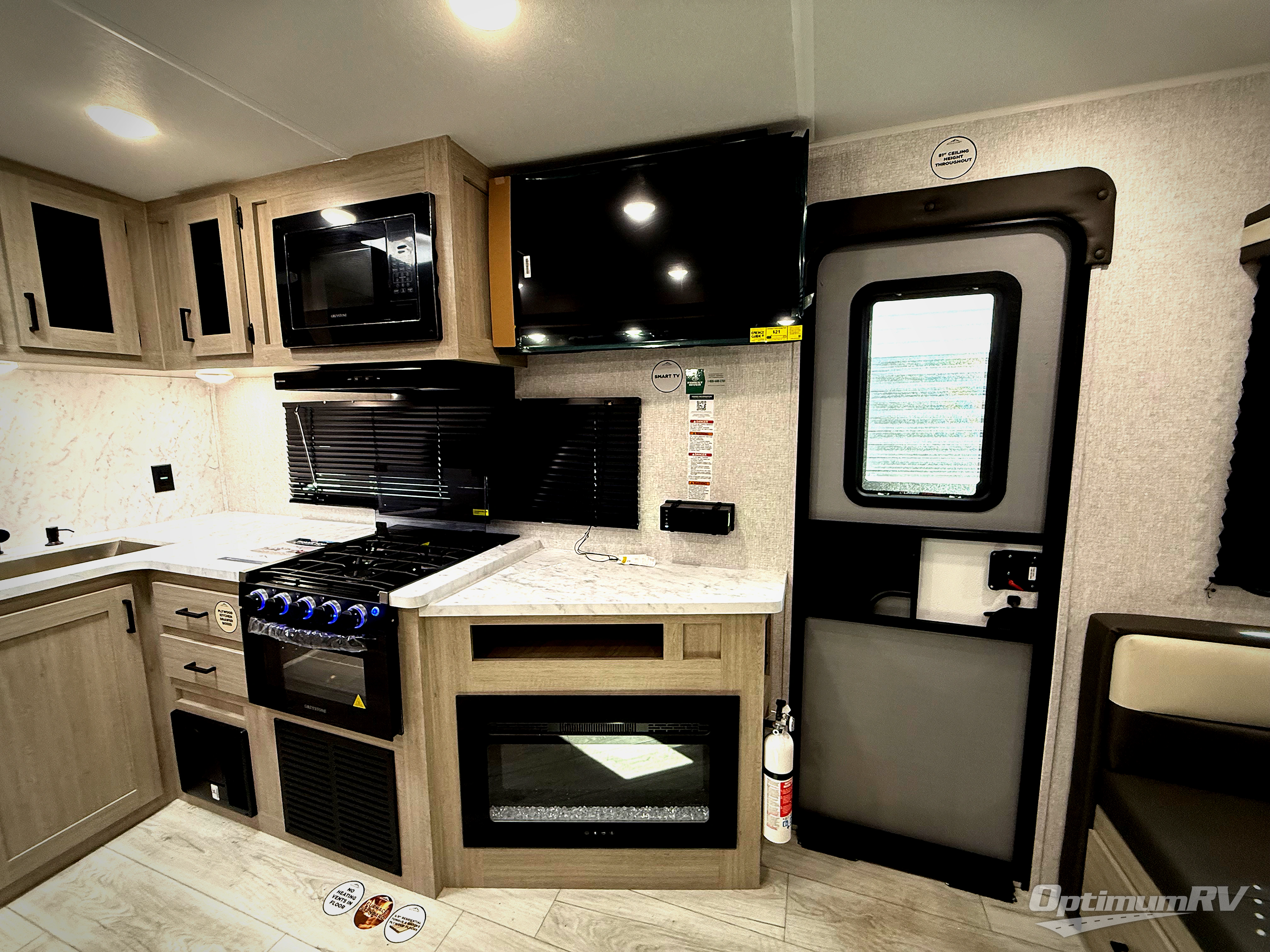 When you are wanting a little more interior space in your next travel trailer, take a look inside! This large slide out widens the main living space so you can easily make meals using full amenities without having to move for someone walking from the front bedroom and walk-through bath to the U-shaped dinette in the back. For sleeping, there is a king-size bed with storage on both sides at the very front of this unit giving you privacy from the rest, and even a private second entry/exit door from within the bedroom. You will find storage beneath the bed for larger items or extra blankets, plus a space saving sliding door. The U-shaped dinette and jackknife sofa offer comfortable seating as well as extra sleeping space for overnight guests, and the fireplace is just a nice feature to enjoy. On the outside, an 18' awning provides a large outdoor living area protected from the elements, and the oversized pass-through will house all of your exterior gear like lawn chairs, outdoor games and rugs, plus so much more!