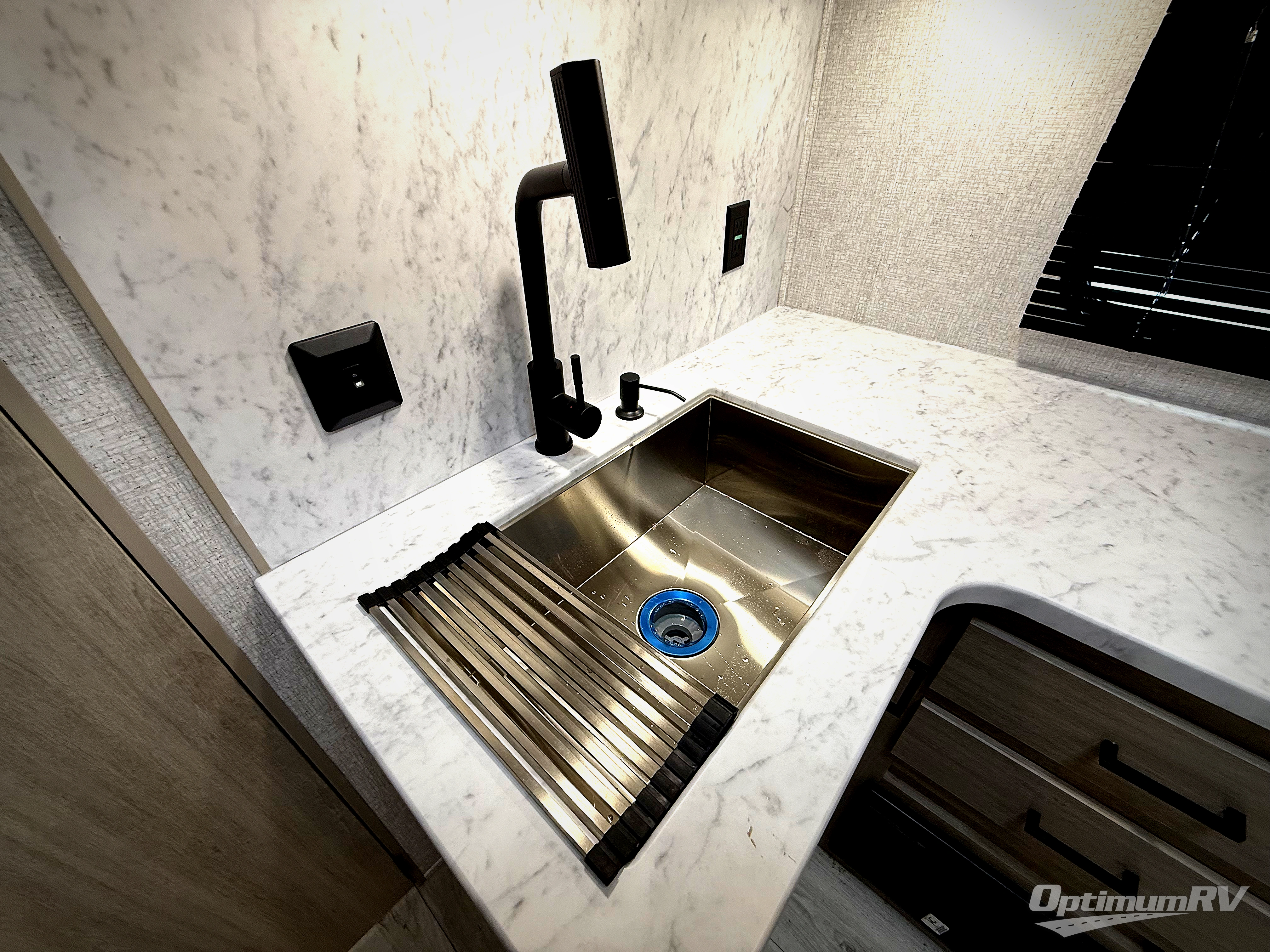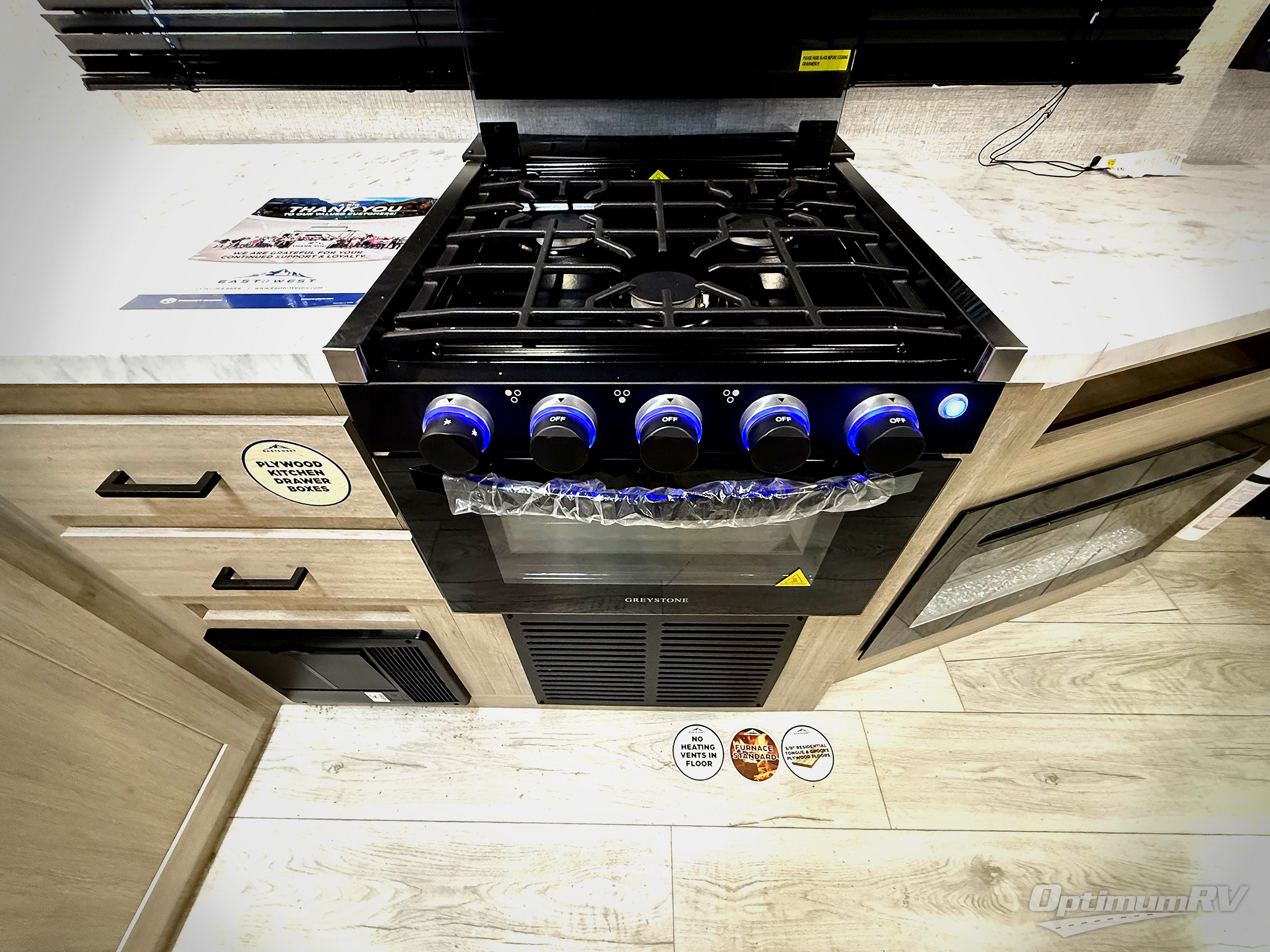 Each Della Terra travel trailer by EAST TO WEST is constructed with an enclosed and heated underbelly and enclosed holding tanks so you can camp all year long. There is also a power tongue jack with an LED light for easy set up and a power awning with LED lights you can rest under after you've unpacked. The Explore Comfort Package comes seamless pressed countertops, kitchen backsplash, window valance package with black night shades, and many more comforts. You will also appreciate the Adventure Outdoor Package with backup camera prep and solar prep, a tankless water heater, an RV grill quick disconnect, and a universal docking station with battery disconnect.