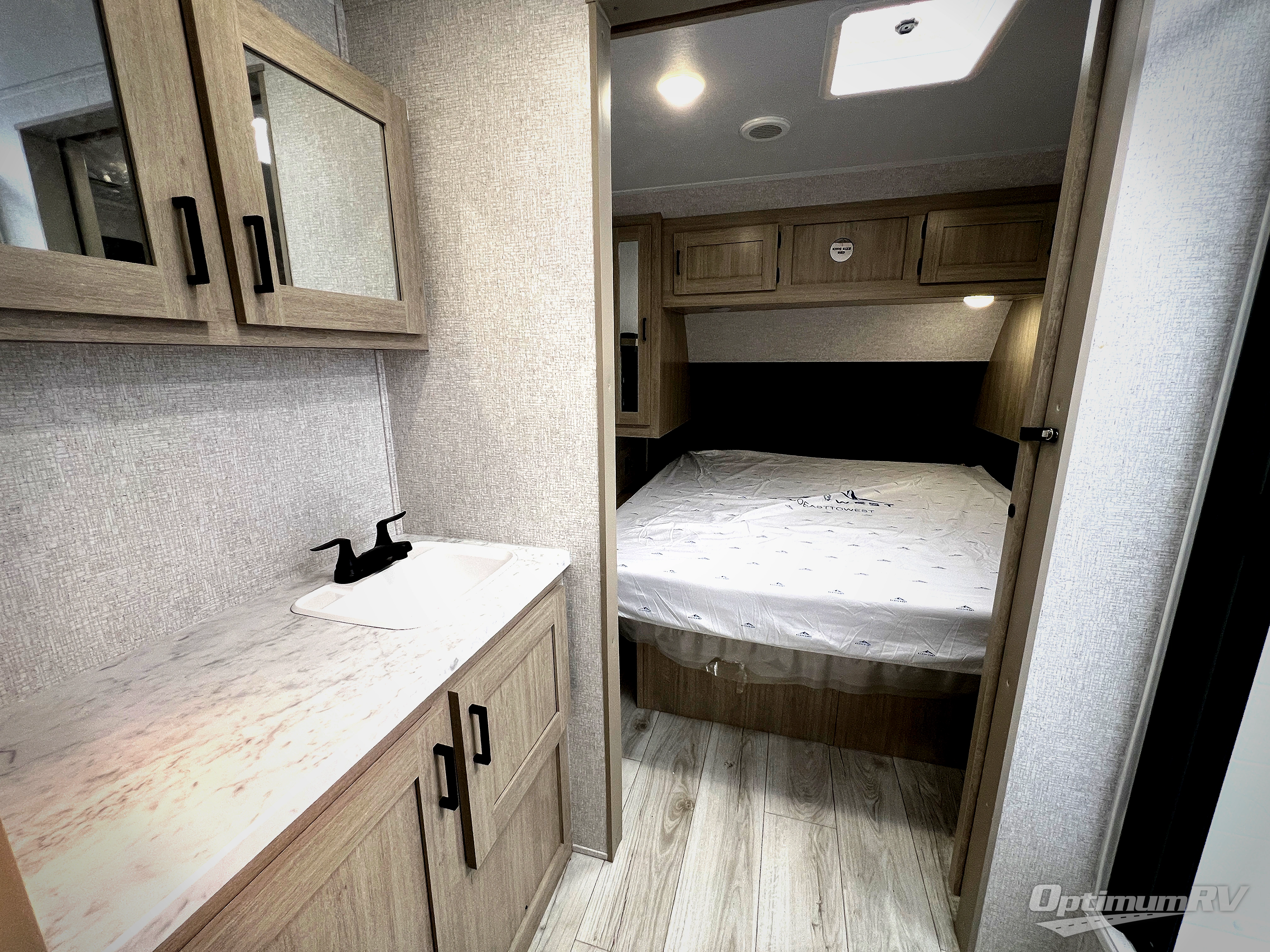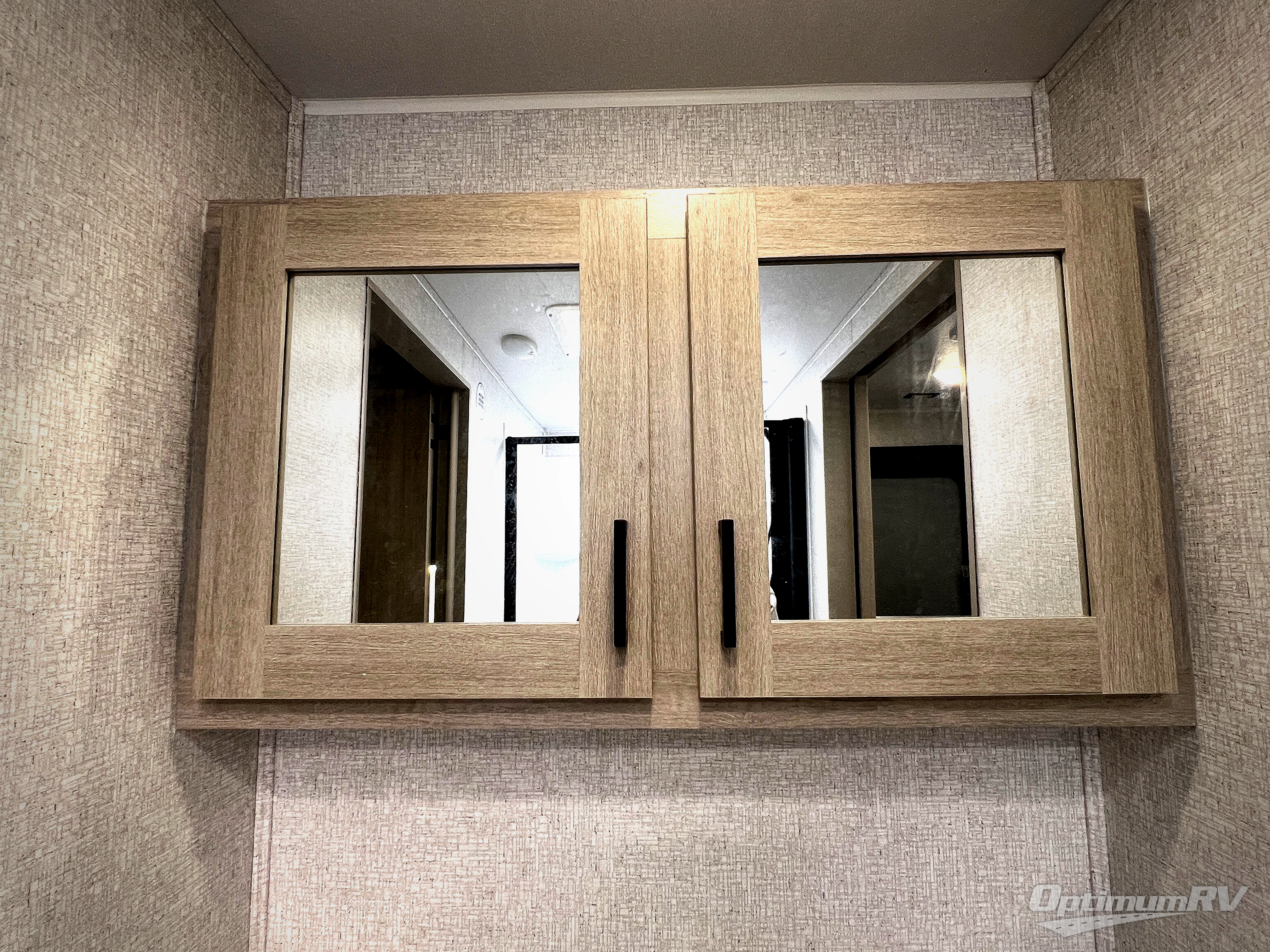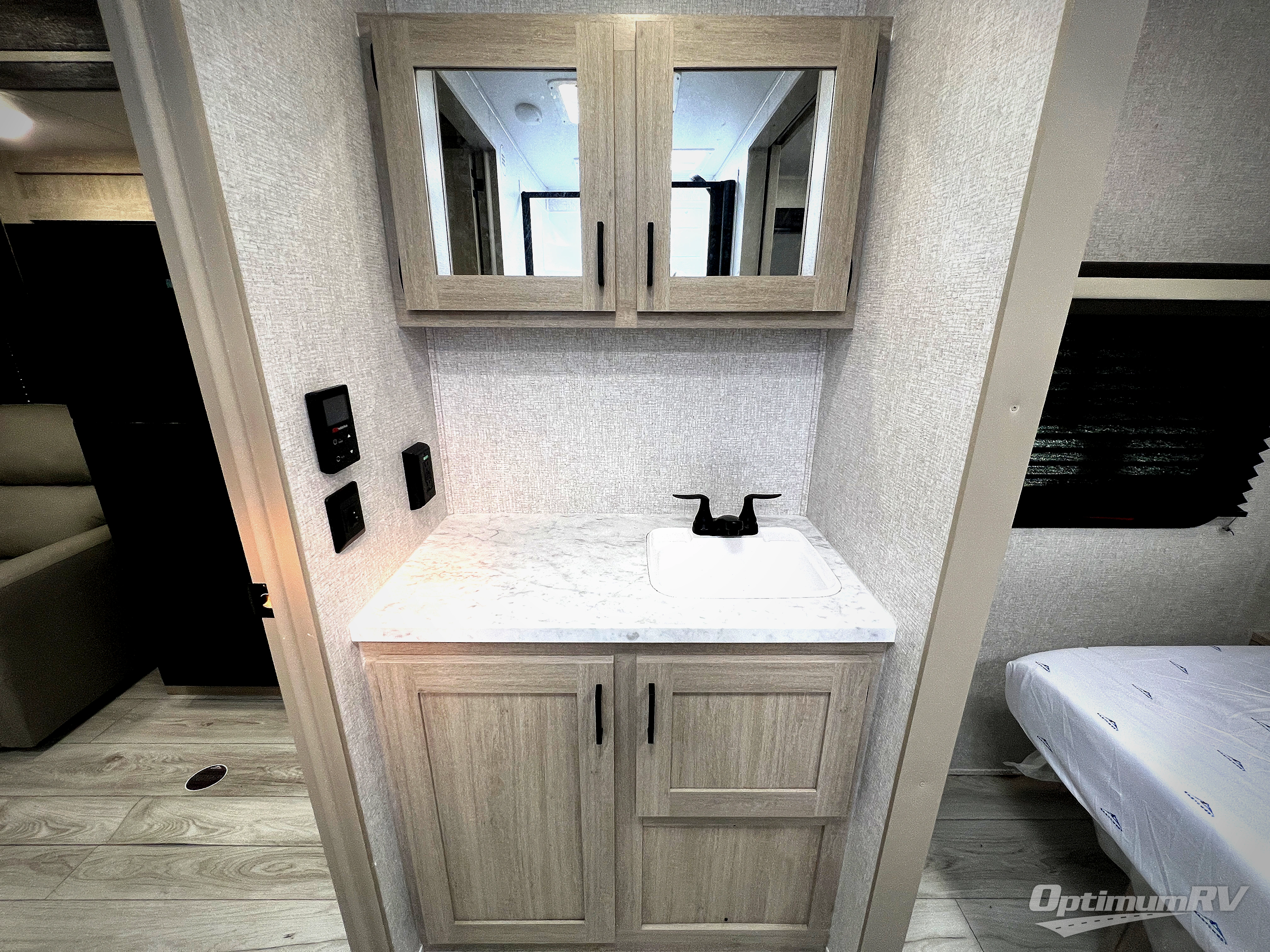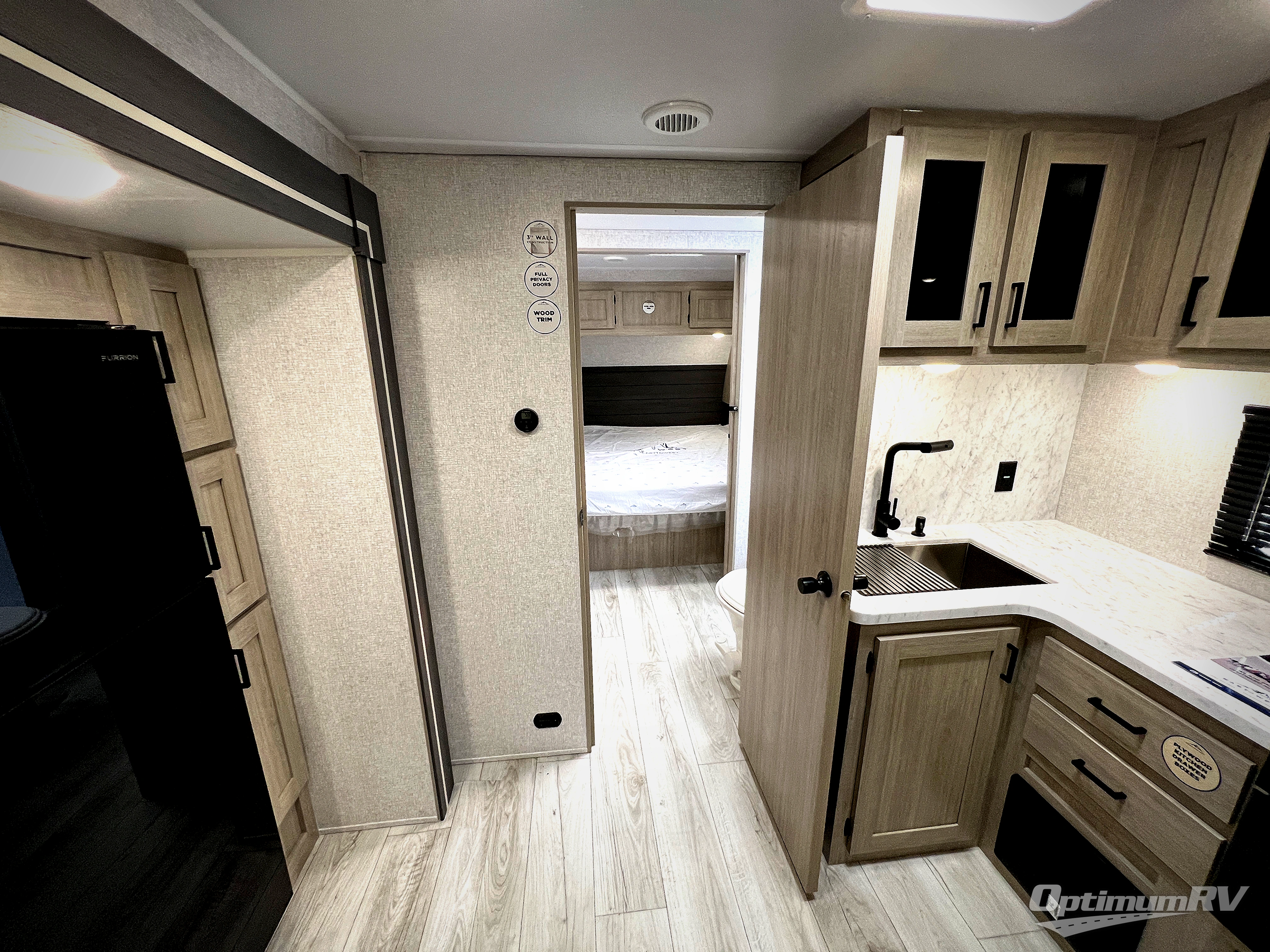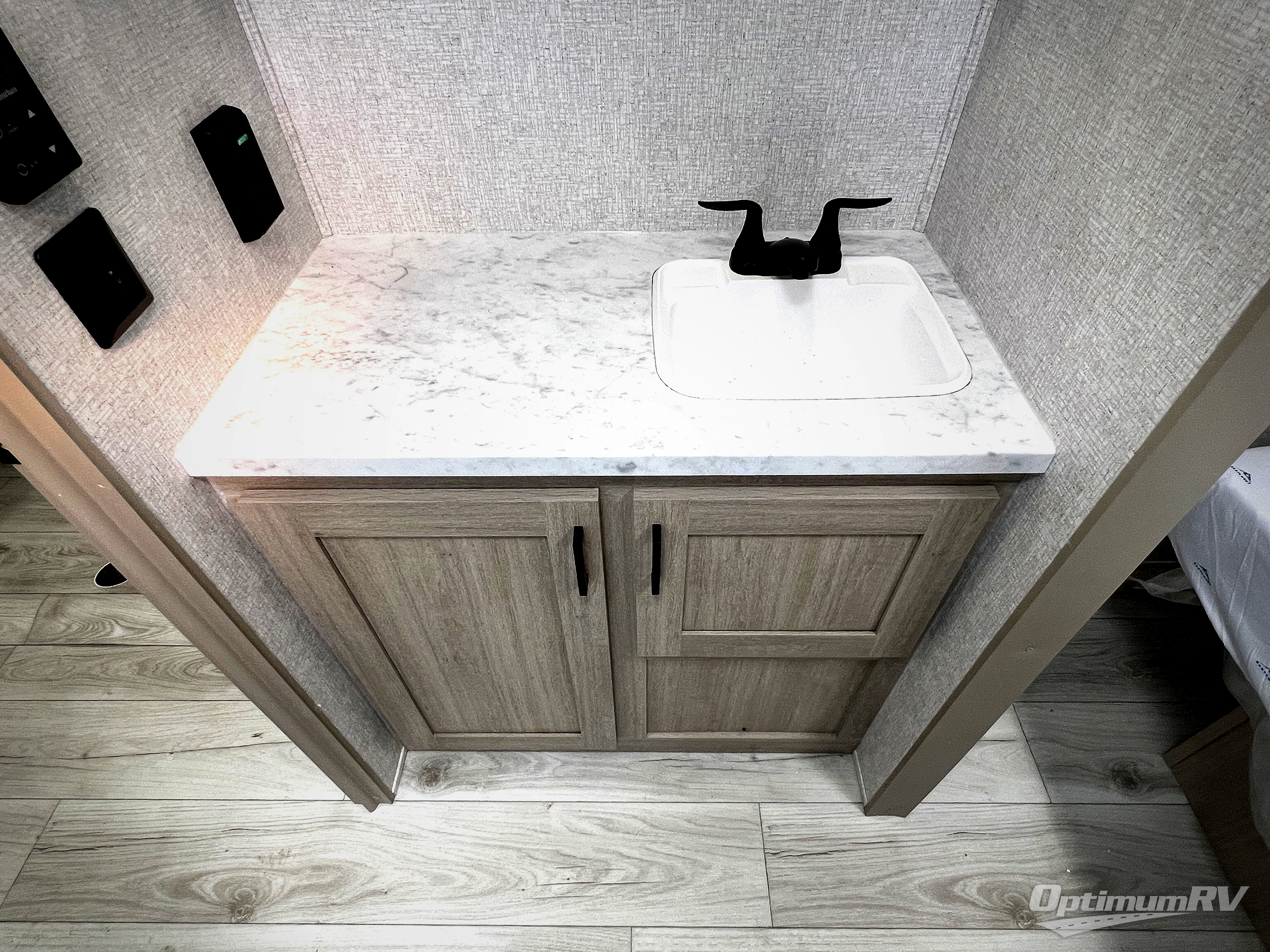 When you are wanting a little more interior space in your next travel trailer, take a look inside! This large slide out widens the main living space so you can easily make meals using full amenities without having to move for someone walking from the front bedroom and walk-through bath to the U-shaped dinette in the back. For sleeping, there is a king-size bed with storage on both sides at the very front of this unit giving you privacy from the rest, and even a private second entry/exit door from within the bedroom. You will find storage beneath the bed for larger items or extra blankets, plus a space saving sliding door. The U-shaped dinette and jackknife sofa offer comfortable seating as well as extra sleeping space for overnight guests, and the fireplace is just a nice feature to enjoy. On the outside, an 18' awning provides a large outdoor living area protected from the elements, and the oversized pass-through will house all of your exterior gear like lawn chairs, outdoor games and rugs, plus so much more!