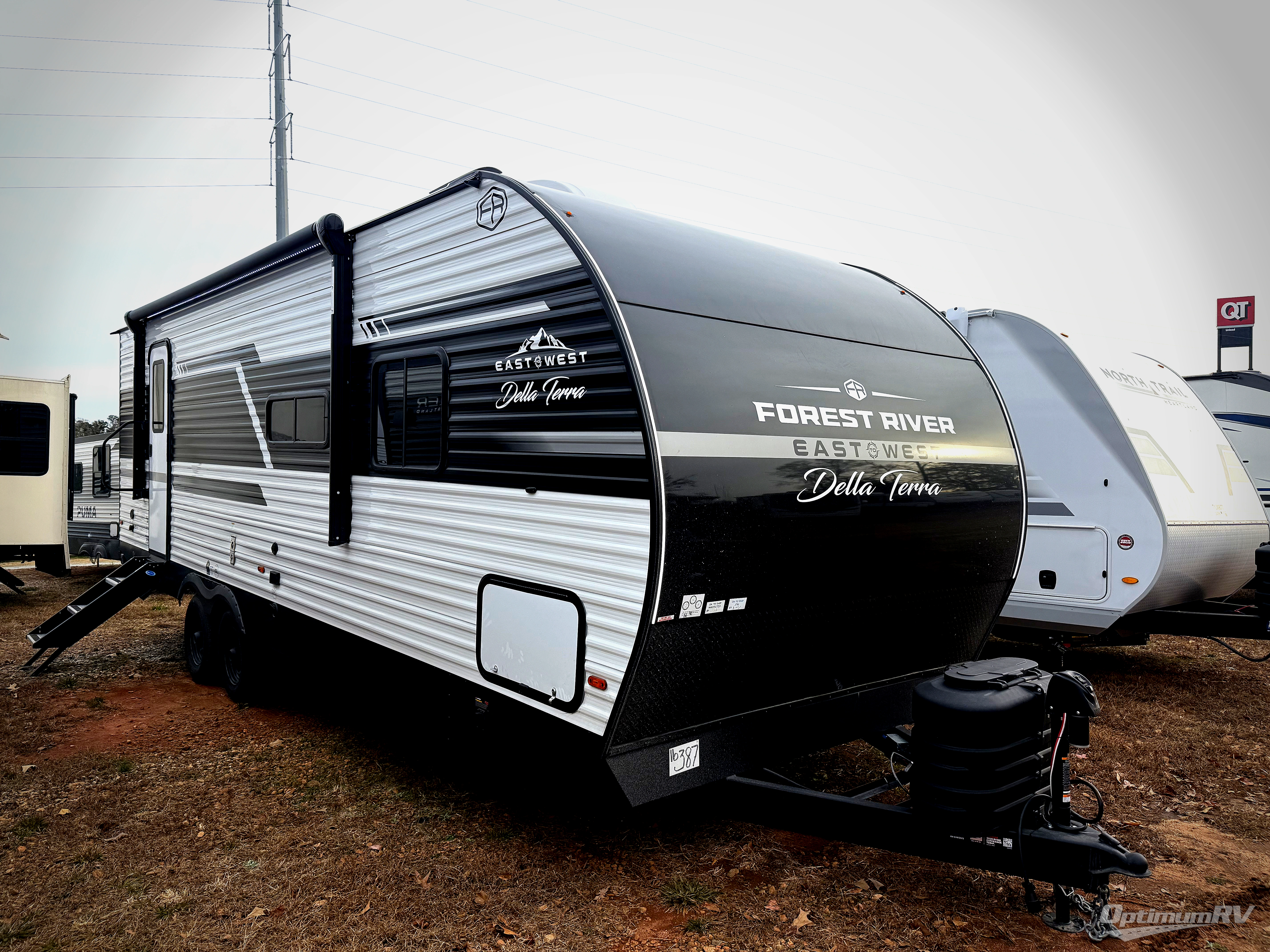 Each Della Terra travel trailer by EAST TO WEST is constructed with an enclosed and heated underbelly and enclosed holding tanks for added protection against the elements. There is also a power tongue jack with an LED light for easy set up and a power awning with LED lights you can rest under after you've unpacked. The Explore Comfort Package comes seamless pressed countertops, kitchen backsplash, window valance package with black night shades, and many more comforts. You will also appreciate the Adventure Outdoor Package with backup camera prep and solar prep, a tankless water heater, an RV grill quick disconnect, and a universal docking station with battery disconnect.