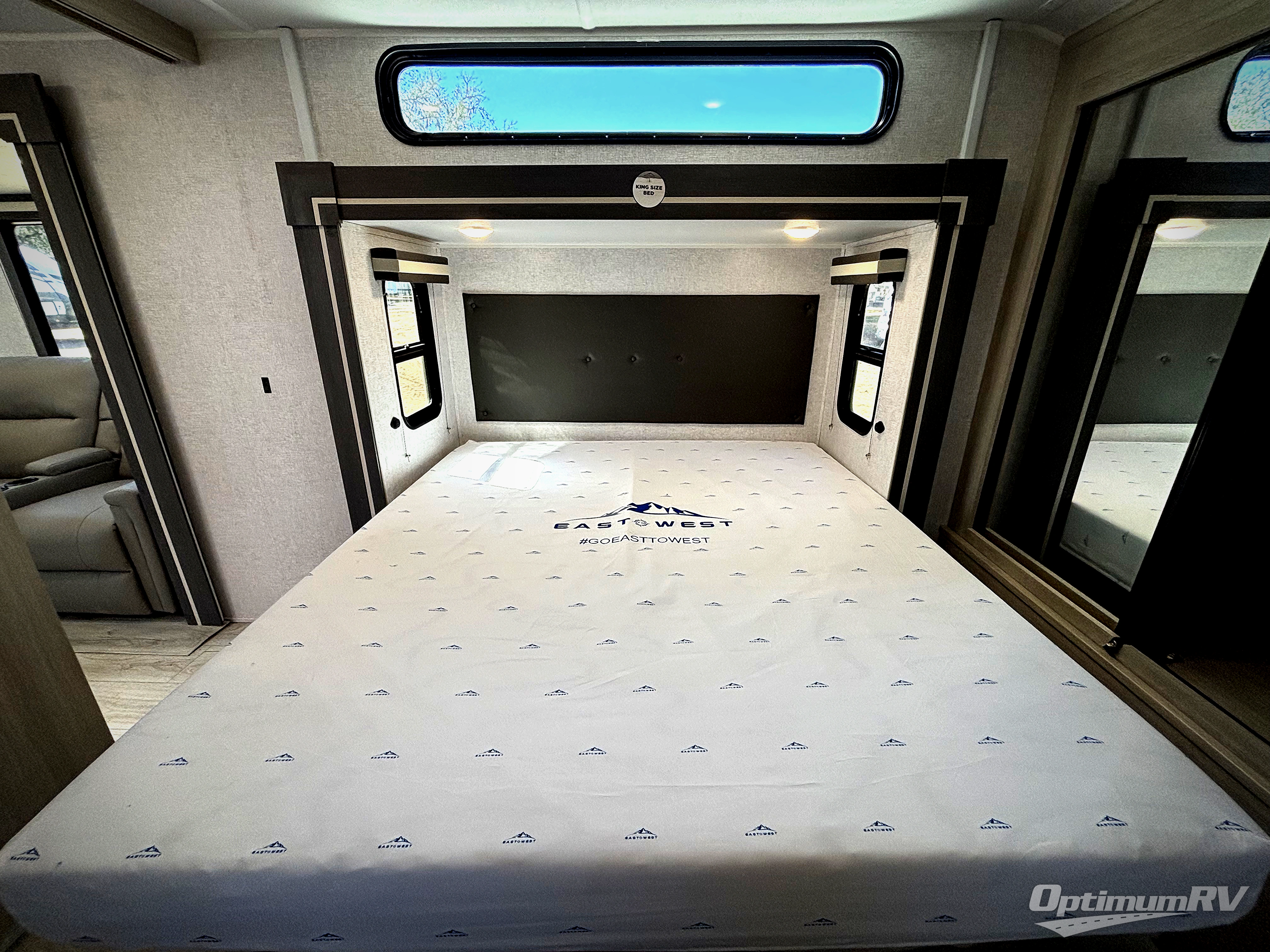 Each Della Terra travel trailer by EAST TO WEST is constructed with an enclosed and heated underbelly and enclosed holding tanks so you can camp all year long. There is also a power tongue jack with an LED light for easy set up and a power awning with LED lights you can rest under after you've unpacked. The Explore Comfort Package comes seamless pressed countertops, kitchen backsplash, window valance package with black night shades, and many more comforts. You will also appreciate the Adventure Outdoor Package with backup camera prep and solar prep, a tankless water heater, an RV grill quick disconnect, and a universal docking station with battery disconnect.