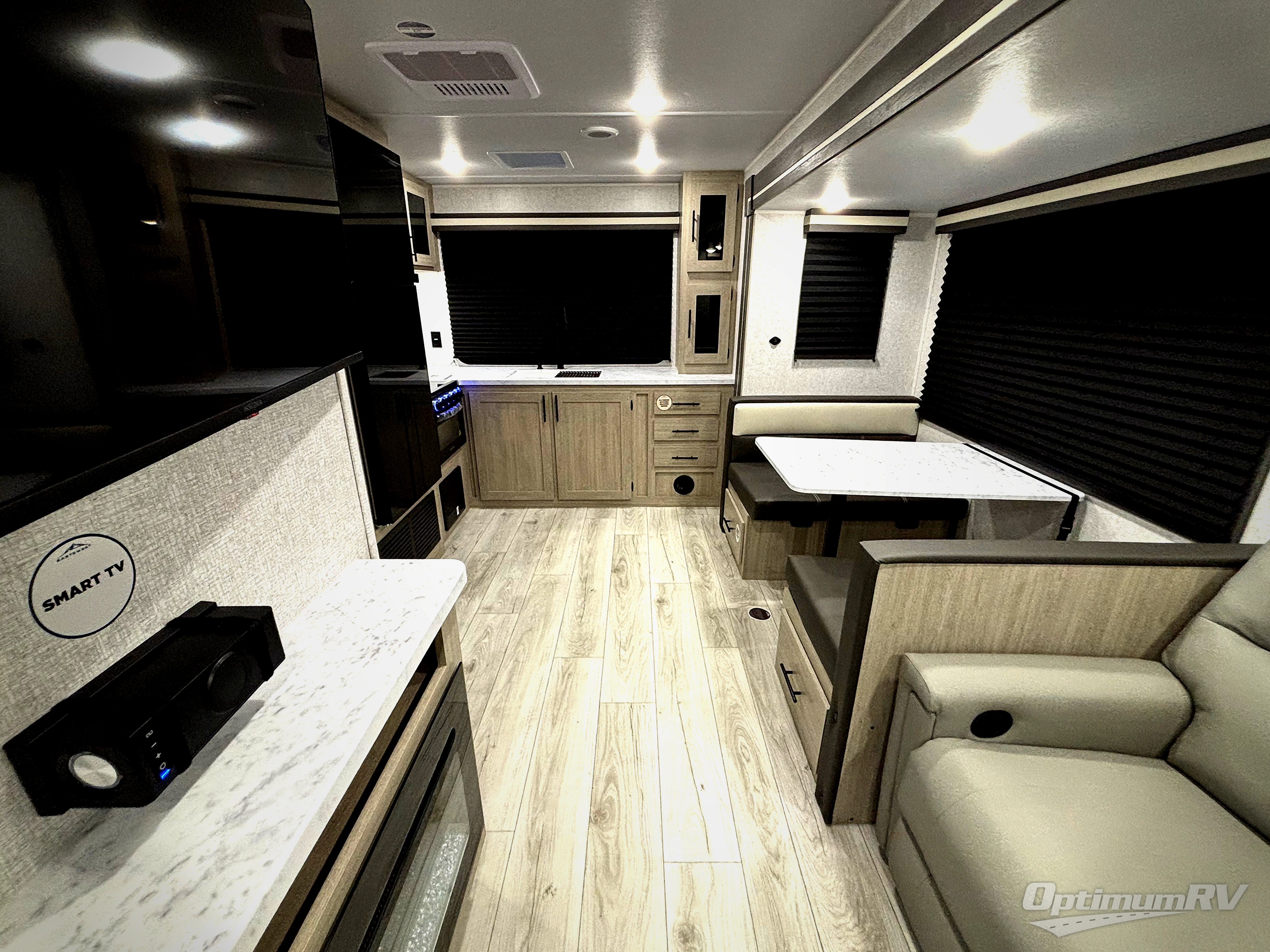 Each Della Terra travel trailer by EAST TO WEST is constructed with an enclosed and heated underbelly and enclosed holding tanks for added protection against the elements. There is also a power tongue jack with an LED light for easy set up and a power awning with LED lights you can rest under after you've unpacked. The Explore Comfort Package comes seamless pressed countertops, kitchen backsplash, window valance package with black night shades, and many more comforts. You will also appreciate the Adventure Outdoor Package with backup camera prep and solar prep, a tankless water heater, an RV grill quick disconnect, and a universal docking station with battery disconnect.