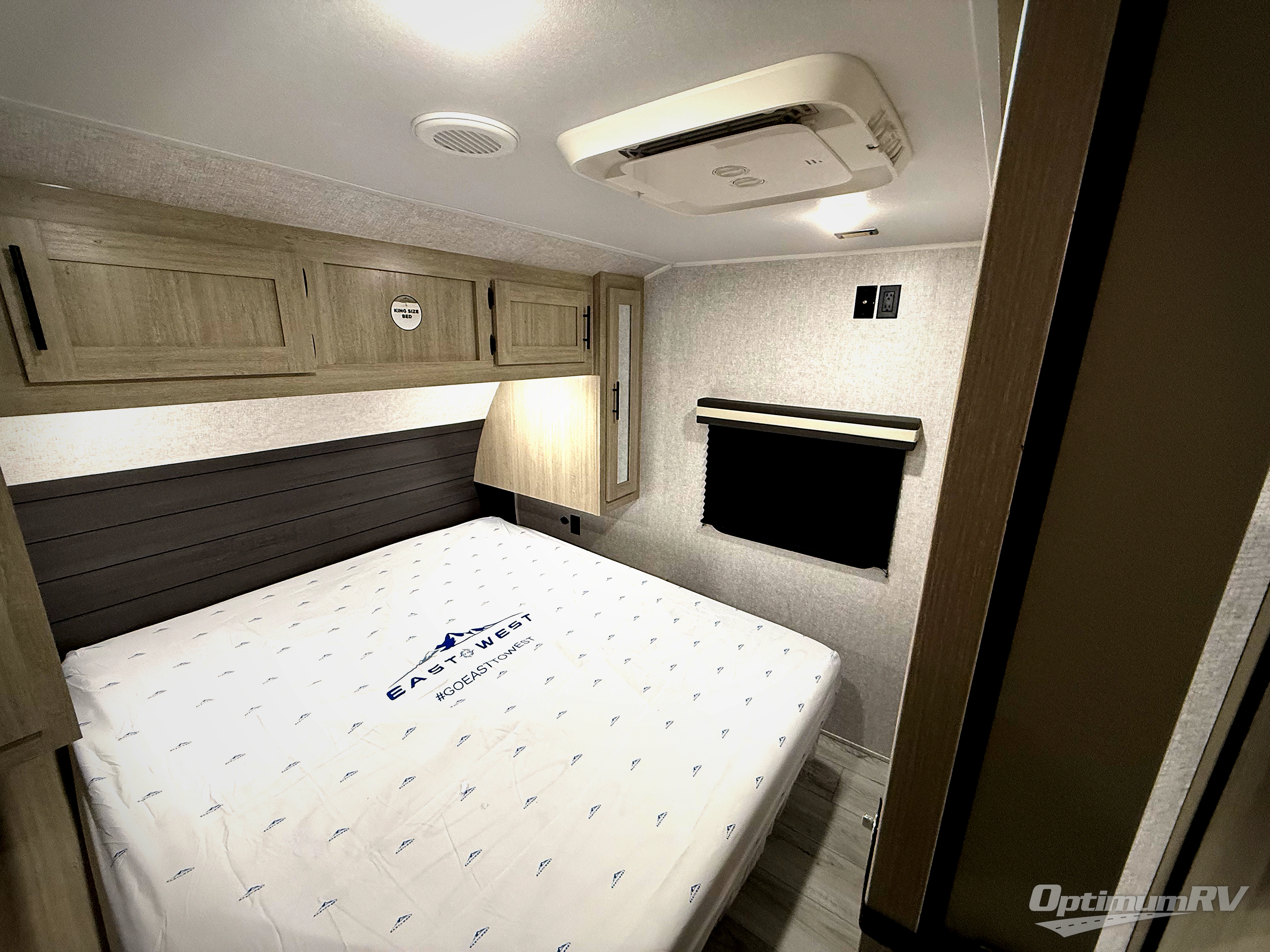 Each Della Terra travel trailer by EAST TO WEST is constructed with an enclosed and heated underbelly and enclosed holding tanks for added protection against the elements. There is also a power tongue jack with an LED light for easy set up and a power awning with LED lights you can rest under after you've unpacked. The Explore Comfort Package comes seamless pressed countertops, kitchen backsplash, window valance package with black night shades, and many more comforts. You will also appreciate the Adventure Outdoor Package with backup camera prep and solar prep, a tankless water heater, an RV grill quick disconnect, and a universal docking station with battery disconnect.