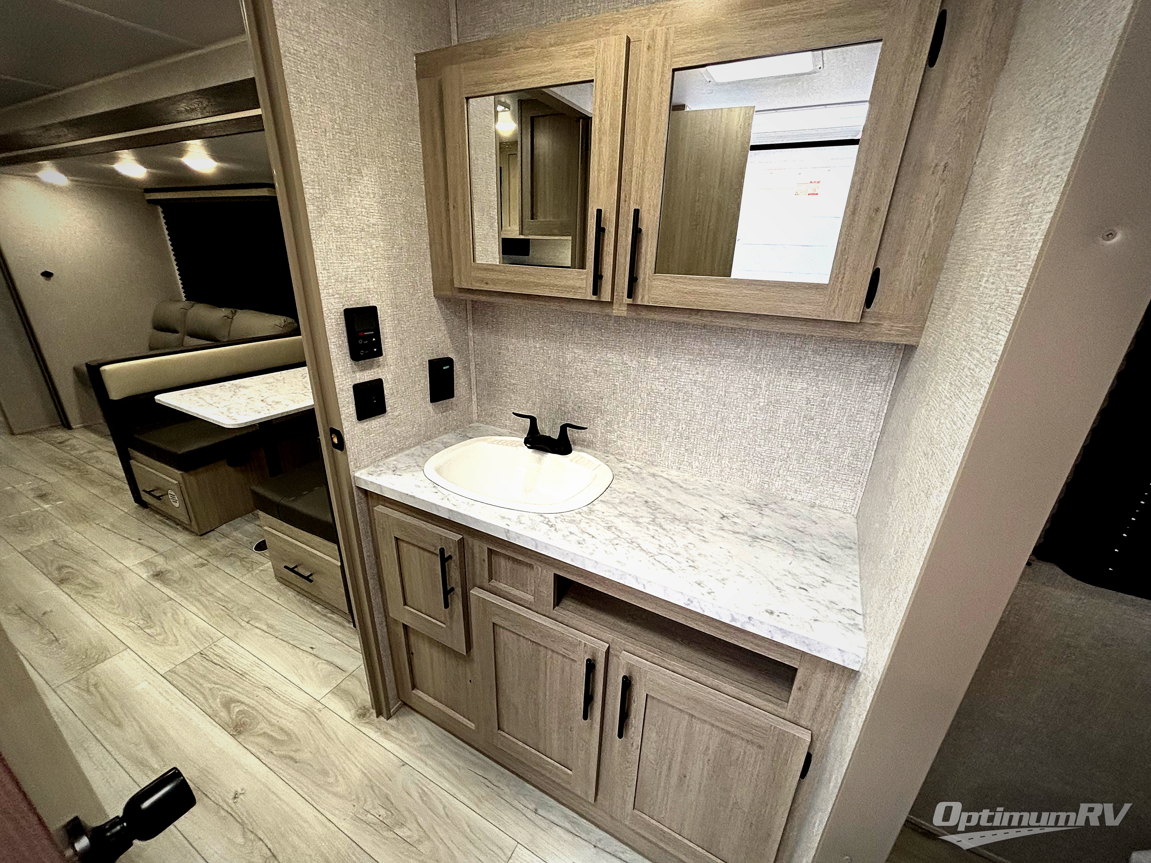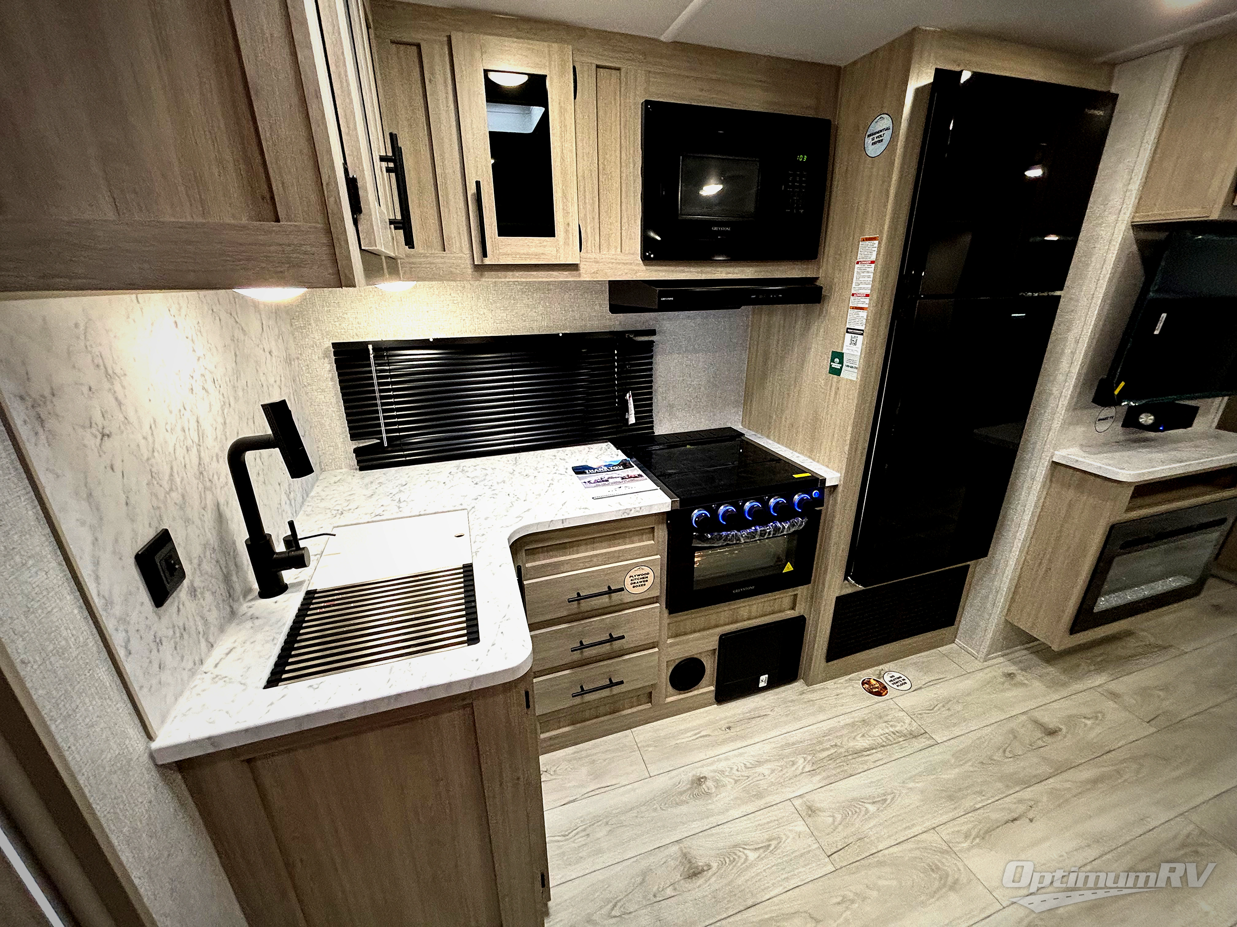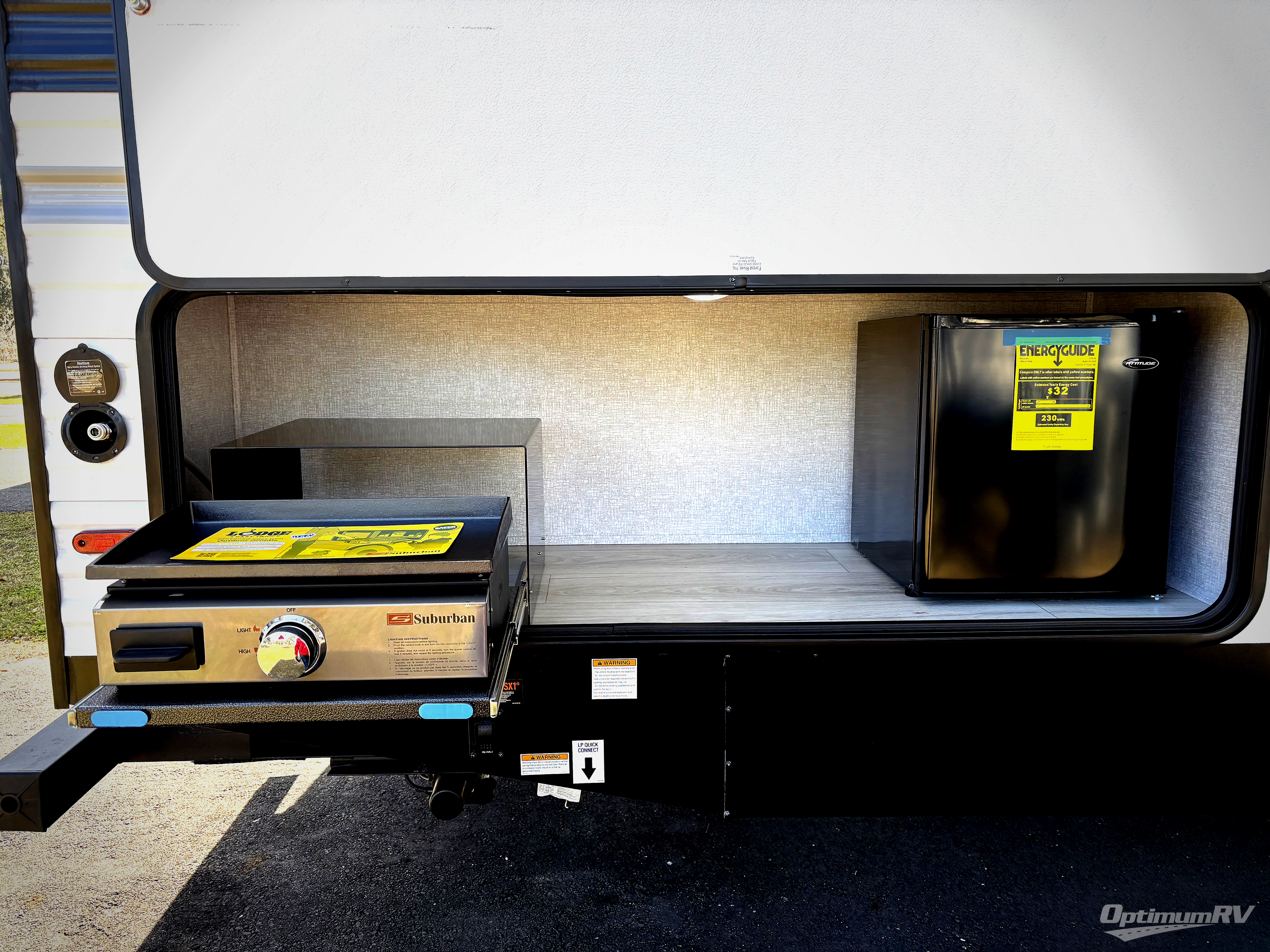 Head to the RV park for a long-weekend or week-long break from your everyday routine with this trailer at your favorite campsite. After setting up the two slide outs and the 15' power awning, you can relax inside on the jack knife sofa, dine at the oversized booth dinette or whip up a meal in the L-shaped kitchen. Everyone will enjoy the fireplace no matter what you are doing. The walk-through bathroom is super convenient, and the front bedroom allows you to live like royalty in privacy. The rear bunkhouse also offers privacy and includes three bunk beds and a sofa, plus storage. Your kids or guests will love having their own room. And the exterior offers an optional outdoor kitchen, an oversized pass-through storage for your larger gear like fishing poles, outdoor tables and bags of charcoal, plus there are two spray ports to easily rinse off dirty bikes, shoes and such.
