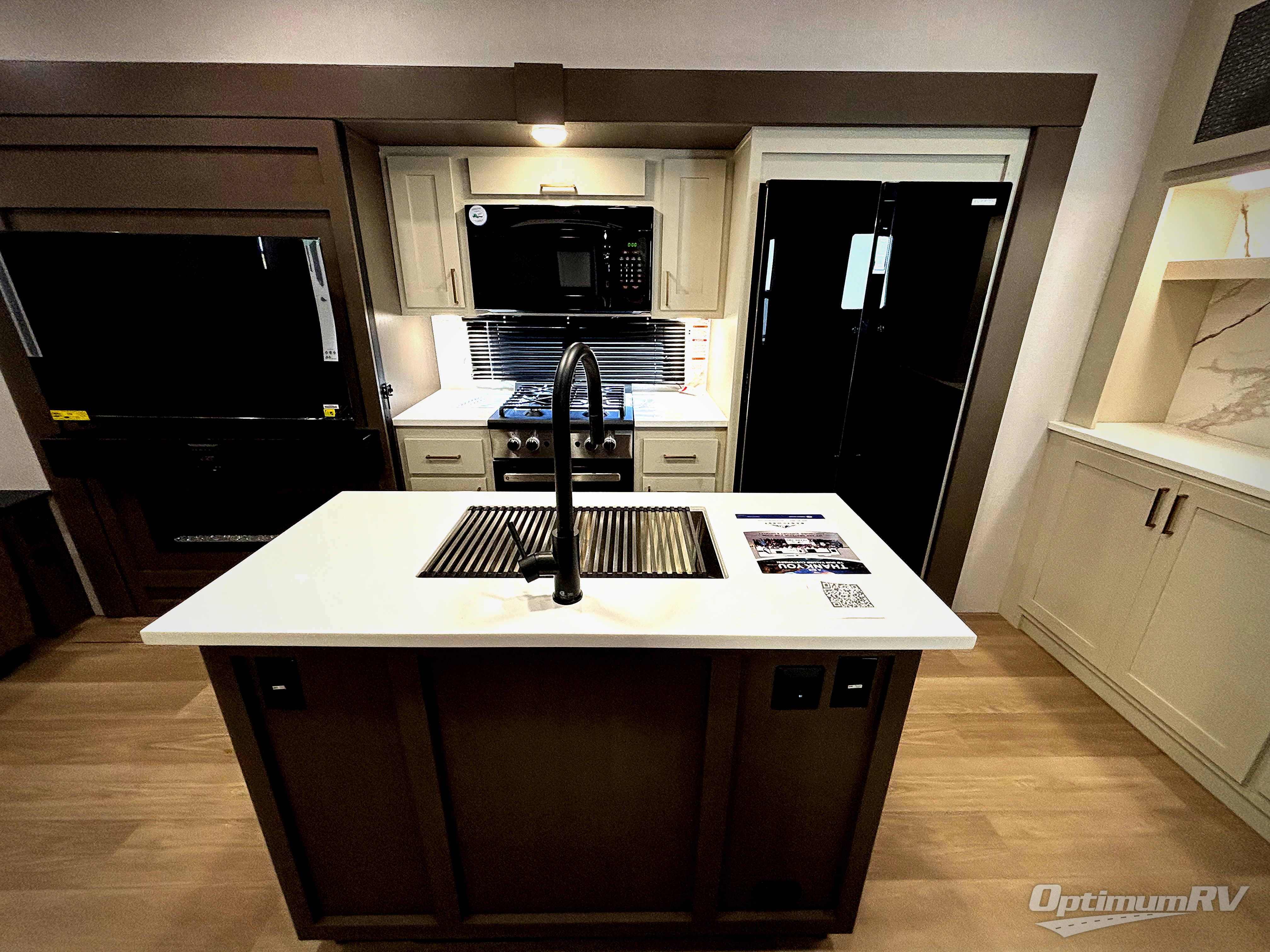 With any Tandara fifth wheel by EAST TO WEST, you will enjoy many standard features to make each trip enjoyable. The Tandara Exterior Luxury Package includes a universal all-in-one docking station, an automatic leveling system, metal slam latch cargo doors, and a 200W solar panel for off-grid capabilities. You will also appreciate the Tandara Climate Package with ductless flooring, dual attic vents, plus a heated and enclosed underbelly for added protection. Inside, you'll find a flush floor kitchen slide, Slow Rise roller shades, solid surface kitchen countertops, and more stand-out features included in the Tandara Interior Luxury Package.