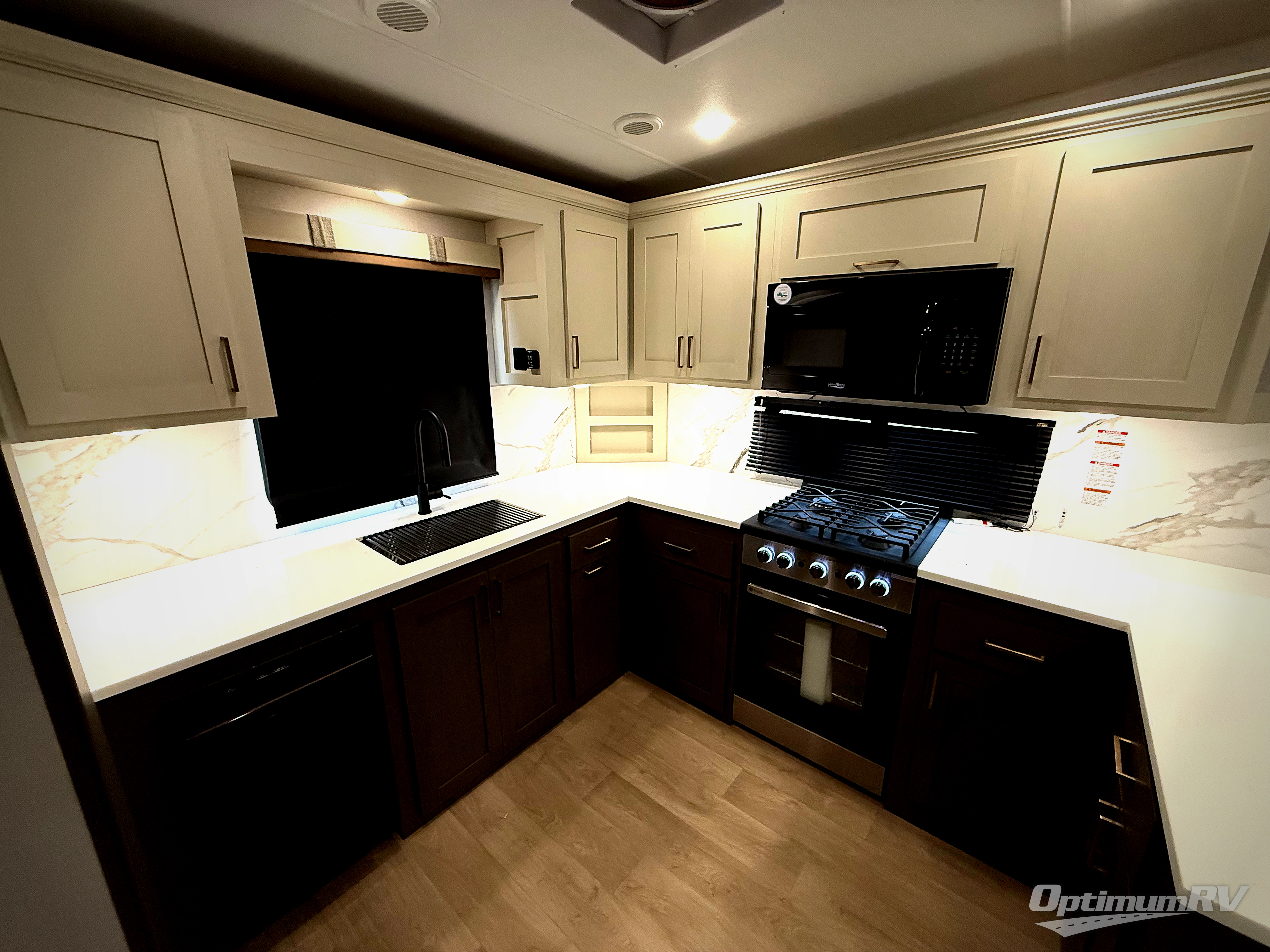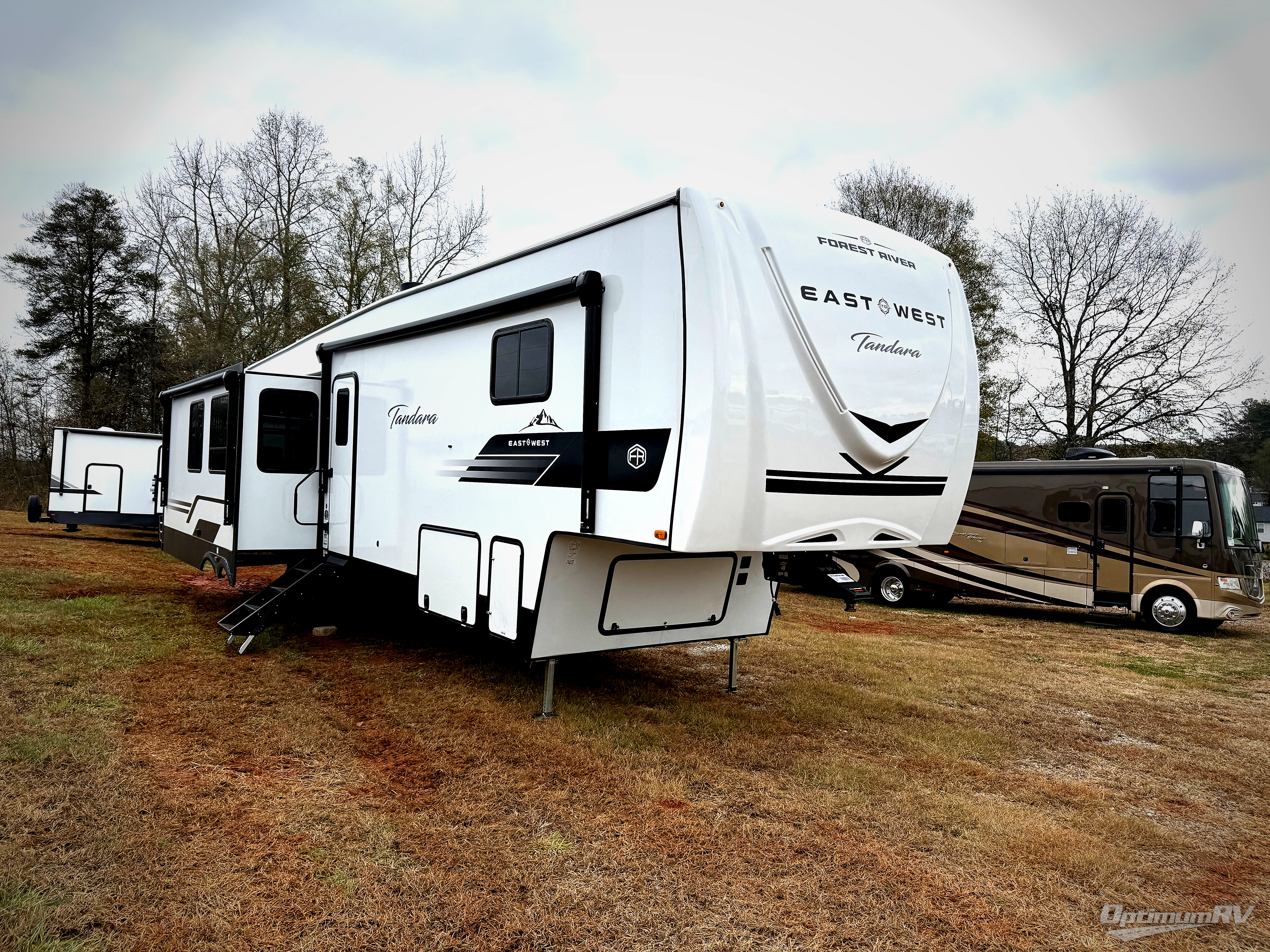 With any Tandara fifth wheel by EAST TO WEST, you will enjoy many standard features to make each trip enjoyable. The Tandara Exterior Luxury Package includes a universal all-in-one docking station, an automatic leveling system, metal slam latch cargo doors, and a 200W solar panel for off-grid capabilities. You will also appreciate the Tandara Climate Package with ductless flooring, dual attic vents, plus a heated and enclosed underbelly for added protection. Inside, you'll find a flush floor kitchen slide, Slow Rise roller shades, solid surface kitchen countertops, and more stand-out features included in the Tandara Interior Luxury Package.