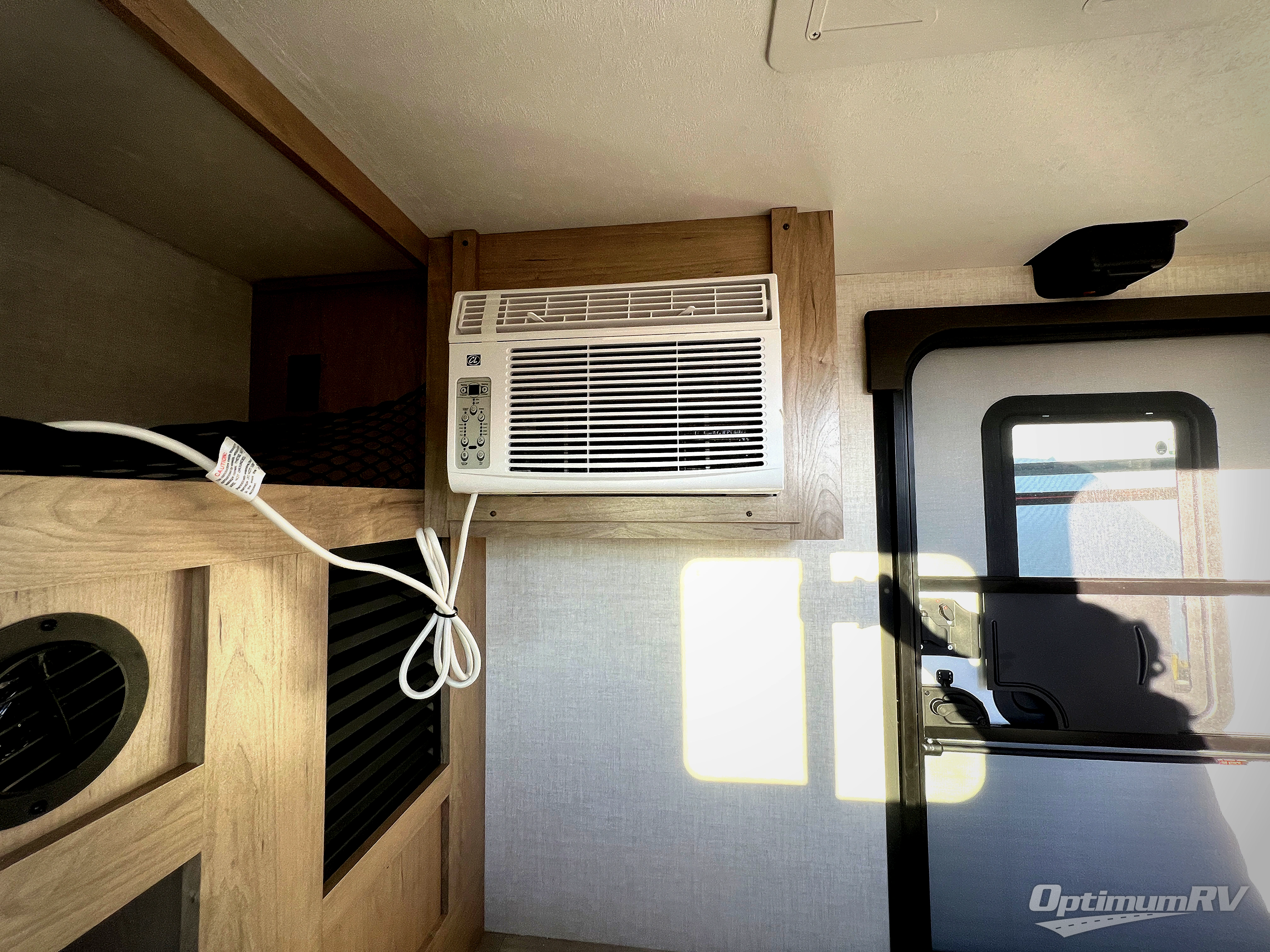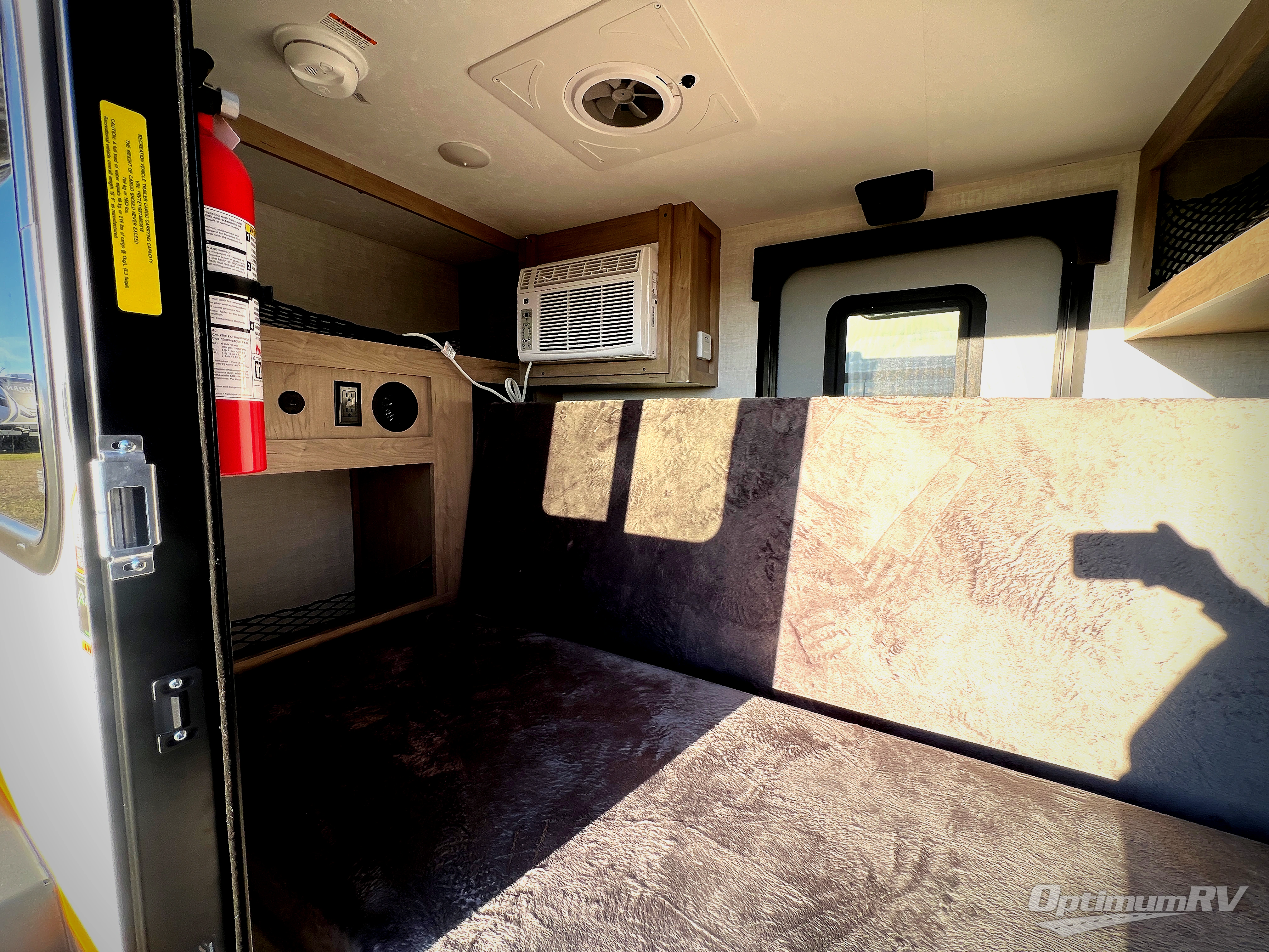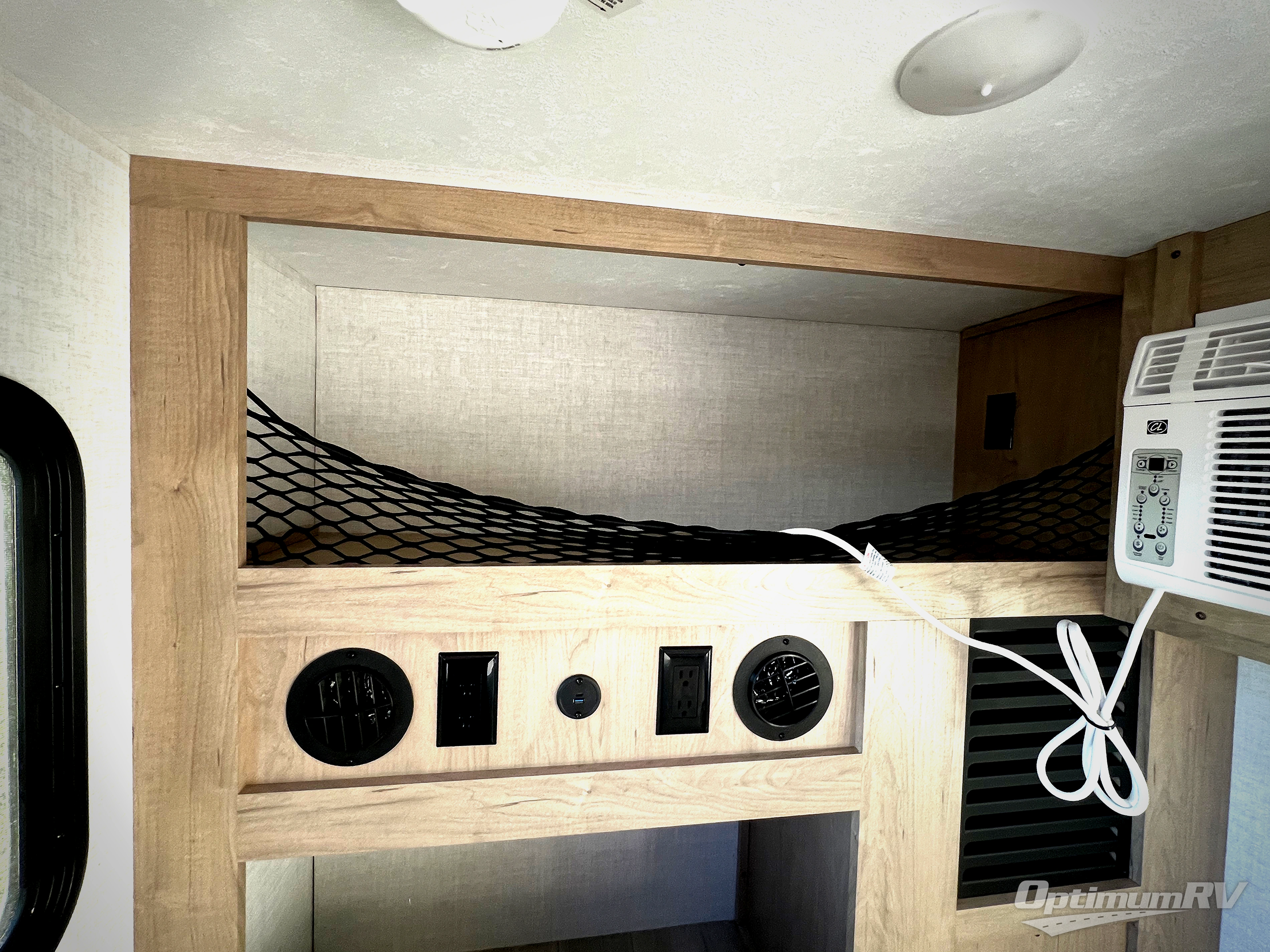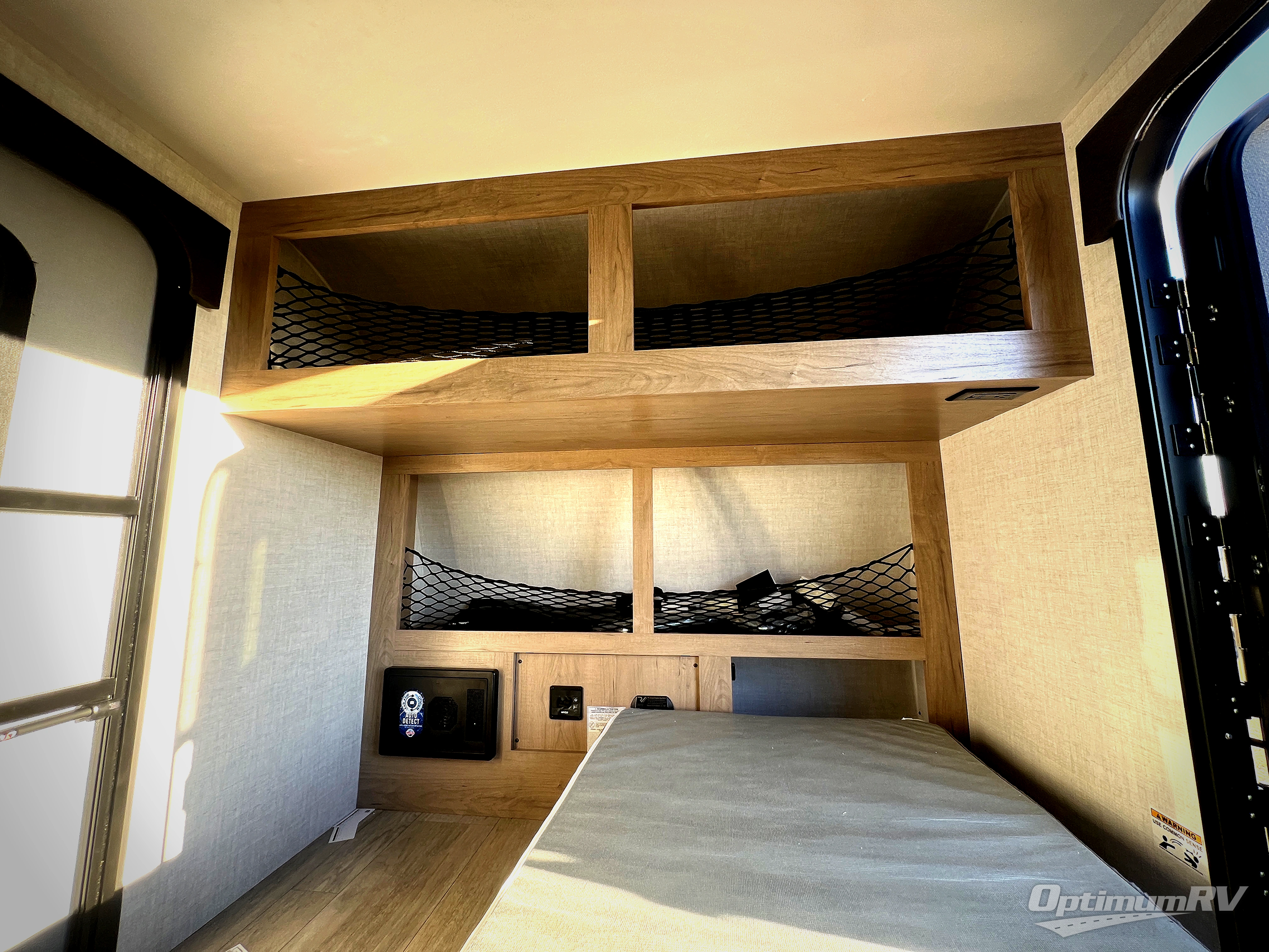 This compact travel trailer is easy to tow and easy to love! There are fender steps so that you can reach the top of your unit, which will especially be helpful if you choose to add the optional Thule roof rack system. You will also find a 6.5" manual awning outside or you can choose the optional batwing awning. The rear kitchen includes a griddle which attaches to the LP Quick Connect, a sink, plus an overhead shelf for food storage. An optional 1.7 cu. ft. refrigerator can be added for even more convenience. Inside, you'll enjoy the dual 28" x 84" mattresses with a converted 56" x 84" "California Queen" sleeping space for a great night's rest. There are also front overhead shelves with shelving below plus floor to ceiling shelves in the back so nothing gets left behind.