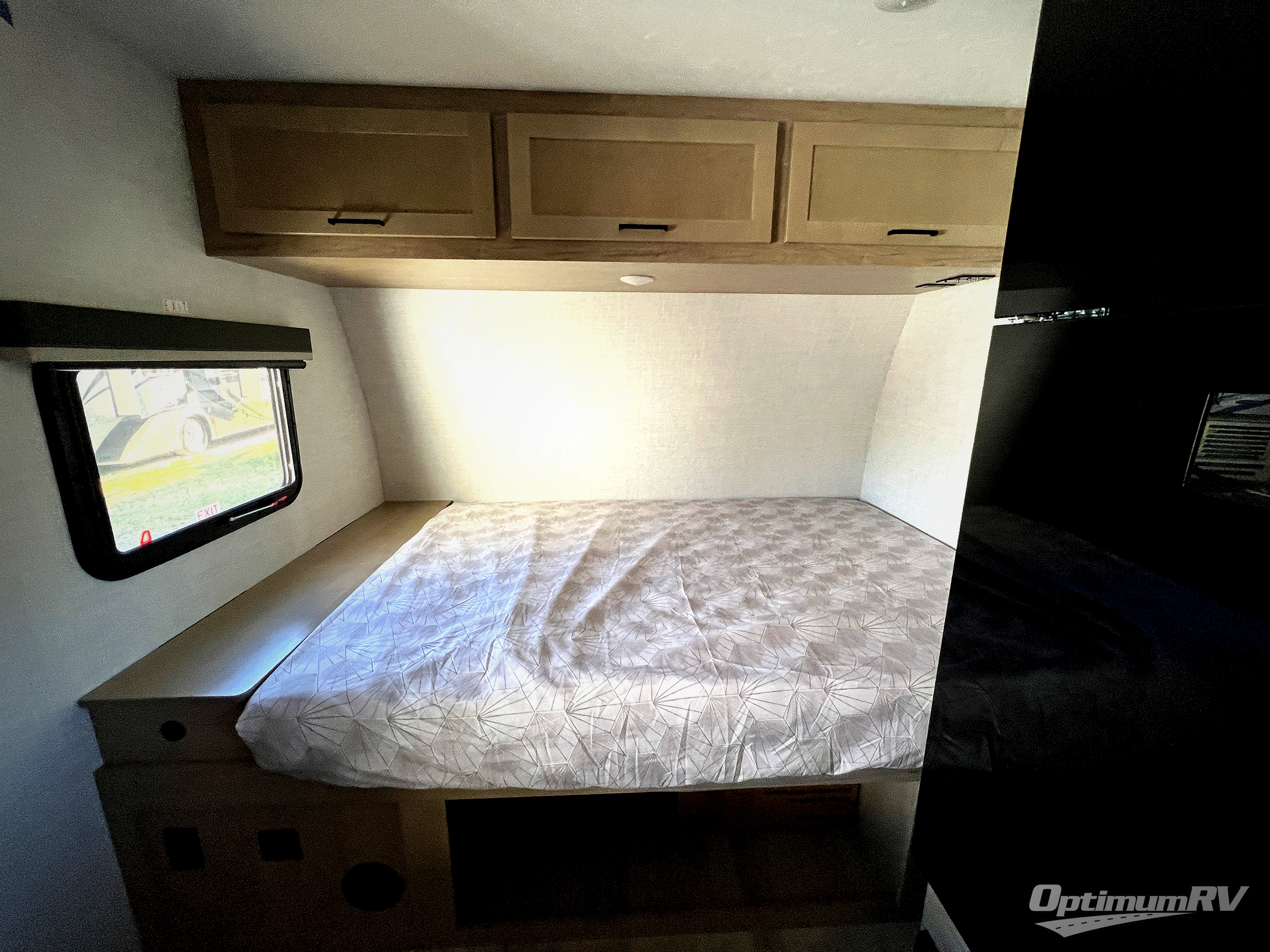 Time at the campground in this travel trailer will be time well spent. Once you arrive at your destination, you can put out the 14' electric awning, unpack the pass-through storage, then head inside for lunch. There is an air fryer convection microwave plus a dual burner cooktop to make meals each day, and the 10 cu. ft. 12V refrigerator will keep your food fresh. A legless dinette slide provides a place to dine together and even let a guest sleep over. If you're not needing the extra sleeping space, just choose the optional theater seating! You'll find the front queen bed will give you a great night's rest, and there is a full rear bath on board that will allow you to freshen up each morning.