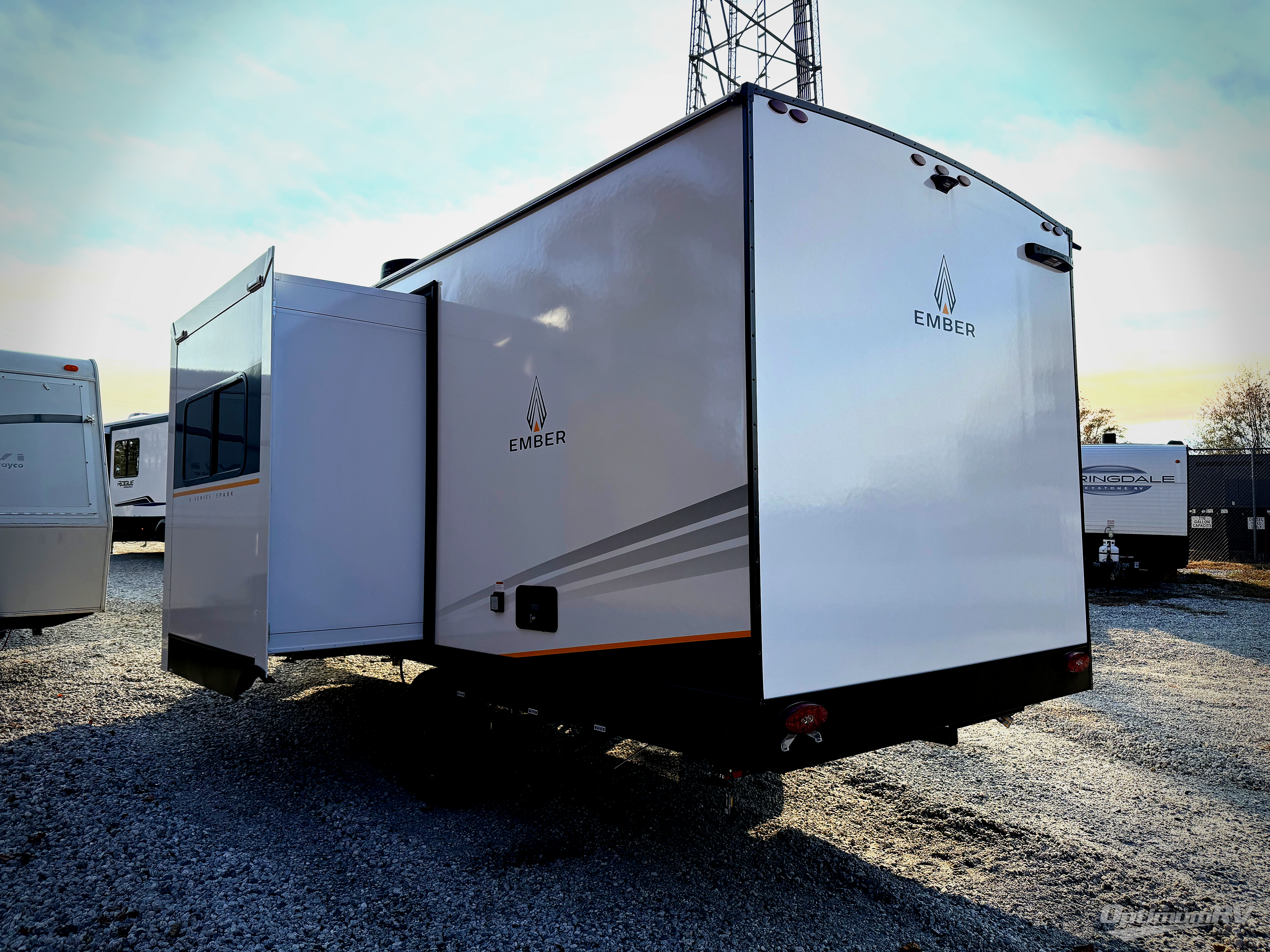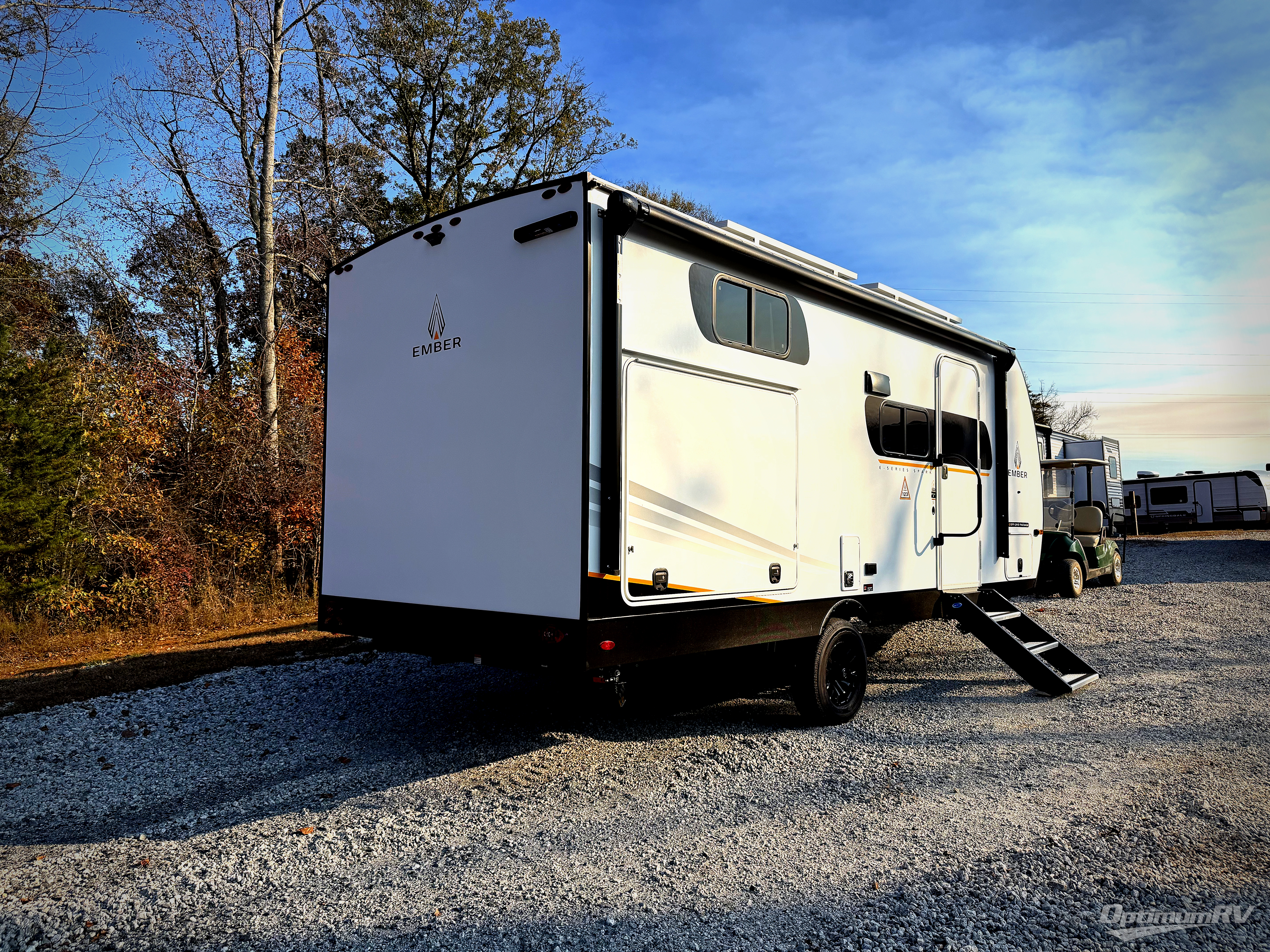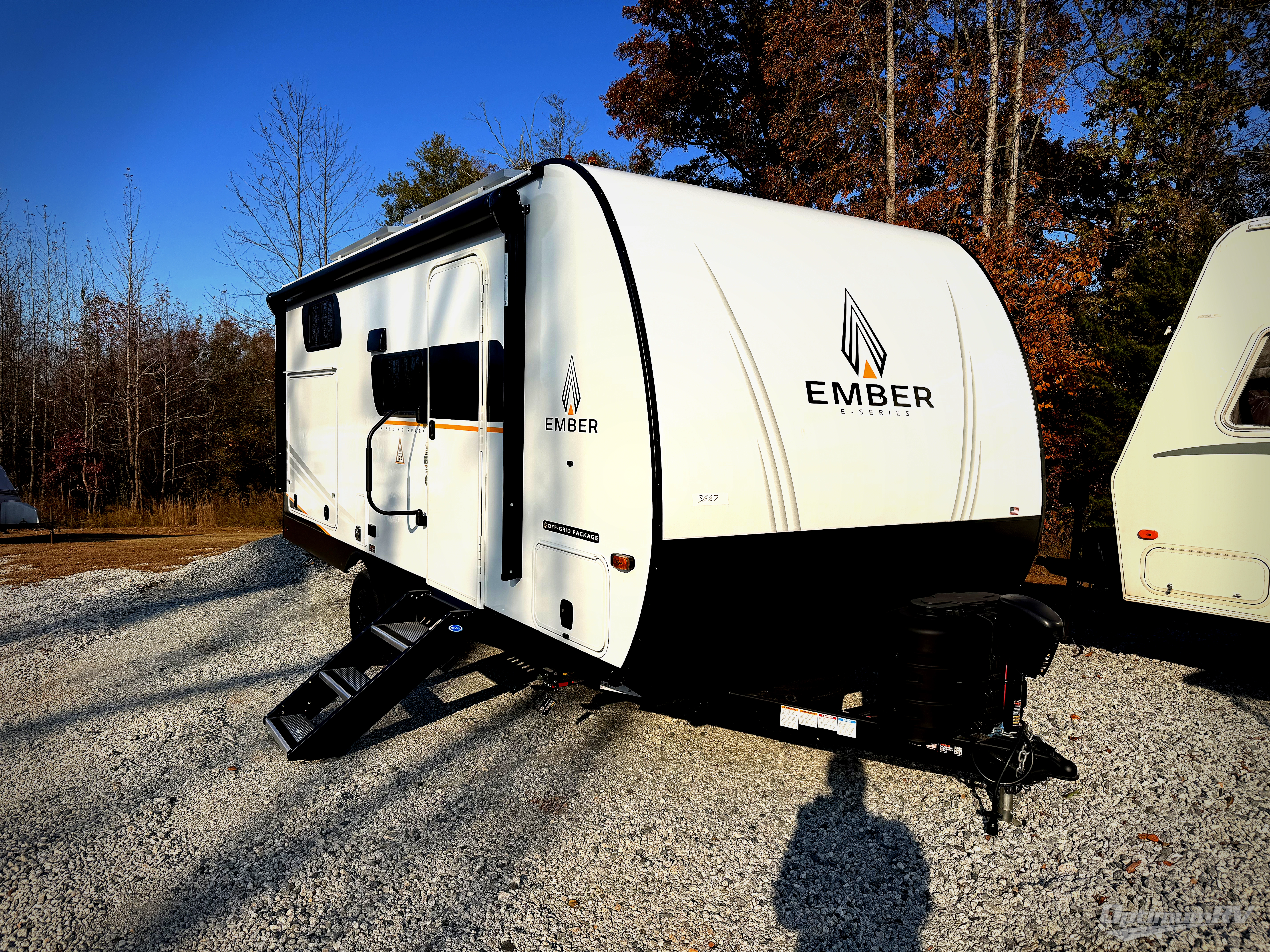 With any E-Series travel trailer by Ember RV you will enjoy a lightweight RV with all the "Essentials" needed for memorable trips in the great outdoors! Each model is constructed with durable laminated Azdel Onboard composite walls, a full walkable roof with a one-piece Tufflex PVC roofing material, and a gel-coated fiberglass exterior. The Dexter axles with E-Z lube hubs and forward self-adjusting electric brakes plus Goodyear Endurance tires will provide a smooth tow from home to campground. You will appreciate the Congoleum DiamondFlor "carpetless" interior that is easy to clean, and the hardwood framed cabinet doors will create a more residential feel. Each model includes a tankless on-demand water heater for endless hot showers and an 18,000 BTU Max Cool "Whisper Quiet" A/C, which is the largest single A/C in its class! If you're looking for off-grid capabilities, you might want to choose the optional Off-Grid Solar Package with 400 total watts of solar panels, a 2,000W Pure Sine wave inverter, and a Victron MPPT solar controller!