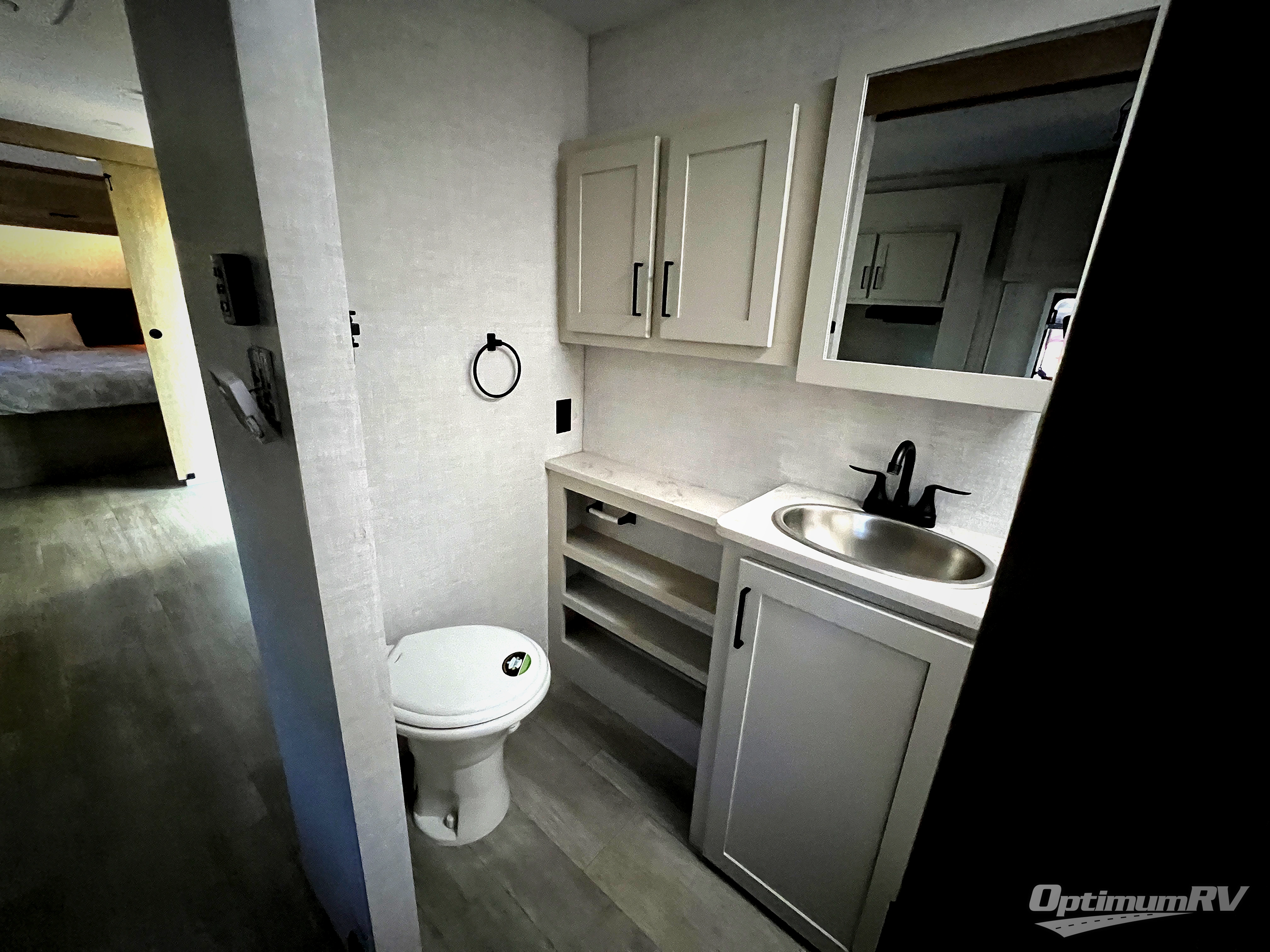 Pack your bags and head to your favorite camping spot in this front bedroom travel trailer! You will sleep soundly on the walk-around residential queen bed with an optional Murphy bed, and there are dual nightstands and dual wardrobes to keep your things tidy. The rear of the unit is shared with the full bath and the kitchen countertop with a large stainless-steel sink, and you'll find the dual-burner LP cooktop and air fryer convection microwave within the large slide out! There is also theater seating with rotating side tables here, which is in perfect view of the HDTV for movie nights. And you're going to love the EmberFlex Dinesk, dining table/bar/desktop that can be reconfigured to fit your needs best!