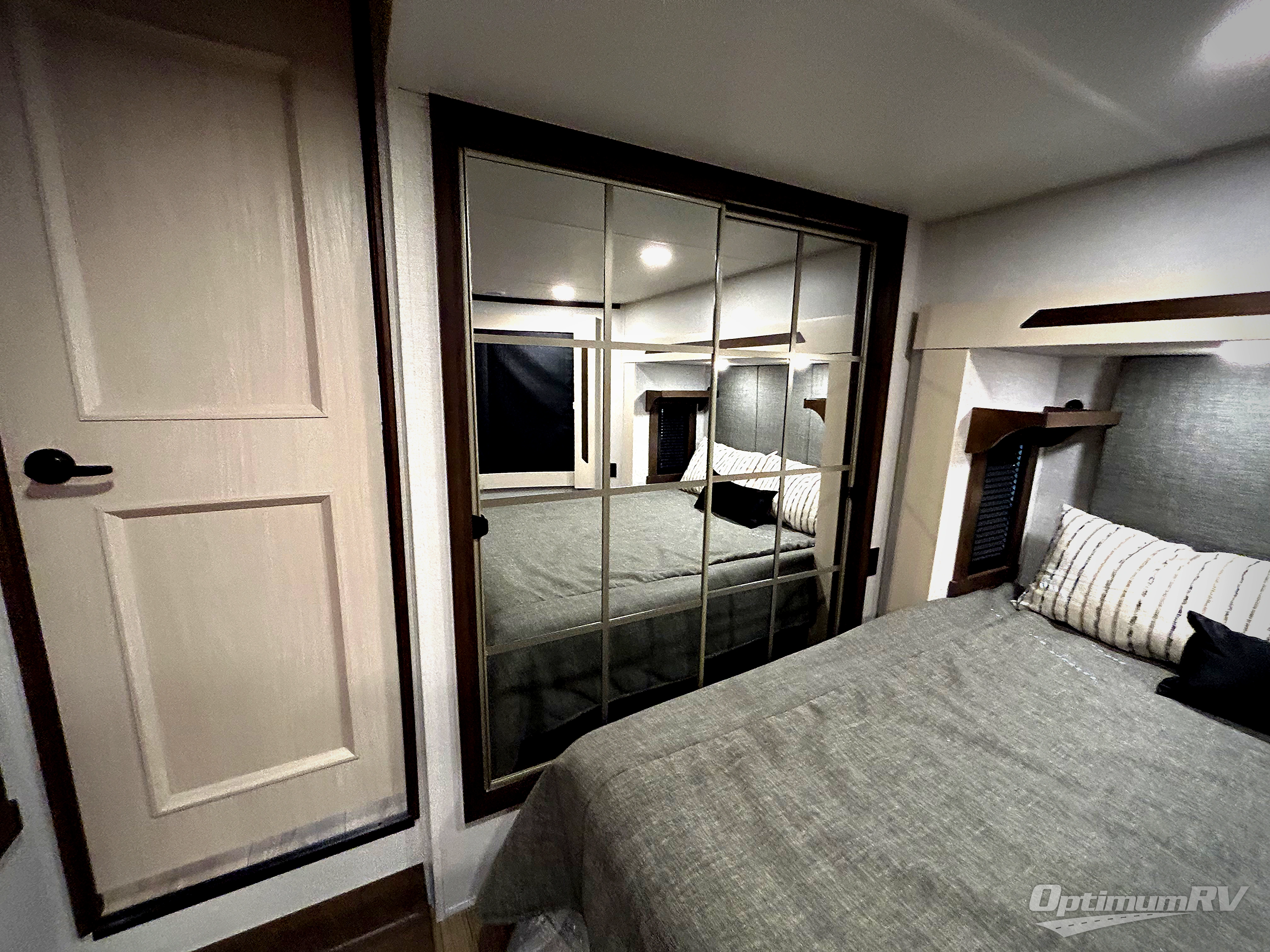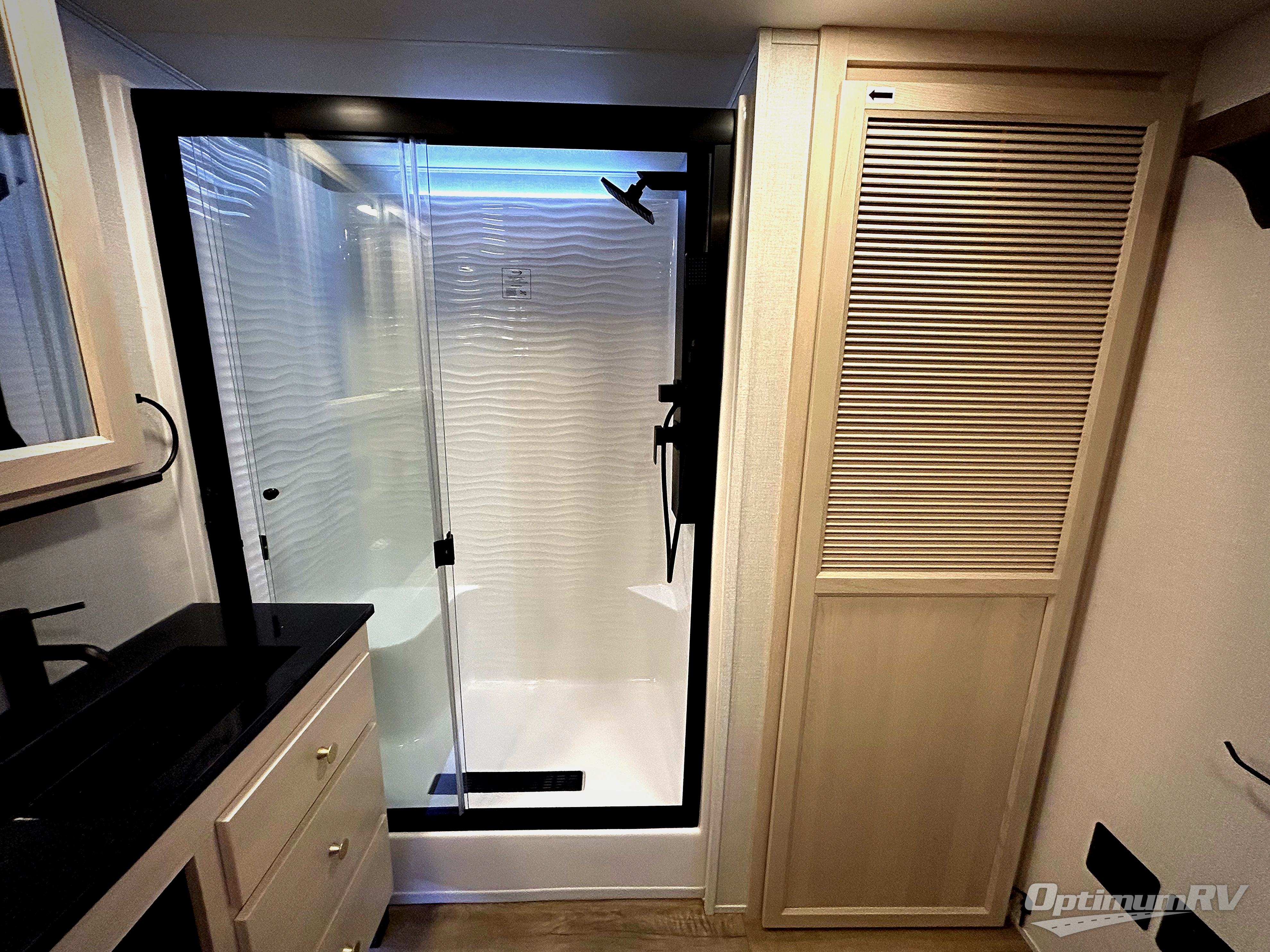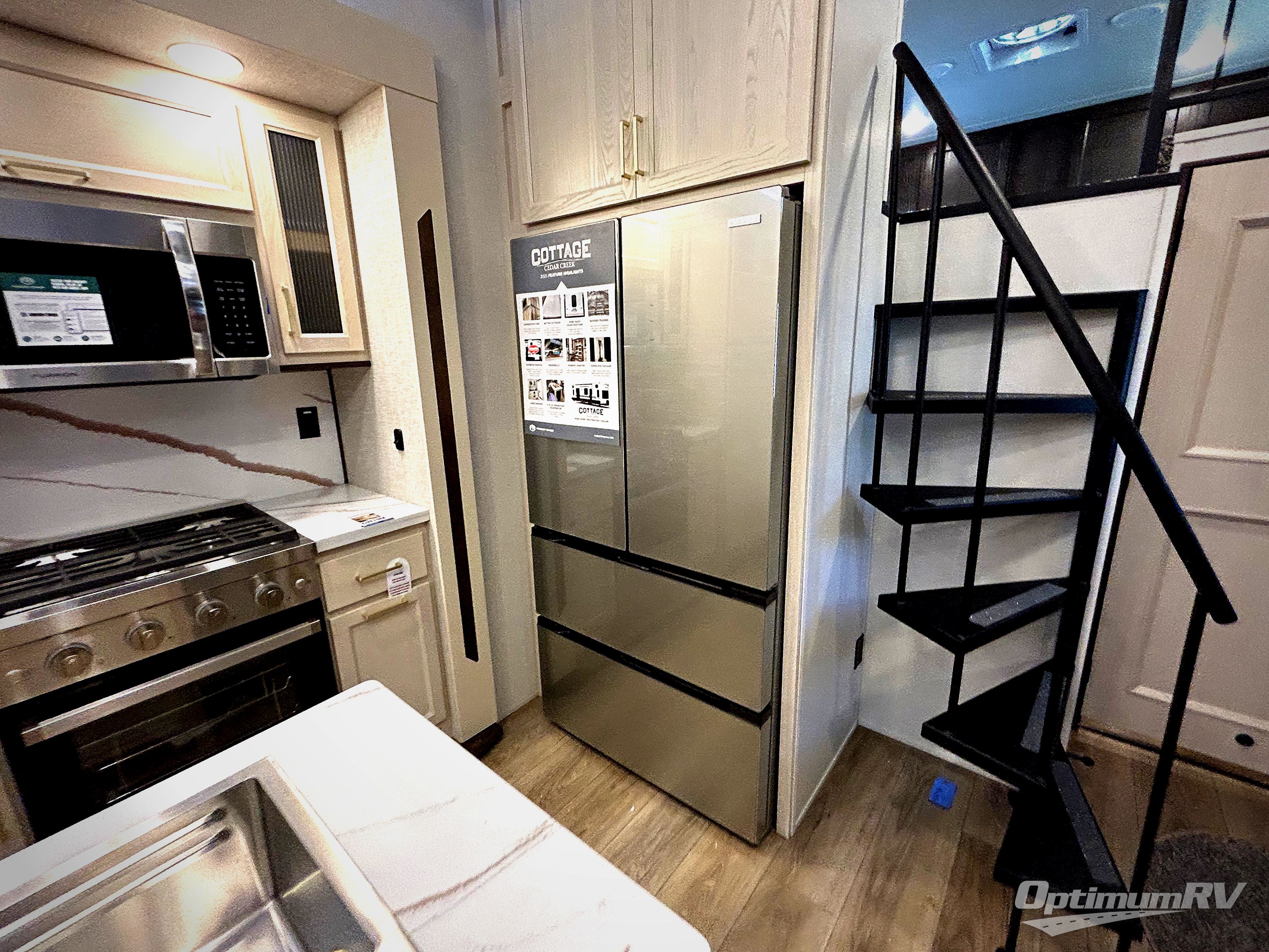 With any Cedar Creek Cottage destination trailer by Forest River, you can enjoy extended stays with residential features at the location of your choice! Each model is built with 3M bonded sidewalls that grow stronger with age and are resistant to UV, heat, oil, moisture, and more. There is also an AlphaPly TPO roof membrane, detachable entry steps, and new waterproof and bug proof Vixenite slide room floor panels for added durability. Head inside where you'll find residential dovetail, self-closing drawers, flush floor slides in the kitchen and living area, a residential style headboard and luxurious bedding decor, and extra storage for linens in the bedroom and bath. Each model is also pre-wired for satellite to the roof, and you can stay connected with the new Cradle Point WiFi/5G antenna and Day 1 connectivity.