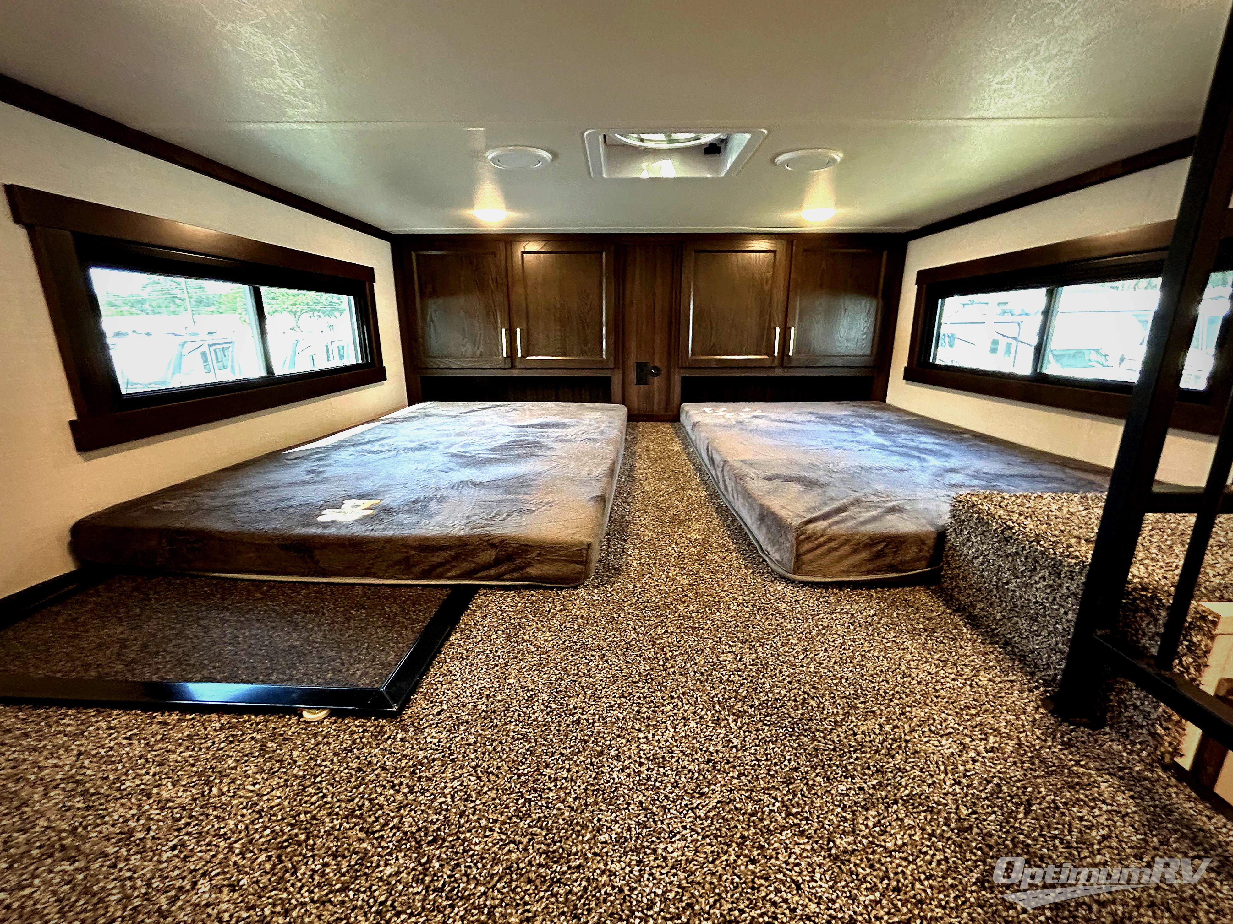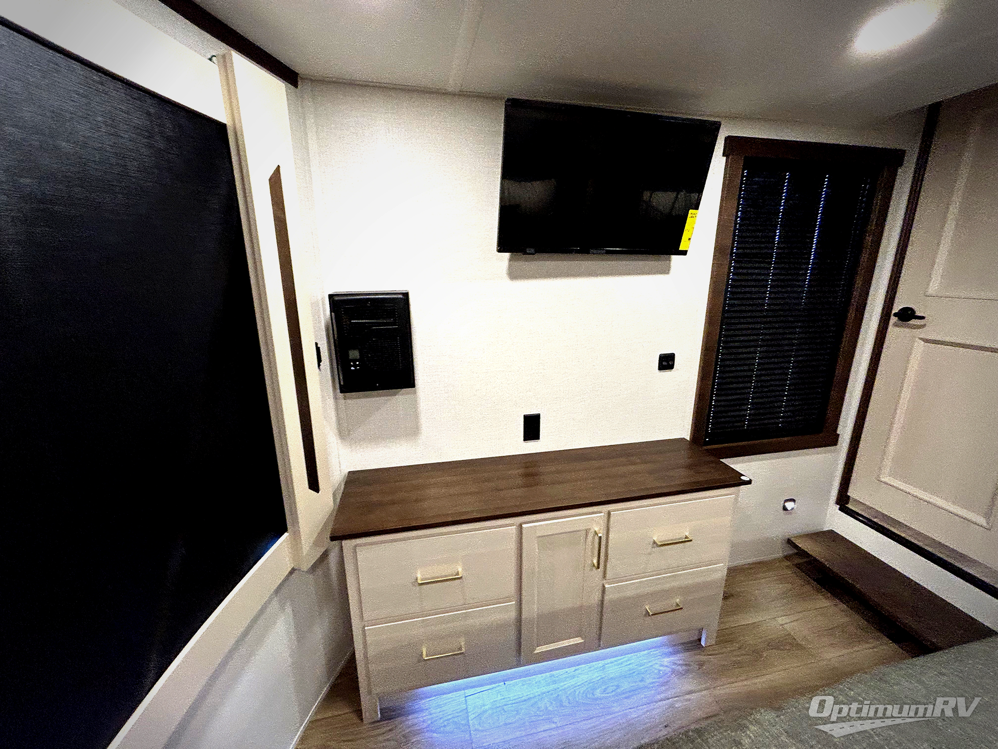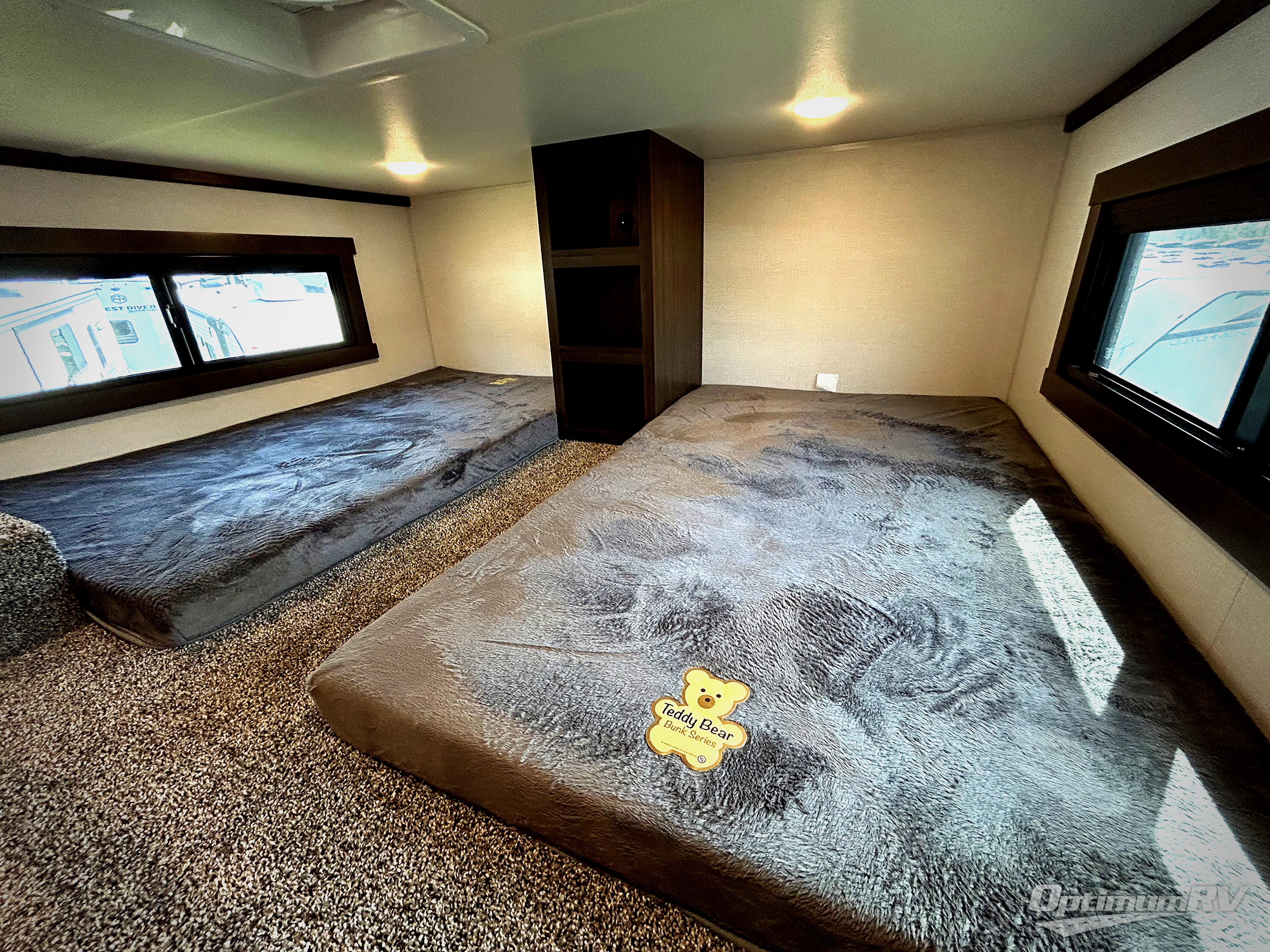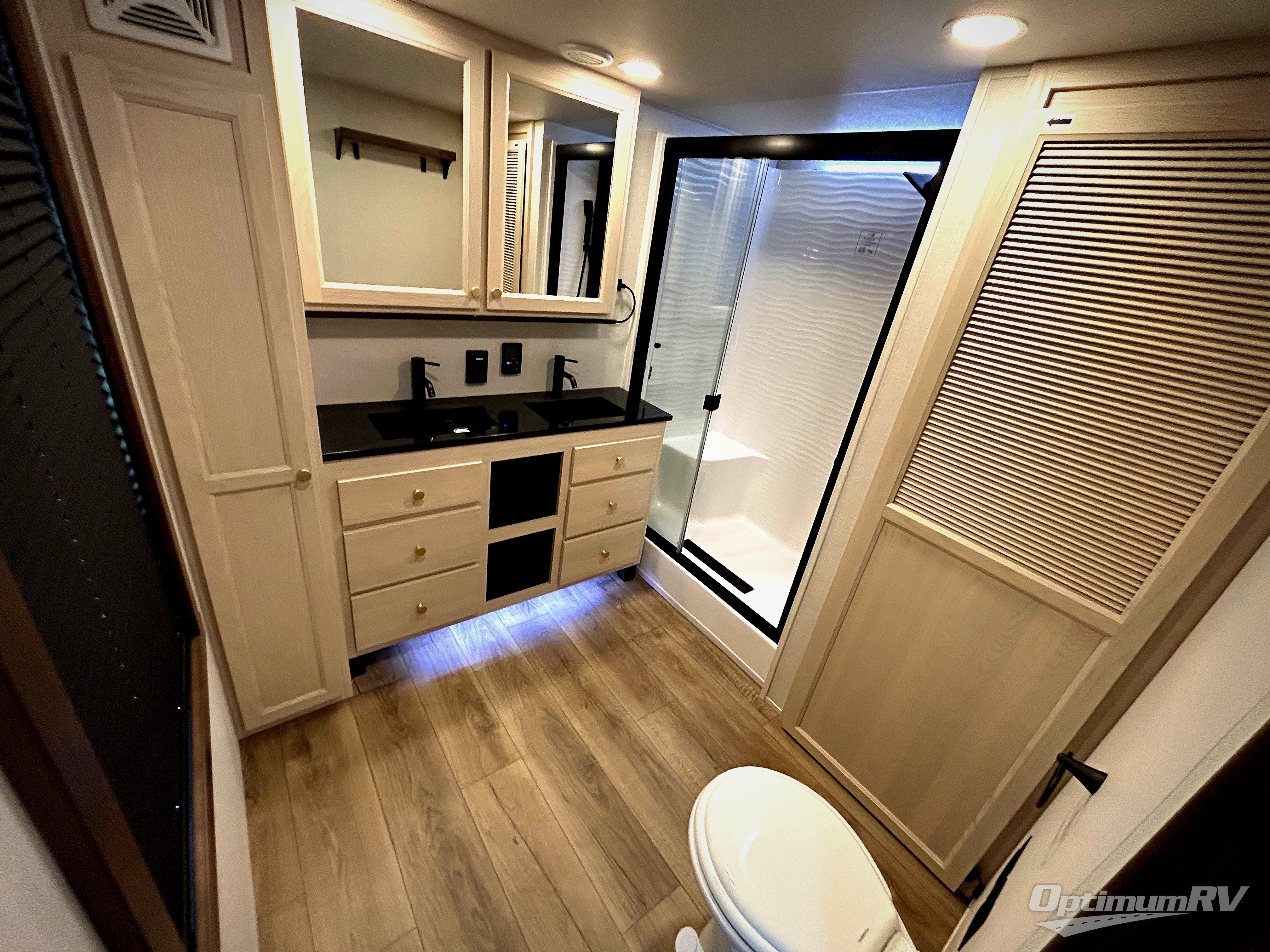 With any Cedar Creek Cottage destination trailer by Forest River, you can enjoy extended stays with residential features at the location of your choice! Each model is built with 3M bonded sidewalls that grow stronger with age and are resistant to UV, heat, oil, moisture, and more. There is also an AlphaPly TPO roof membrane, detachable entry steps, and new waterproof and bug proof Vixenite slide room floor panels for added durability. Head inside where you'll find residential dovetail, self-closing drawers, flush floor slides in the kitchen and living area, a residential style headboard and luxurious bedding decor, and extra storage for linens in the bedroom and bath. Each model is also pre-wired for satellite to the roof, and you can stay connected with the new Cradle Point WiFi/5G antenna and Day 1 connectivity.