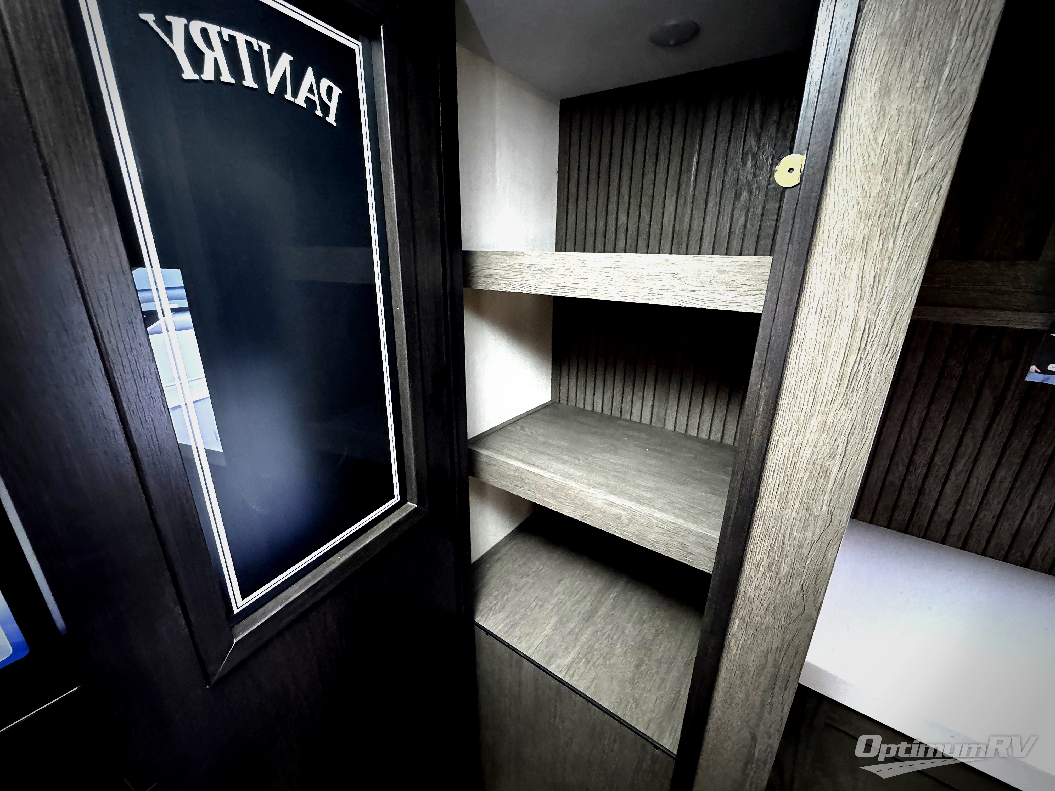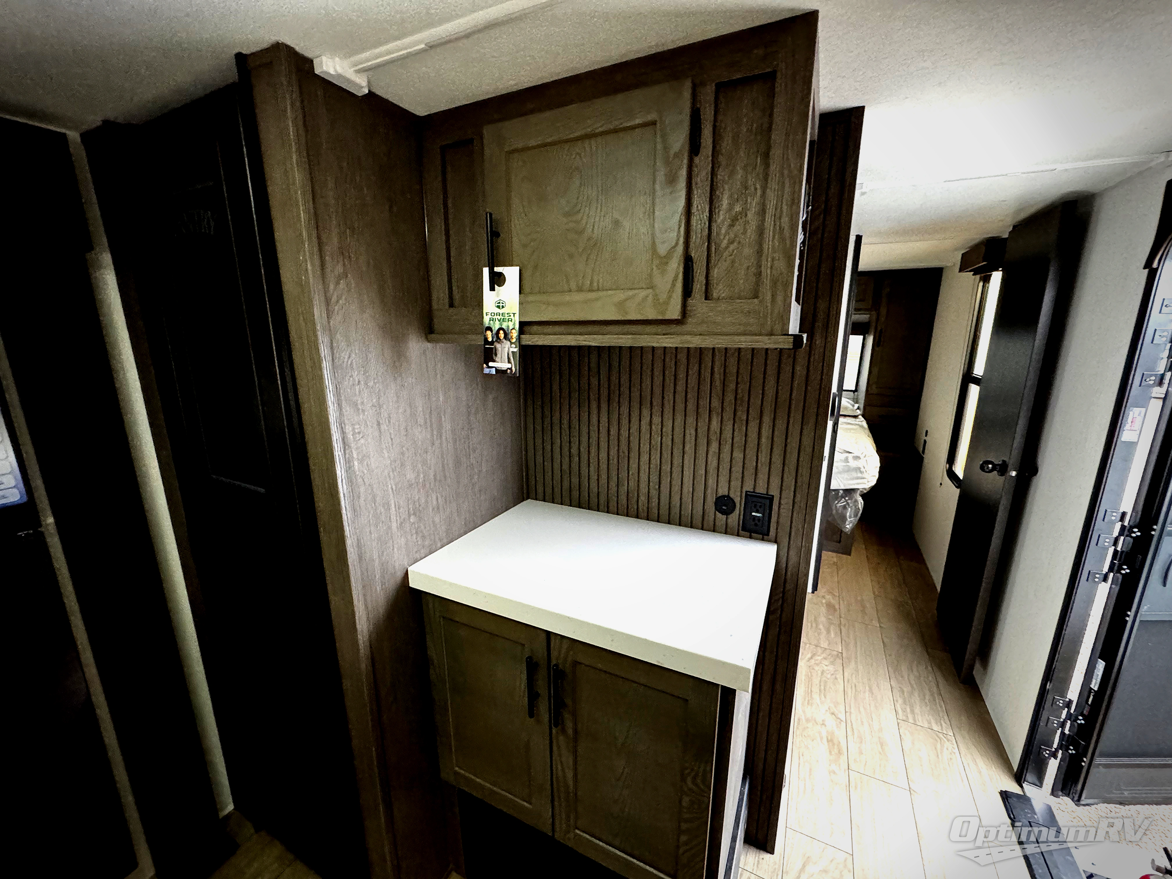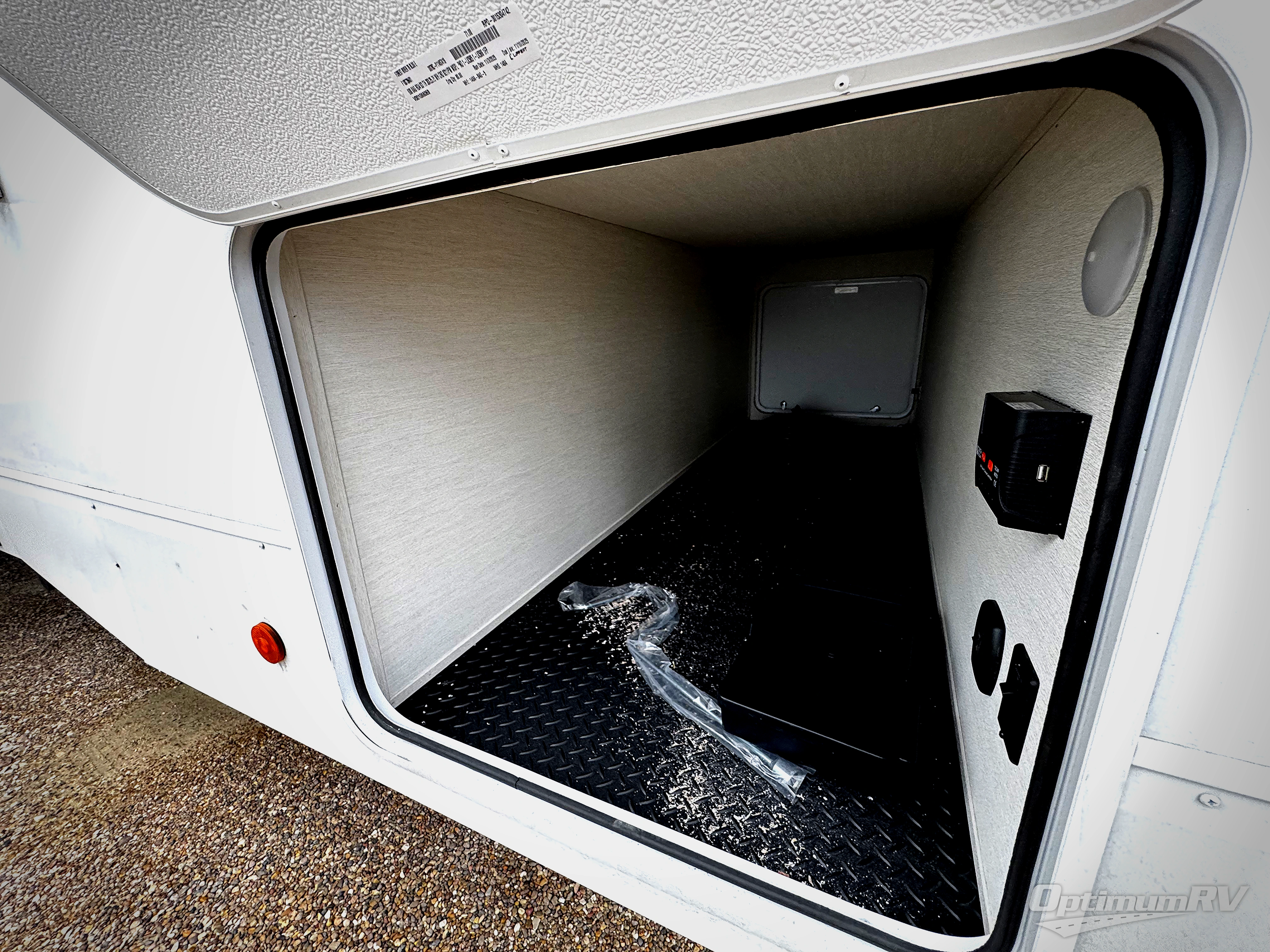 This trailer has it all for maximum comfort and convenience as well as entertainment! The rear living area includes a tri-fold sofa with a rear Pano-Vision window for great views of your campsite, and dual opposing slides widen this area so you can visit with friends. You'll also find theater seating, plus a free-standing table with two chairs and a storage ottoman seat. Enjoy the fireplace on a cool night or when you want a little ambiance while seated inside. Two patio awnings will provide an outdoor living area; just grab your camping chairs from the full pass-through storage. When you want to call it a night, fall quickly to sleep on the queen bed in the front bedroom with easy access to a dual entry bathroom!