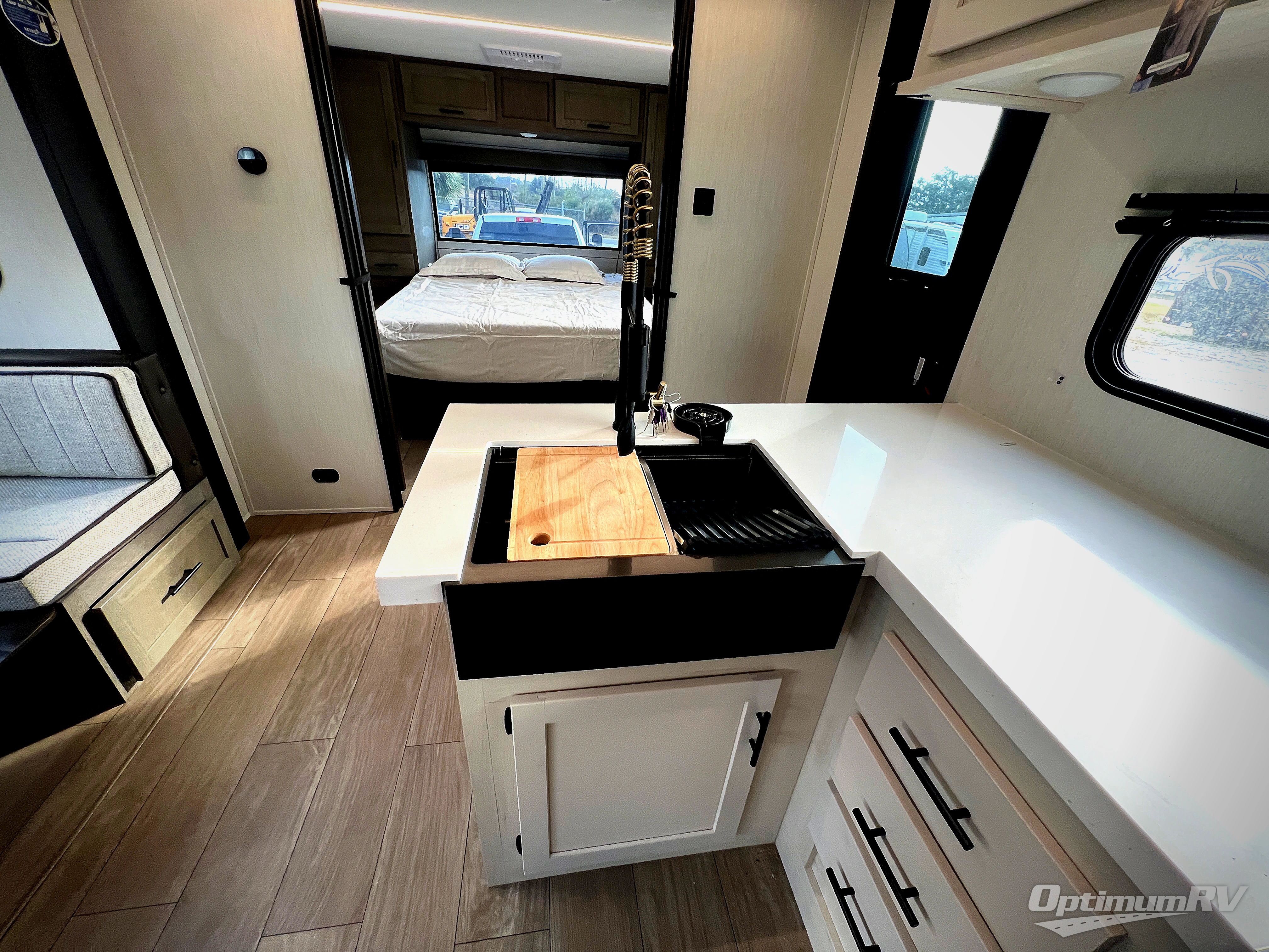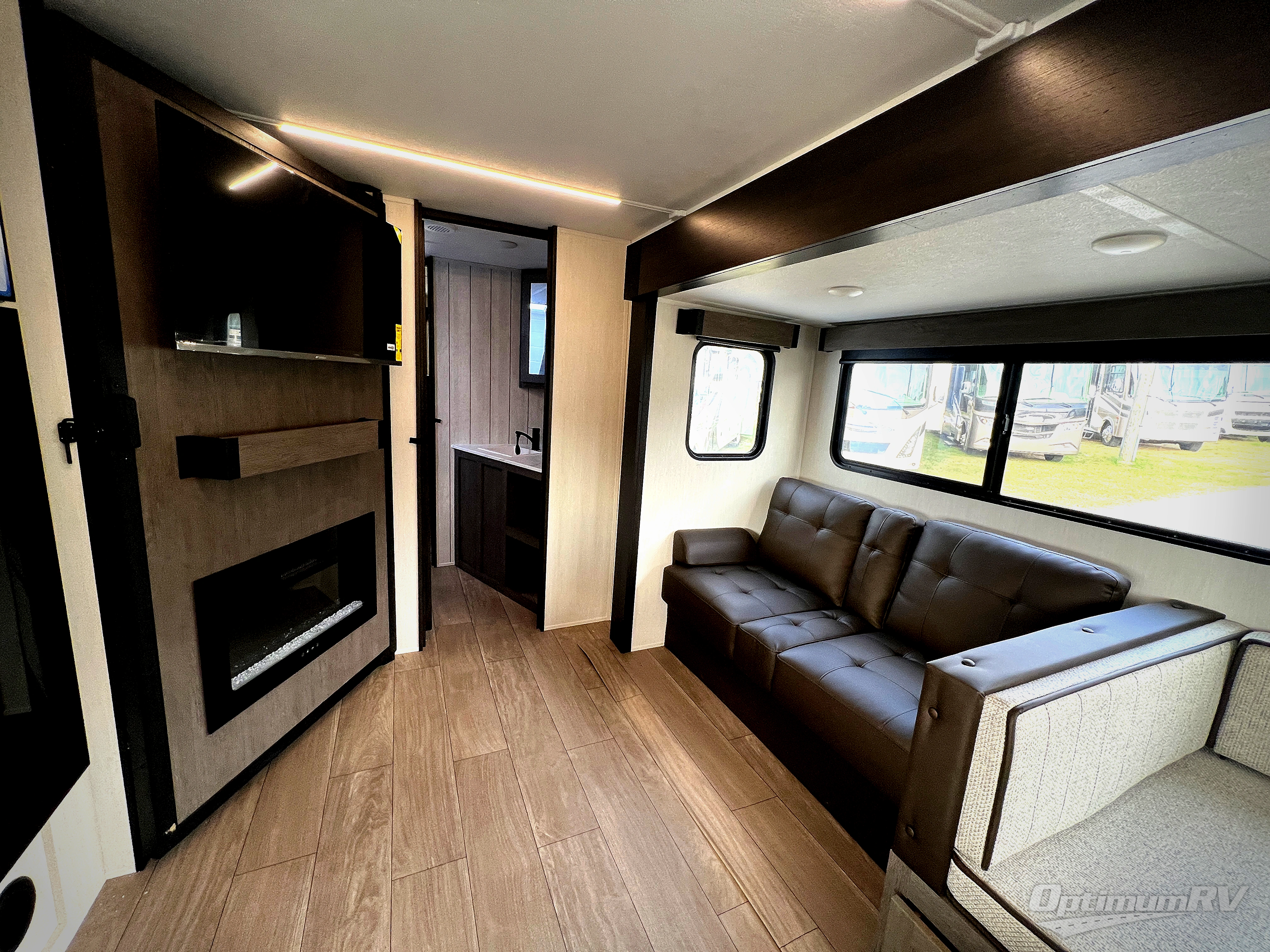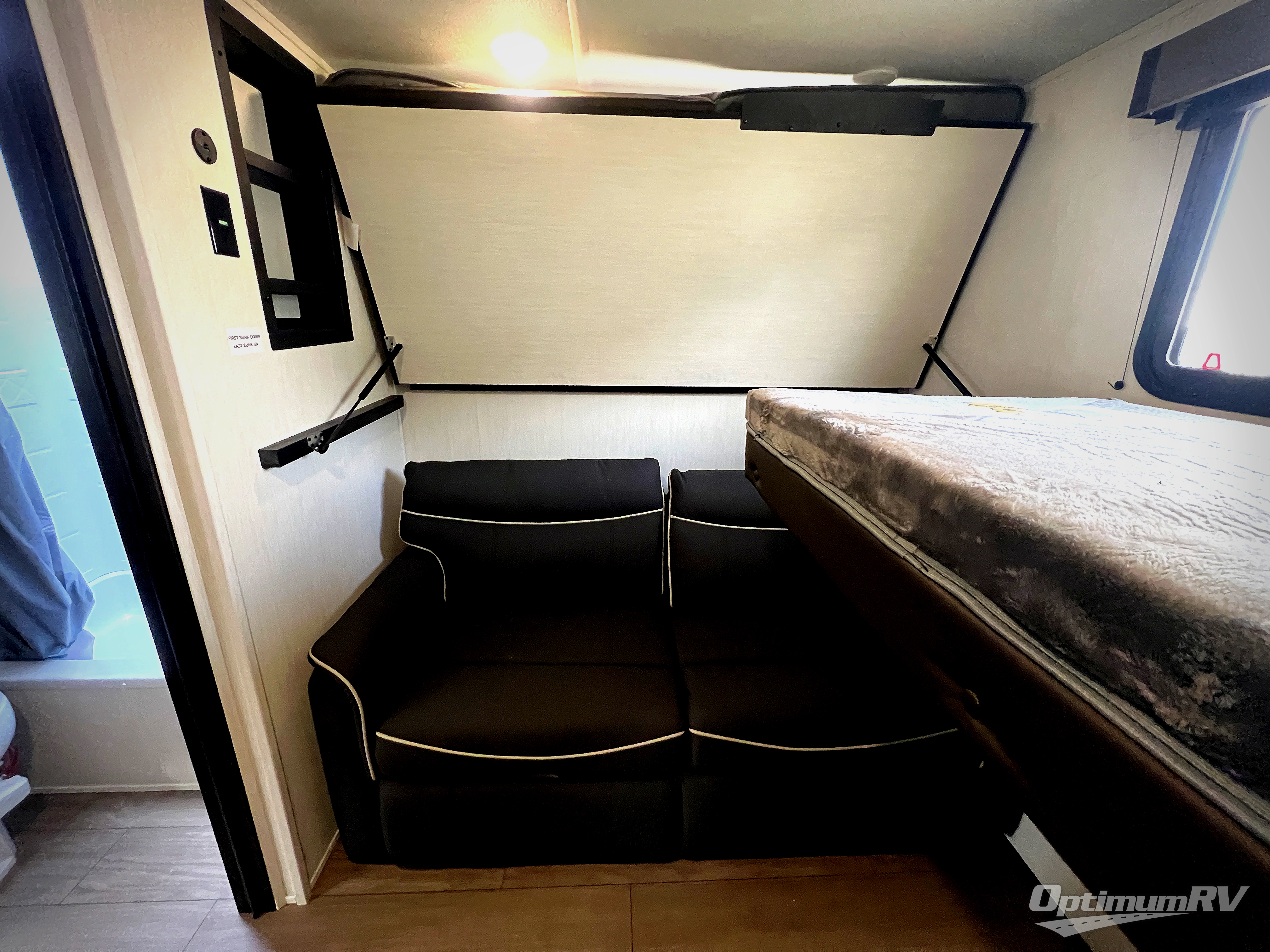 This stunning travel trailer is designed to provide comfort, luxury, and excitement on the open road. Starting with the two flip-up top bunk beds, perfect for kids or adults alike. The tri-fold sofa and jackknife sofa offer additional sleeping space or comfortable spots to lounge, making it easy to accommodate guests. The walk-through bathroom provides convenience and comfort, while the entertainment center with fireplace is a hub for fun and relaxation. Cozy up by the fire on chilly evenings and enjoy quality time with loved ones. The U-shaped dinette is ideal for meals or socializing, and the pantry, 12V refrigerator, microwave, and overhead cabinet ensure that you're well-equipped for cooking and storing food on the go. Featuring a spacious queen bed, convenient nightstands, stylish wardrobes, and overhead head cabinets for storing your belongings, this peaceful sanctuary is the perfect place to rest and recharge after a day of adventure.