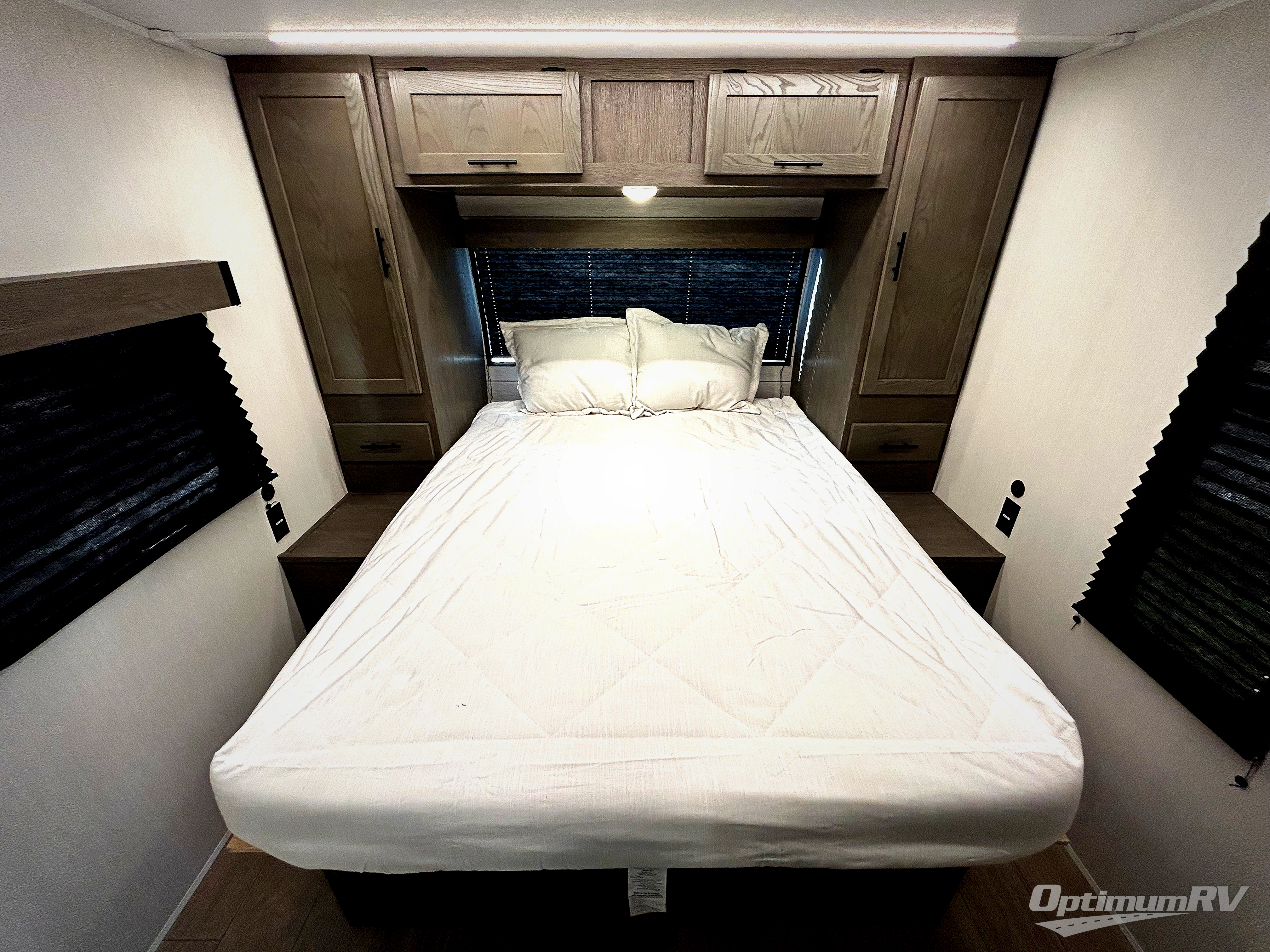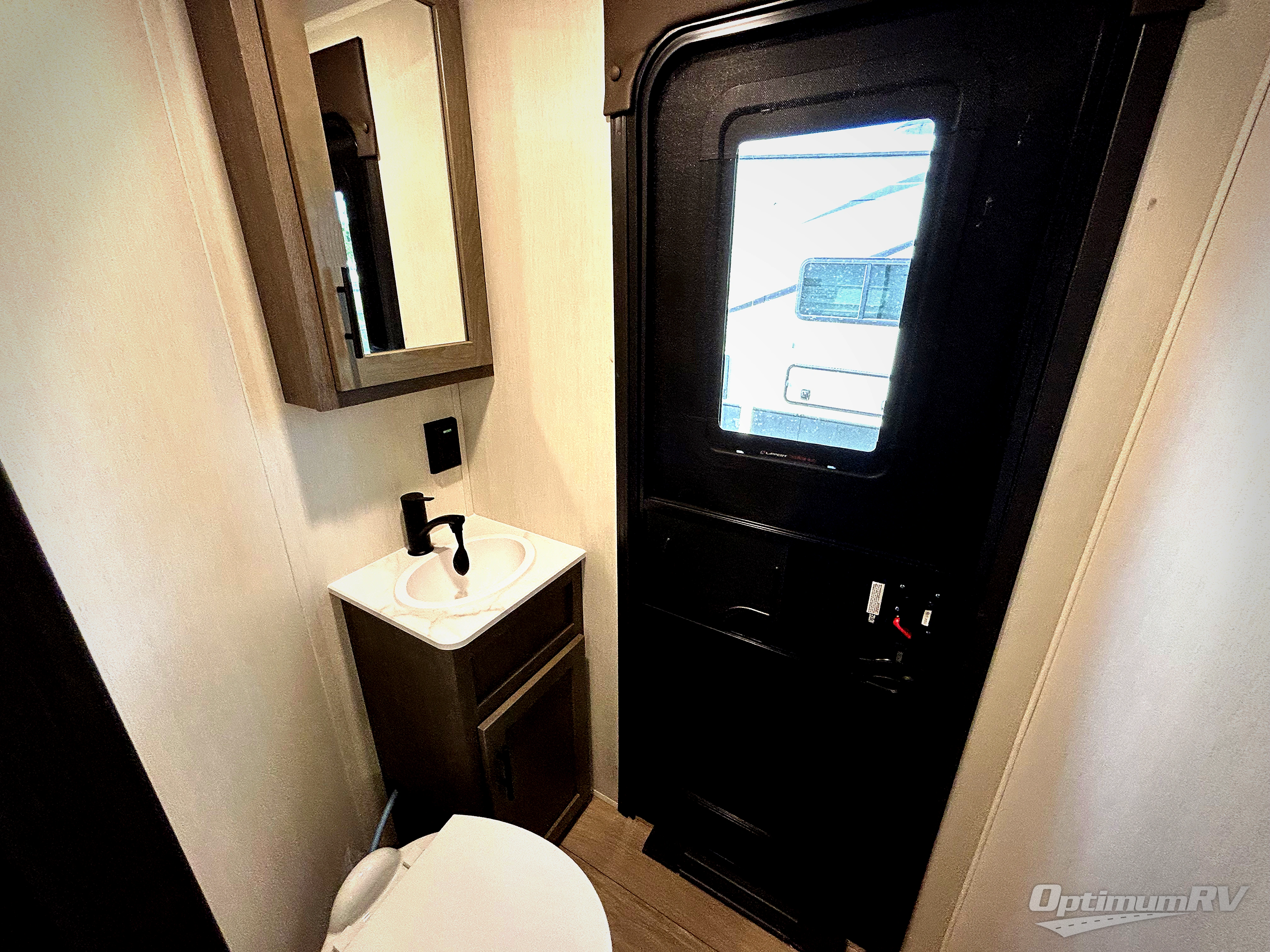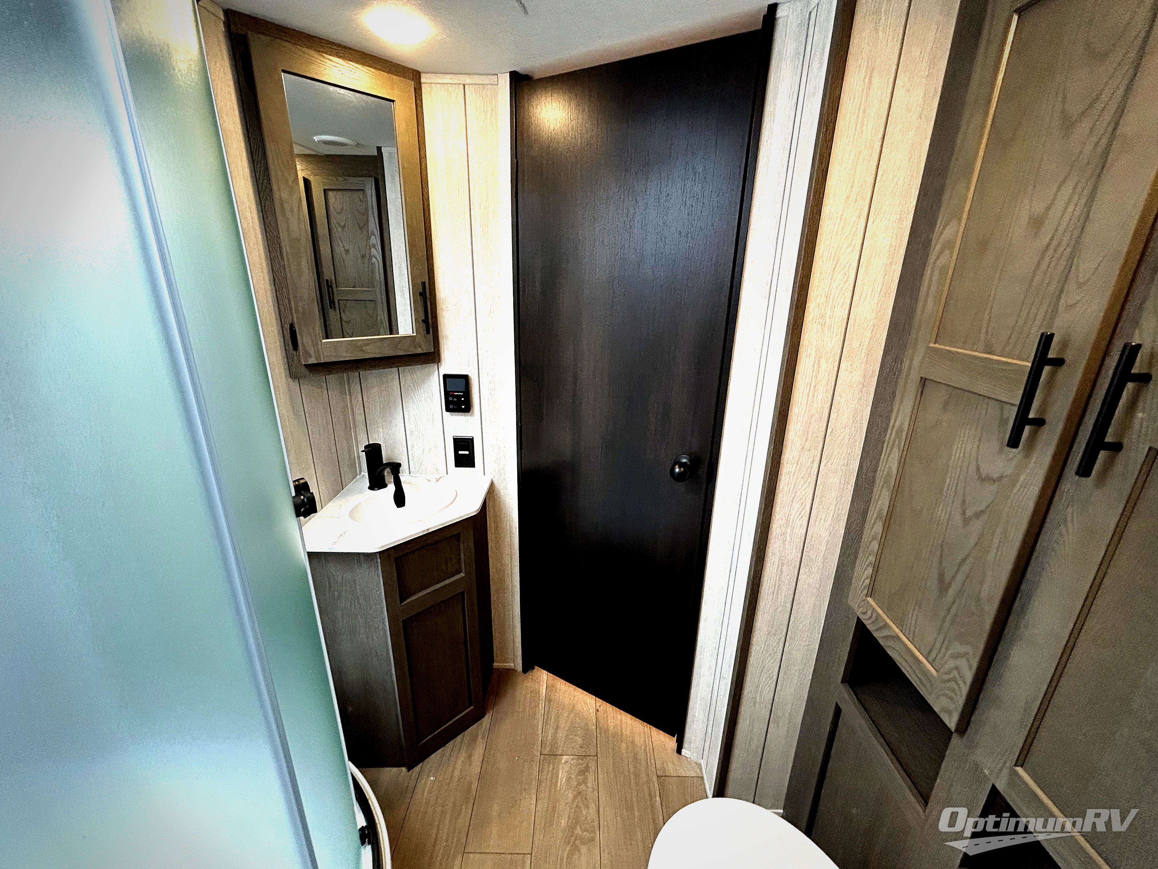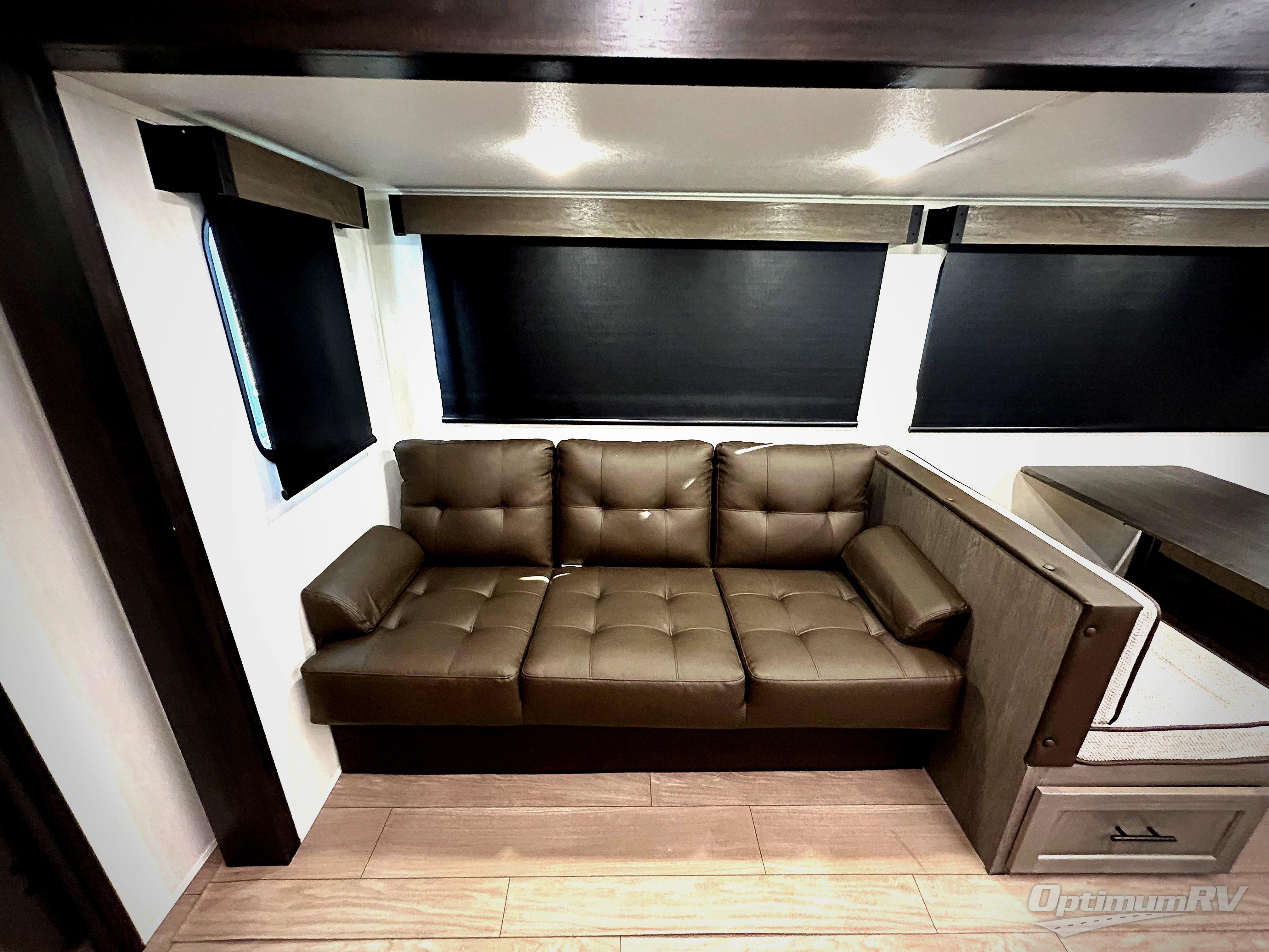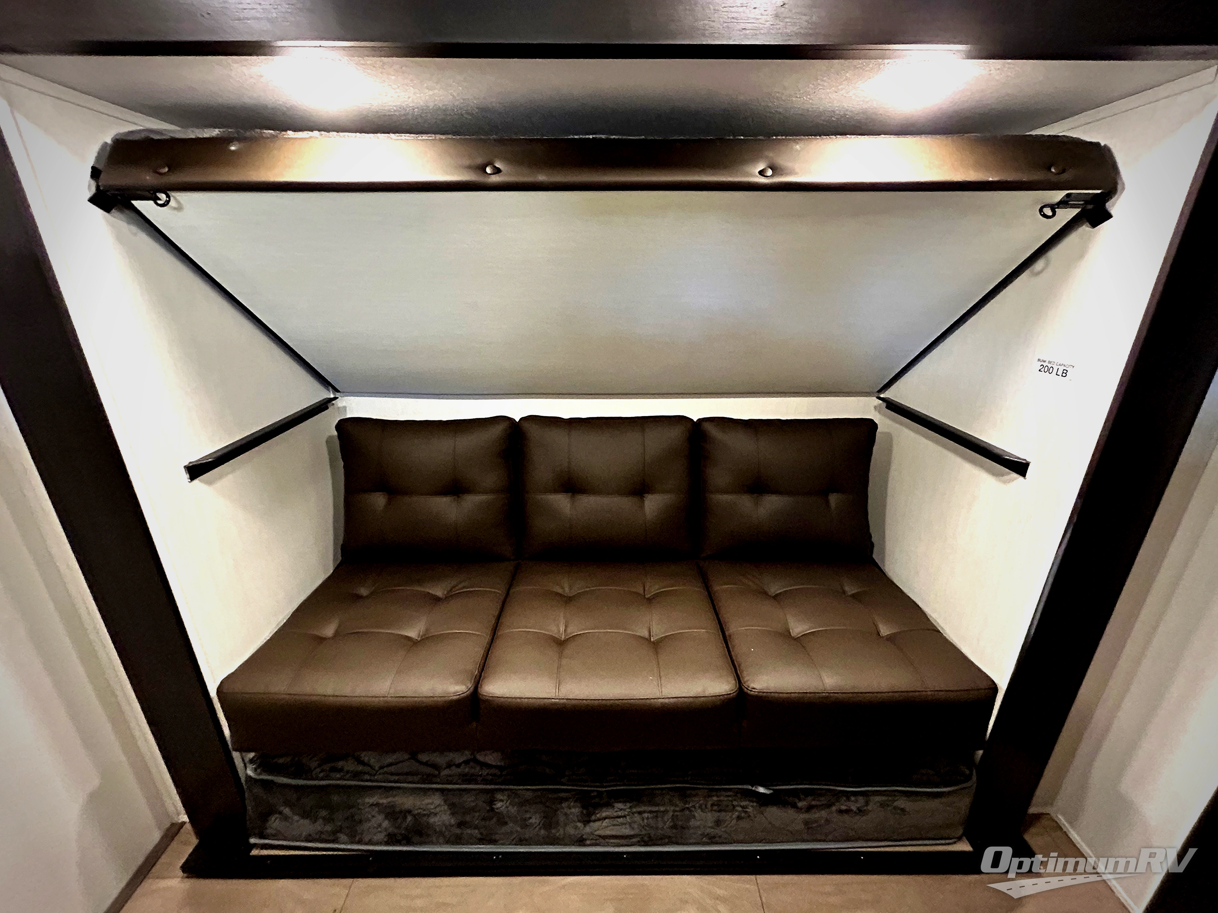 Load up your clothes, food, and outdoor gear to enjoy a long weekend away from the city in this travel trailer! There are triple slide outs, a private bunkhouse with a half bathroom with a second exterior entry/door for convenience, plus an outside kitchen, complete with ice! The bunkhouse also has two bunks, a jackknife sofa and a trundle bed, plus a slide out for more interior floor space. The main living and kitchen area is spacious as well with two opposing slides, a kitchen island with a large sink, a pantry, plus a cozy fireplace. The full walk-through bathroom allows double access, and the front bedroom allows you to sleep like royalty.