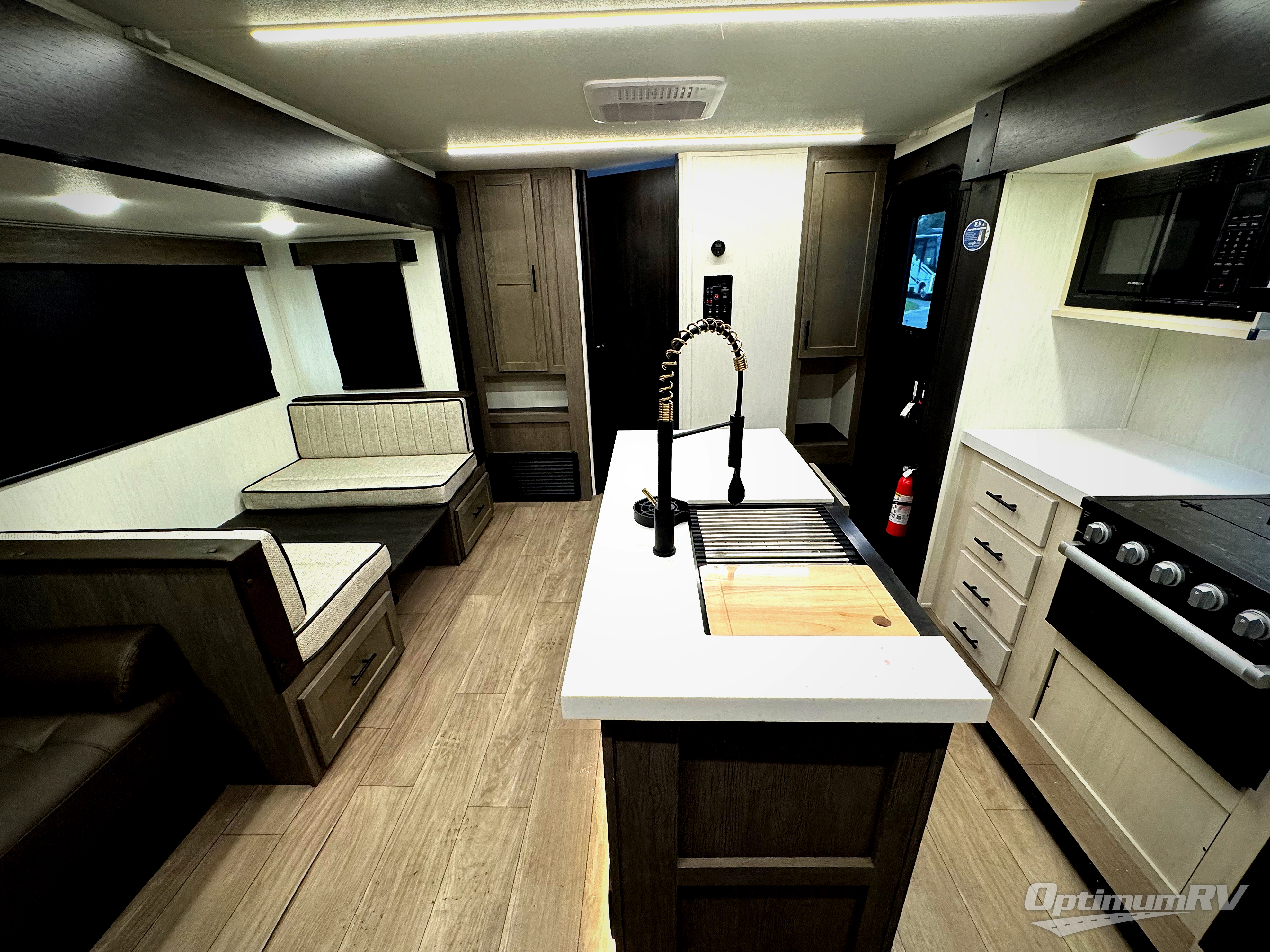 With any Cherokee Alpha Wolf travel trailer by Forest River you'll enjoy outstanding amenities, quality construction, and an affordable price. Each model features a "ToughBend" rigid skirt metal design, 5/8" tongue and groove plywood floor decking, and a "SuperTruss" roof structure that will hold up through years of camping memories. There is a pet friendly "clean sweep" floor design with no heat vents indoors, along with a super lumen lighting system, a 15,000 BTU quick cool central air conditioning, and many more comforts. There are many convenient exterior features such as, Leash Latch pet safety technology, an outside shower with hot and cold water, and exterior steps with oversized landing and quick release. The Weather Guard Package will add protection against the elements with an armored underbelly tank enclosure and forced air heat, thermo-control reflective safety glass windows, and upgraded laminated walls with block foam insulation!