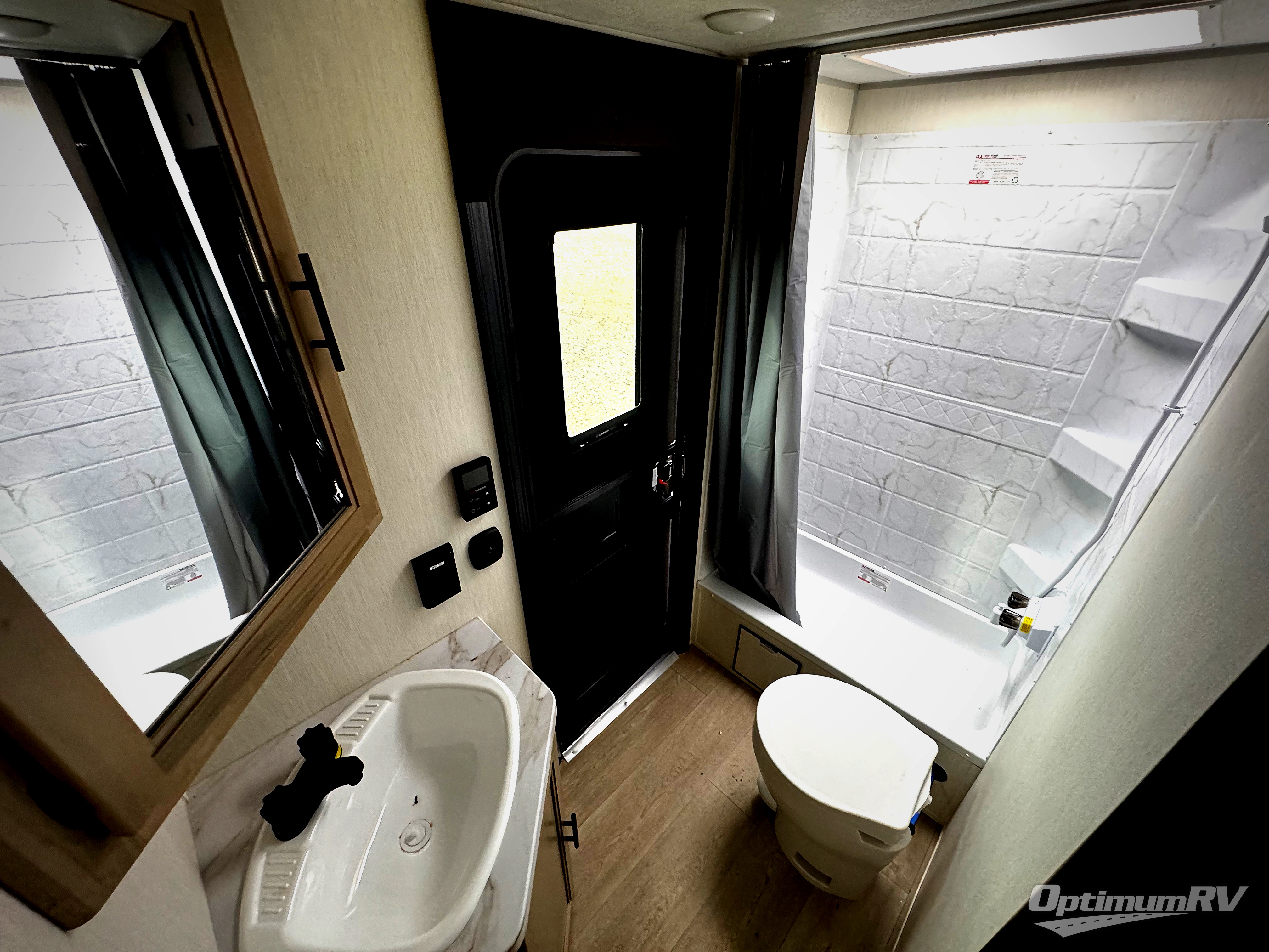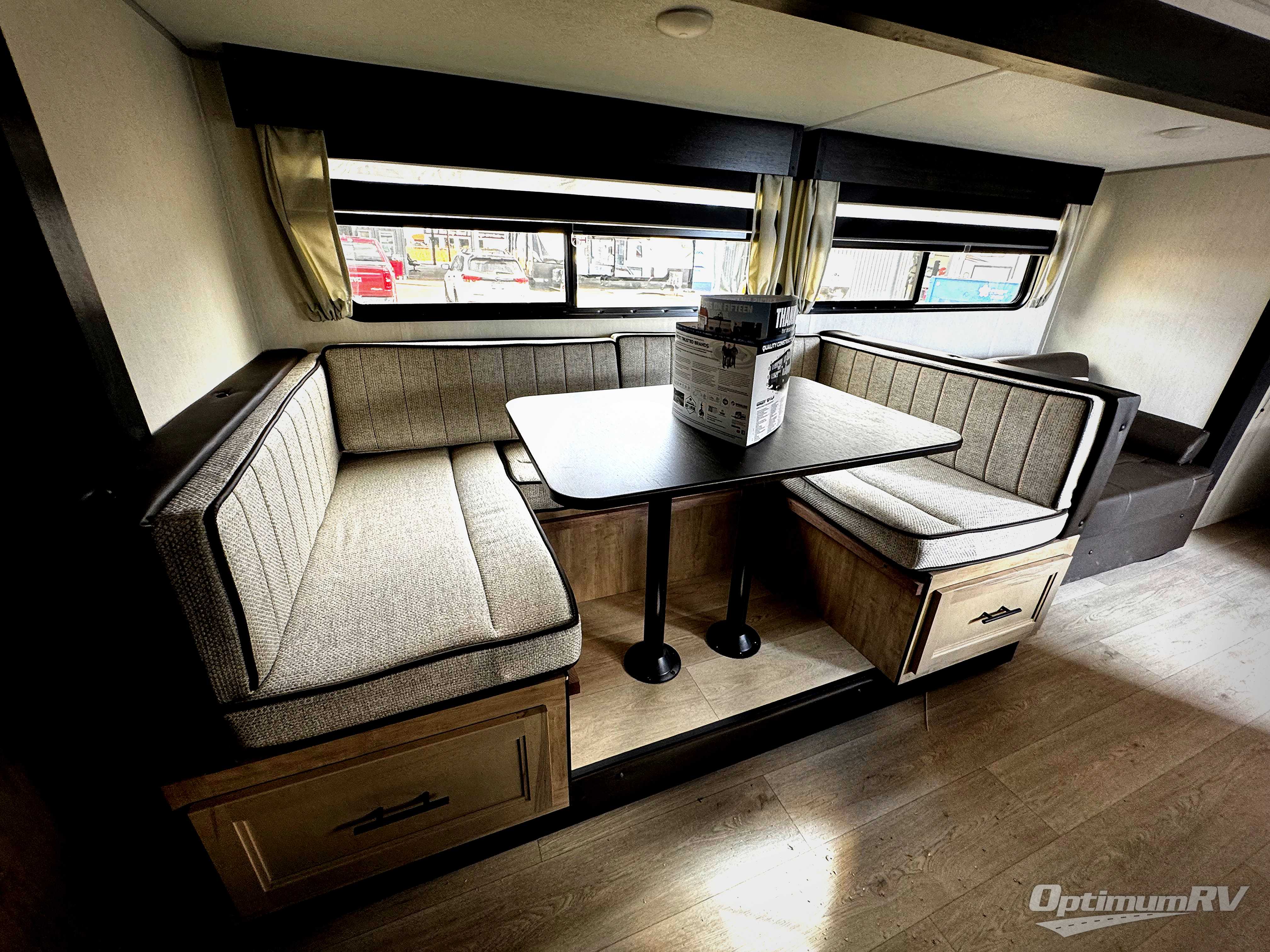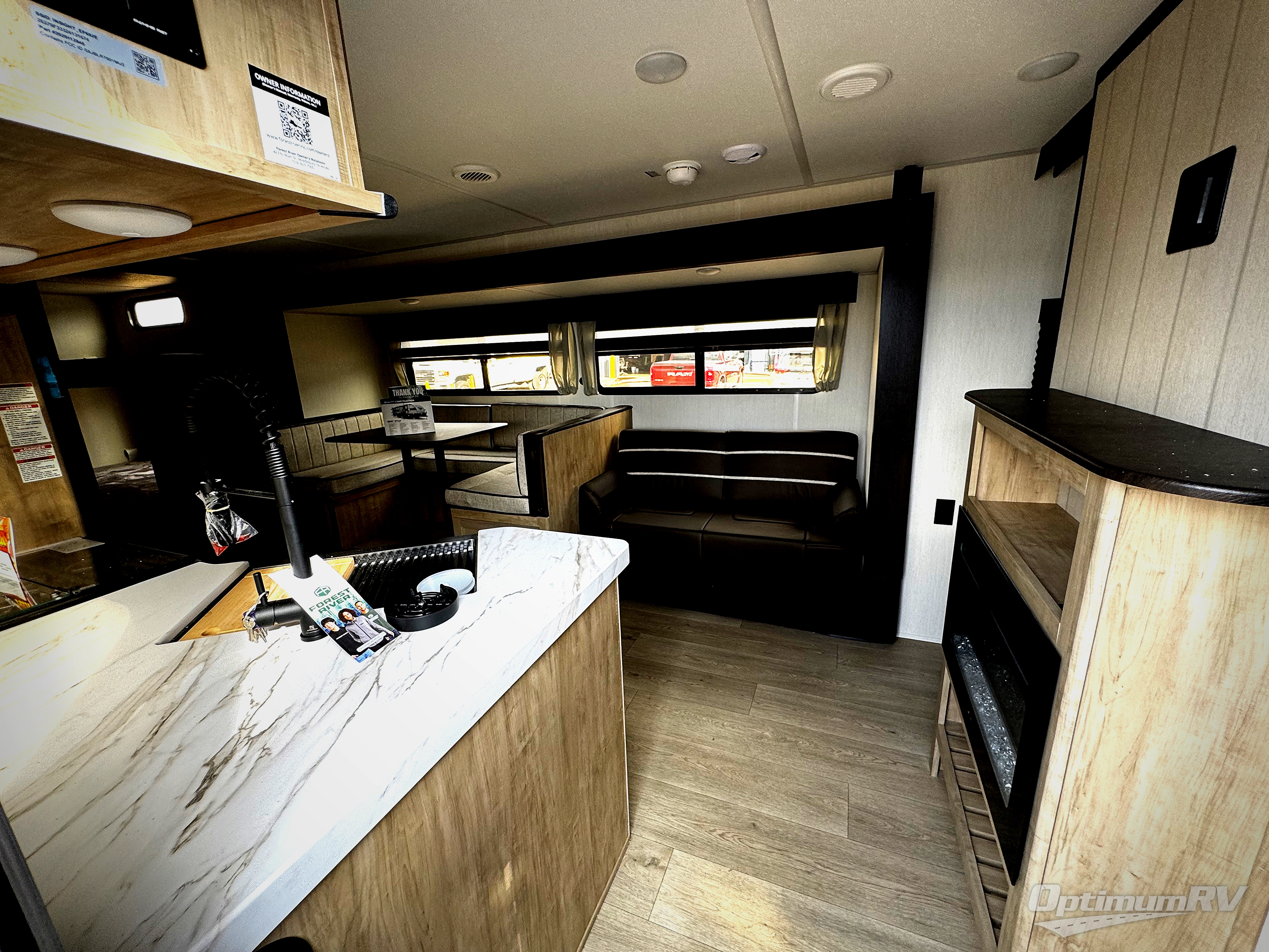 Come on inside this Cherokee Grey Wolf travel trailer and experience the convenience of a smooth flow of traffic in and out with two entry doors. The rear door leads into a full bath which is great for accessibility. Once inside, you will notice the large U-shaped dinette and the sofa which sit on the slide and create a spacious footprint for moving about, as well as great places to play games and socialize with your friends and family. A walk-in pantry provides plenty of storage allowing you to stock up on your favorite snacks and dry goods for your family adventure. At night, there is sleeping space for everyone between the double-size bunks and the RV king bed, plus the furniture.