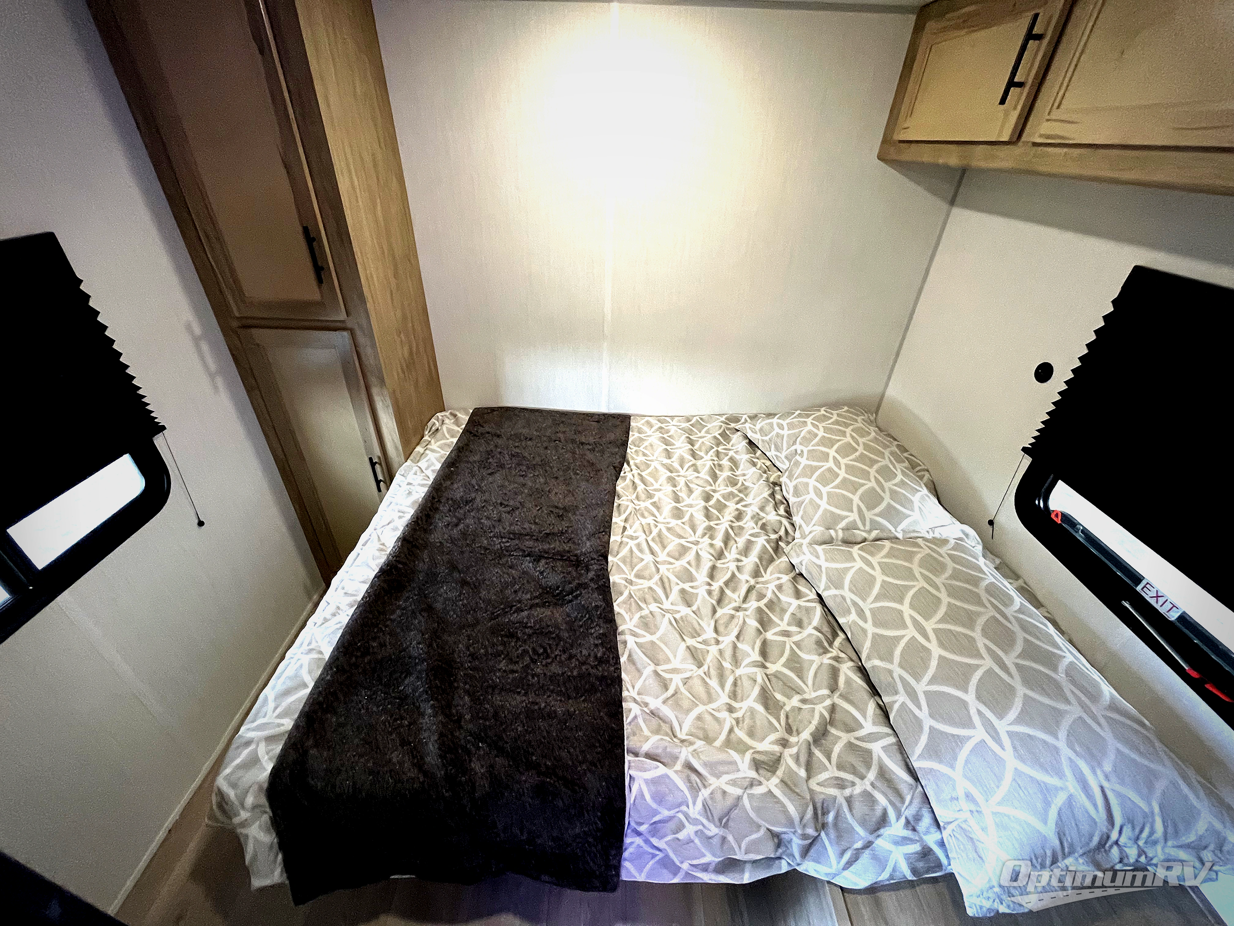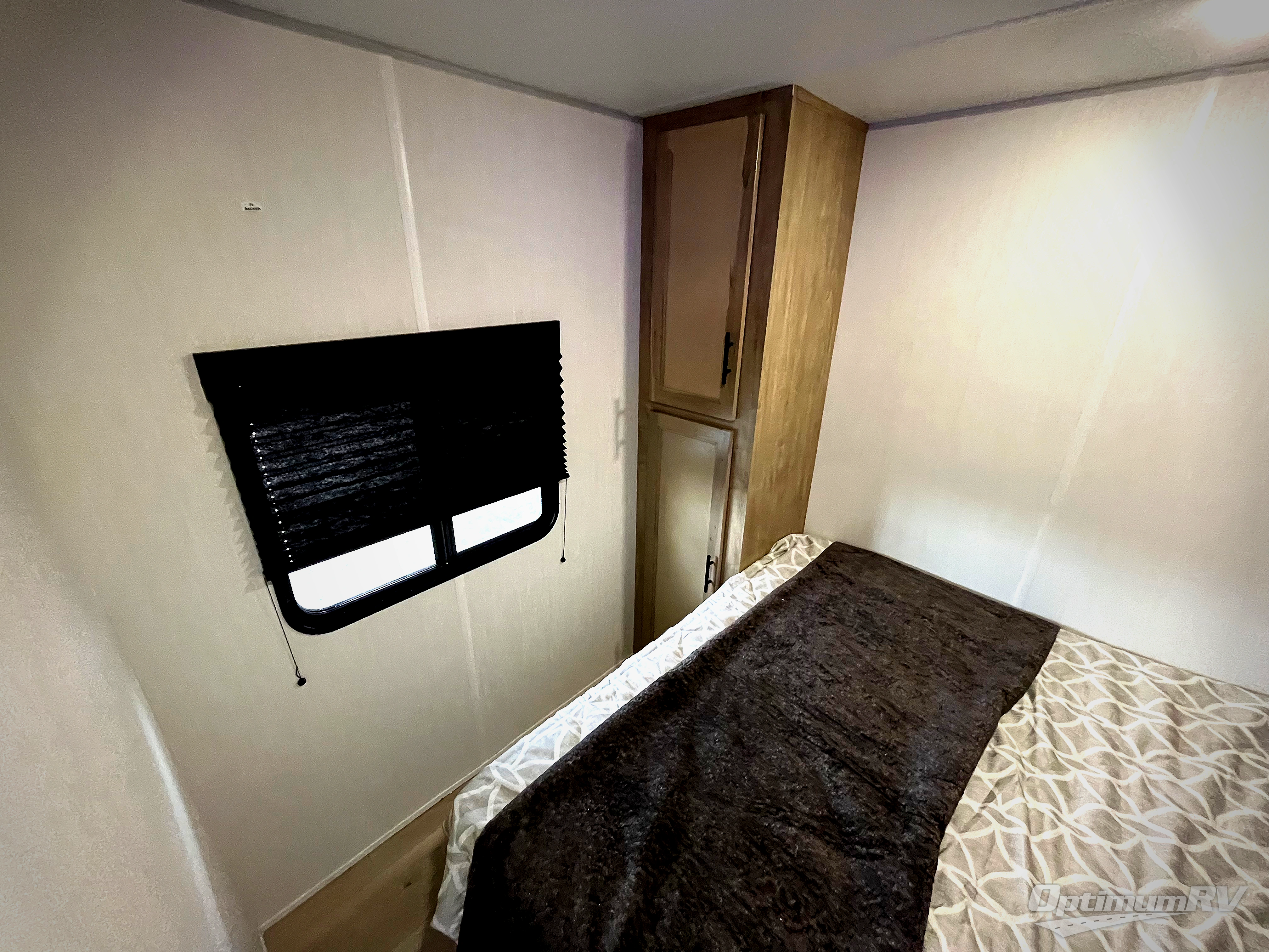 You will have such a great time making memories in this Cherokee Grey Wolf travel trailer! This amazing trailer not only has a master suite up front, but it also has another private bedroom in the back which means that both you and the rest of your fellow campers will sleep peacefully and privately. There is also a U-shaped dinette and sofa on the large slide in the main living area so that if you have anyone else traveling with you, they can also have a place to sleep. A full kitchen, complete with an air fryer will help you whip up a hearty meal to replenish your tired bodies, and a pantry will hold onto your snacks and sweets for later.