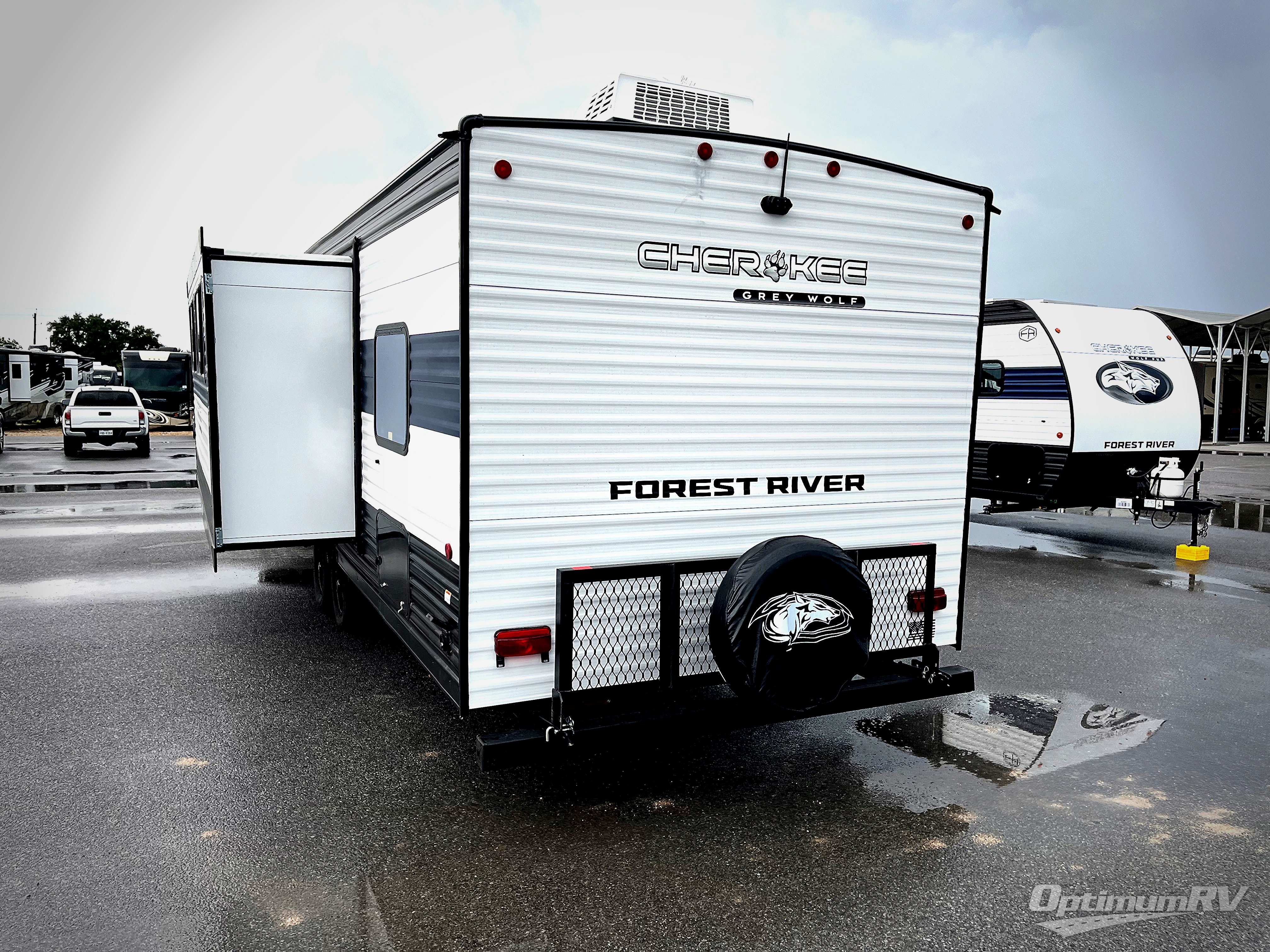 Whether it's a journey that will take you to new locations or a tried-and-true getaway to that favorite and memorable destination, the Forest River Cherokee Grey Wolf travel trailers and toy haulers are going to make the trip worth it every single time! You can travel in confidence with the premium wheel package, seamless roofing membrane with heat reflectivity, Power Gear frame technology with space-saver rail design, and Cherokee back-up camera system. The Cherokee Grey Wolf's interior is highly attractive with its stainless steel kitchen suite package and premium bedding ensemble and comforter. You will also find a black waste tank flush-out kit, an outside shower with hot and cold water, an armored underbelly tank enclosure, and an RV grill quick connect.