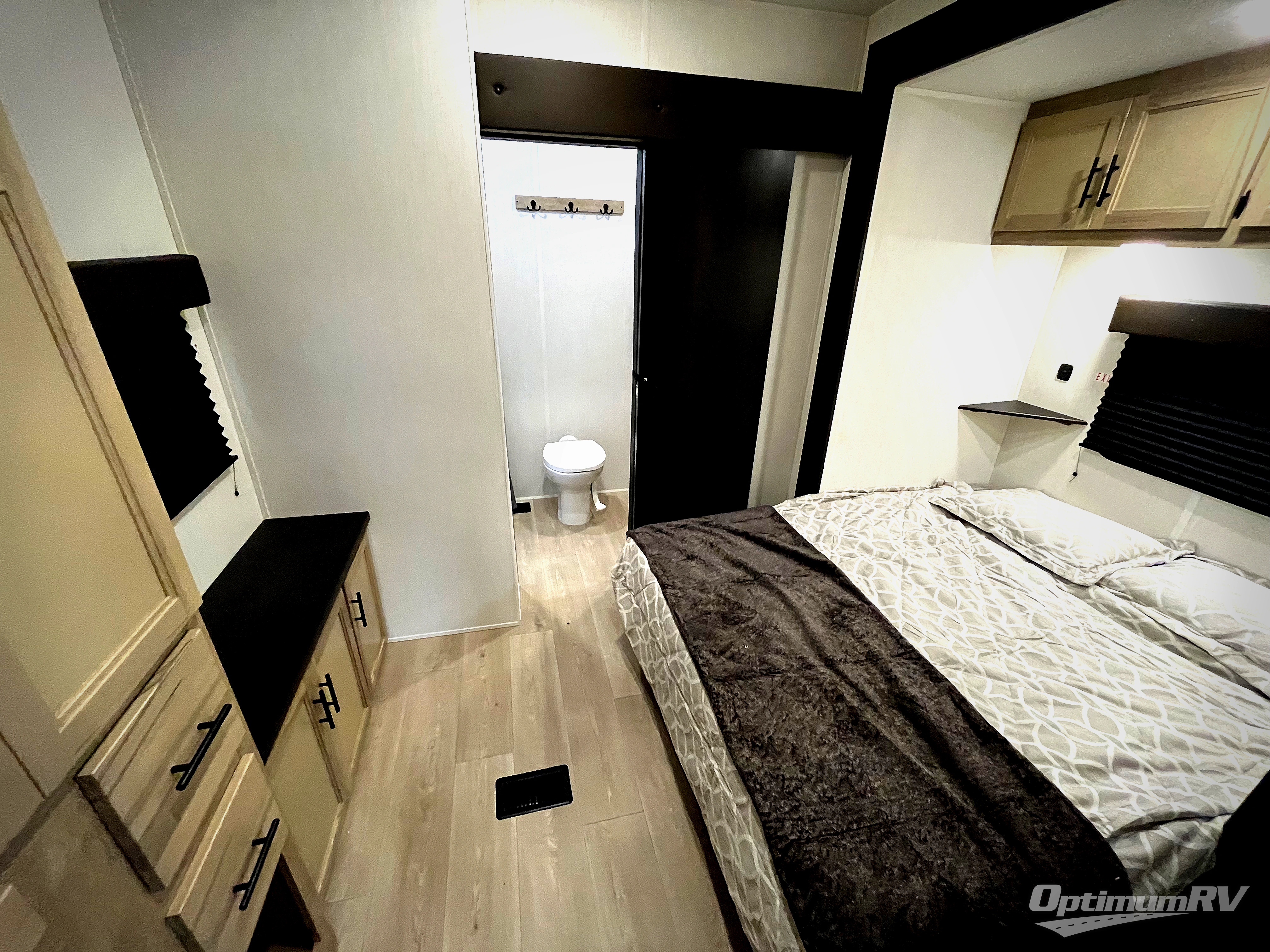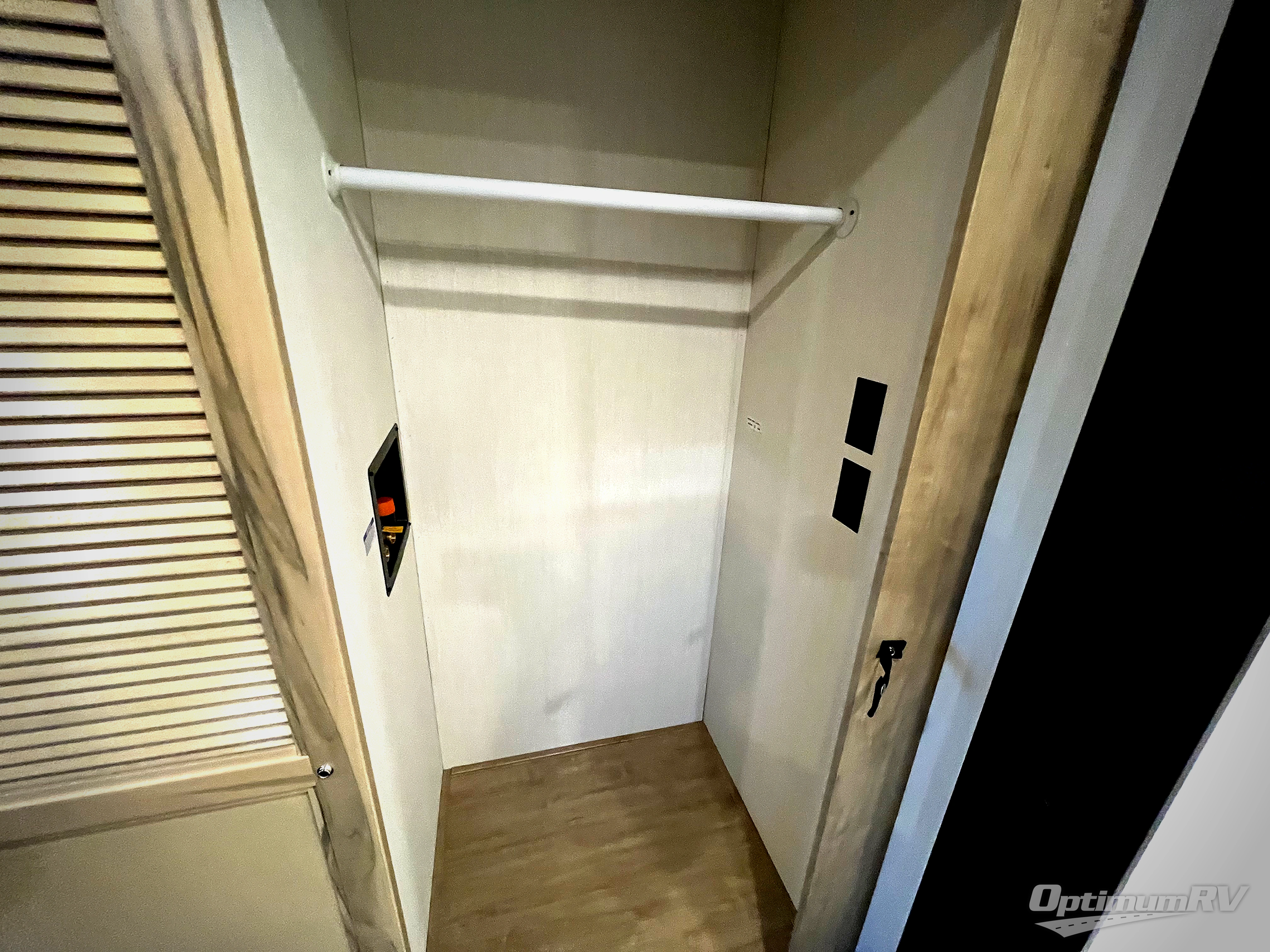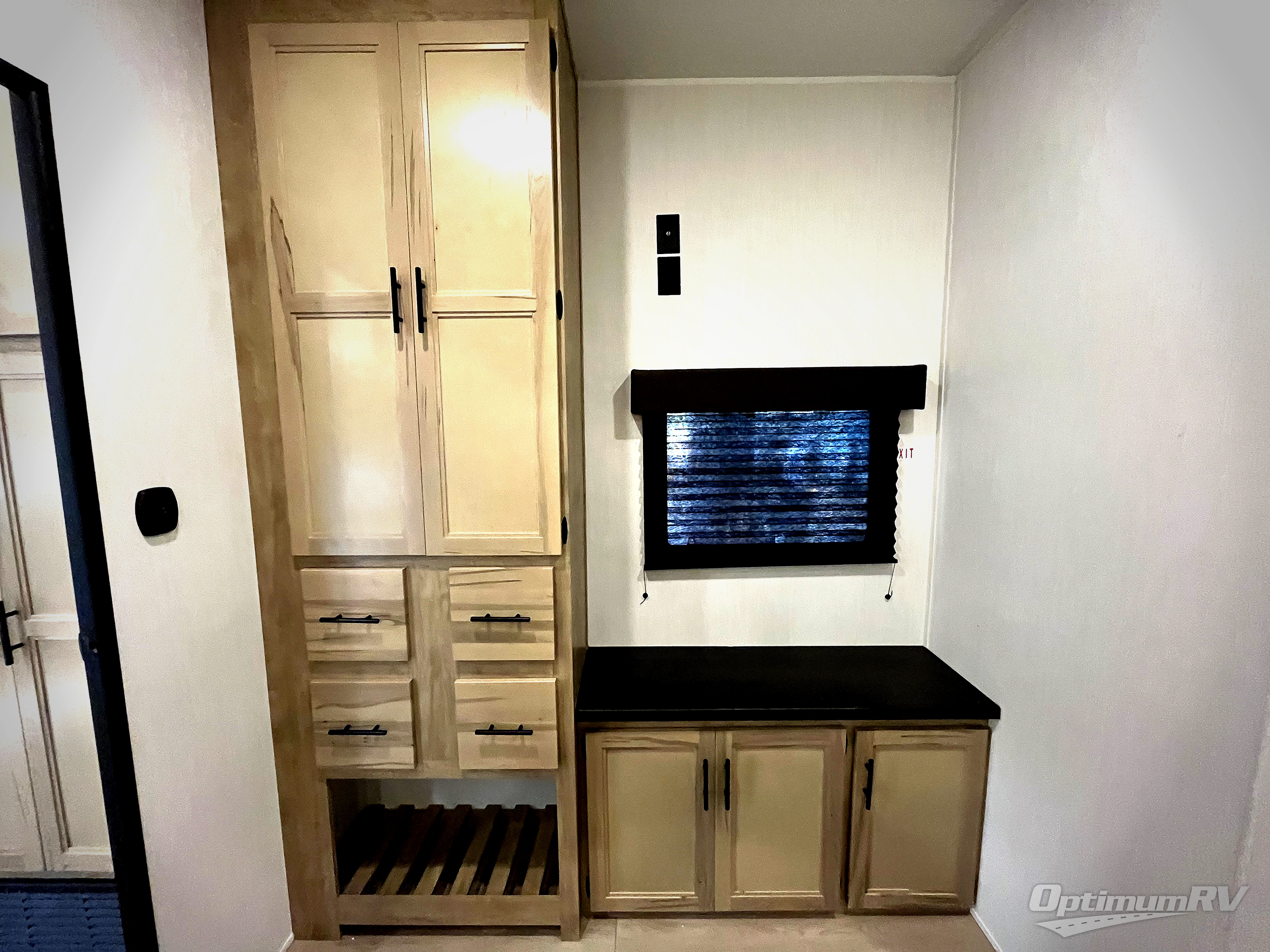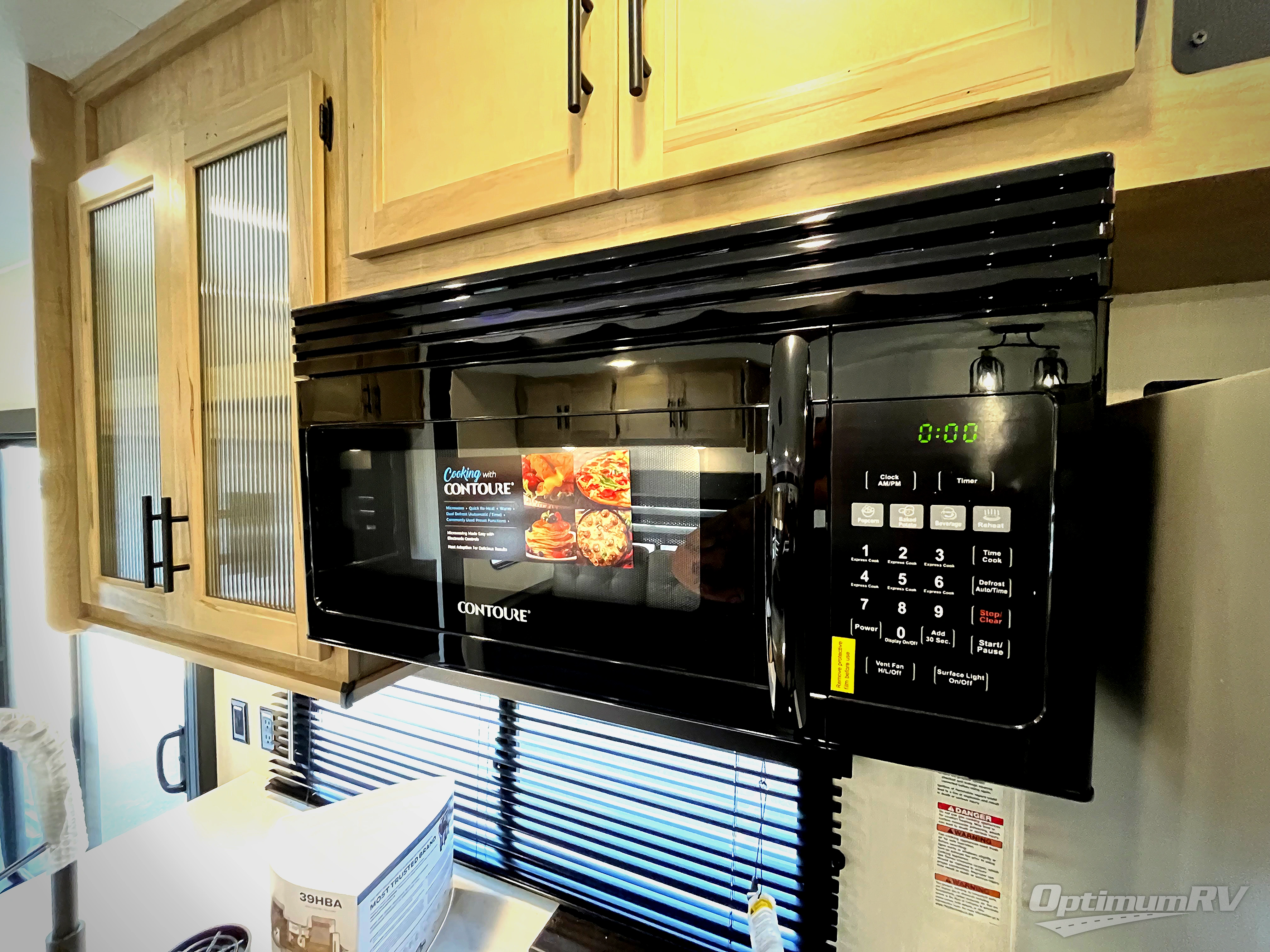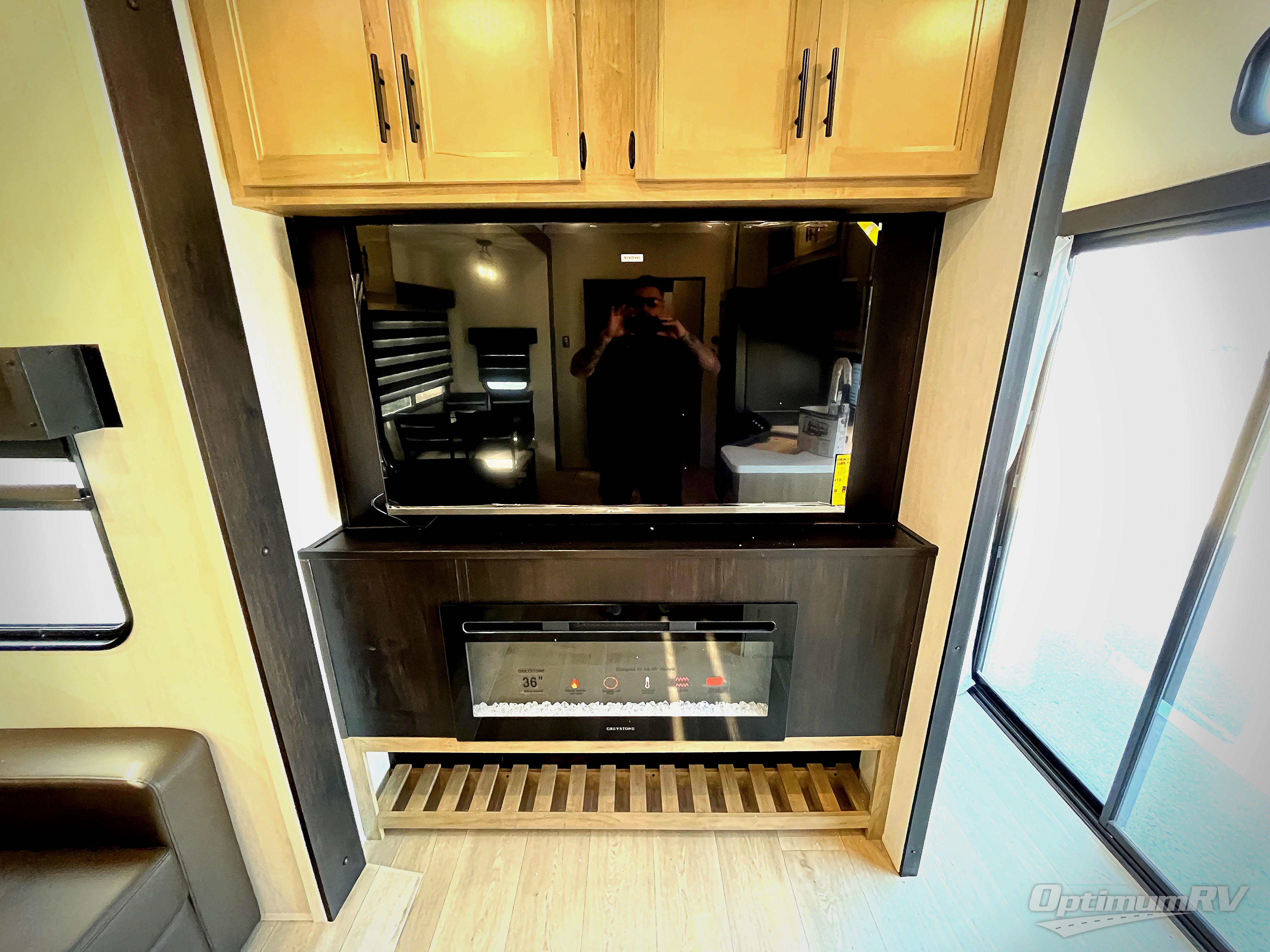 Spacious and comfortable is how you will describe this destination travel trailer featuring triple slides, two full baths, and a spacious combined kitchen and living area thanks to the large slide here featuring a free standing dinette and sofa. The kitchen includes everything you need to comfortably cook while you are away, and allows you to make meals for your family just like at home. There is a large pantry where you can keep plenty of snacks and dry goods for your trip. In the rear of the coach, there is a private bedroom featuring a queen bed slide for added space, comfortable sleeping, as well as ample storage between a dresser and wardrobe for your clothing. In the very back, a master suite bath featuring a vanity with sink, a shower with a seat, and linen storage for your towels and toiletries. This front bedroom also features a king bed slide!