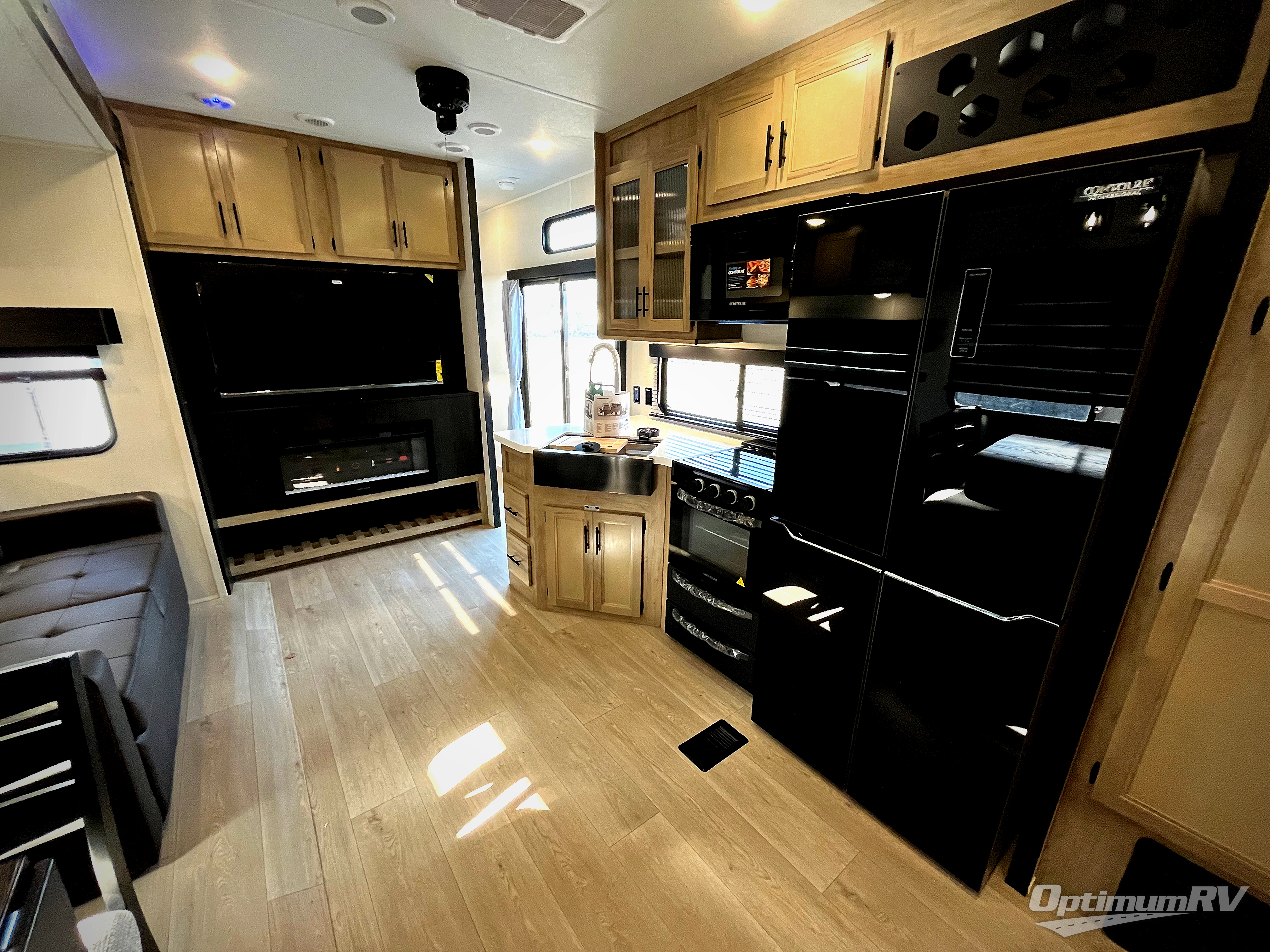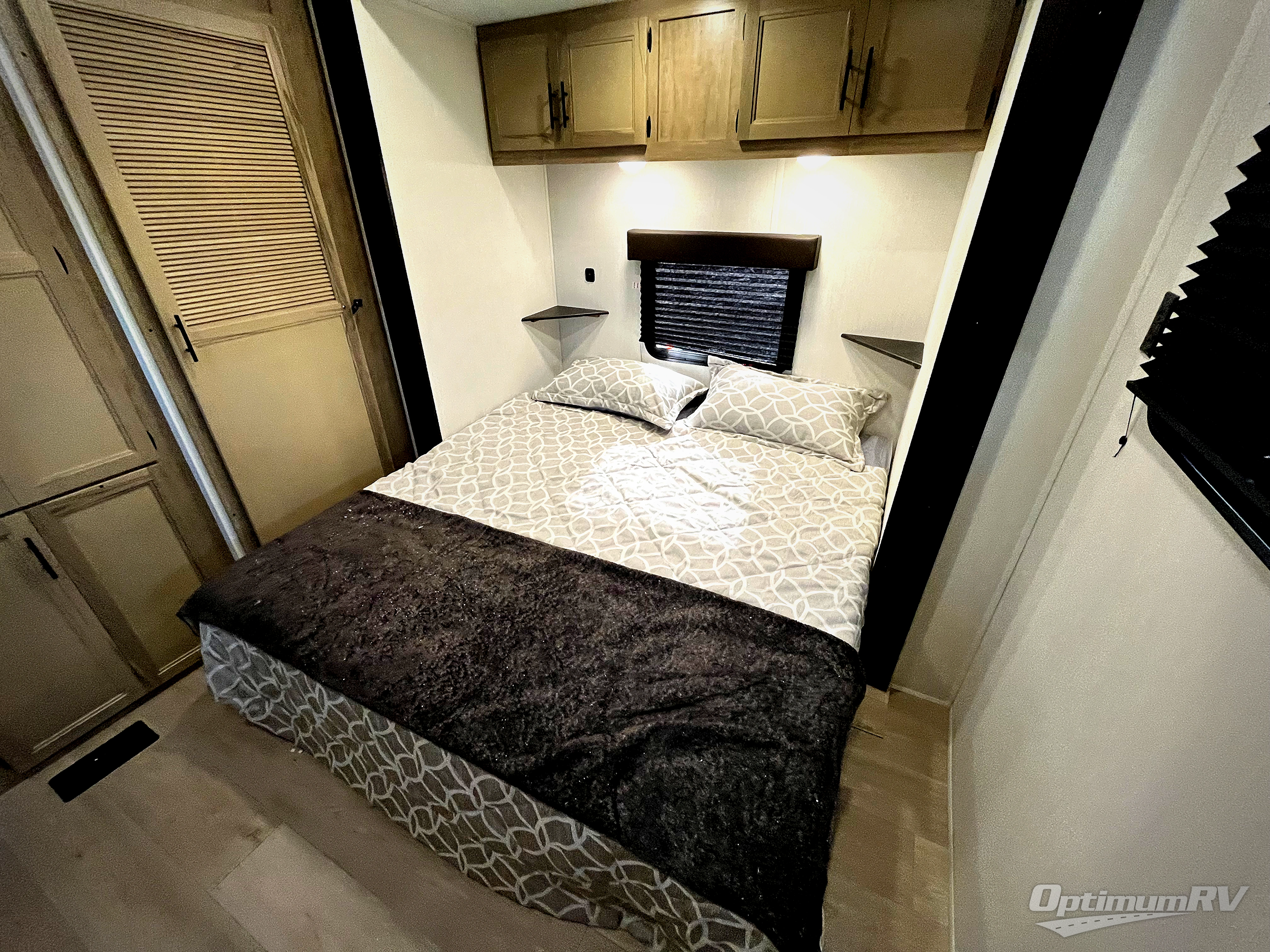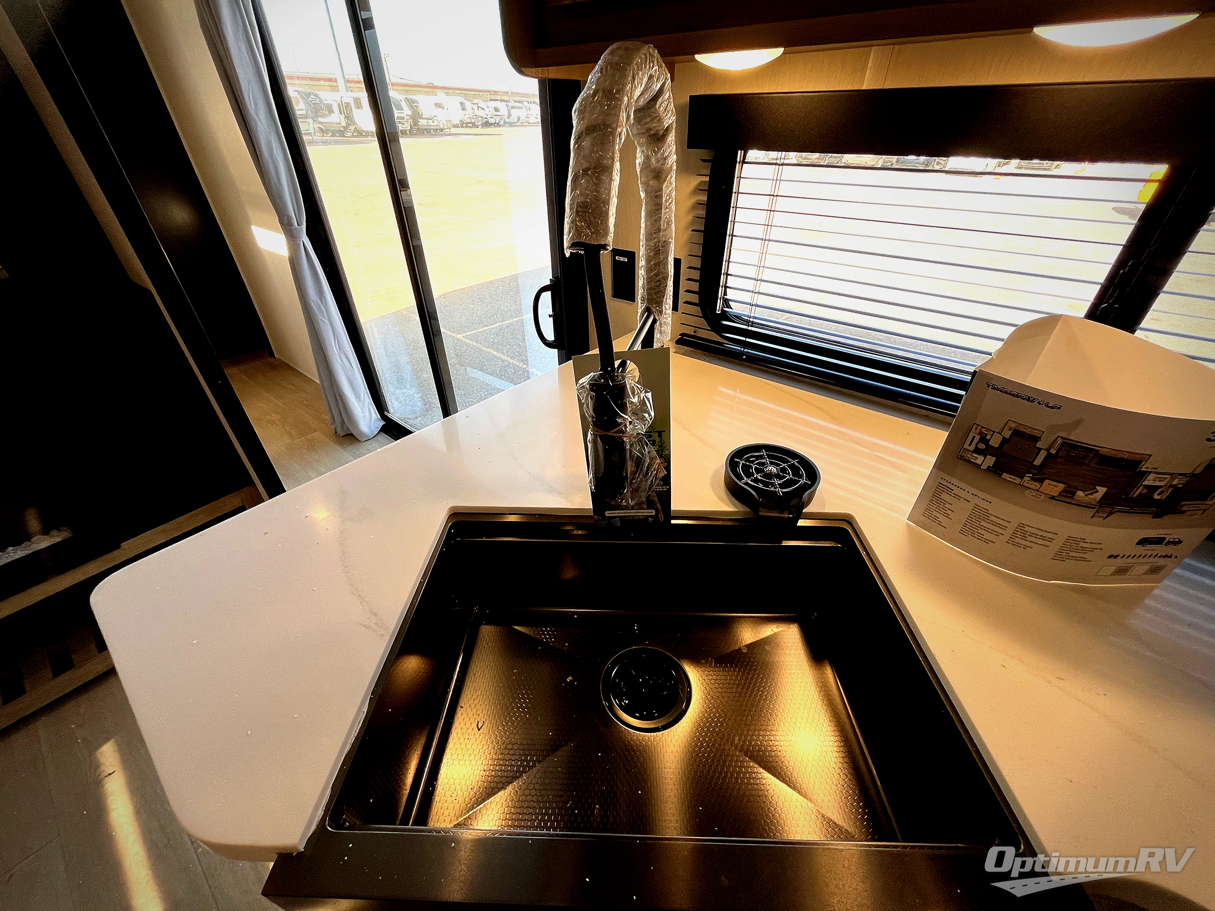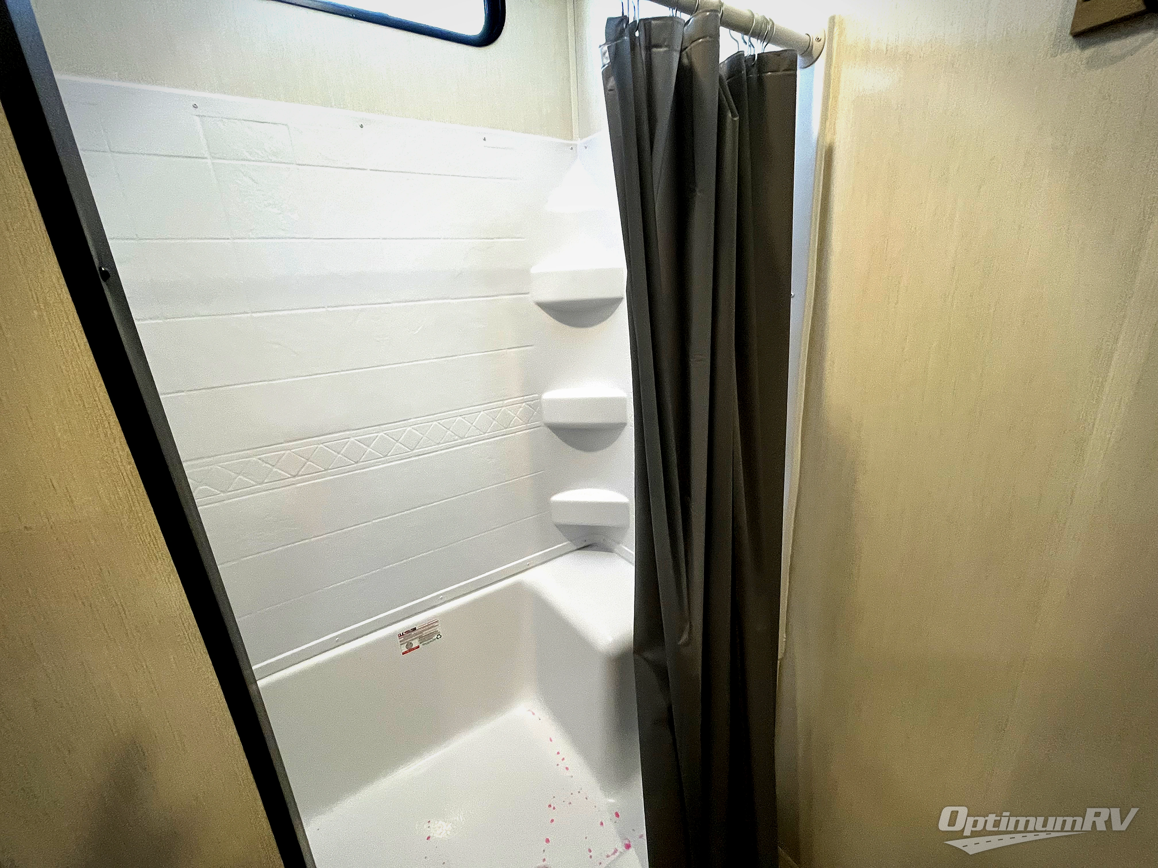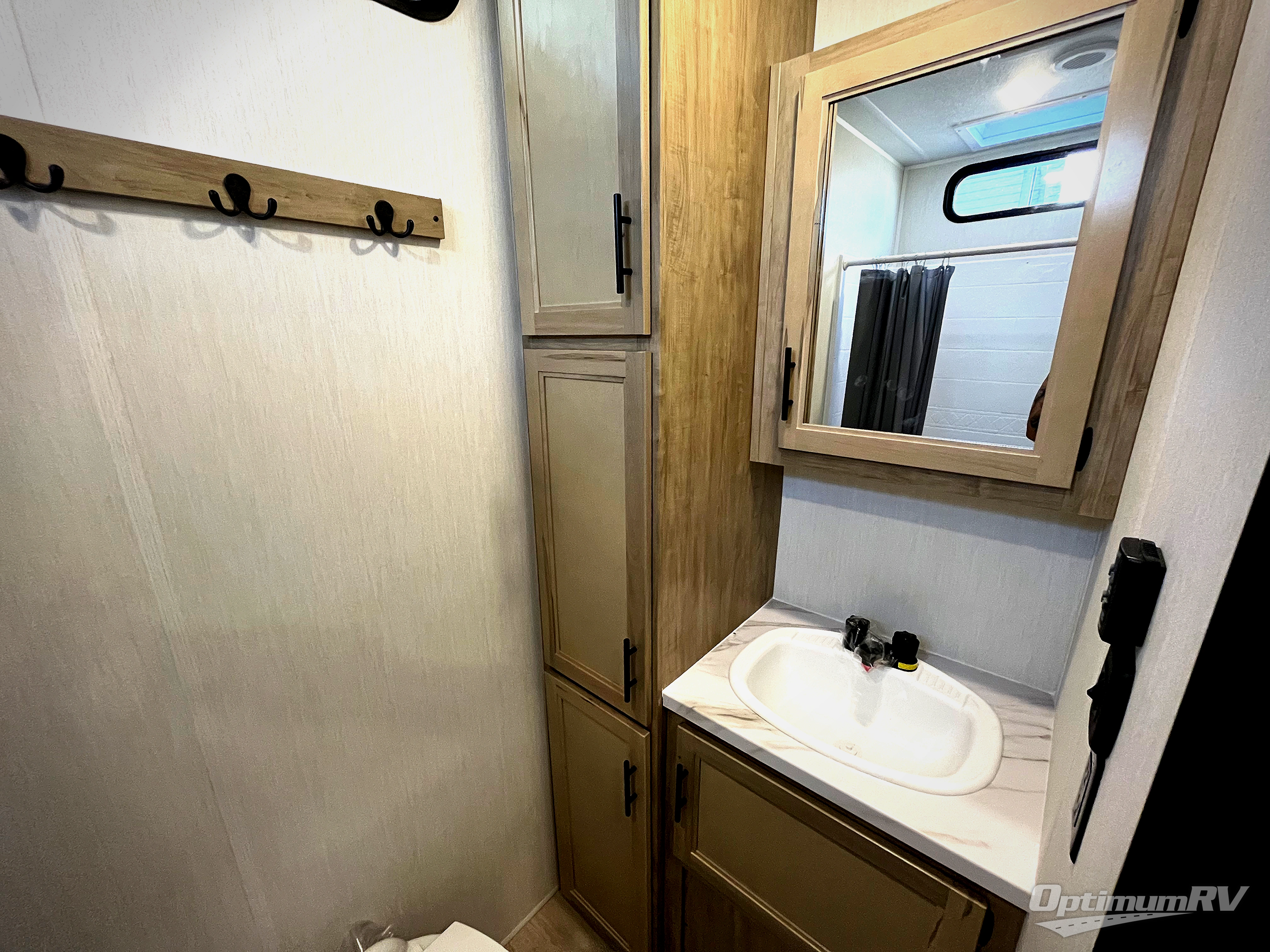 Spacious and comfortable is how you will describe this destination travel trailer featuring triple slides, two full baths, and a spacious combined kitchen and living area thanks to the large slide here featuring a free standing dinette and sofa. The kitchen includes everything you need to comfortably cook while you are away, and allows you to make meals for your family just like at home. There is a large pantry where you can keep plenty of snacks and dry goods for your trip. In the rear of the coach, there is a private bedroom featuring a queen bed slide for added space, comfortable sleeping, as well as ample storage between a dresser and wardrobe for your clothing. In the very back, a master suite bath featuring a vanity with sink, a shower with a seat, and linen storage for your towels and toiletries. This front bedroom also features a king bed slide!