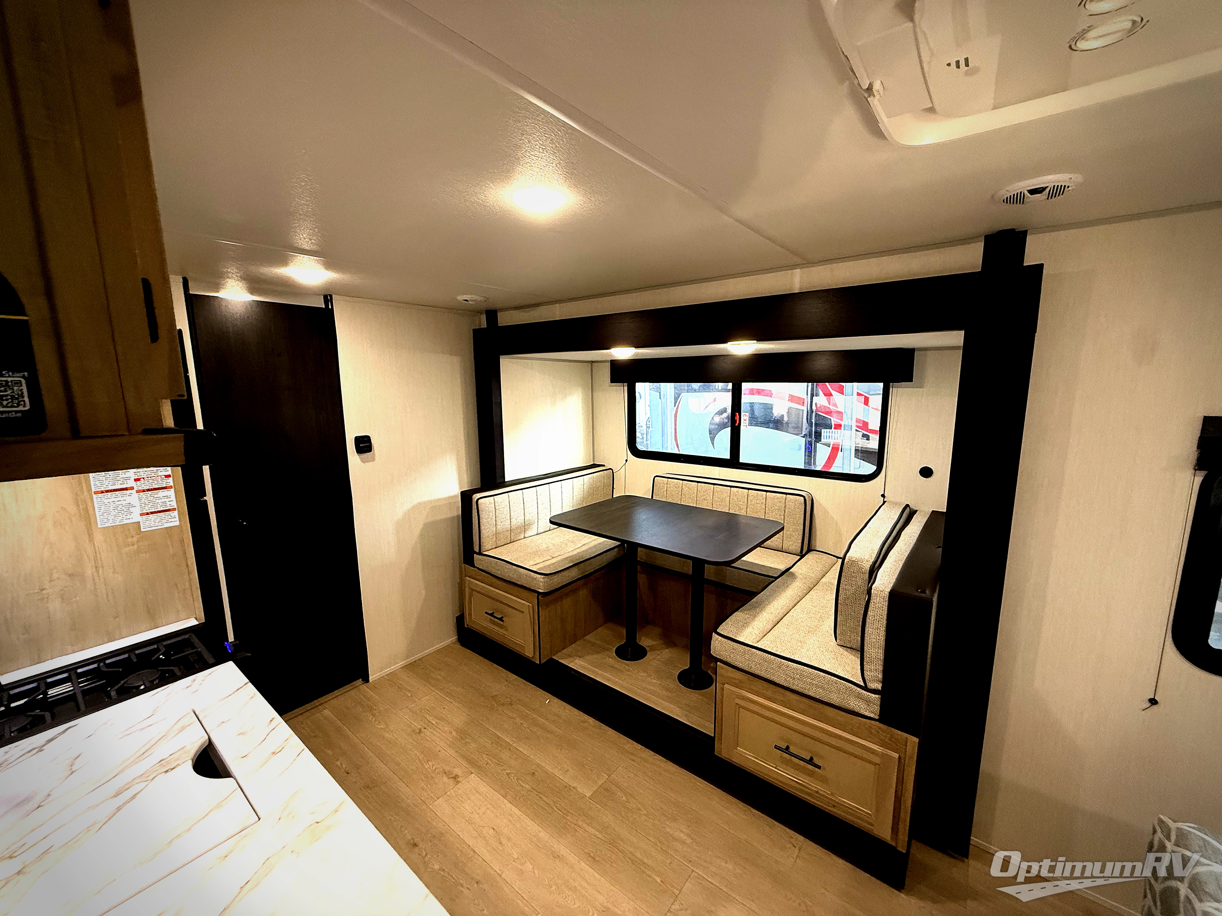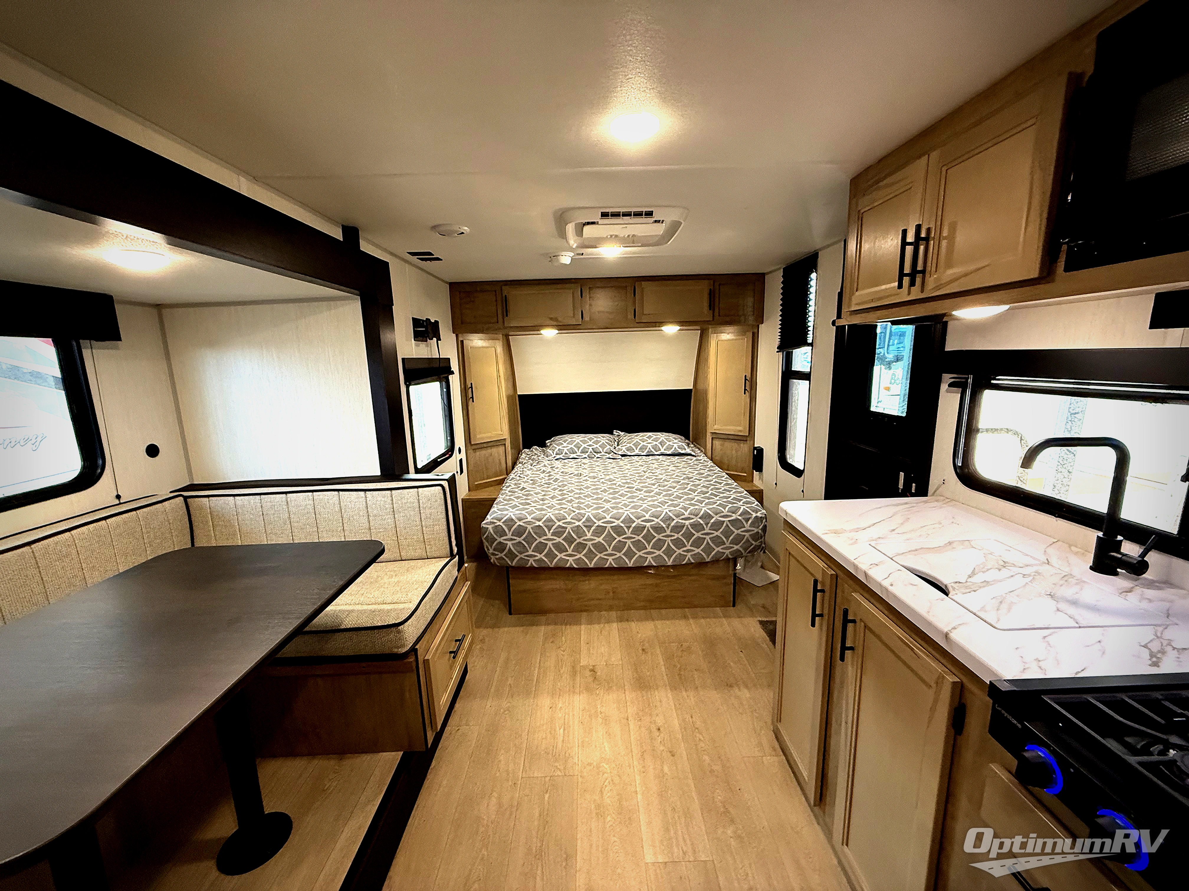 Every camping trip in this travel trailer is sure to be memorable. You will have a front queen bed to sleep on, while your guests take the U-shaped dinette when it's not being used to dine at. The kitchen provides a microwave oven, round single bowl sink, a range for cooking, and a refrigerator to keep all of your perishables fresh. The rear bath features a tub/shower, toilet, and vanity with sink, plus a medicine cabinet to keep this space tidy.