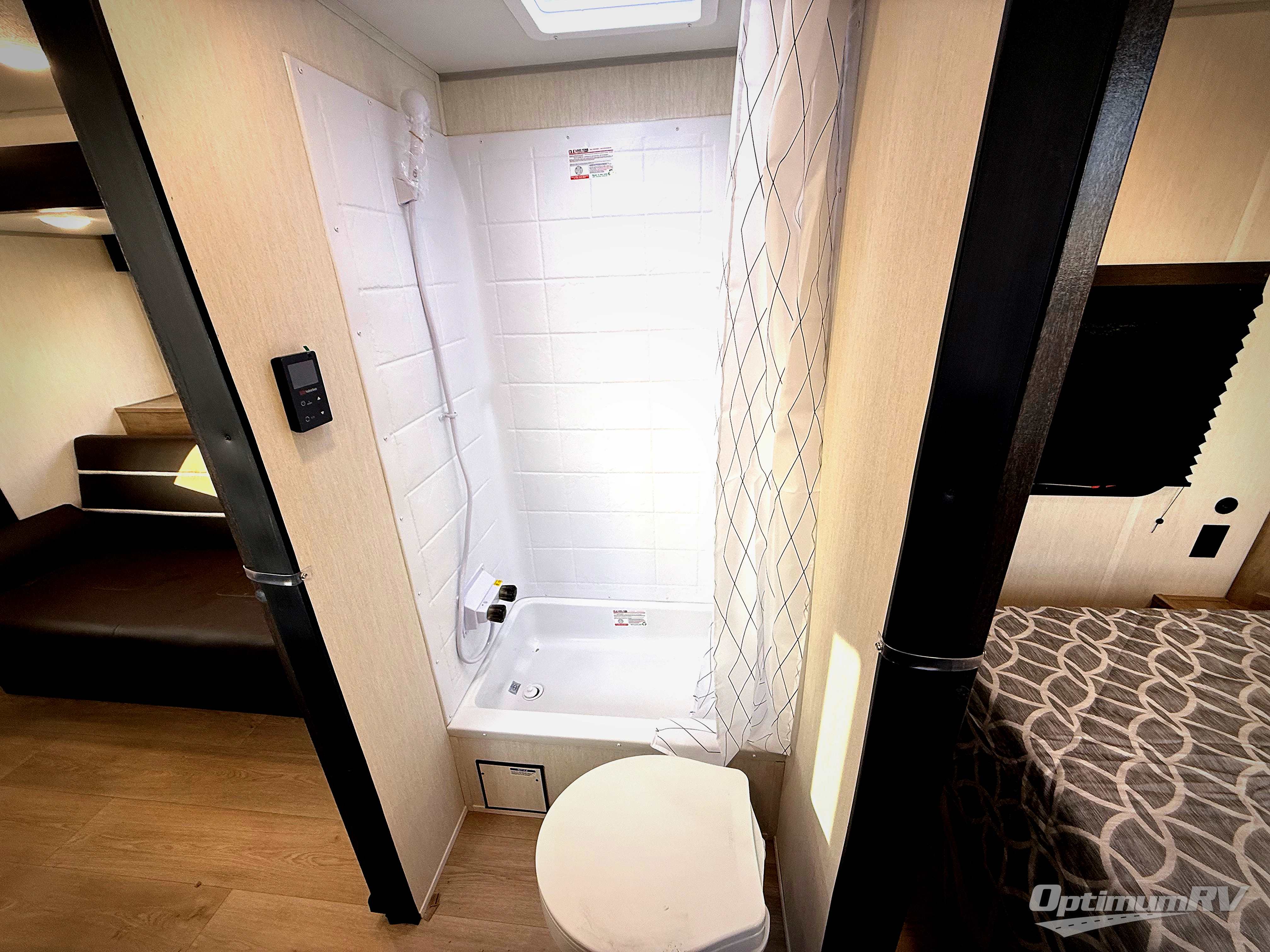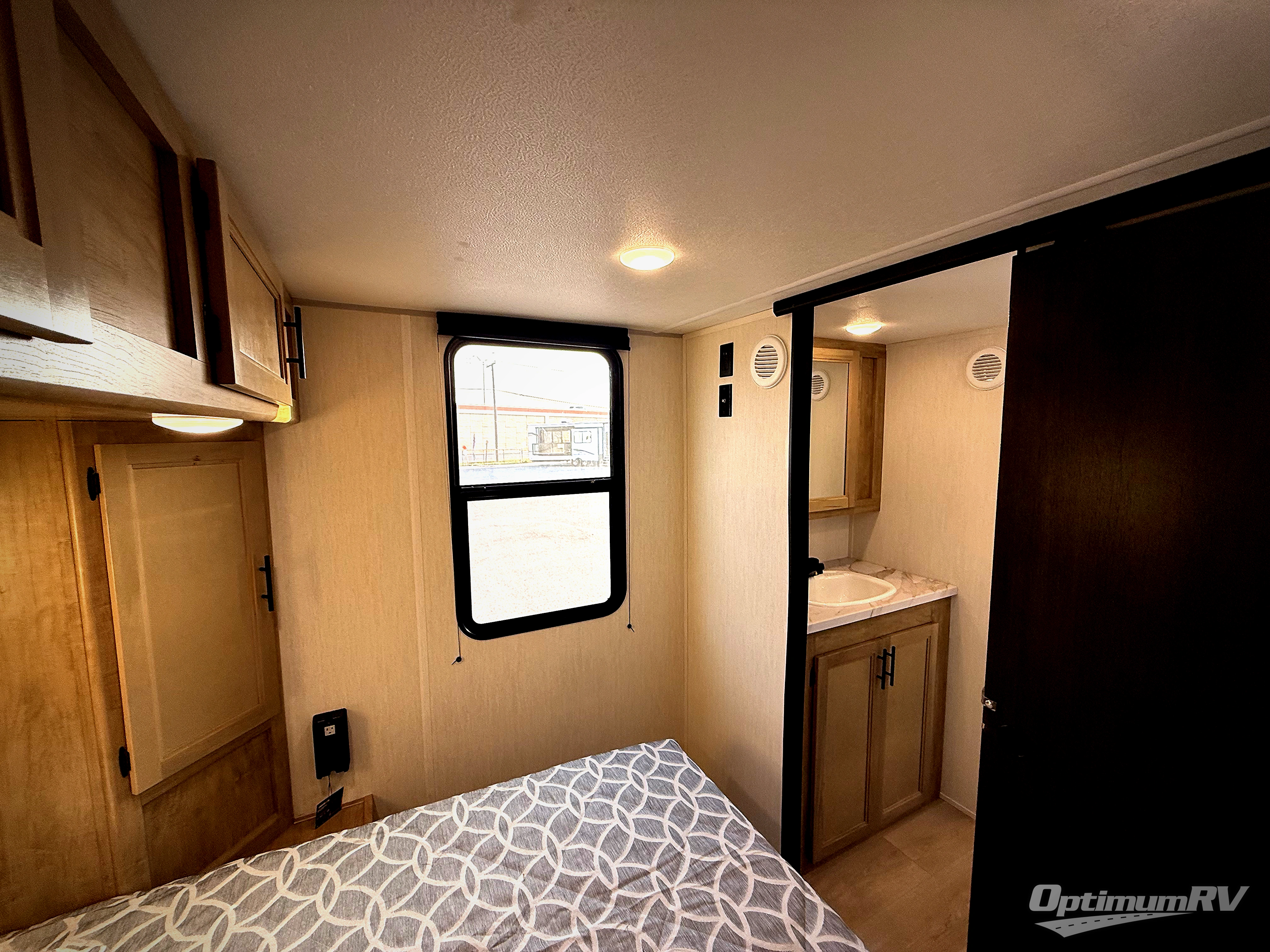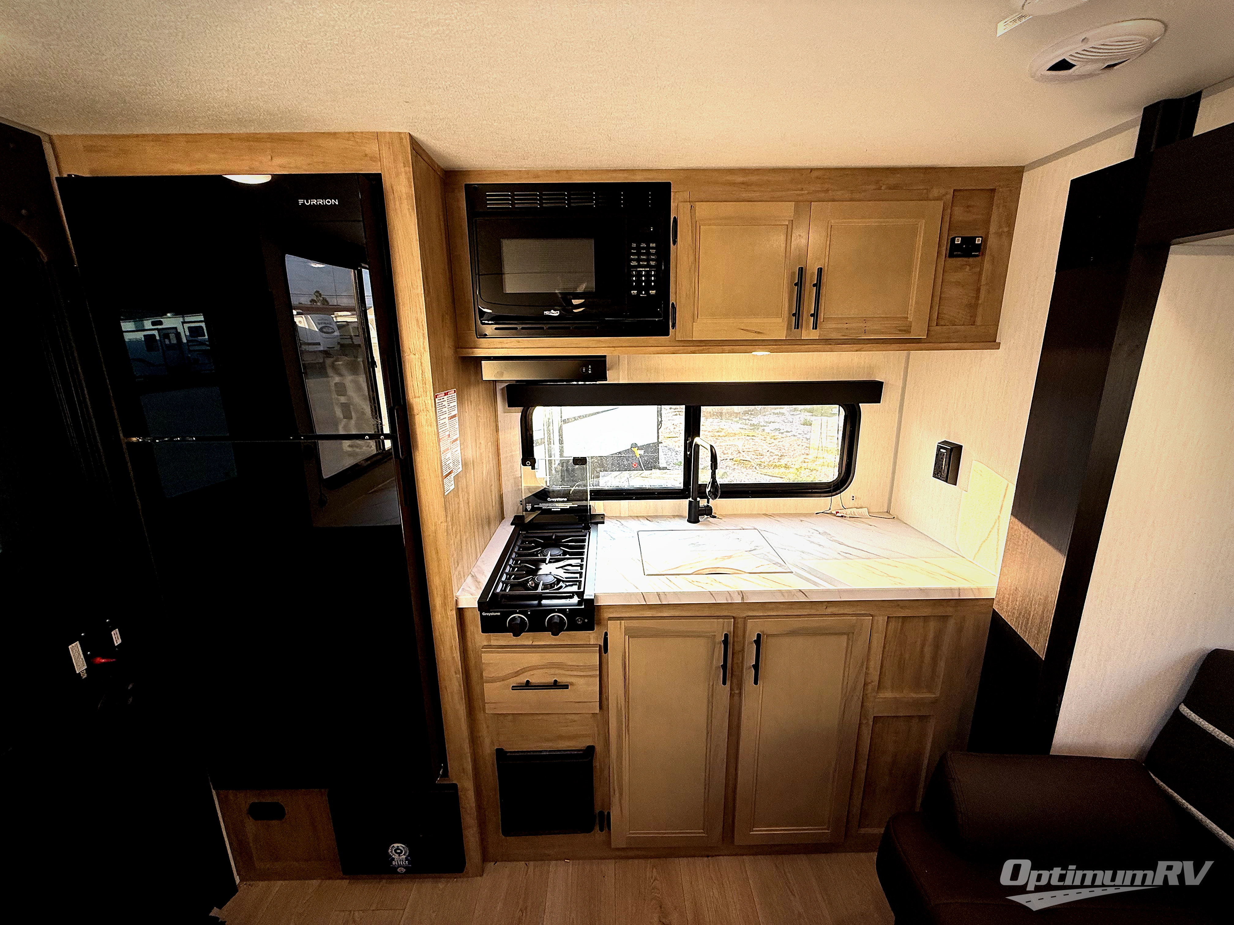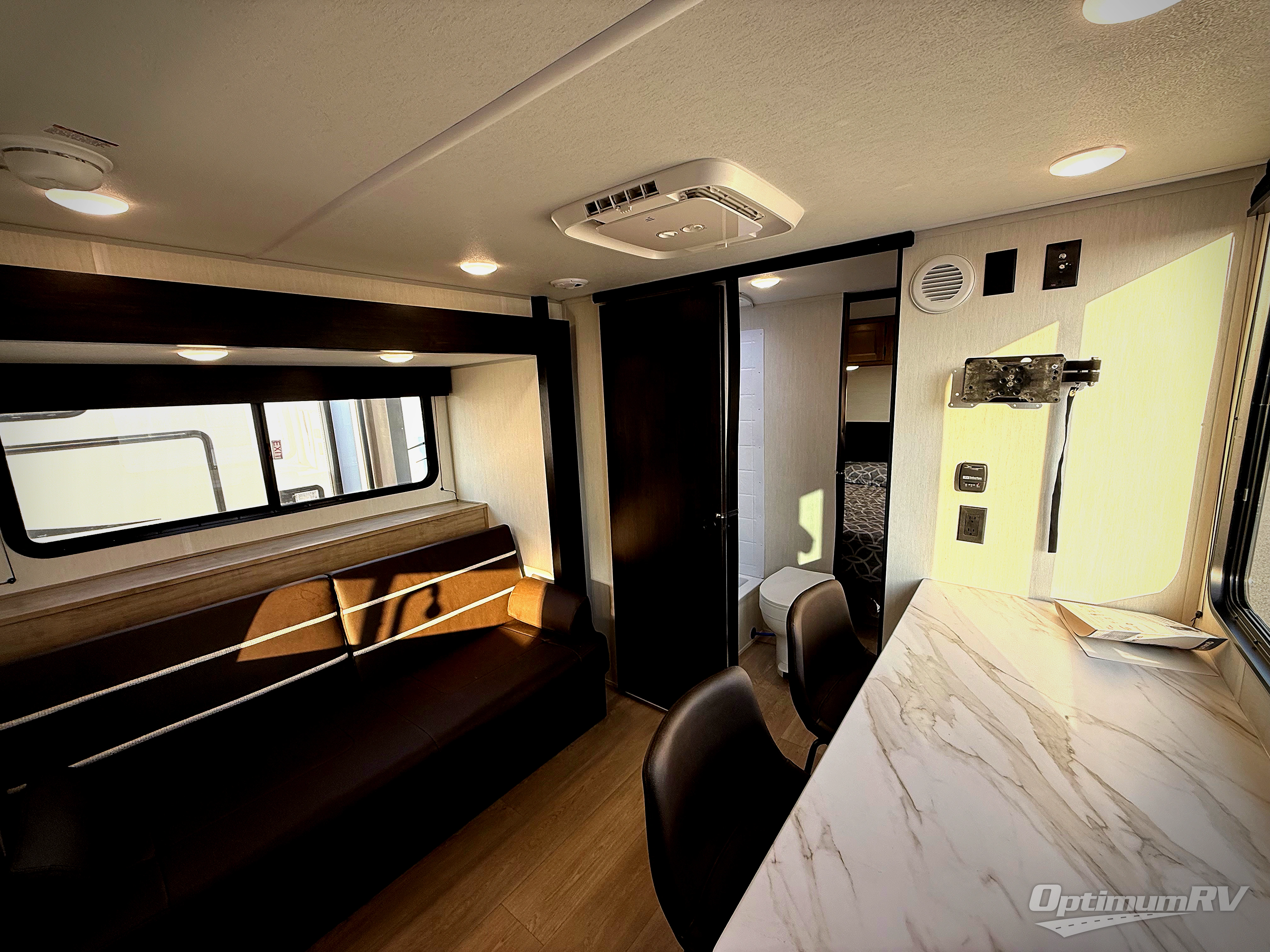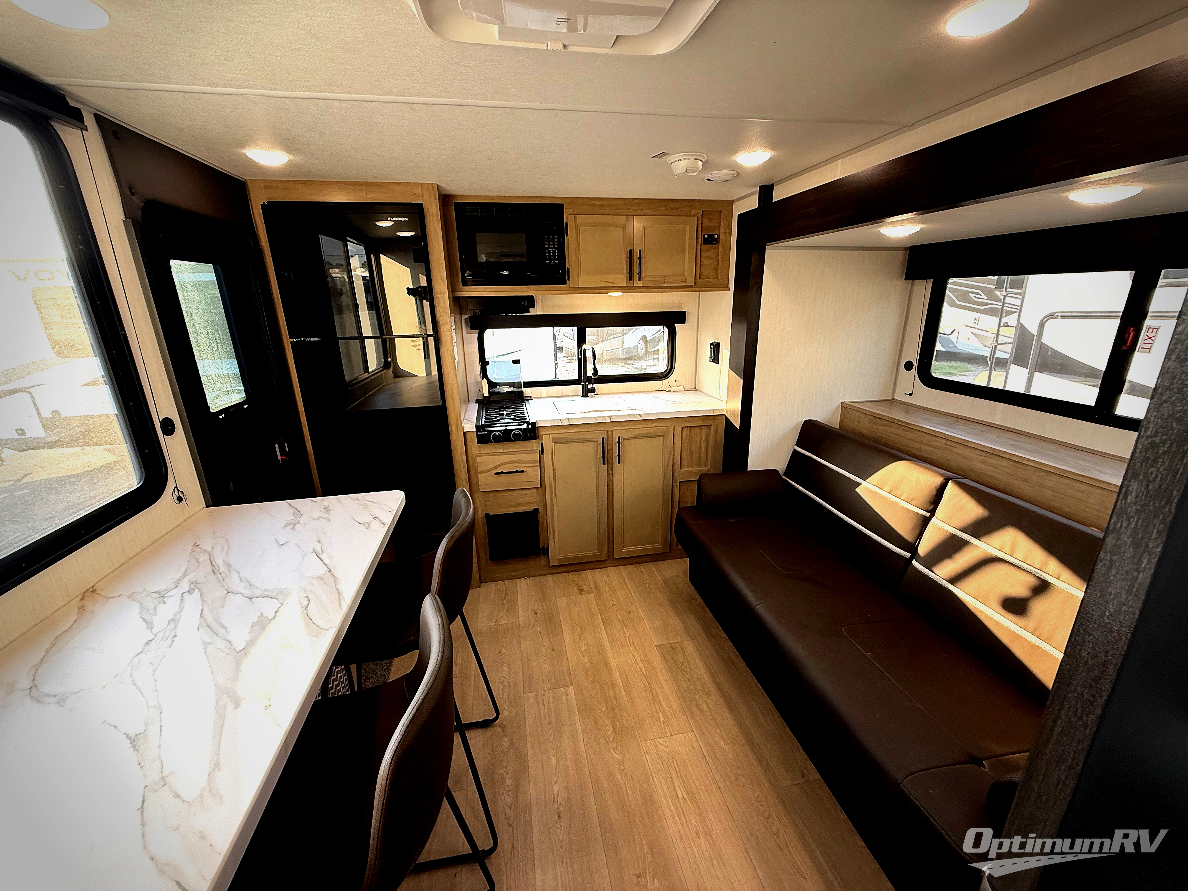 Convenient camping is found with this lightweight travel trailer! Once you arrive at your destination, put out the power awning, then make lunch on the exterior mini kitchen. Inside, you can dine at the bar top with stools, freshen up in the tub/shower, and sleep soundly on the queen bed in the master bedroom. There is also a sofa slide out to provide additional seating, sleeping, and interior space! And you're sure to find plenty of storage spaces both inside and outside, including a rear storage rack!