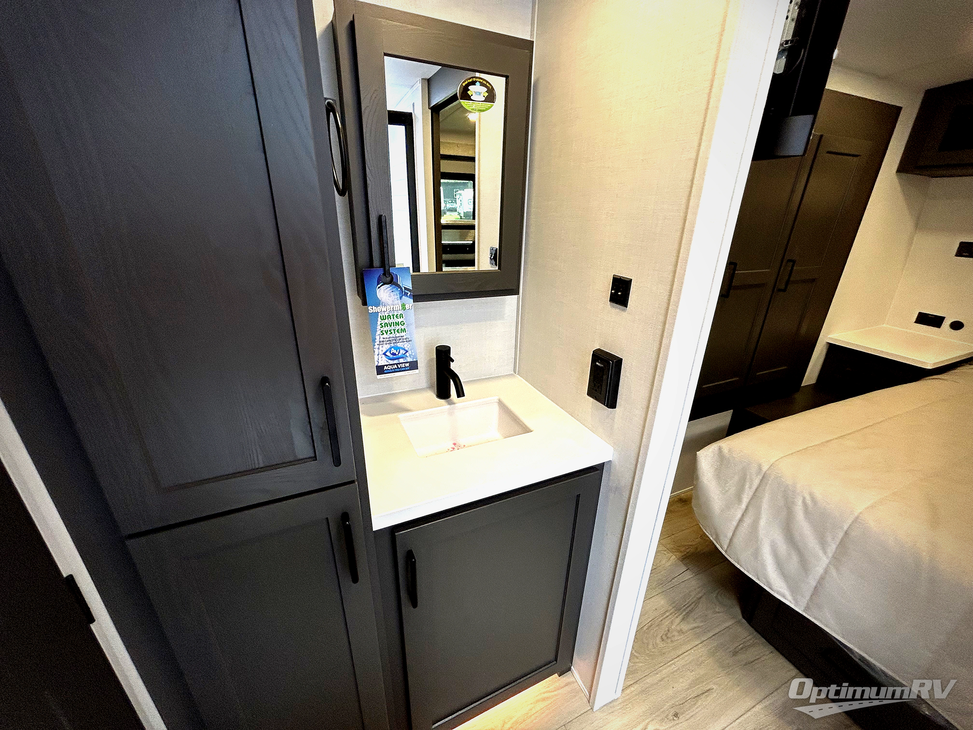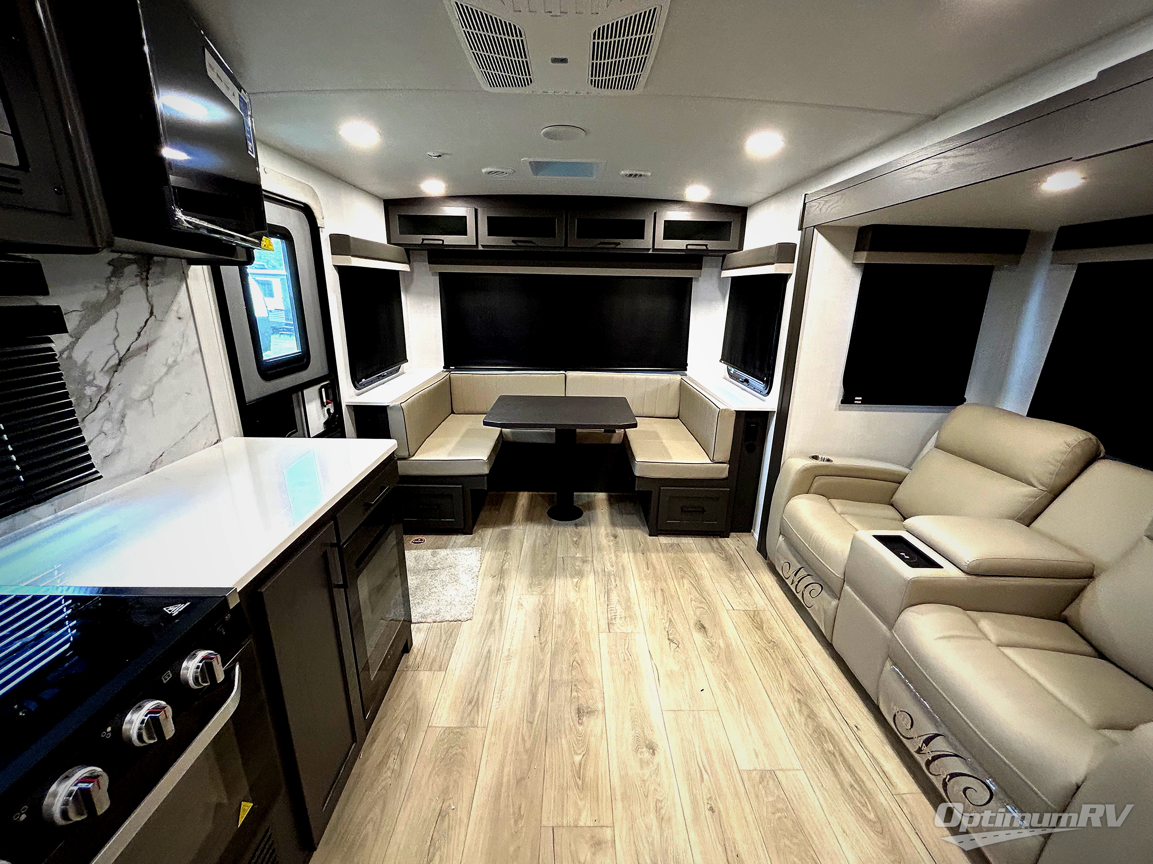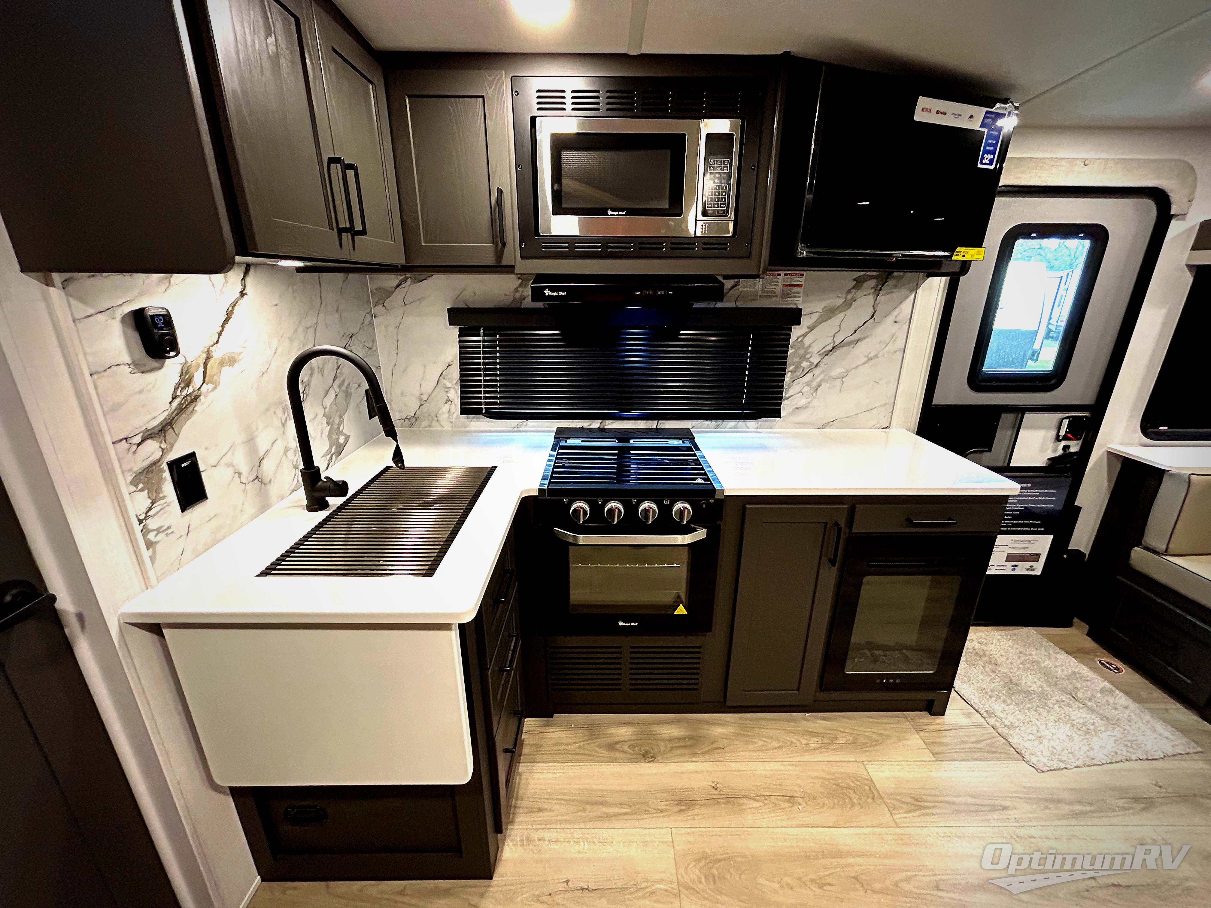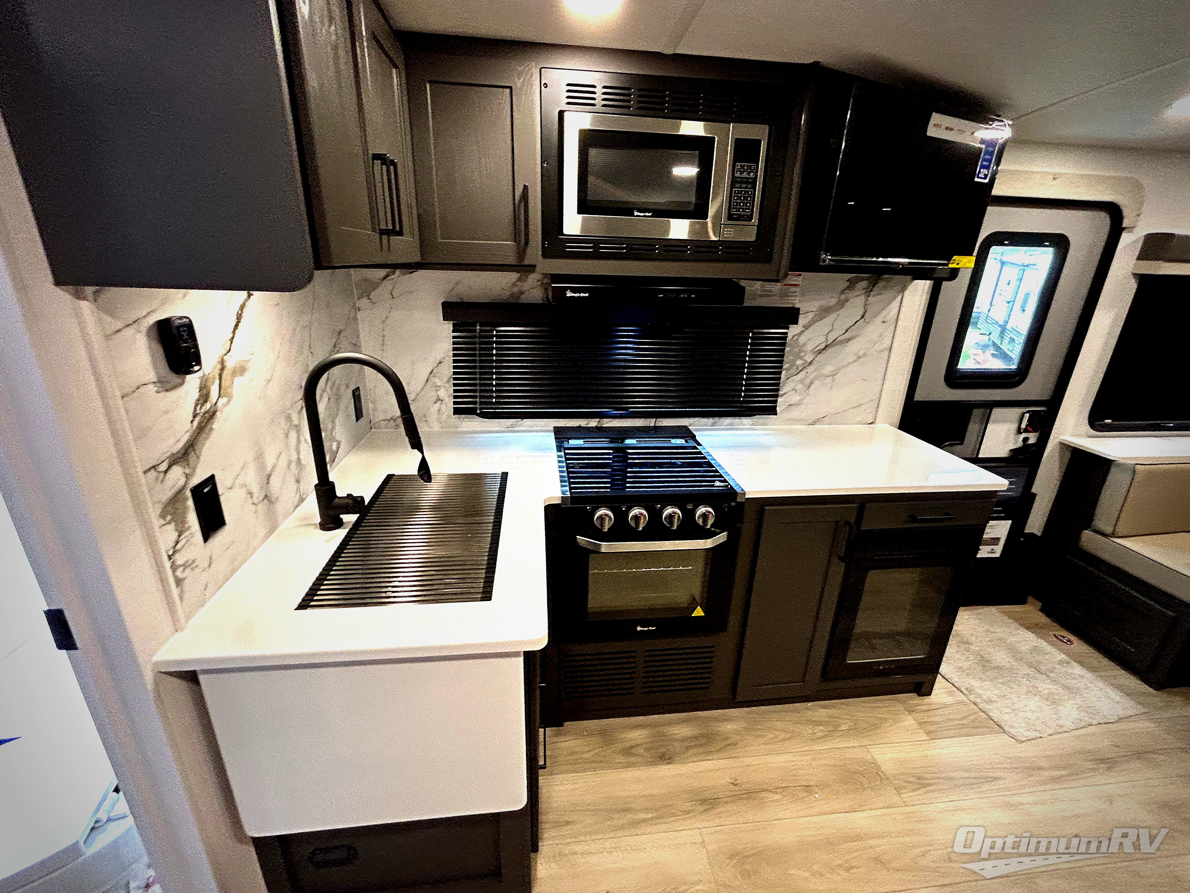 It will be so easy to enjoy time at the campground in this cozy travel trailer. The full kitchen includes a three burner gas oven, a microwave oven, and a 12V refrigerator to cook and store food, and the pantry will let you stock up on snacks. Your crew can get comfortable on the theater seat or around the rear U-shaped dinette, and there is a smart TV here to make it a movie night. The walk-thru bath will let you freshen up each day, and the queen bed in the front bedroom is sure to bring comfort. You will also find one of the dual entry doors here for convenience plus a wardrobe slide out for more storage and floor space. The exterior is just as accommodating with its pass-thru storage, 2" receiver hitch, and 21' power awning!