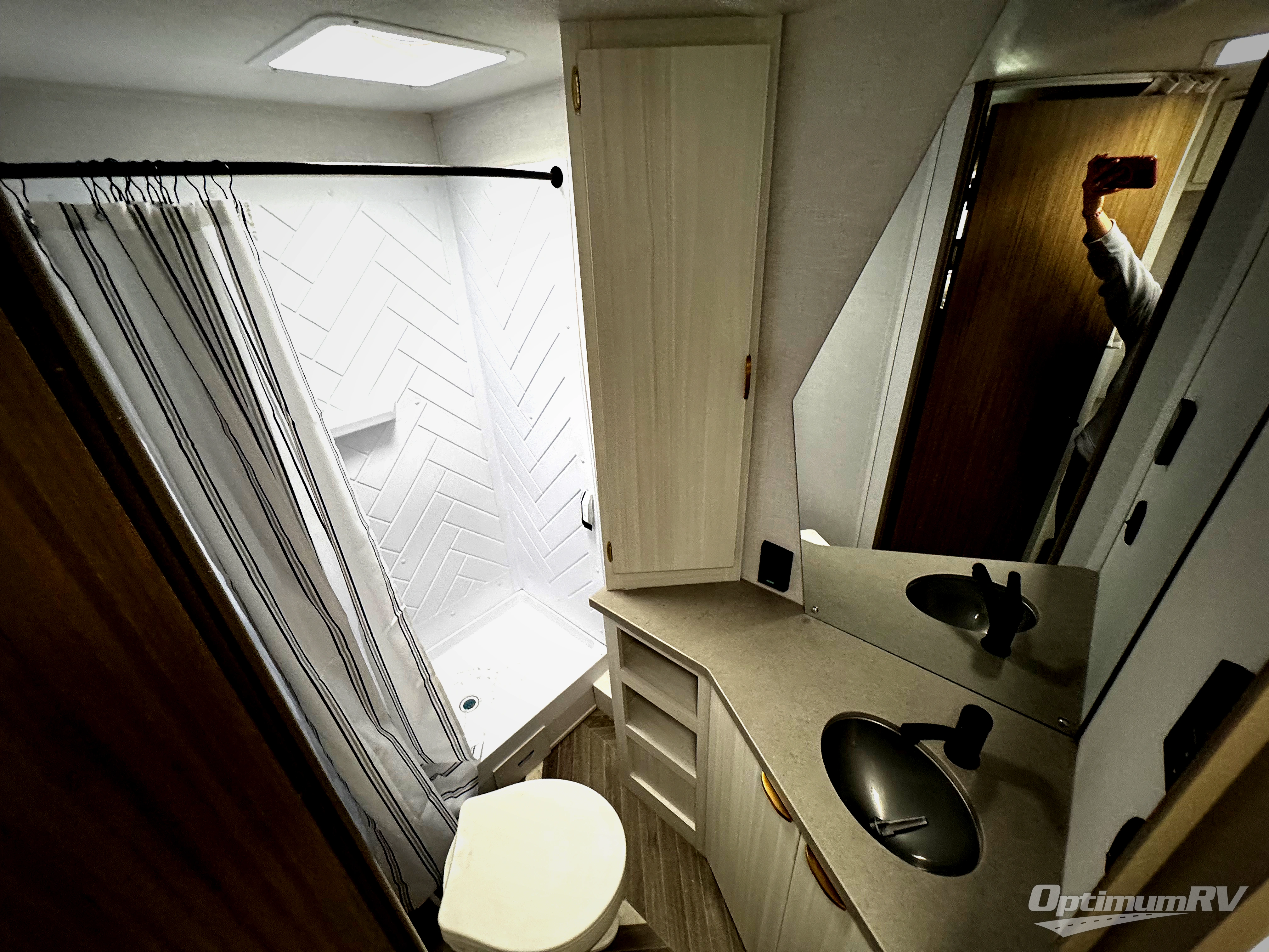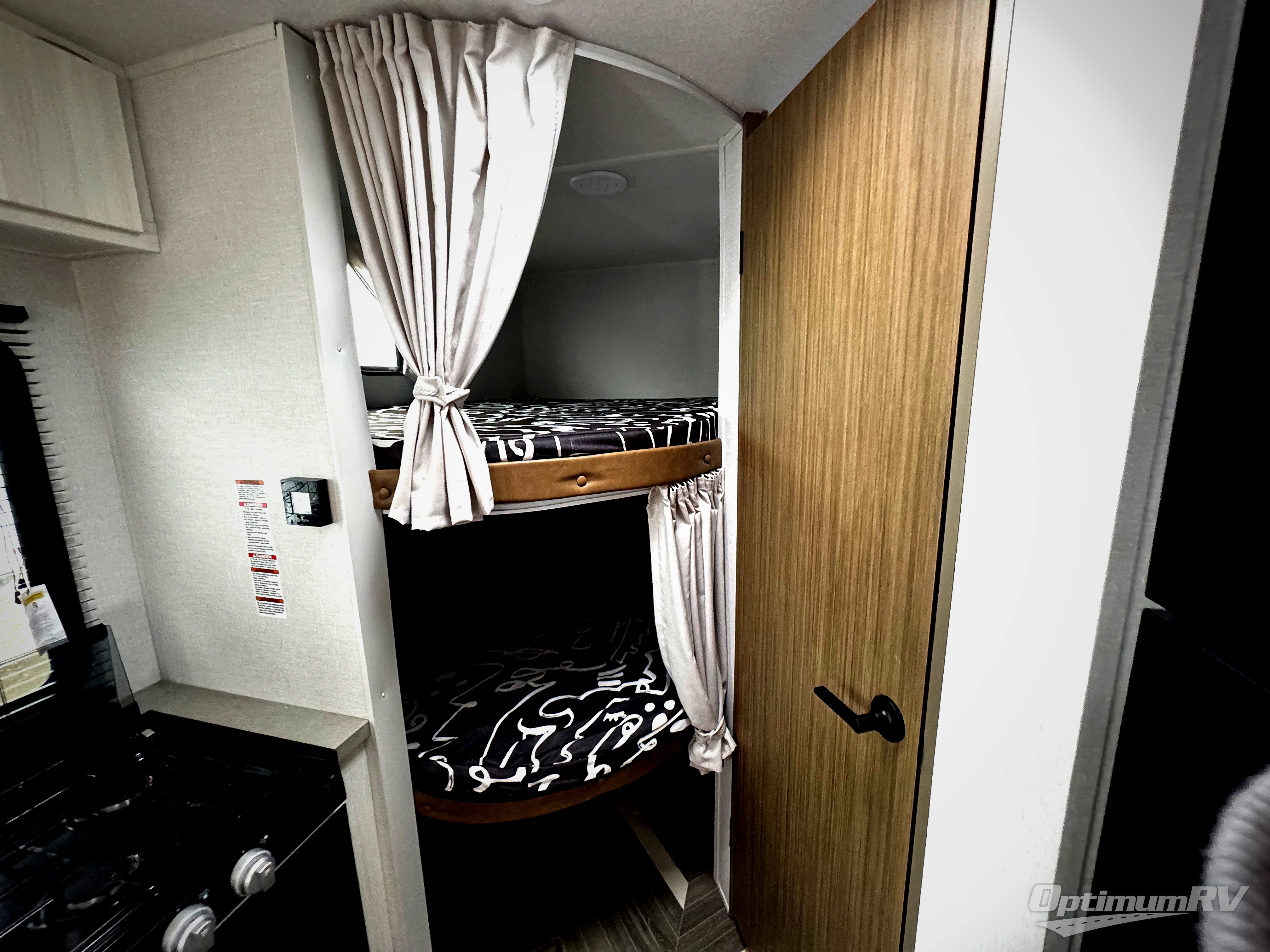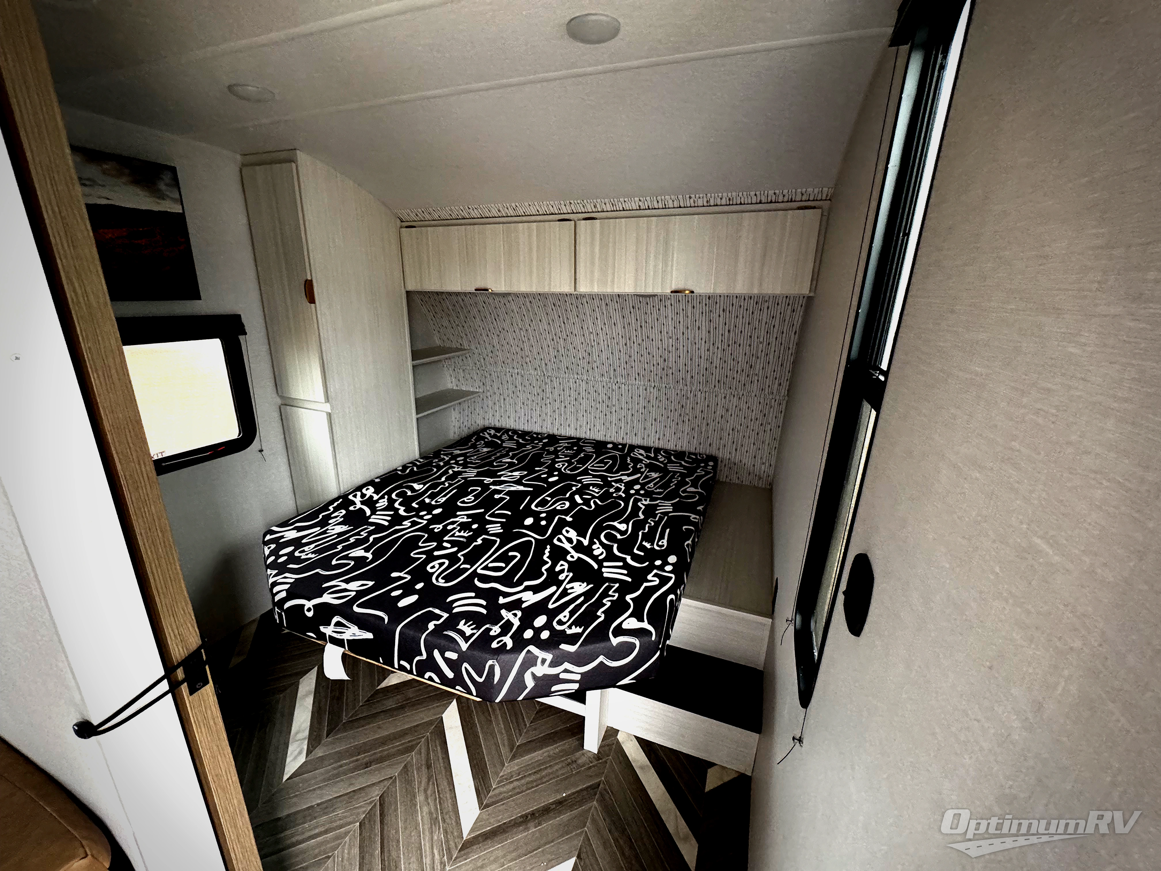 This trailer resembles the layout of 2300RB, but you'll enjoy added double-size bunks in the rear corner, with a full bath in the other rear corner! You'll have the front private bedroom all to yourselves with a king bed and dual wardrobes, and other guests can sleep on the L-shaped sofa when it's not being used to relax on. The kitchen on this Ozark includes a 3-in-1 cooktop with a convection microwave, and a window by the sink so you can have open views as you clean up. There is also a pantry and a 12V refrigerator to keep food stocked!
