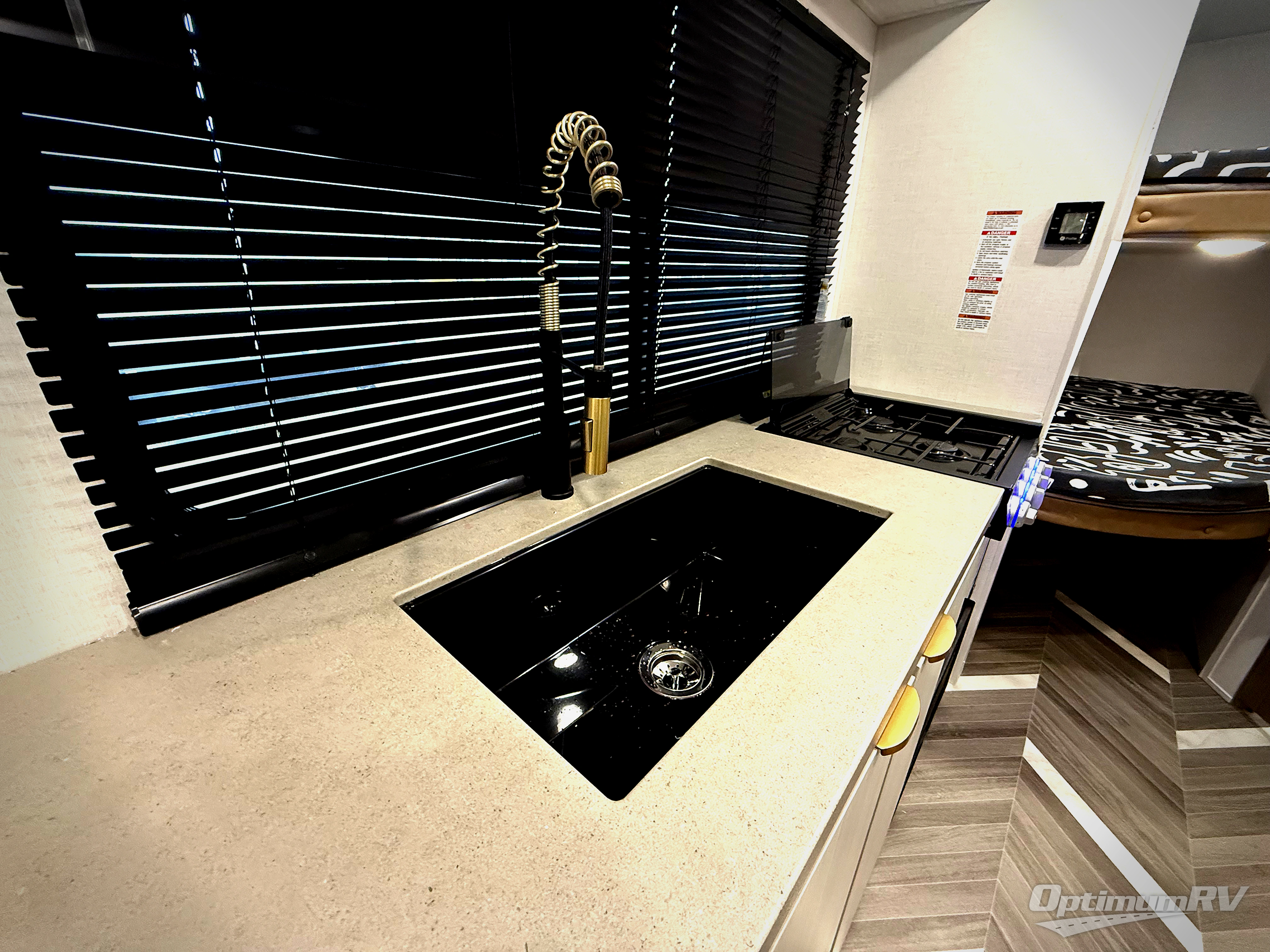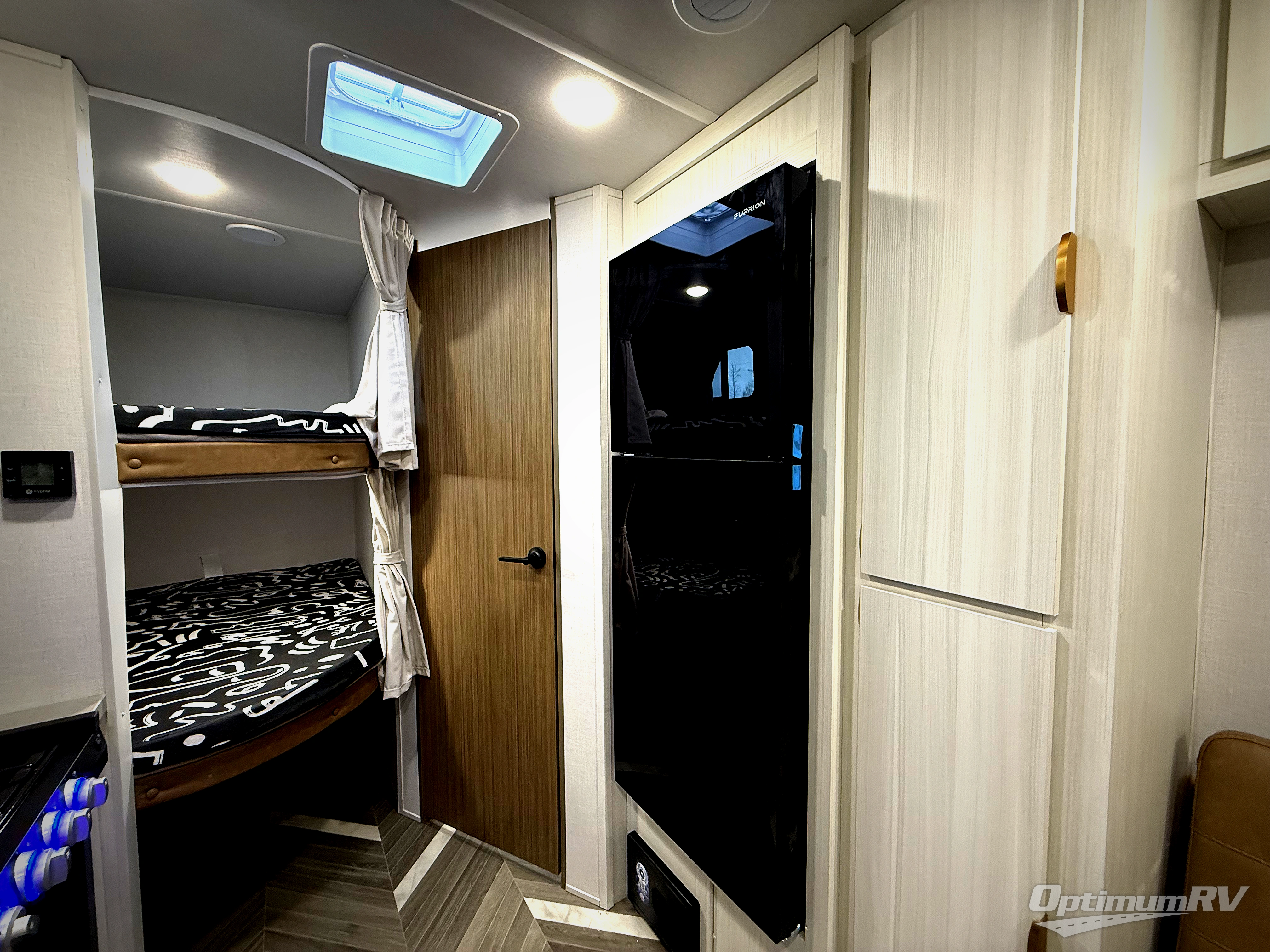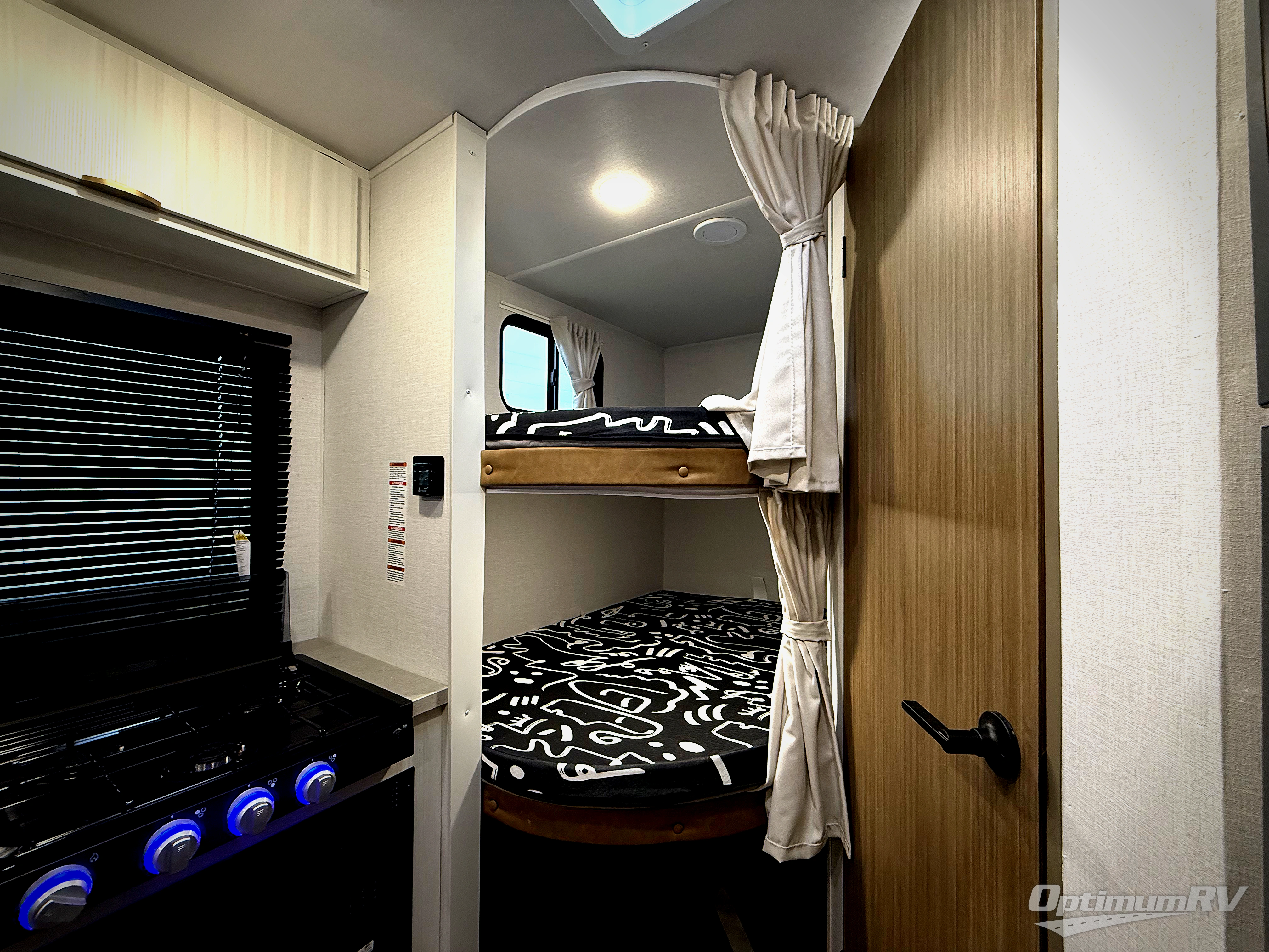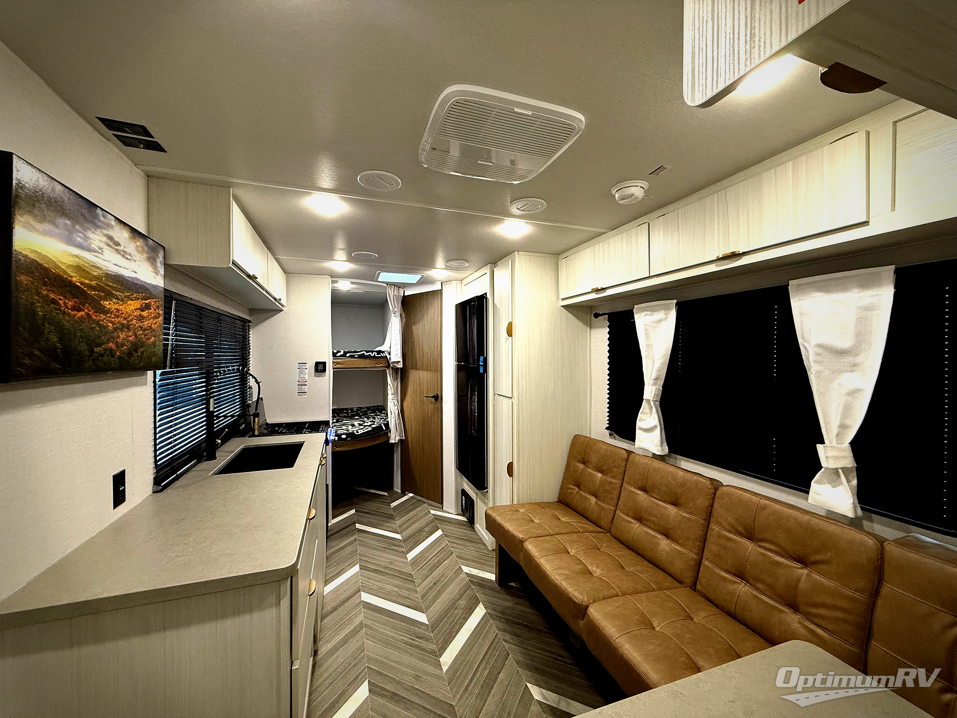 This trailer resembles the layout of 2300RB, but you'll enjoy added double-size bunks in the rear corner, with a full bath in the other rear corner! You'll have the front private bedroom all to yourselves with a king bed and dual wardrobes, and other guests can sleep on the L-shaped sofa when it's not being used to relax on. The kitchen on this Ozark includes a 3-in-1 cooktop with a convection microwave, and a window by the sink so you can have open views as you clean up. There is also a pantry and a 12V refrigerator to keep food stocked!
